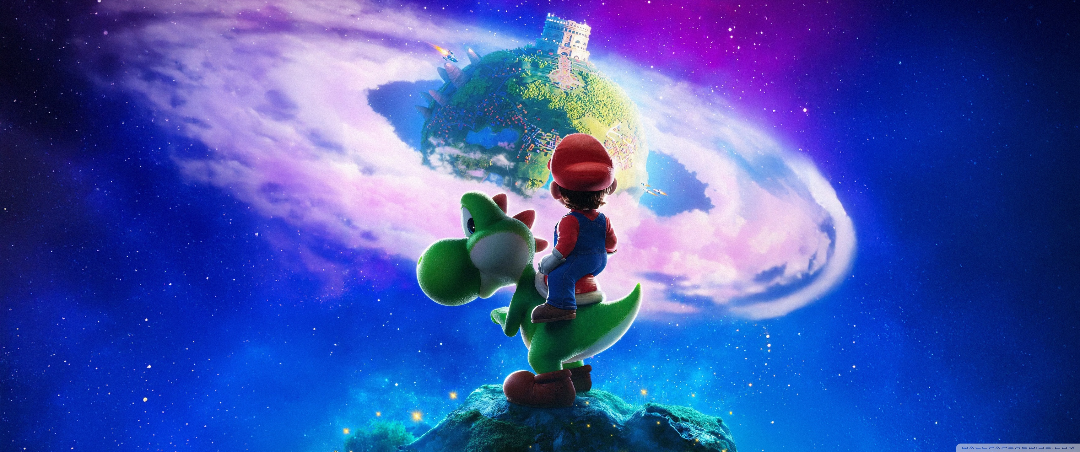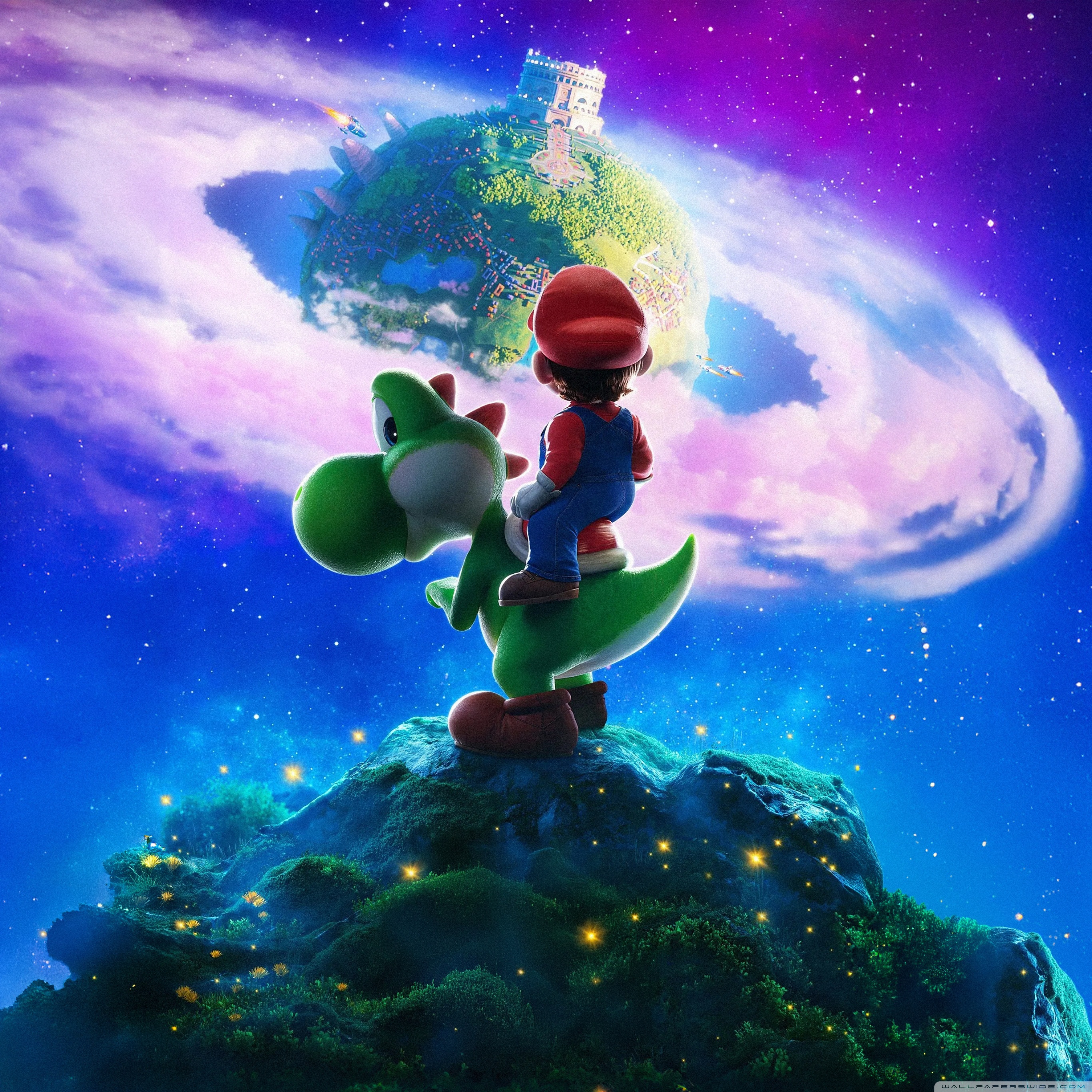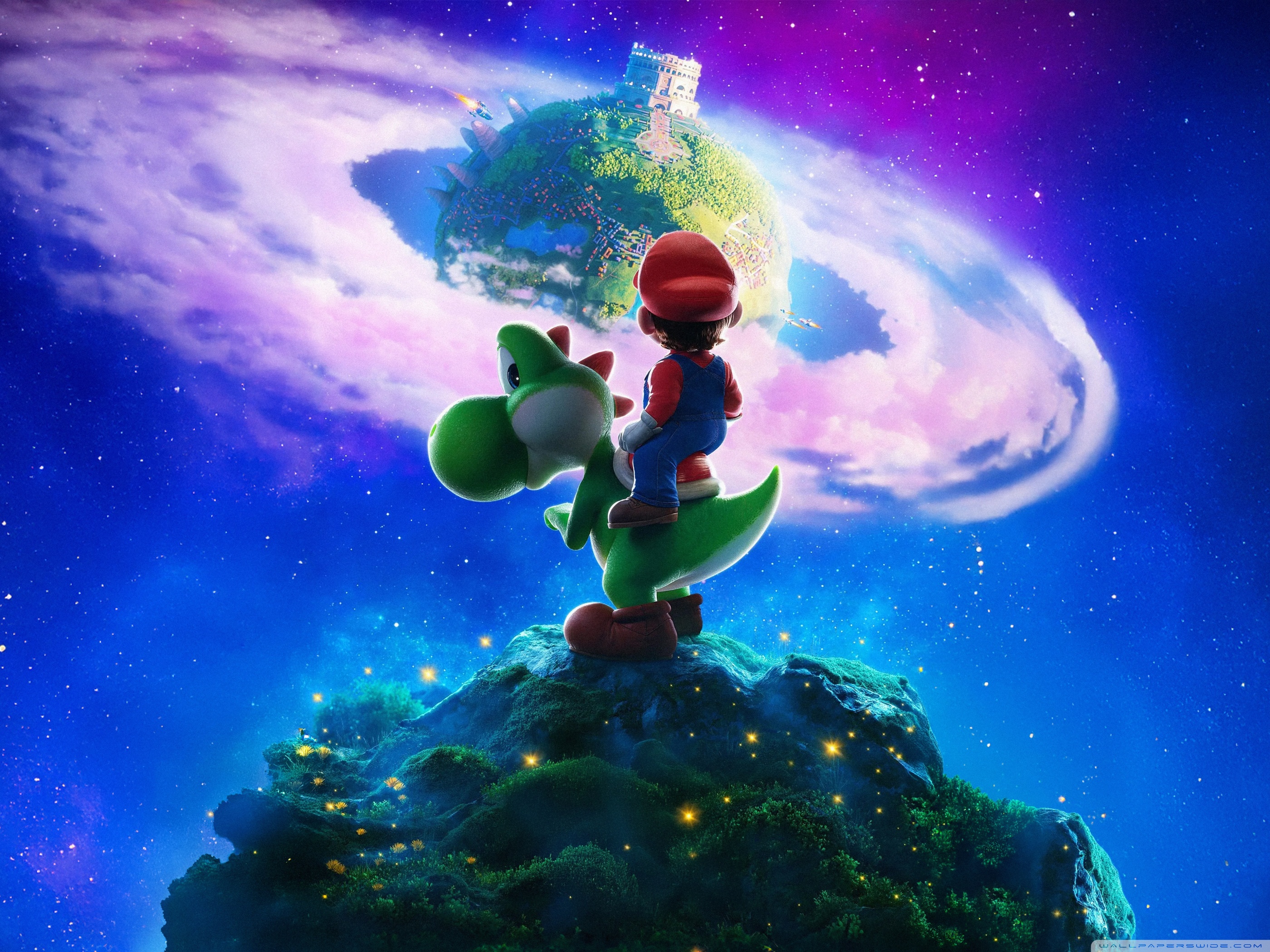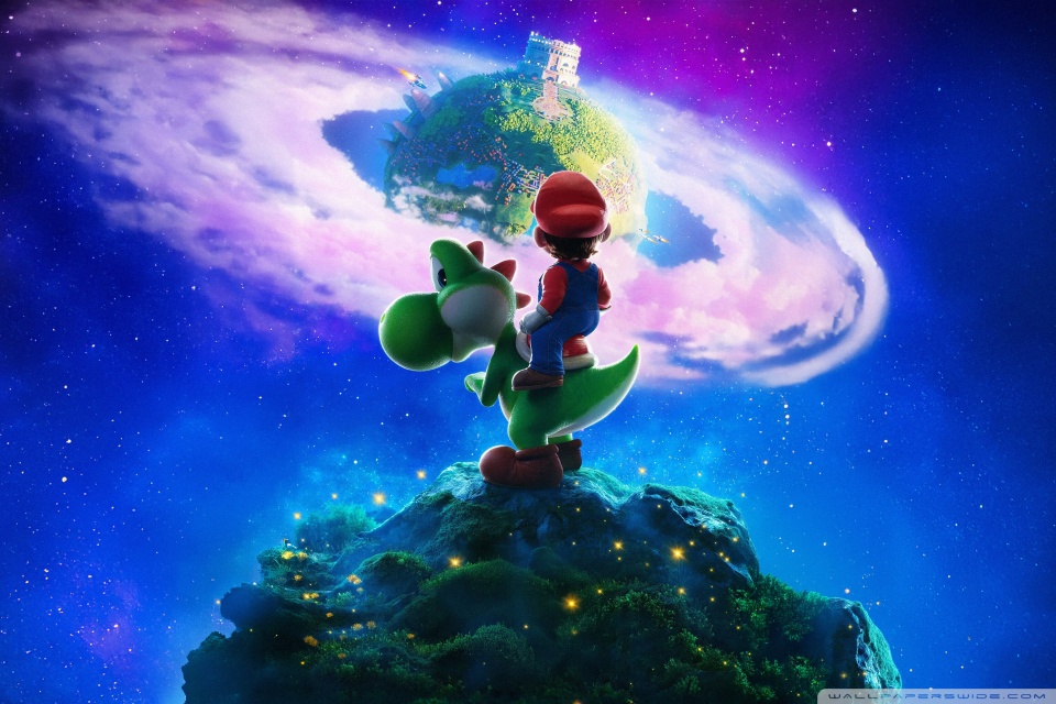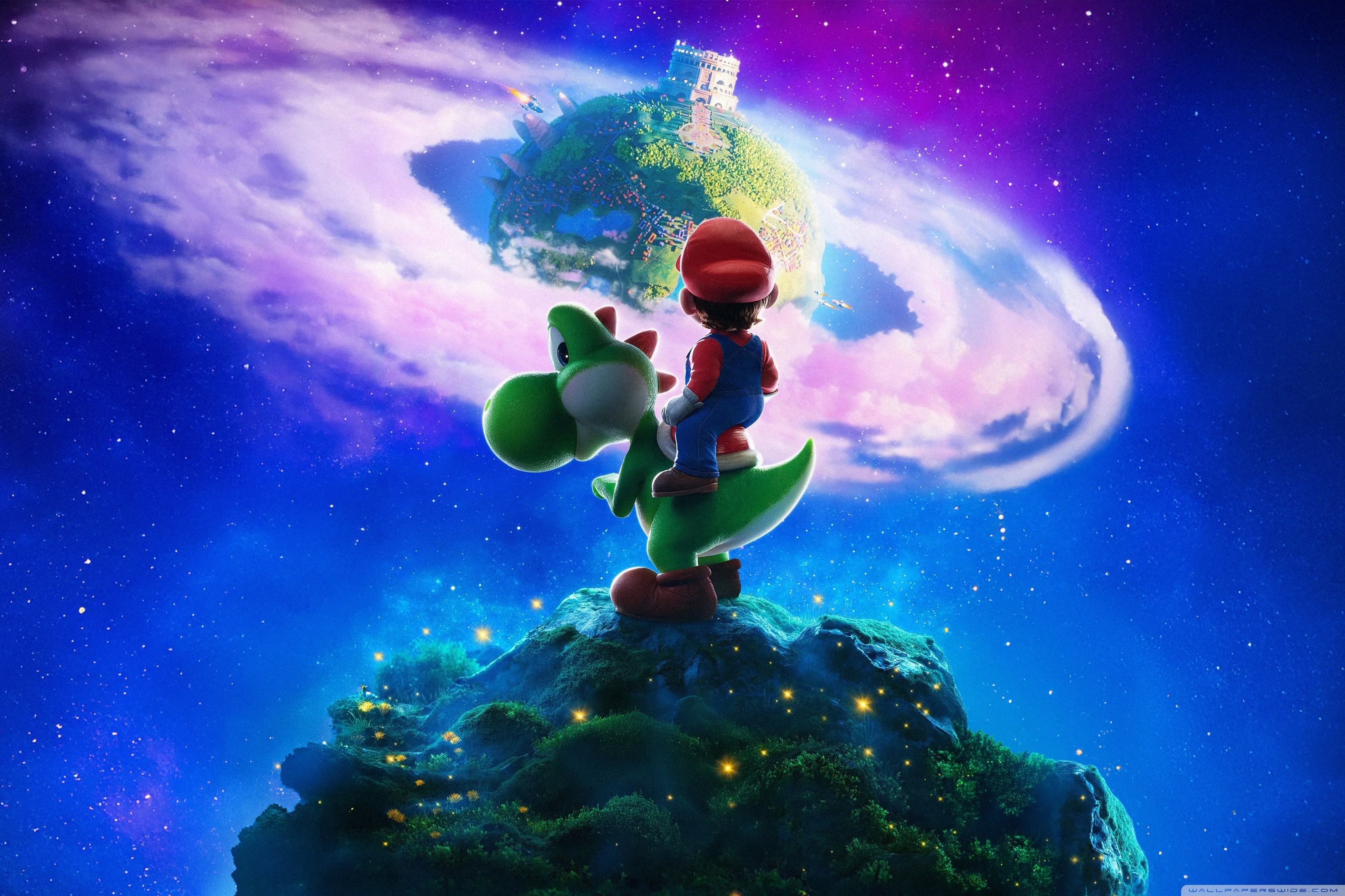 Download The Super Mario Galaxy Movie Yoshi and Mario 4K UHD Wallpaper