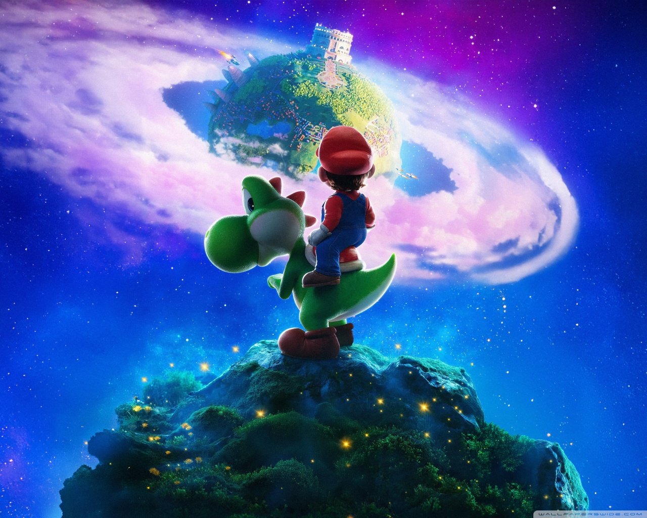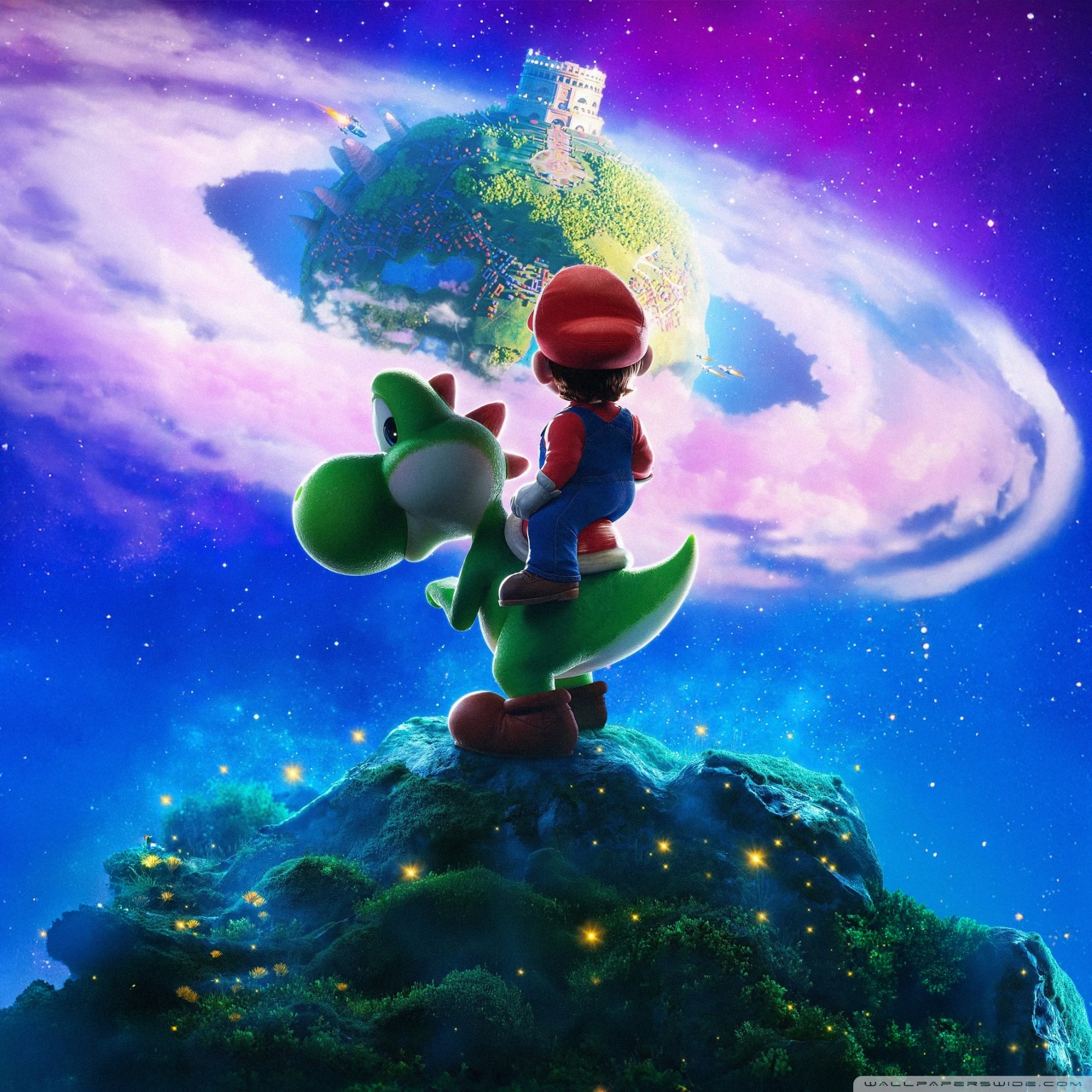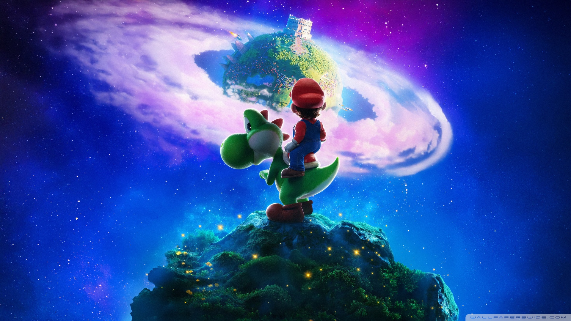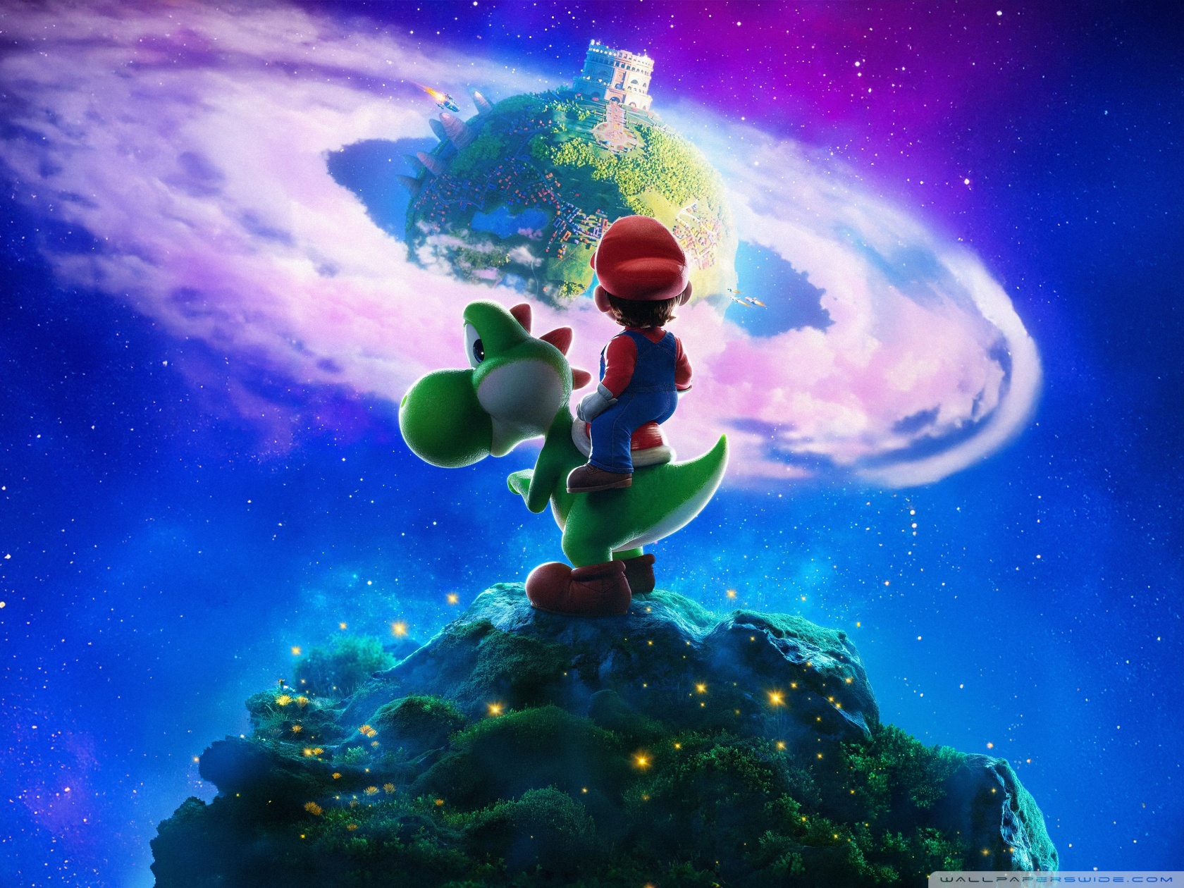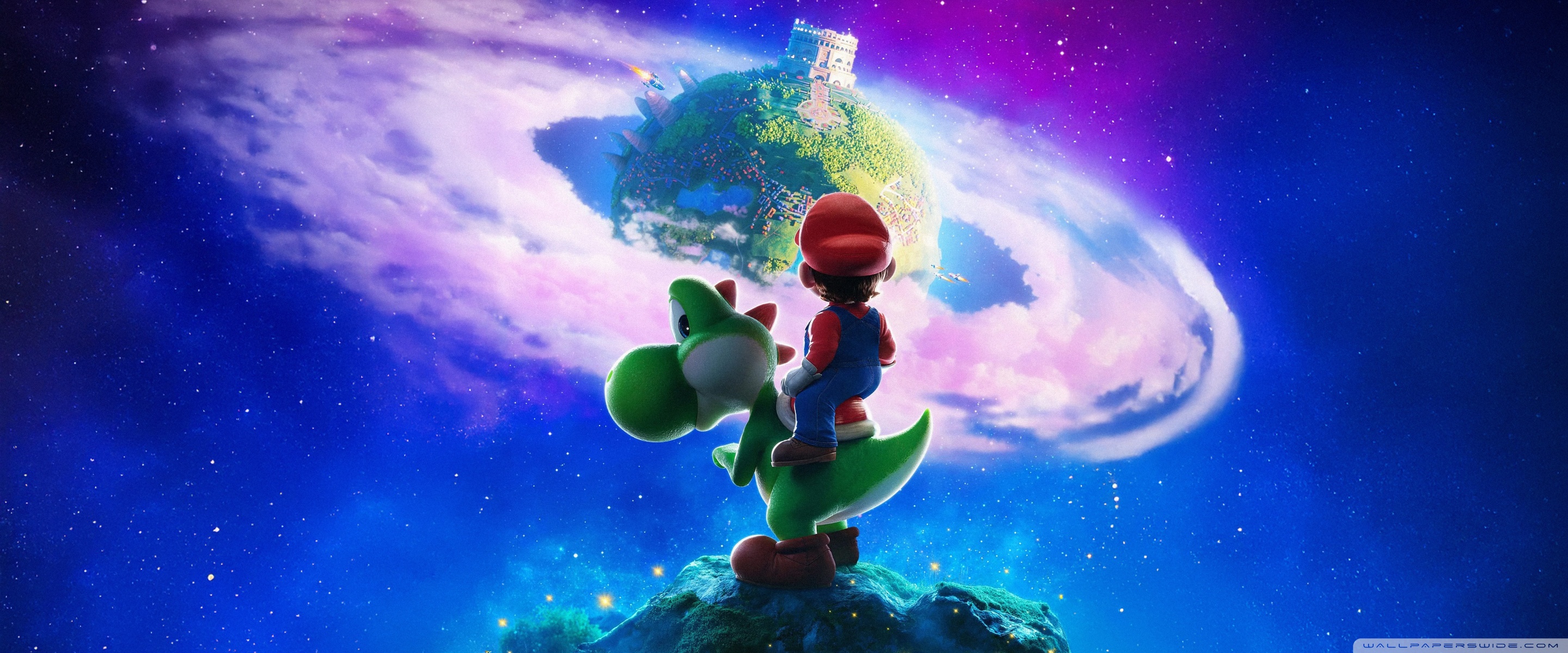 Download The Super Mario Galaxy Movie Yoshi and Mario 4K UHD Wallpaper