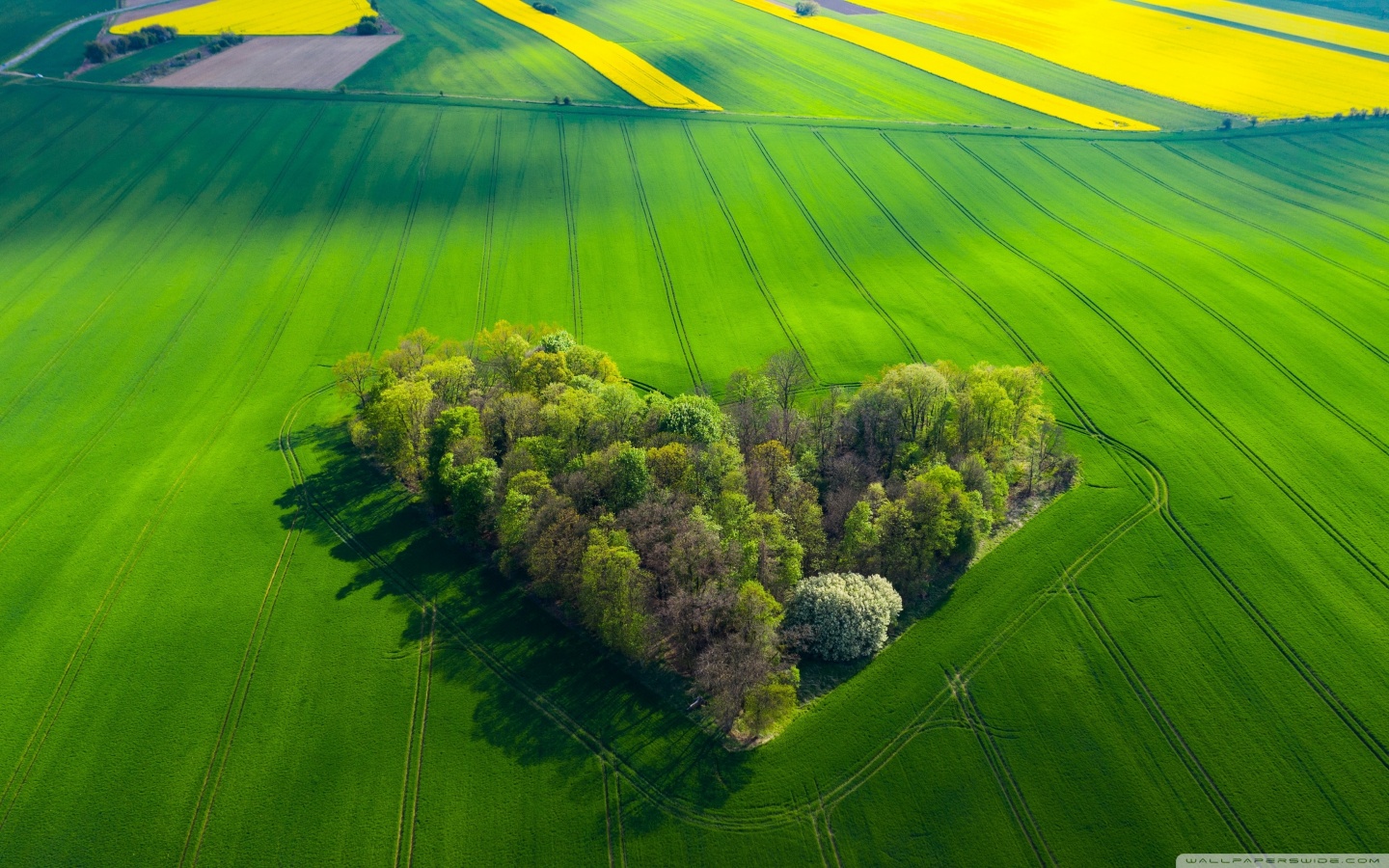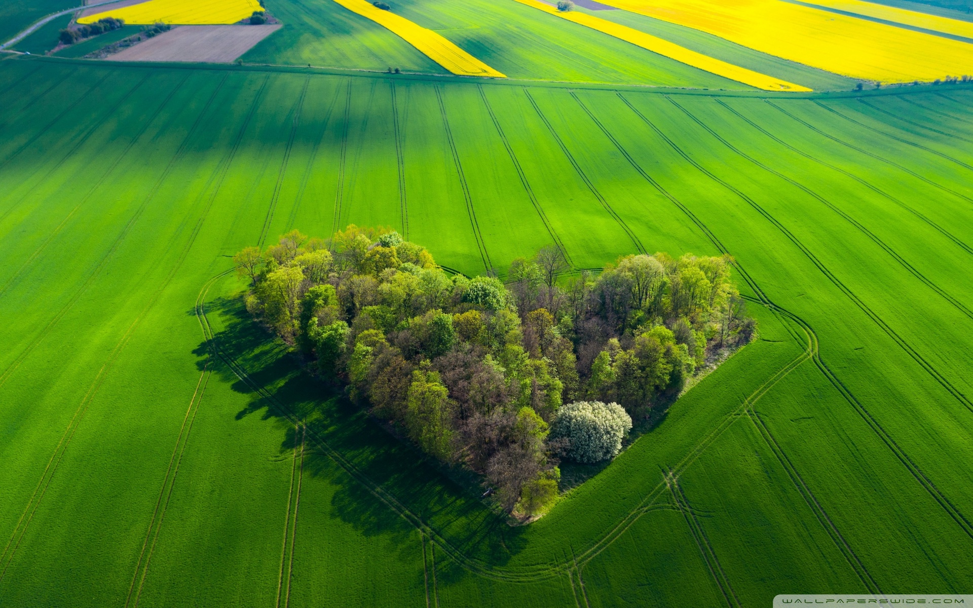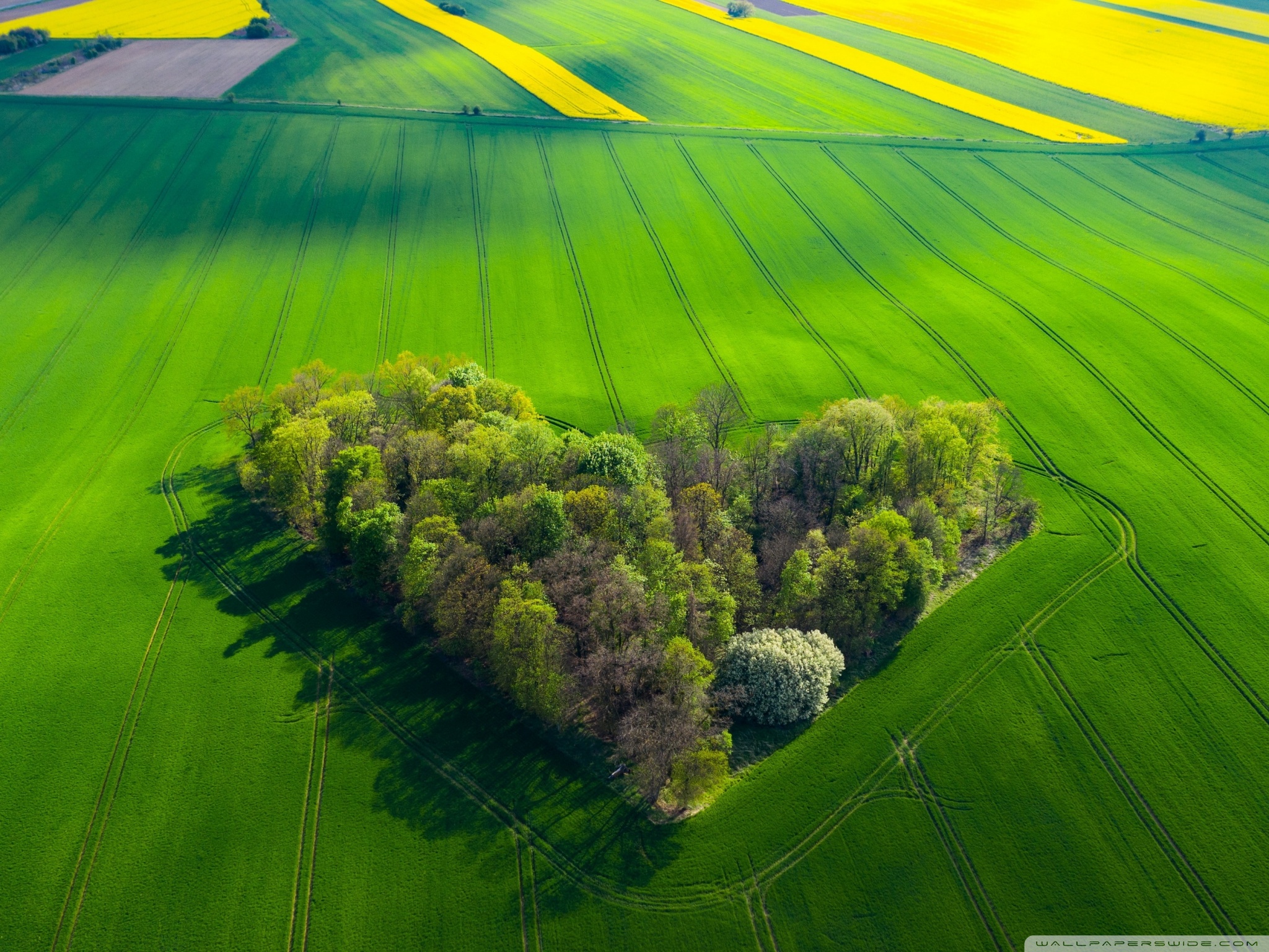 Download Tiny Forest, Love, Green Field, Aerial View 4K UHD Wallpaper
