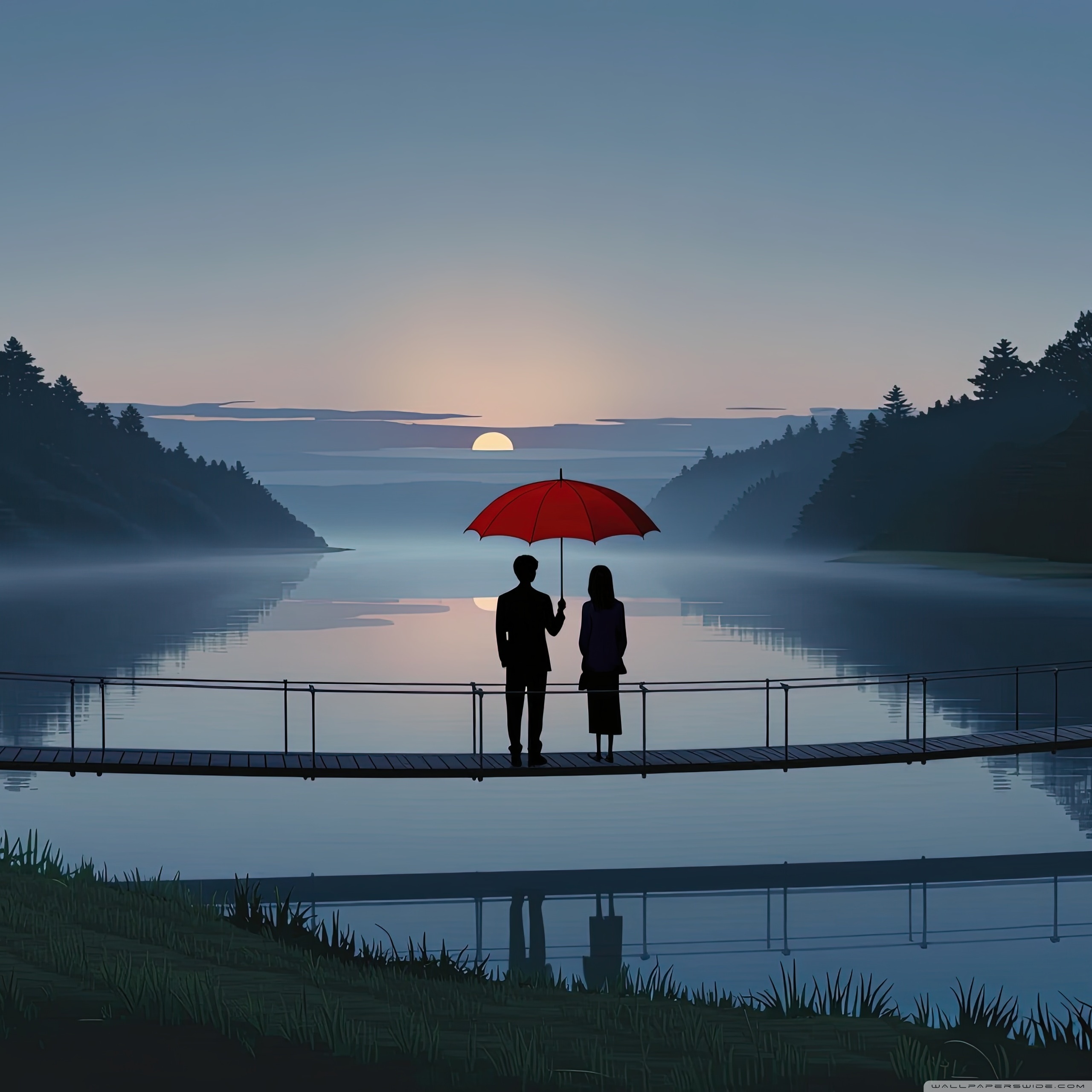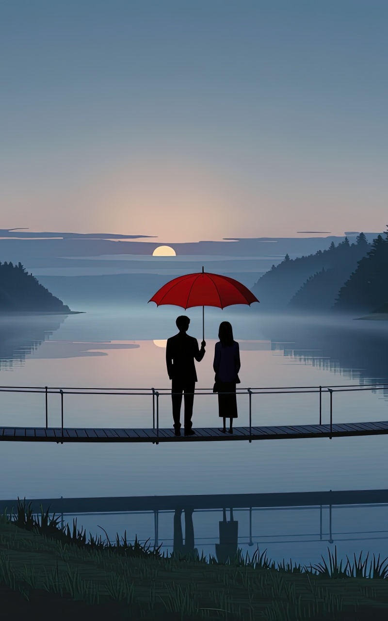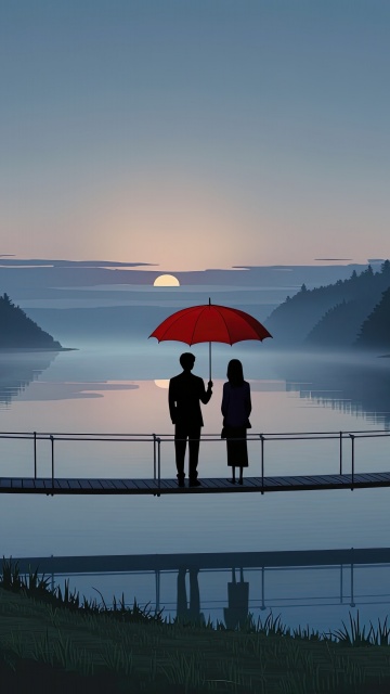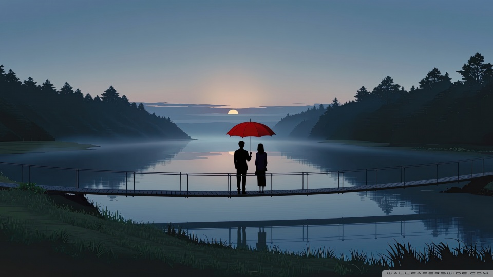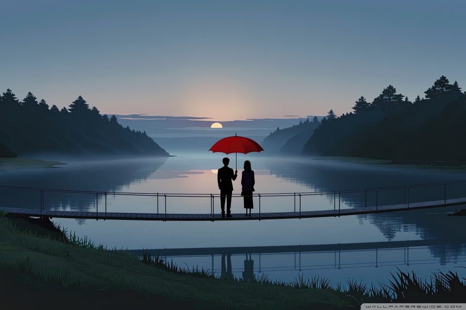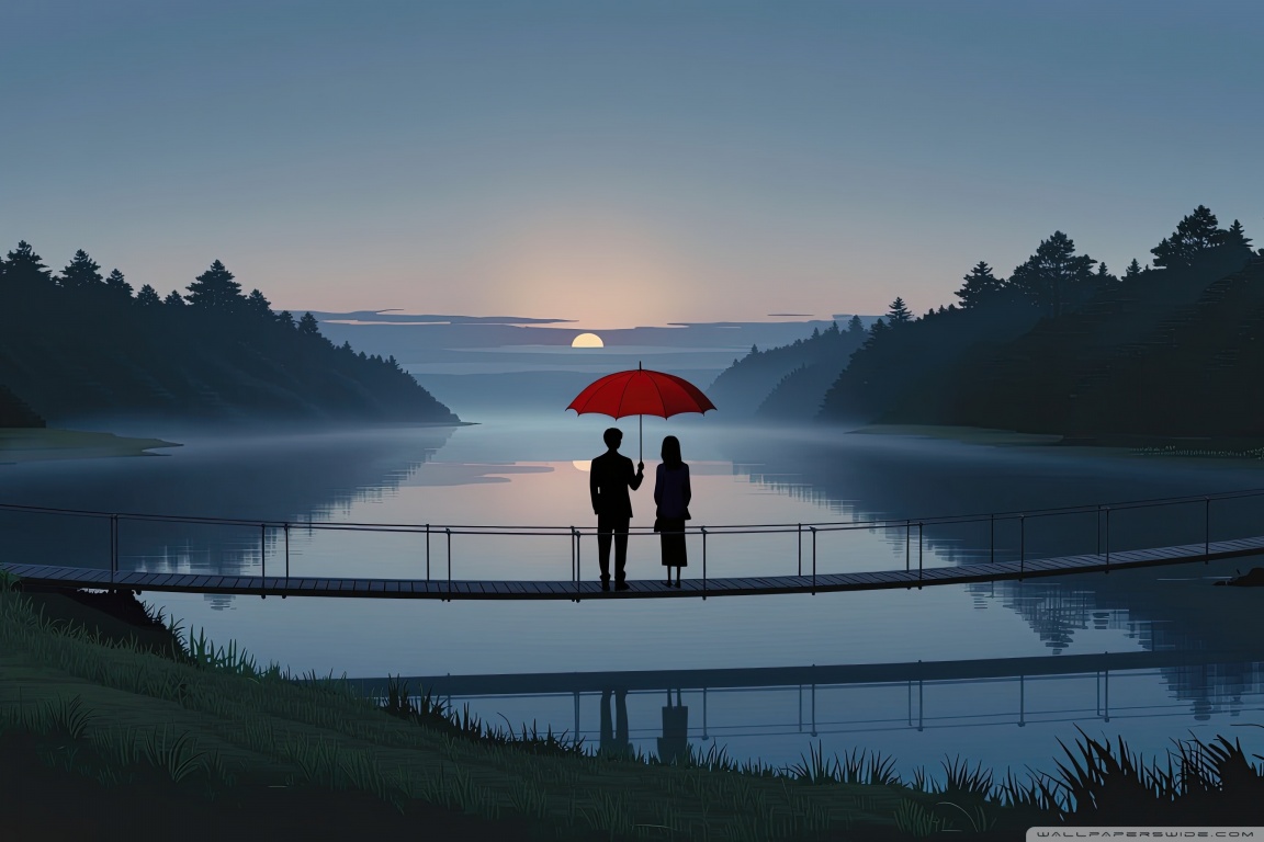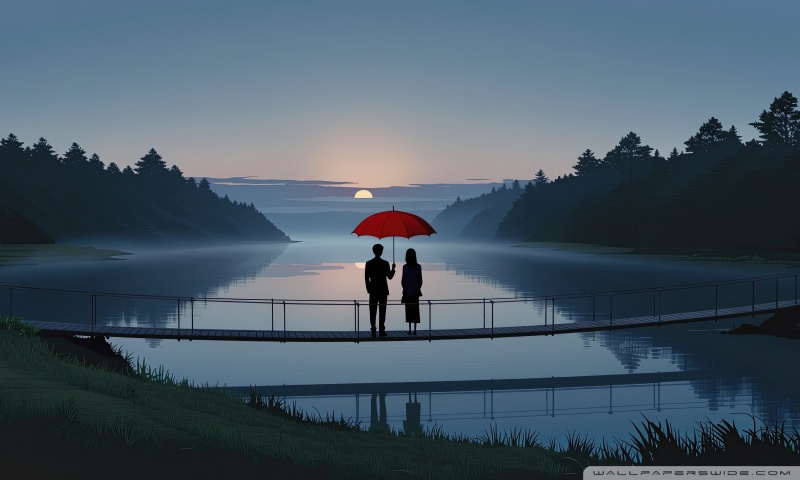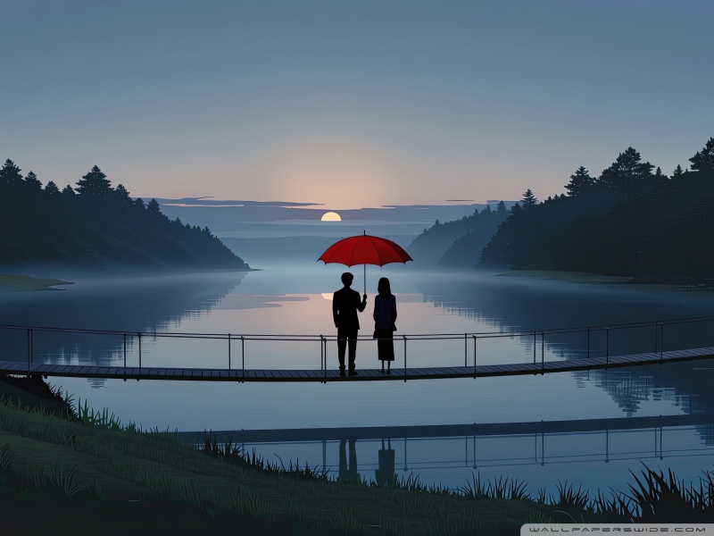 Download Together Beneath the Red Umbrella 4K UHD Wallpaper
