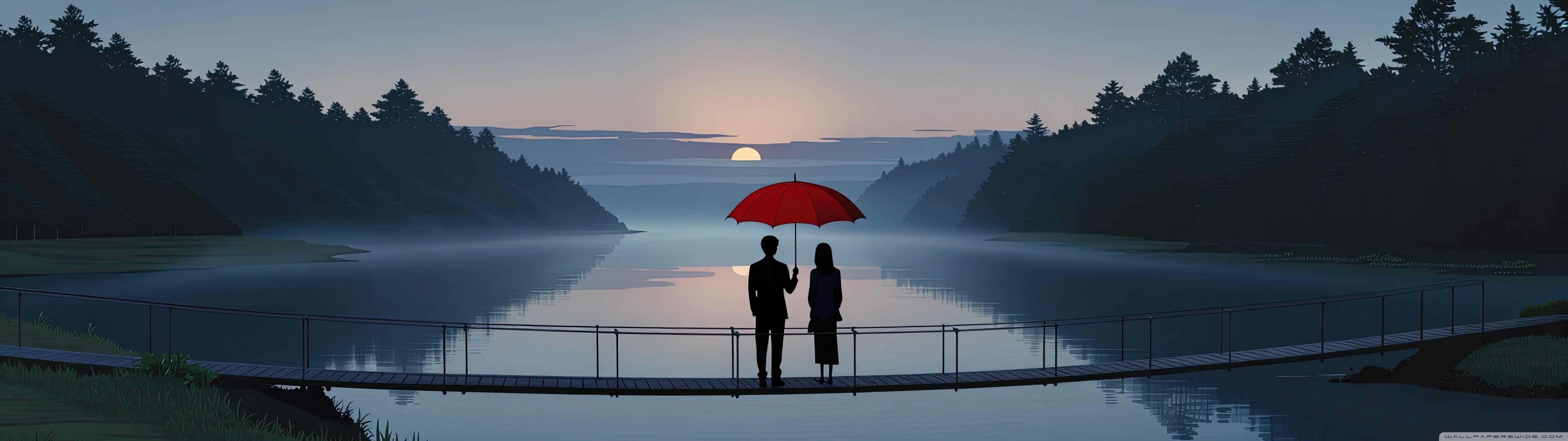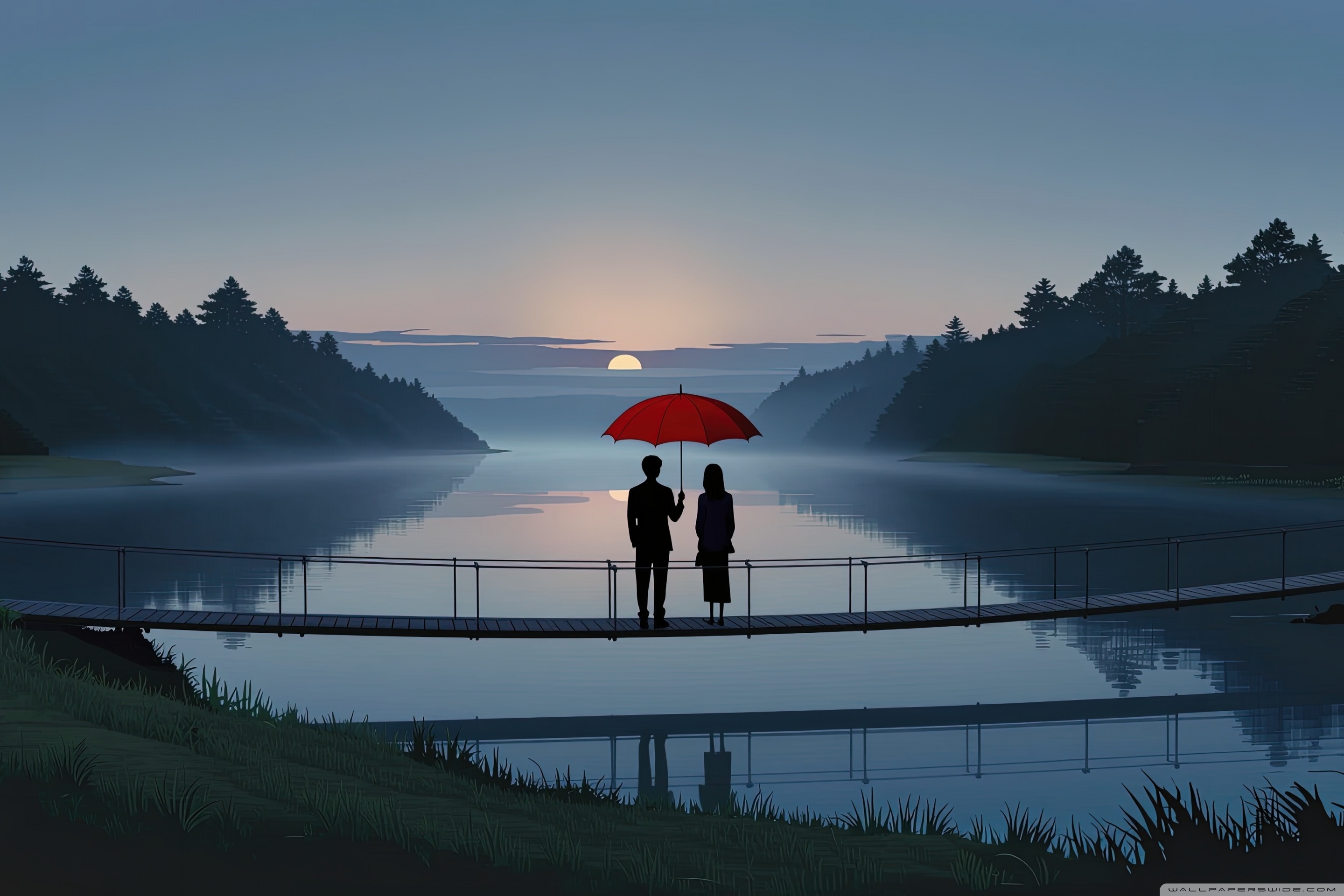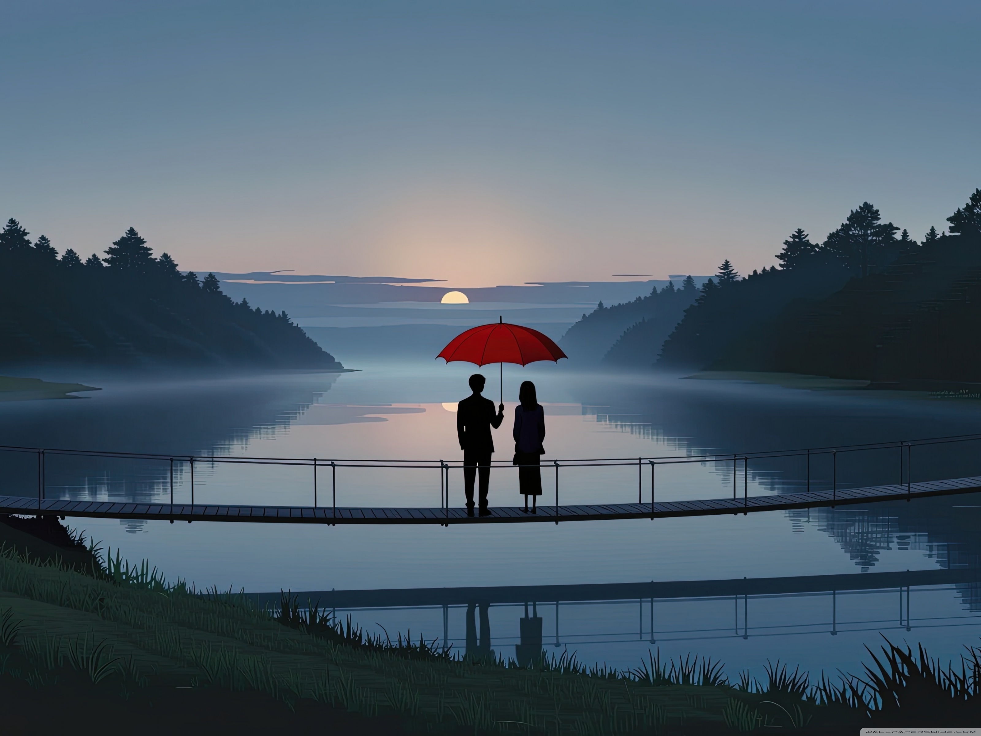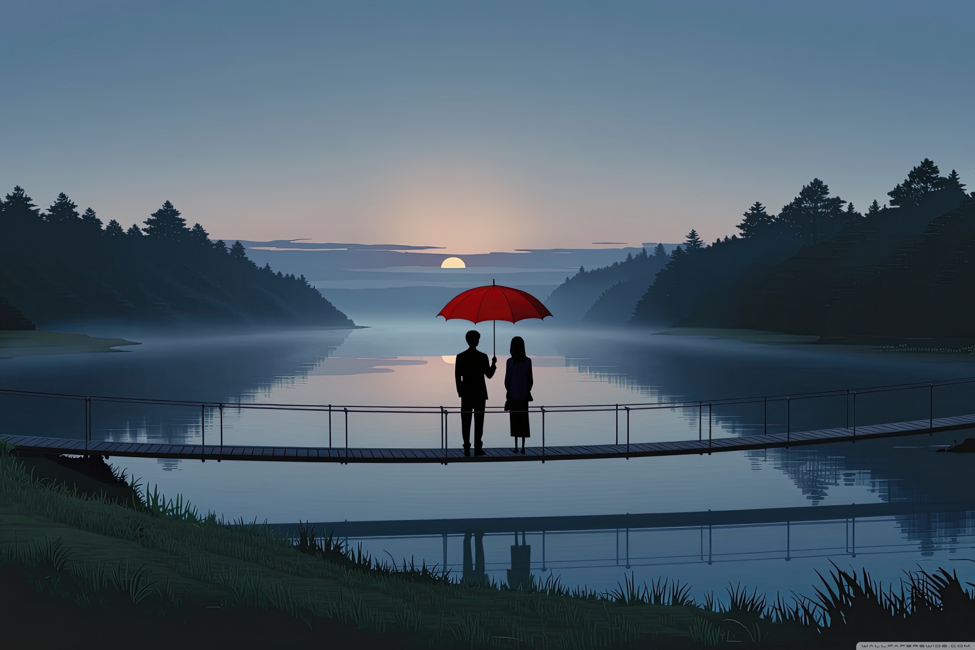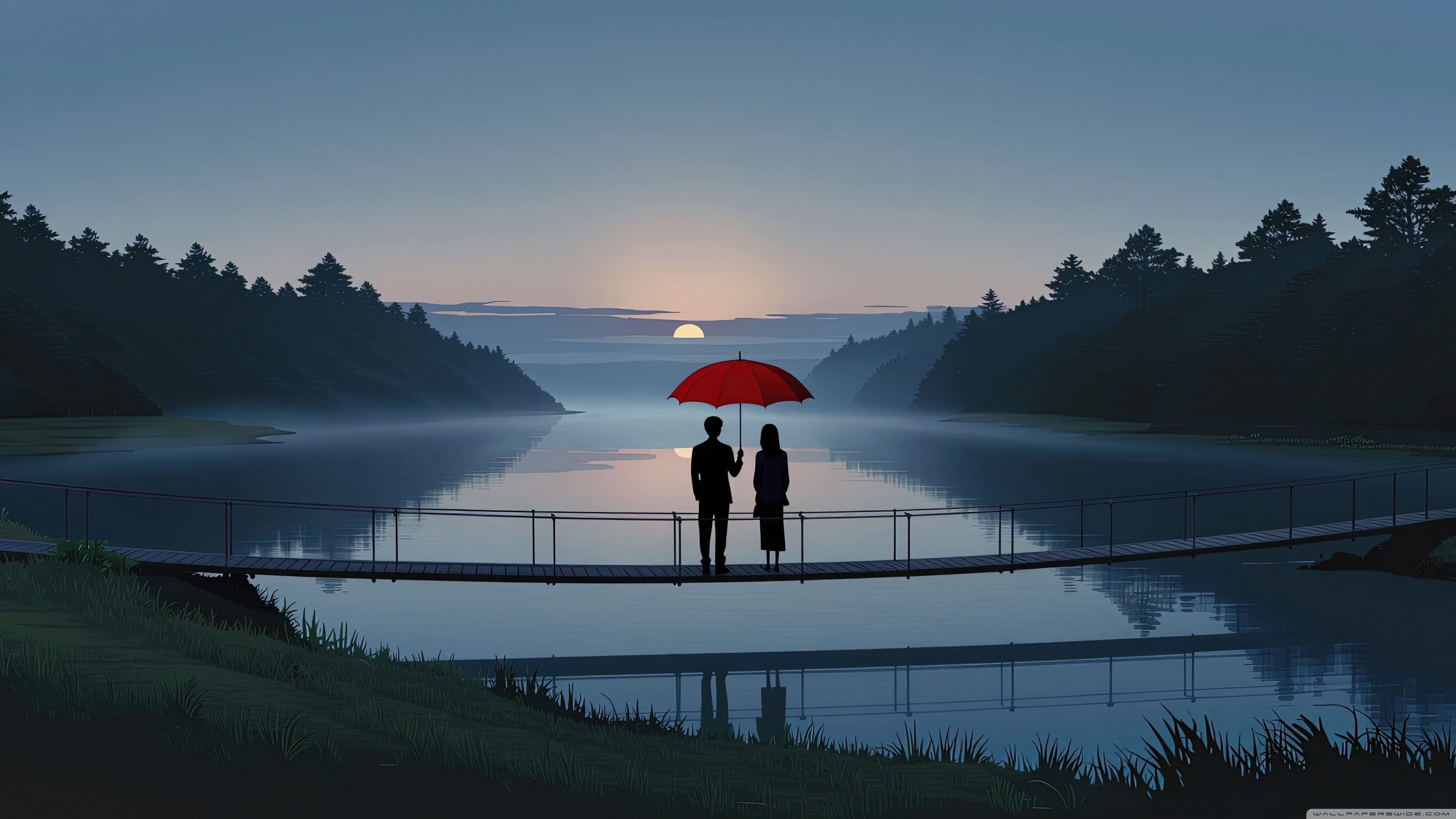 Download Together Beneath the Red Umbrella 4K UHD Wallpaper