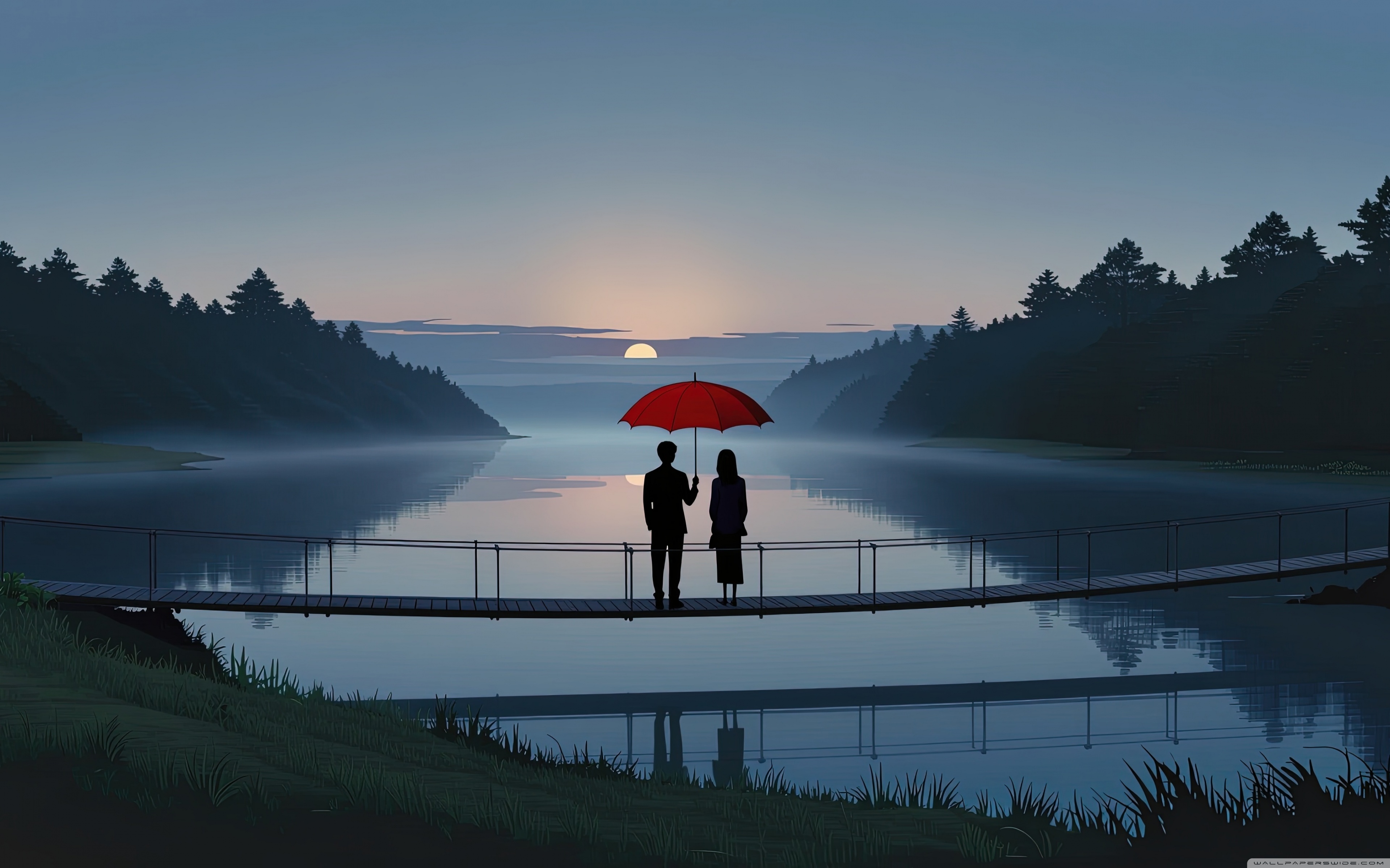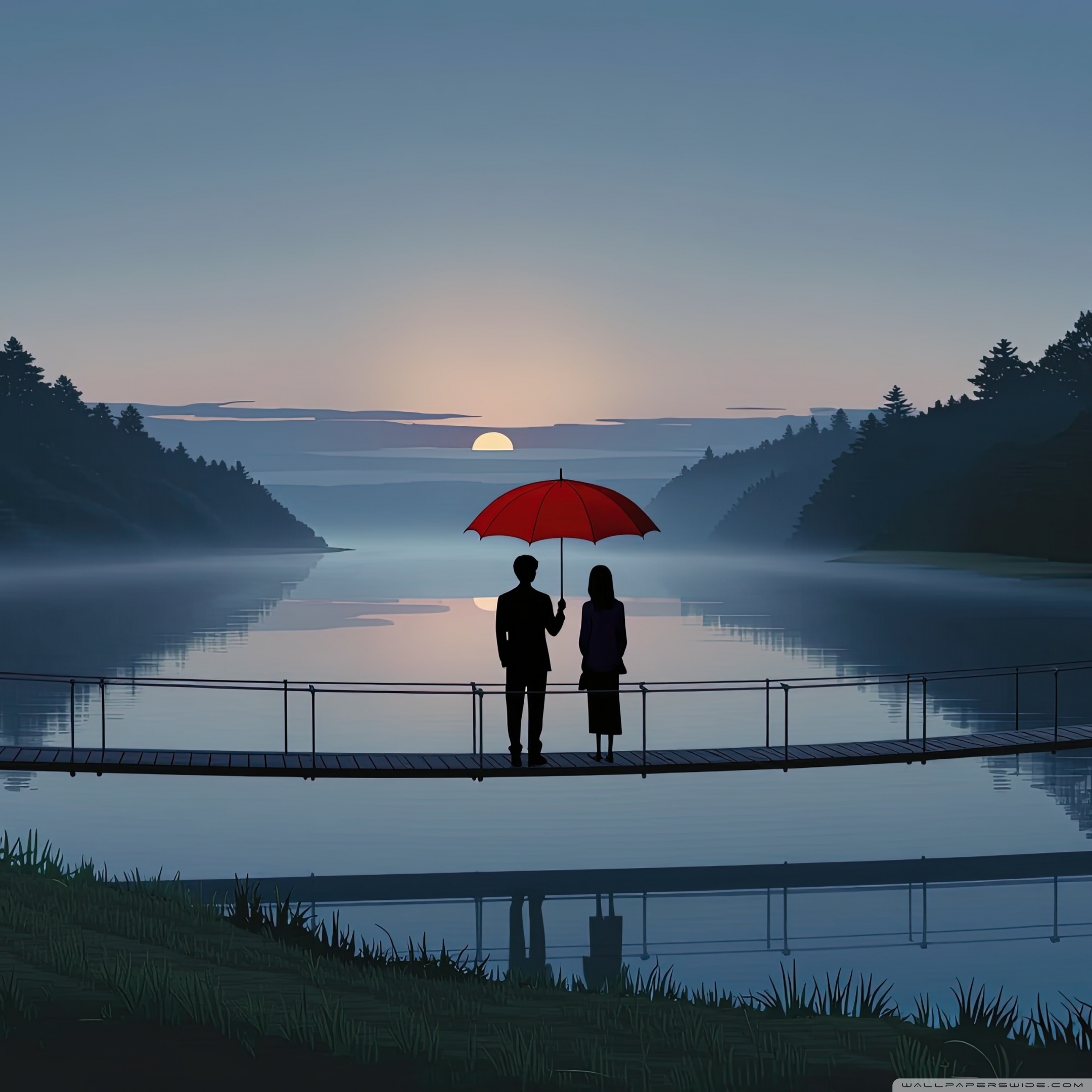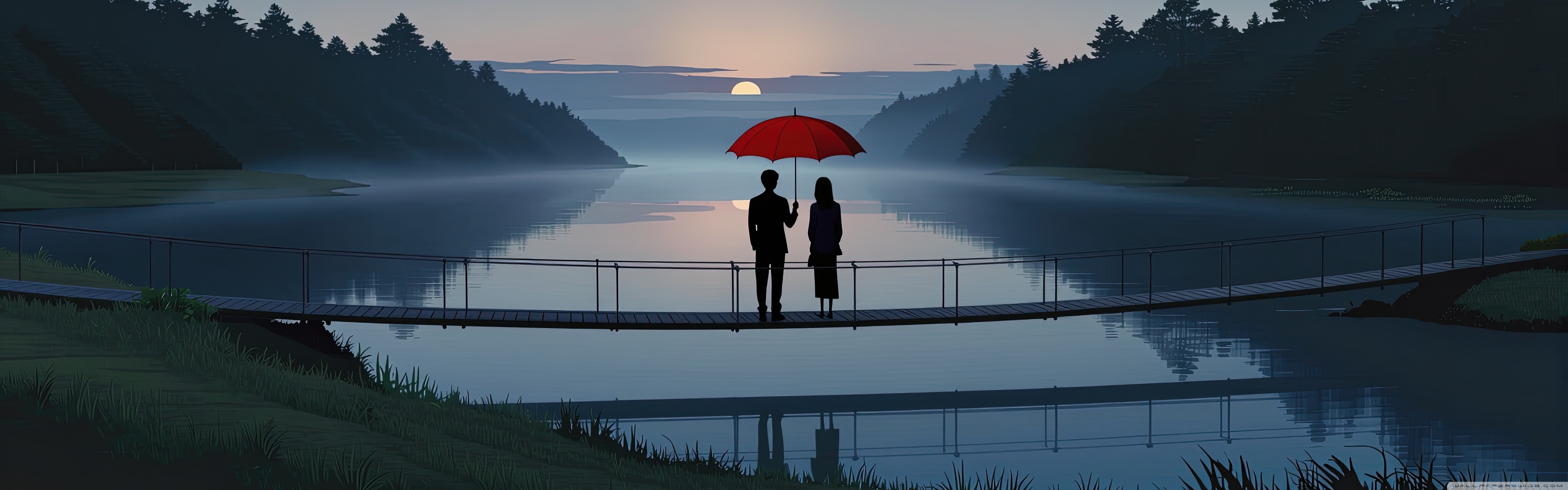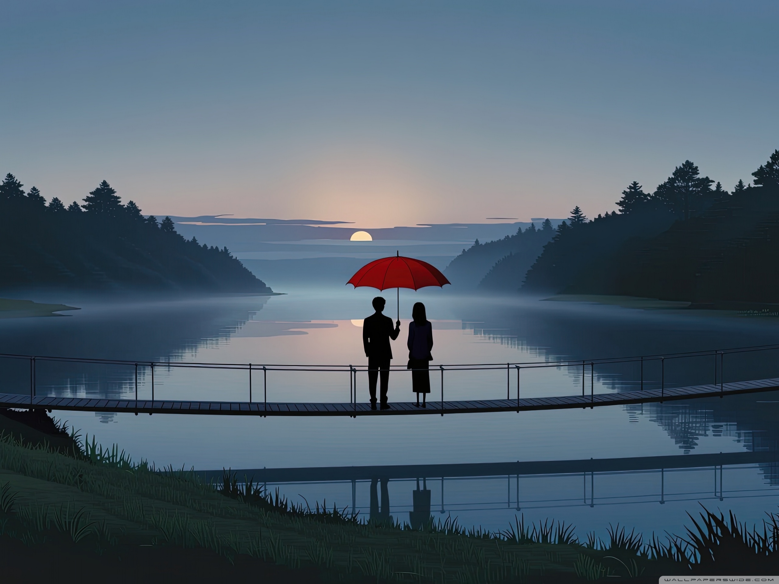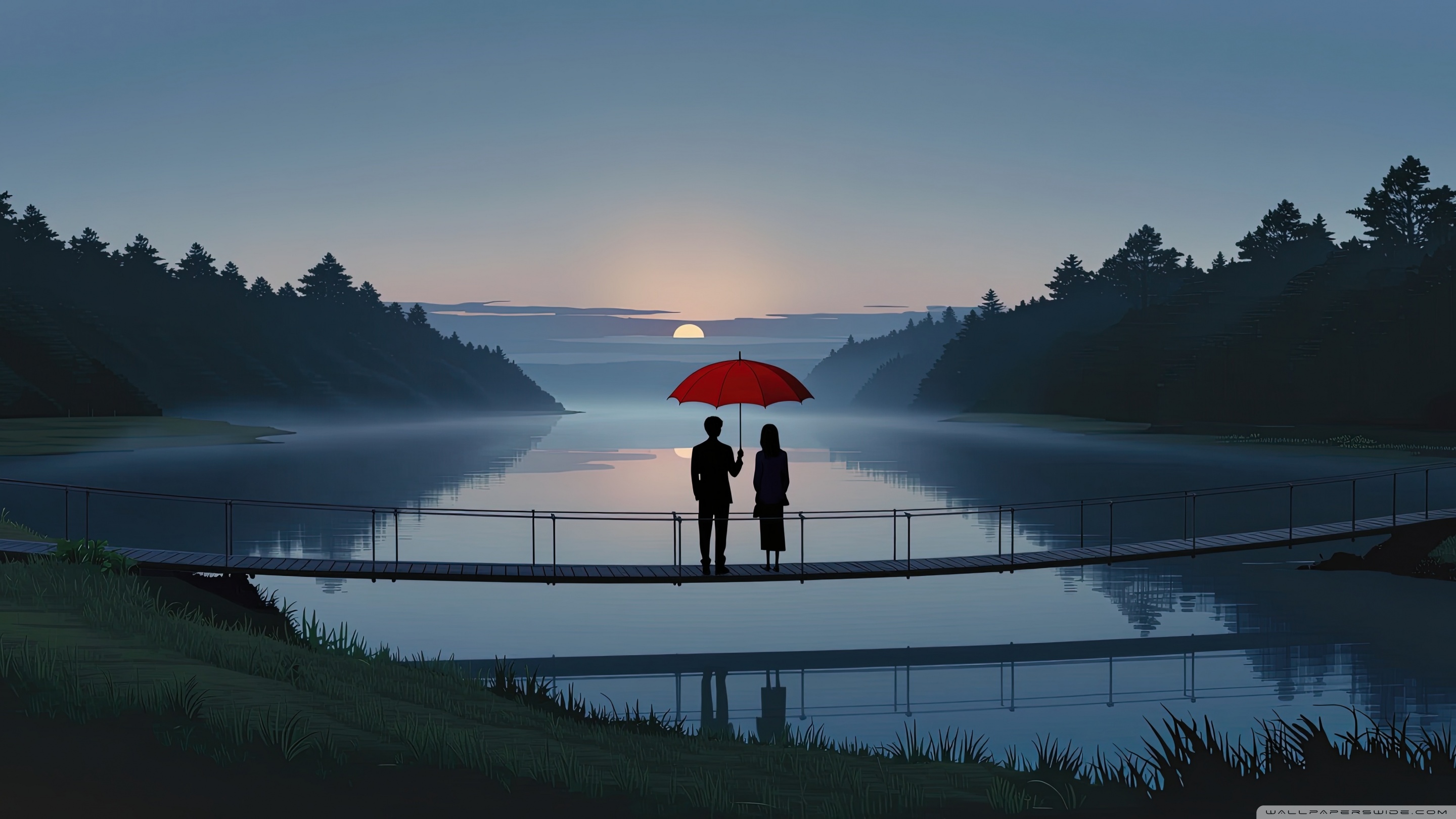 Download Together Beneath the Red Umbrella 4K UHD Wallpaper