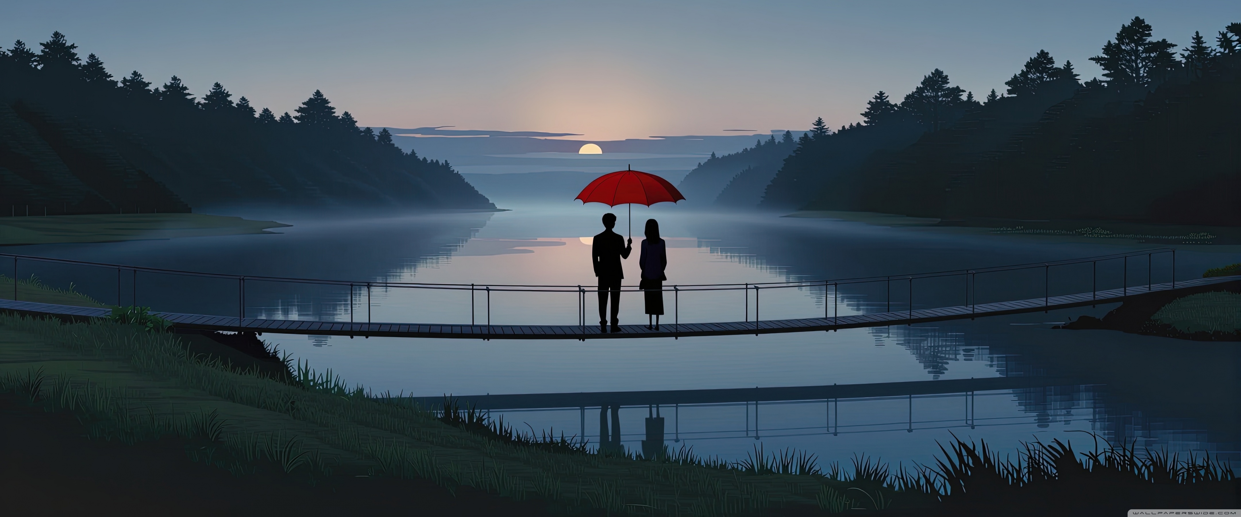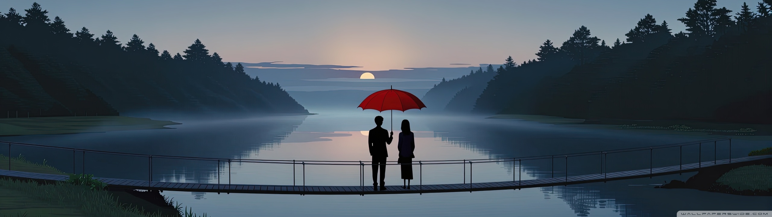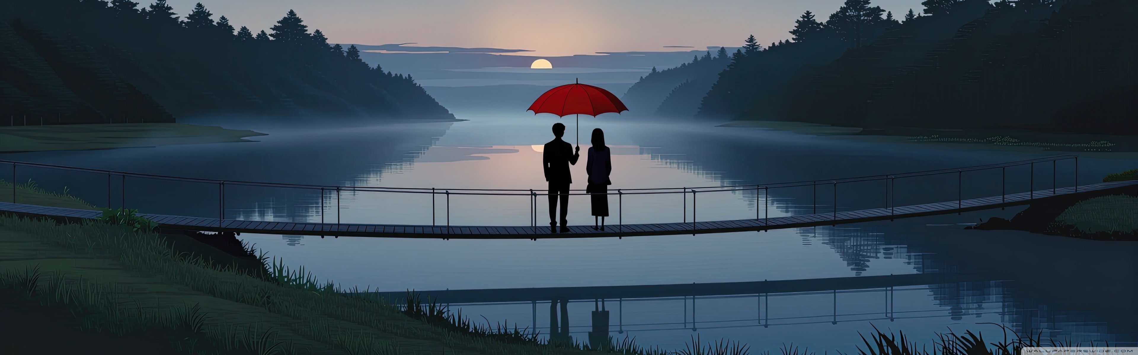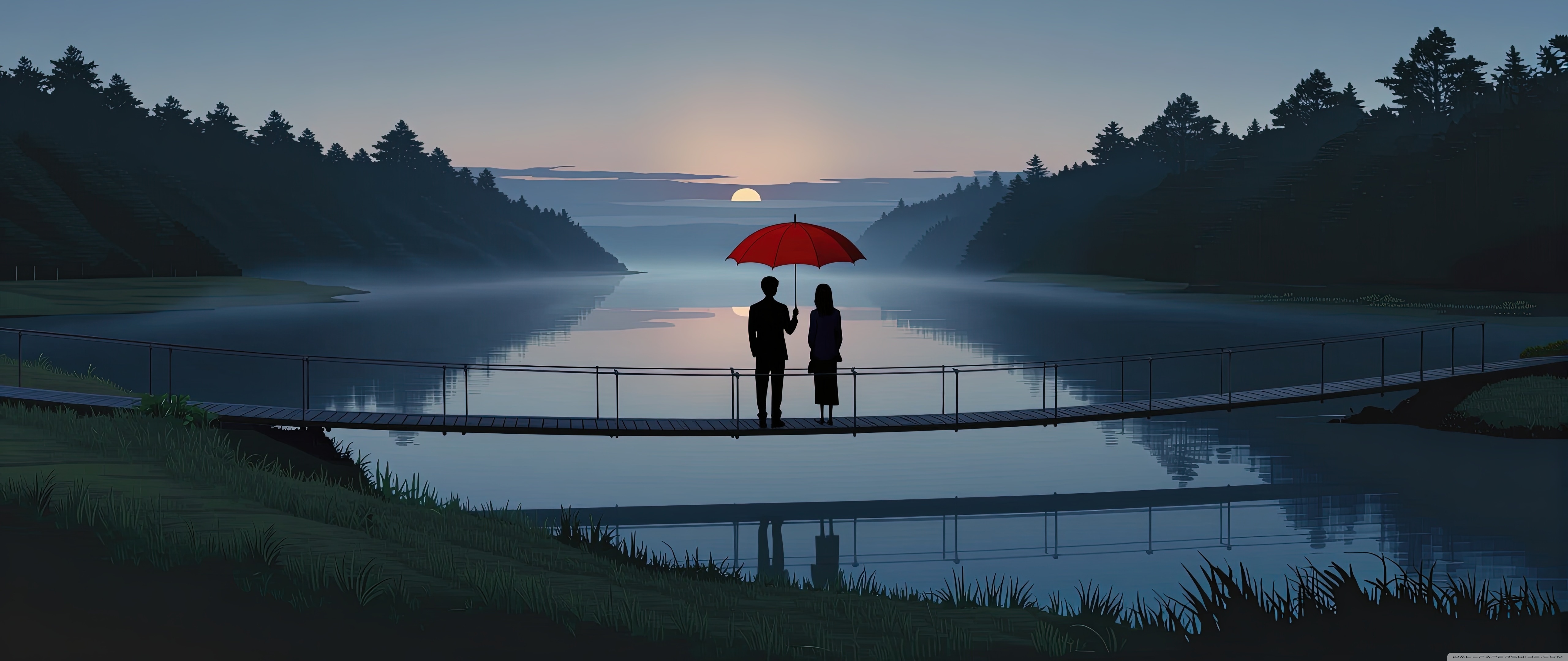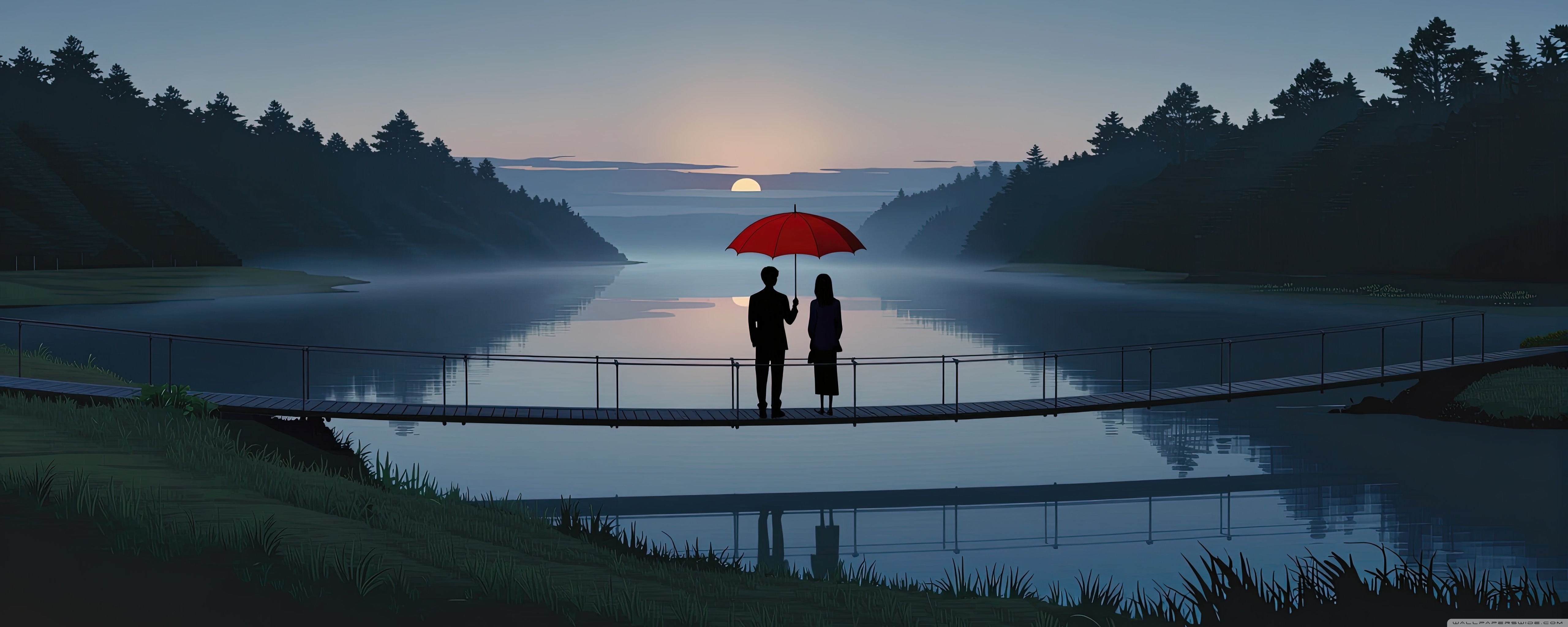 Download Together Beneath the Red Umbrella 4K UHD Wallpaper