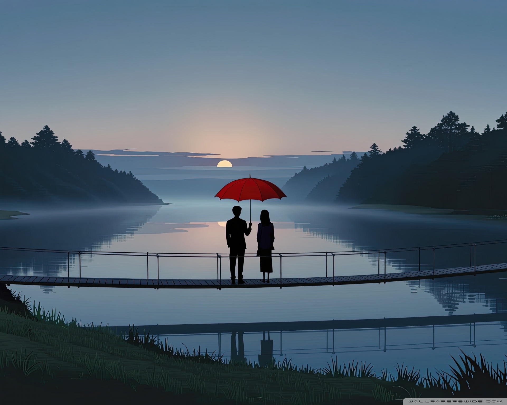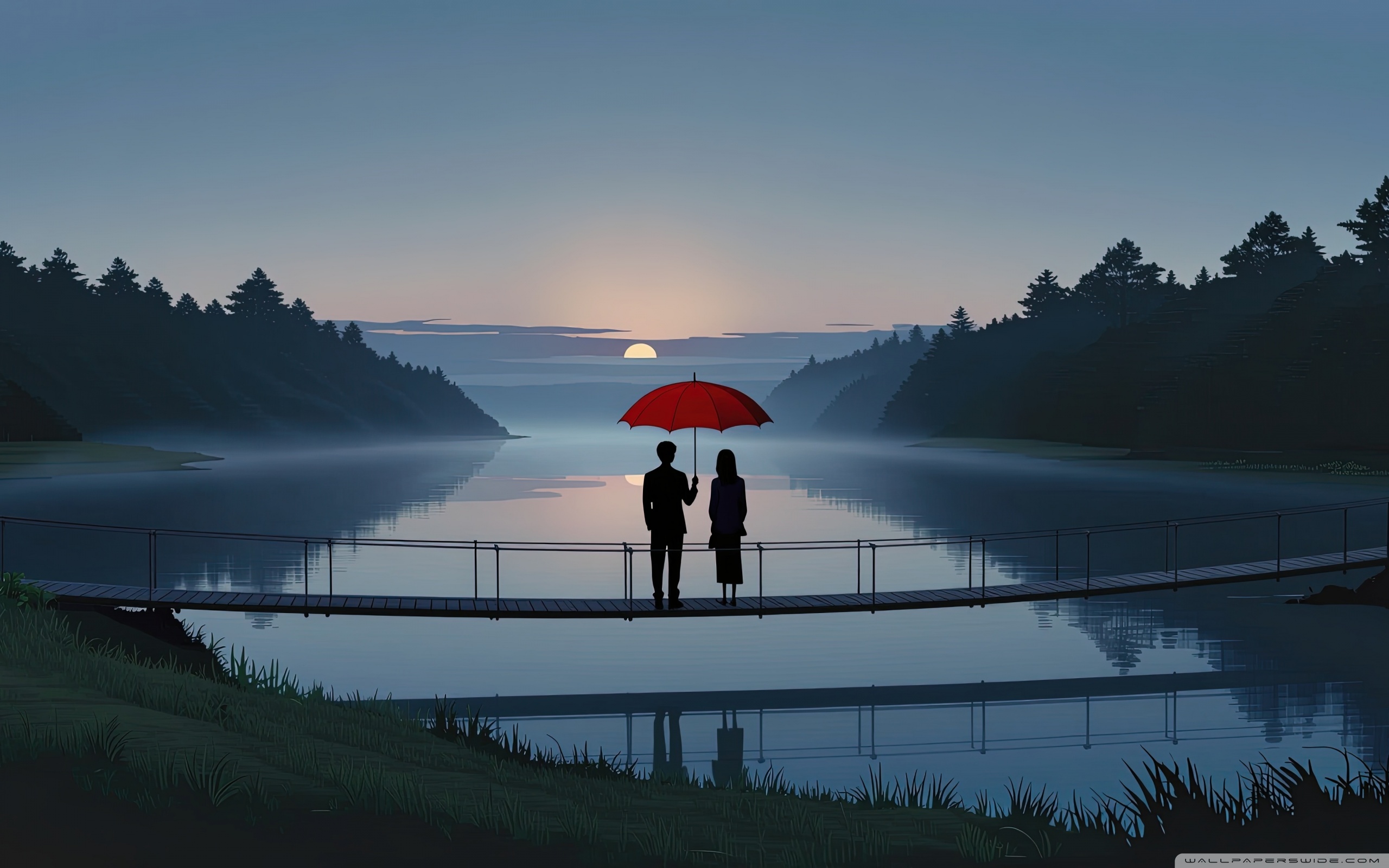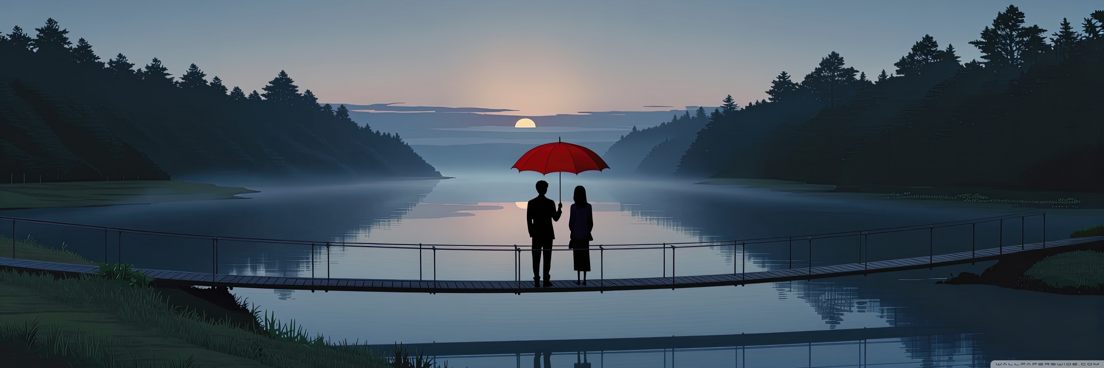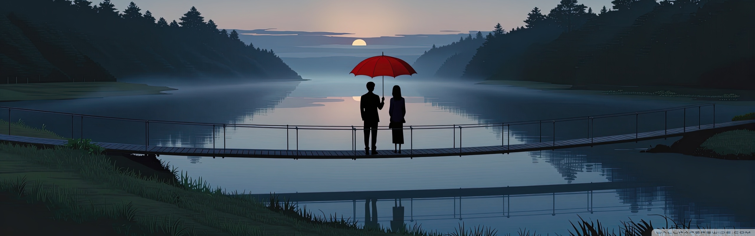Download Together Beneath the Red Umbrella 4K UHD Wallpaper