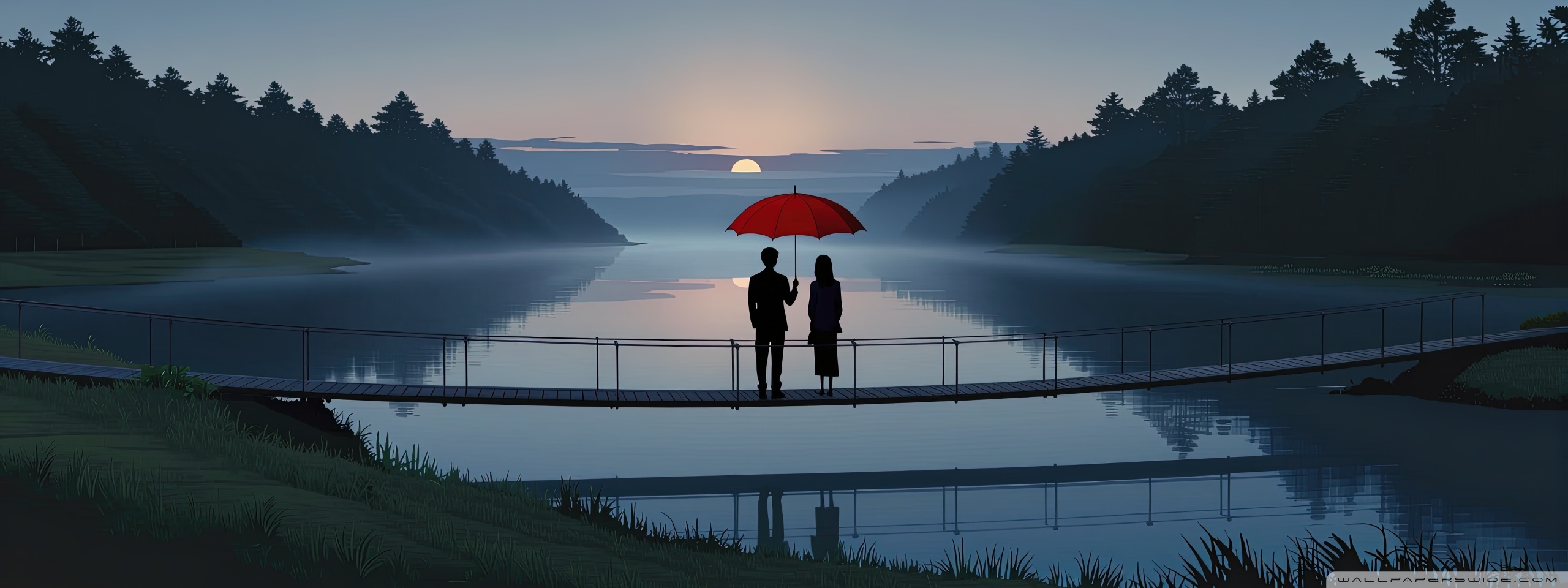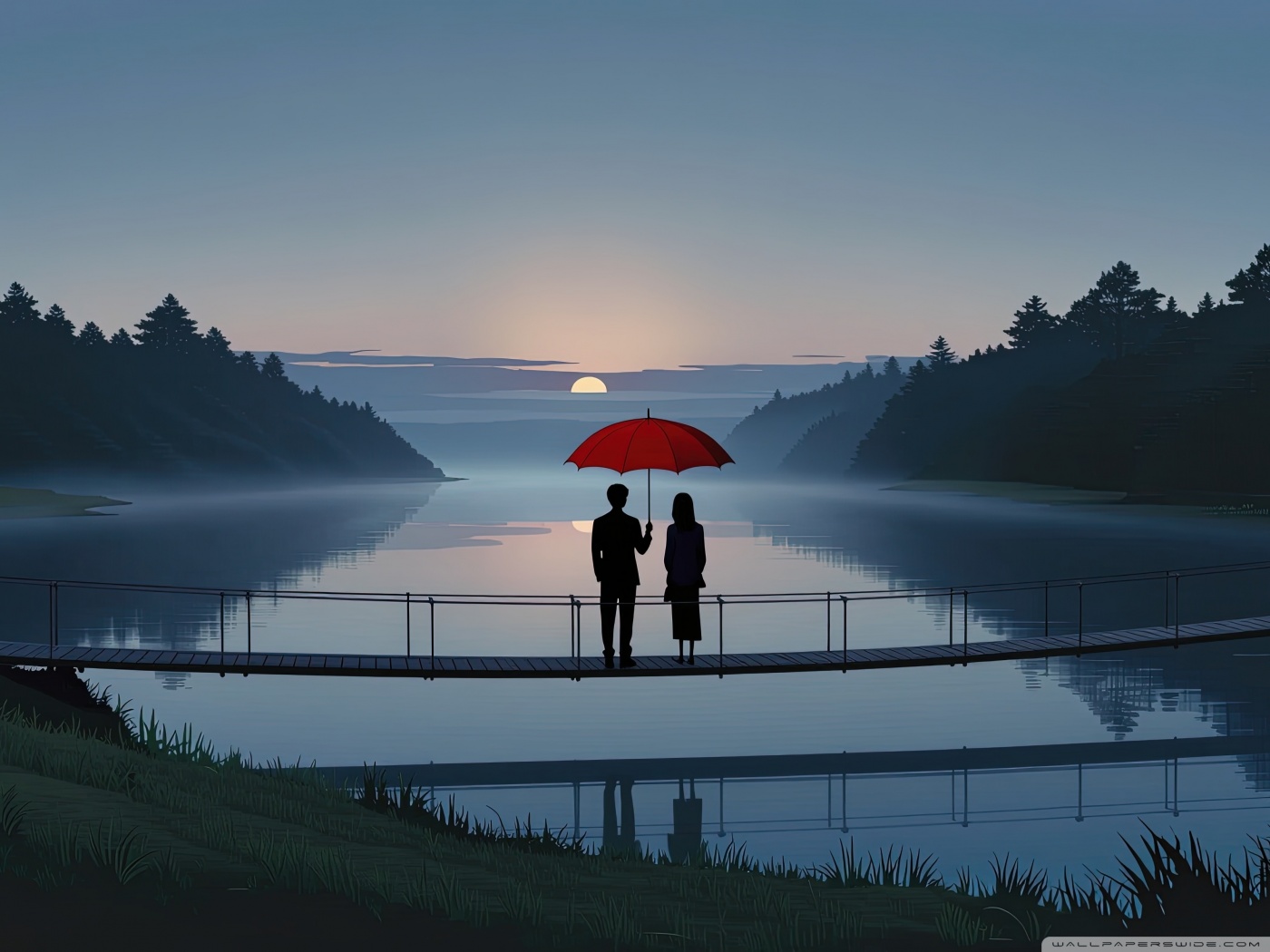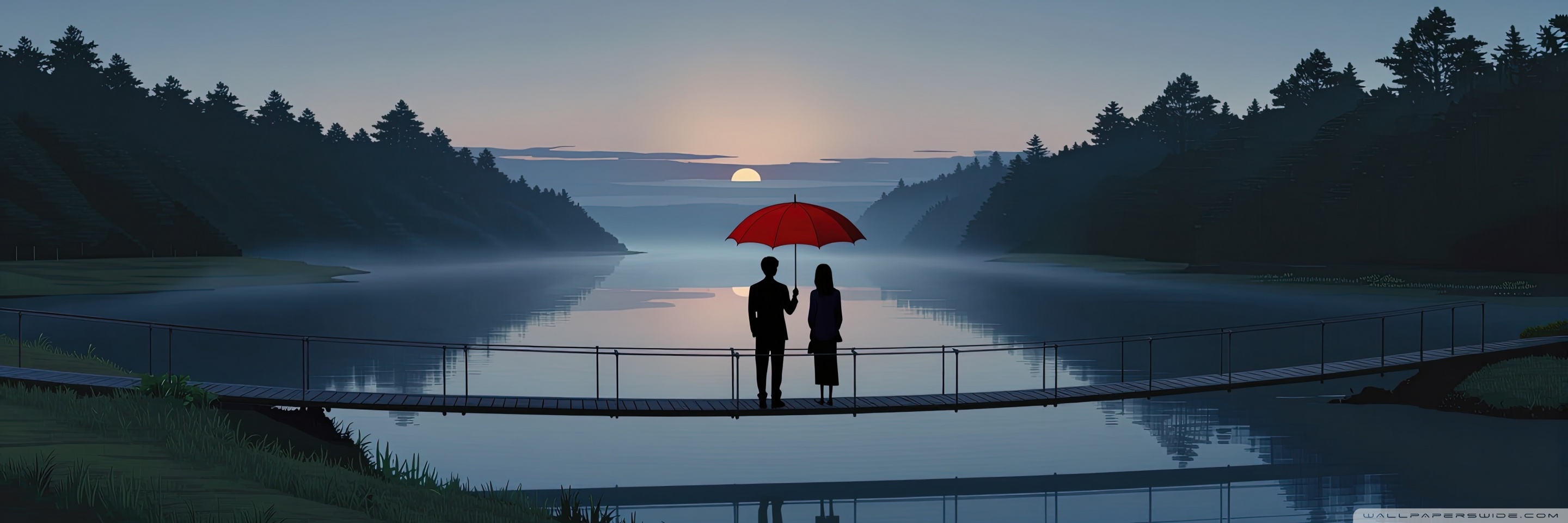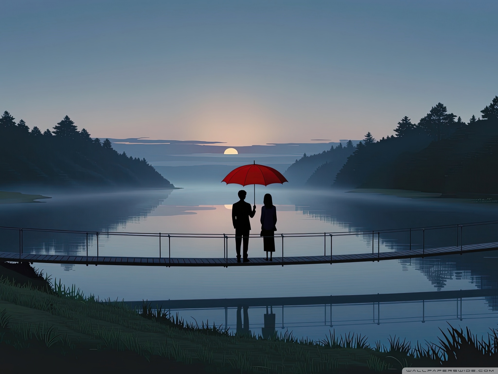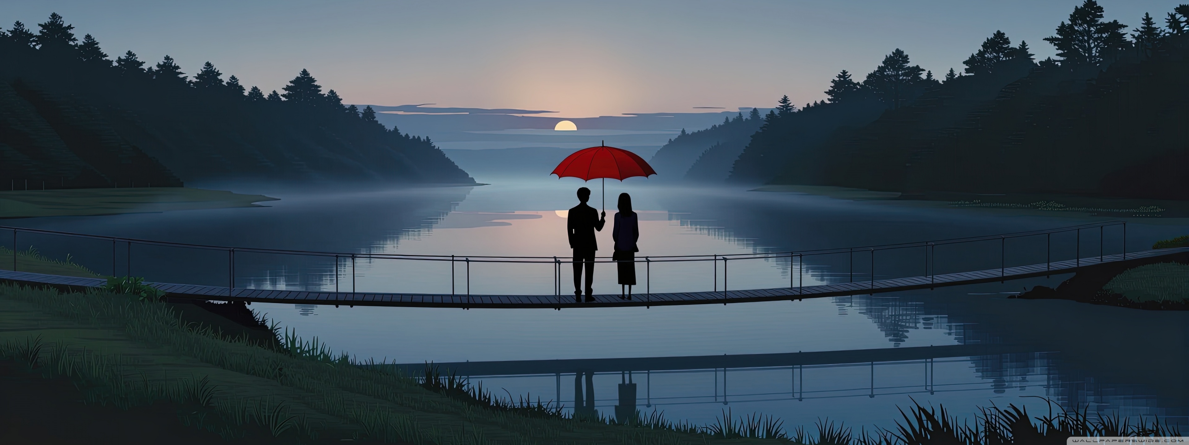 Download Together Beneath the Red Umbrella 4K UHD Wallpaper