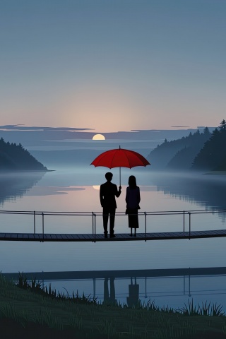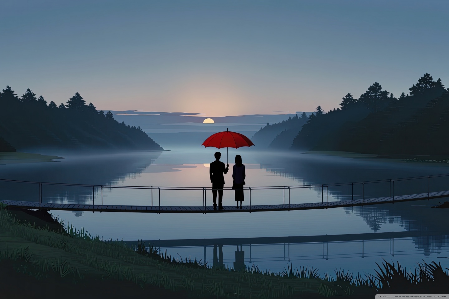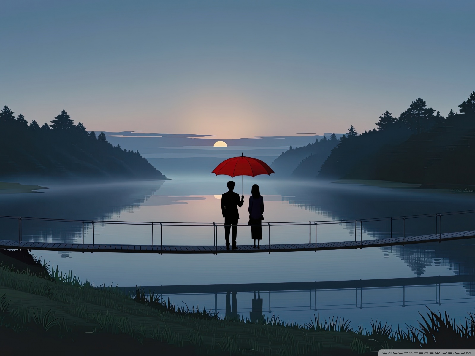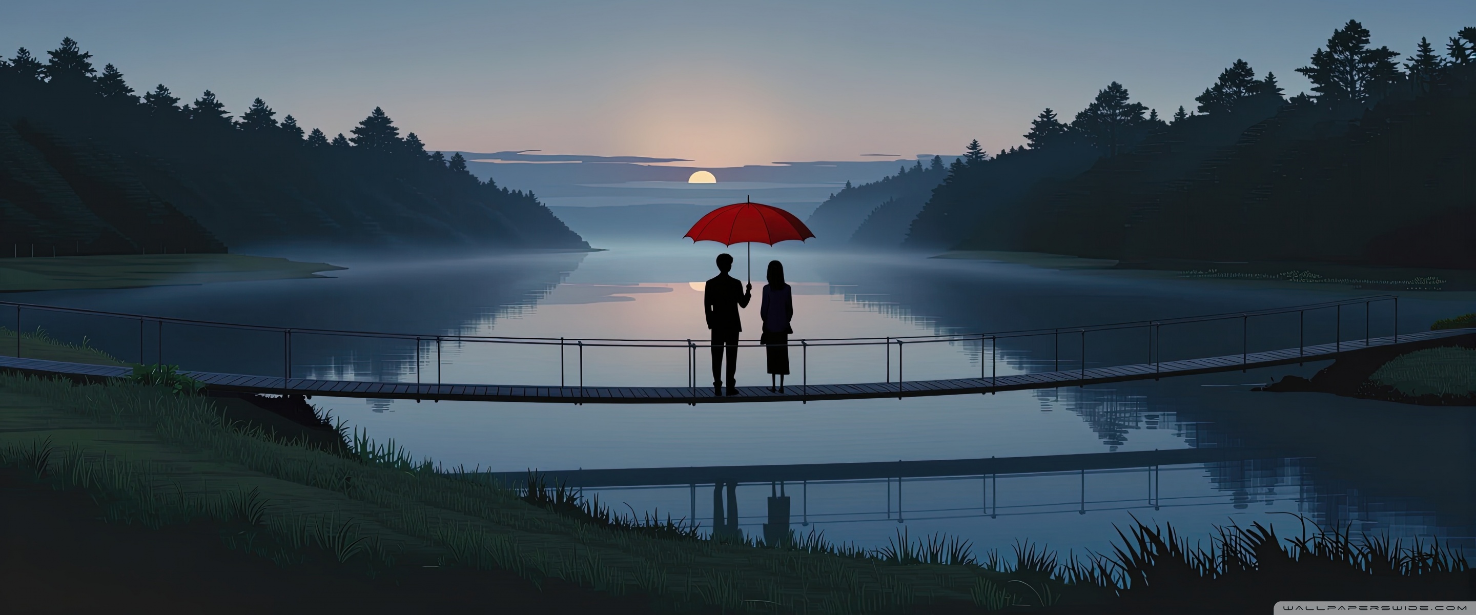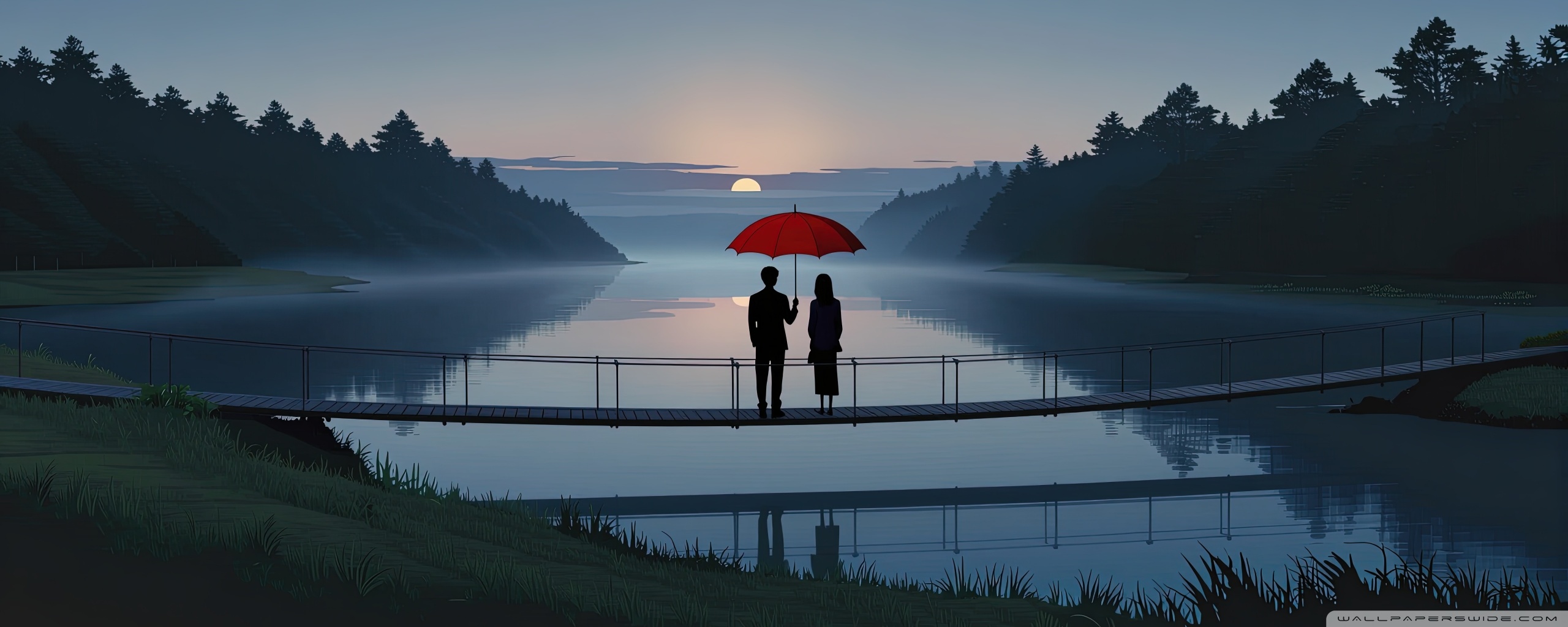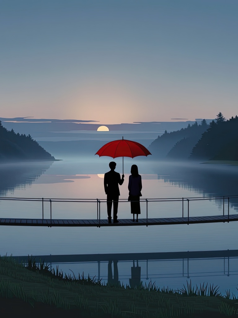 Download Together Beneath the Red Umbrella 4K UHD Wallpaper
