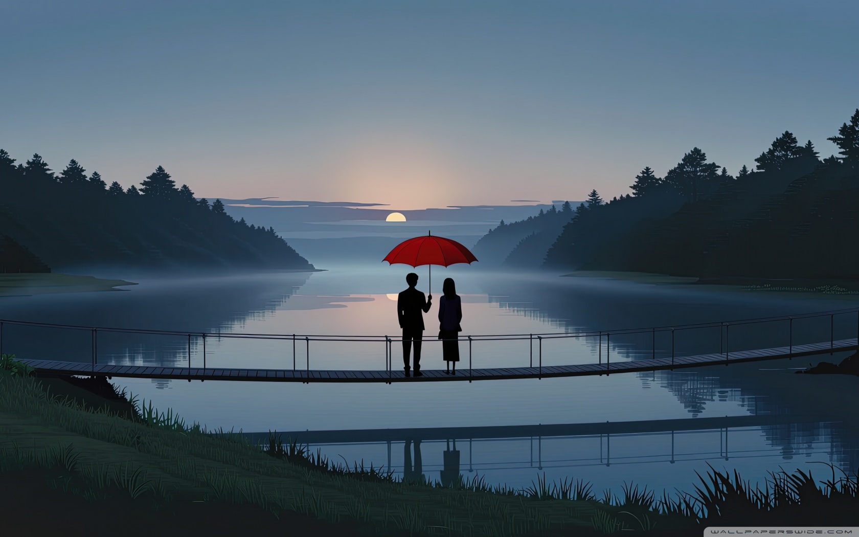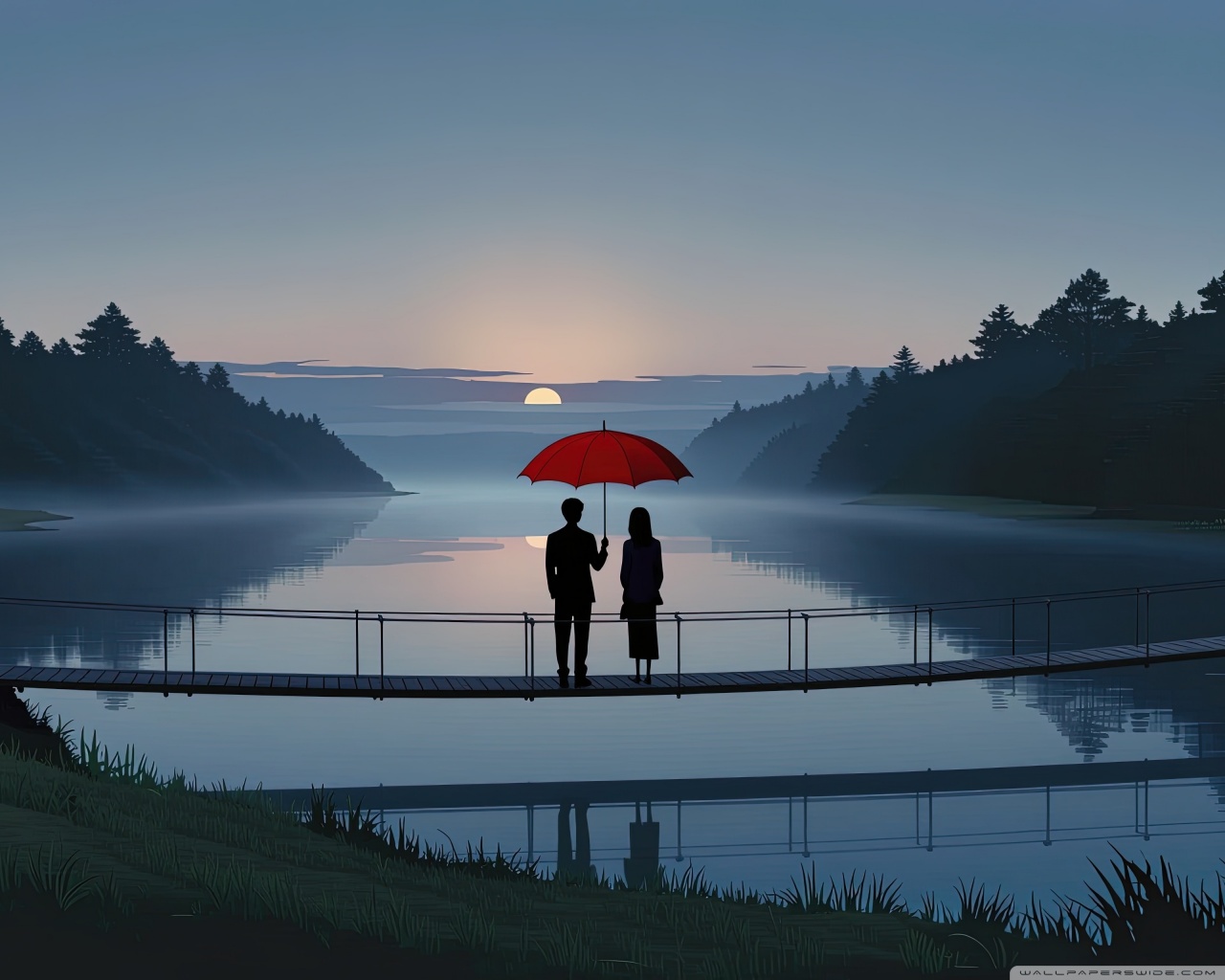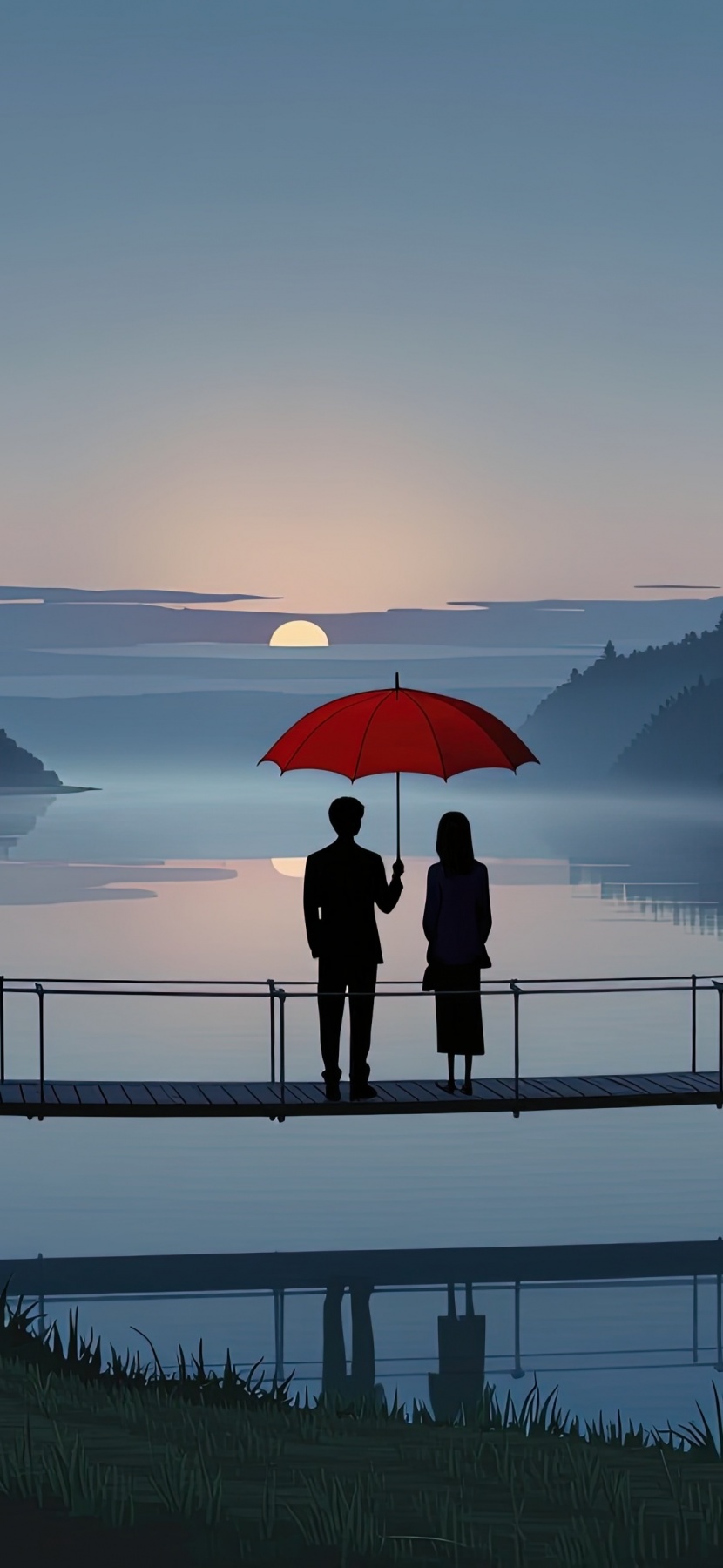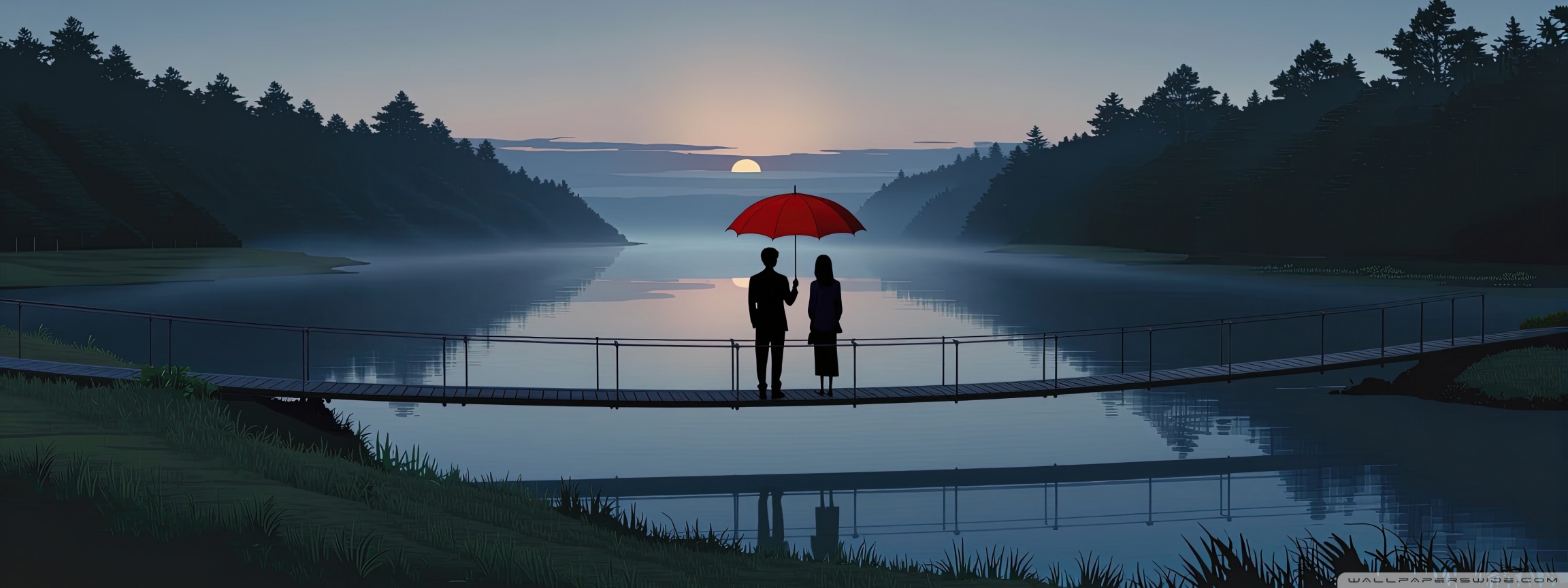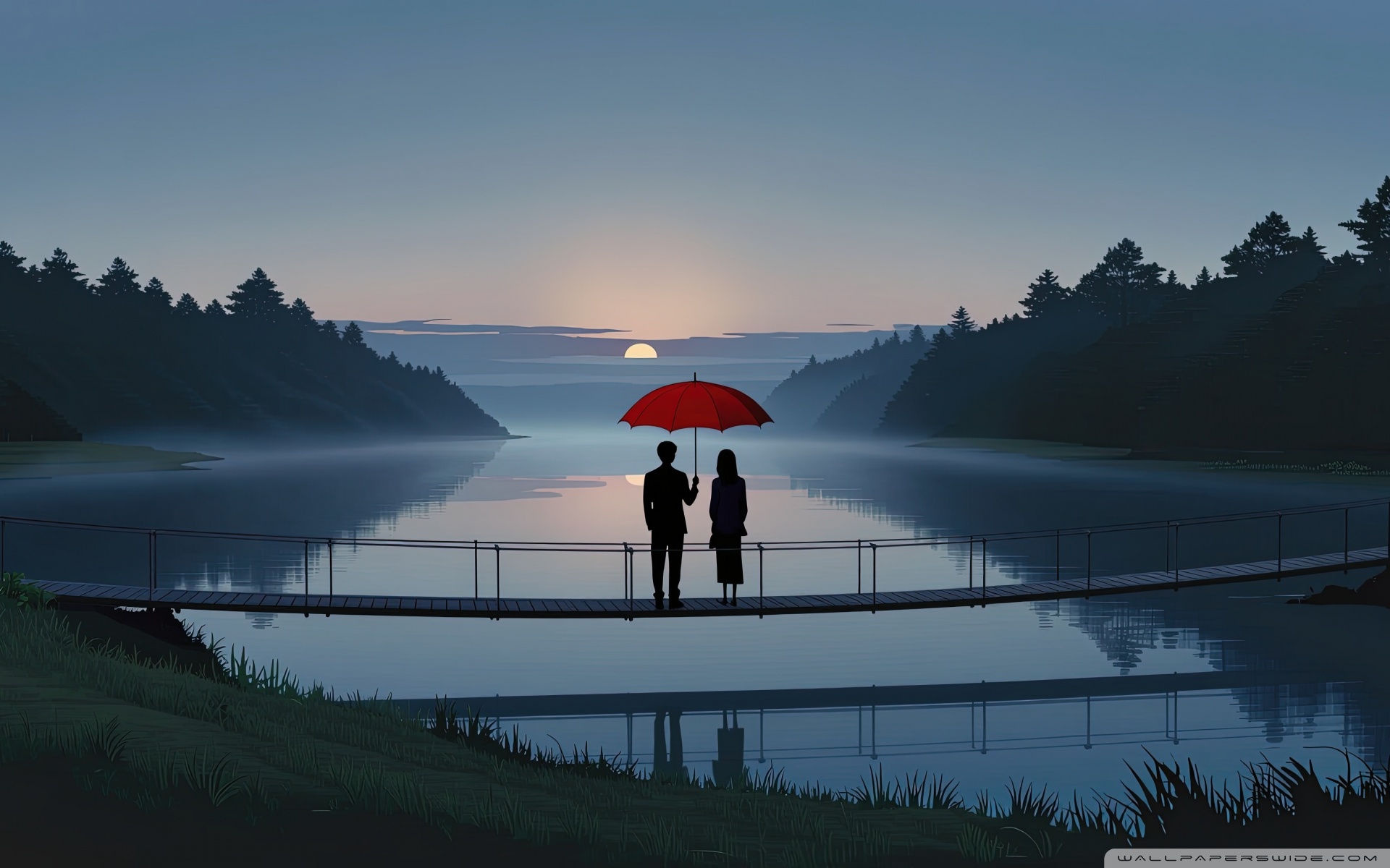 Download Together Beneath the Red Umbrella 4K UHD Wallpaper