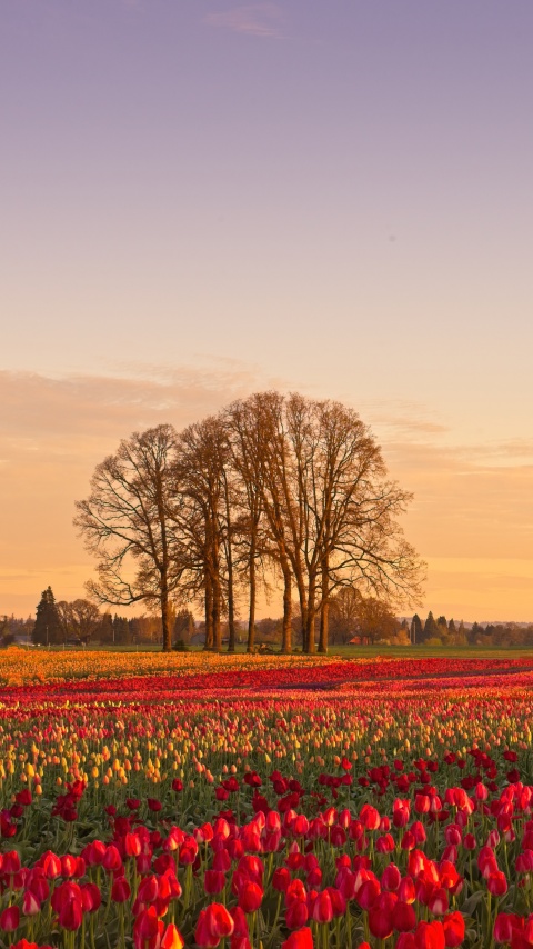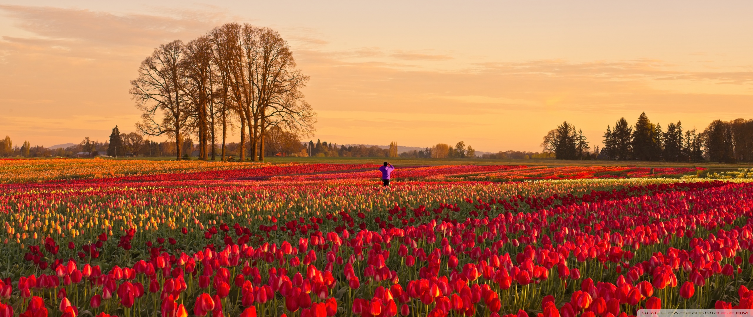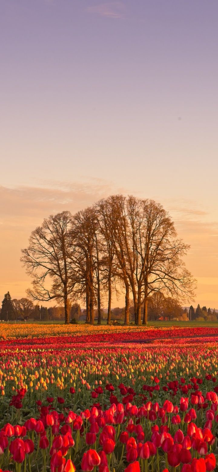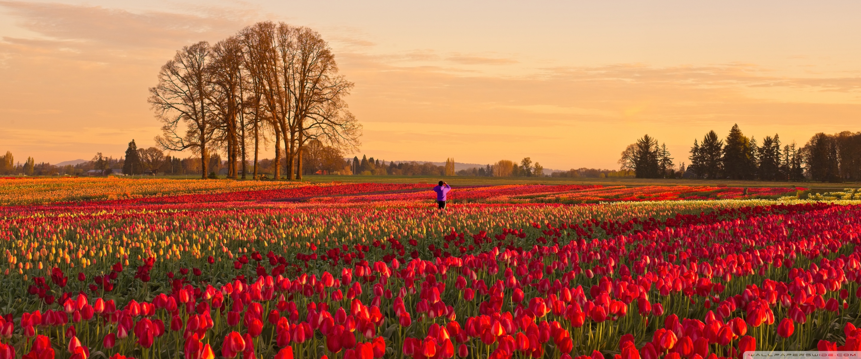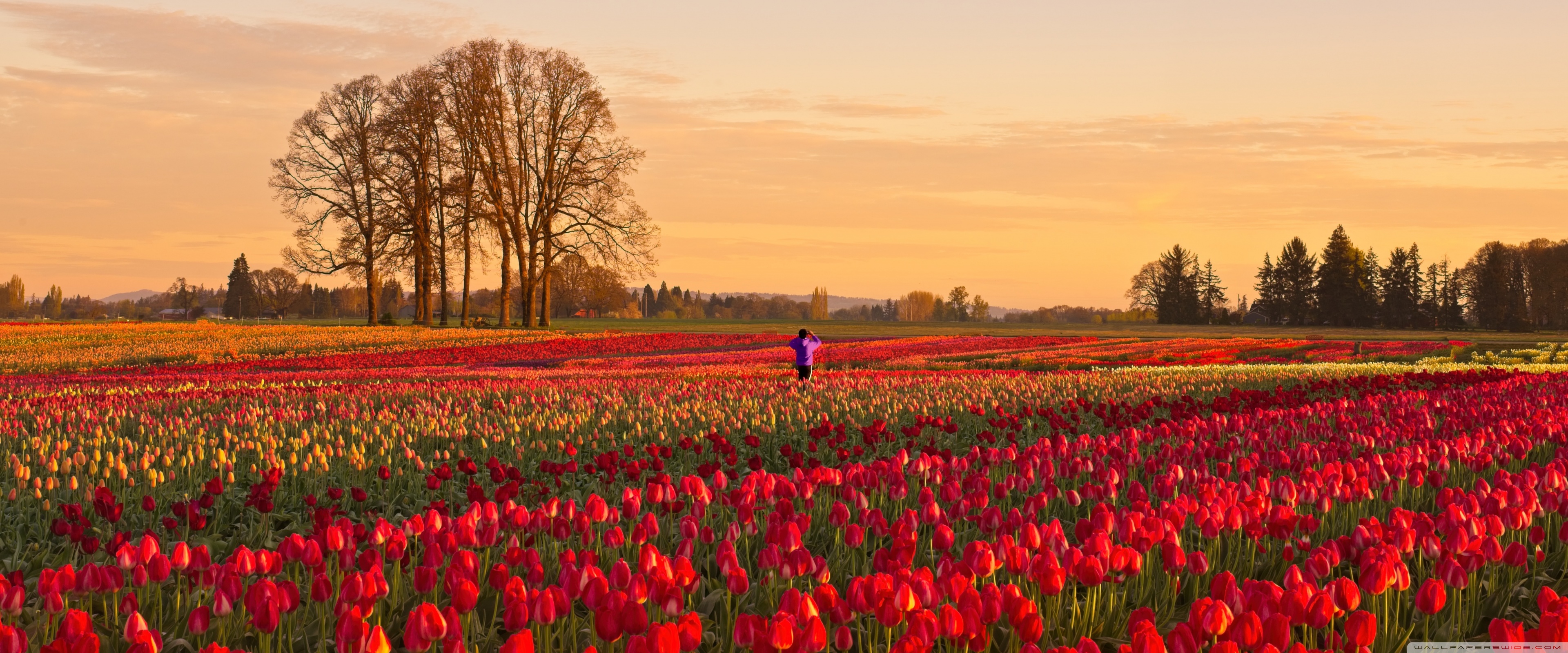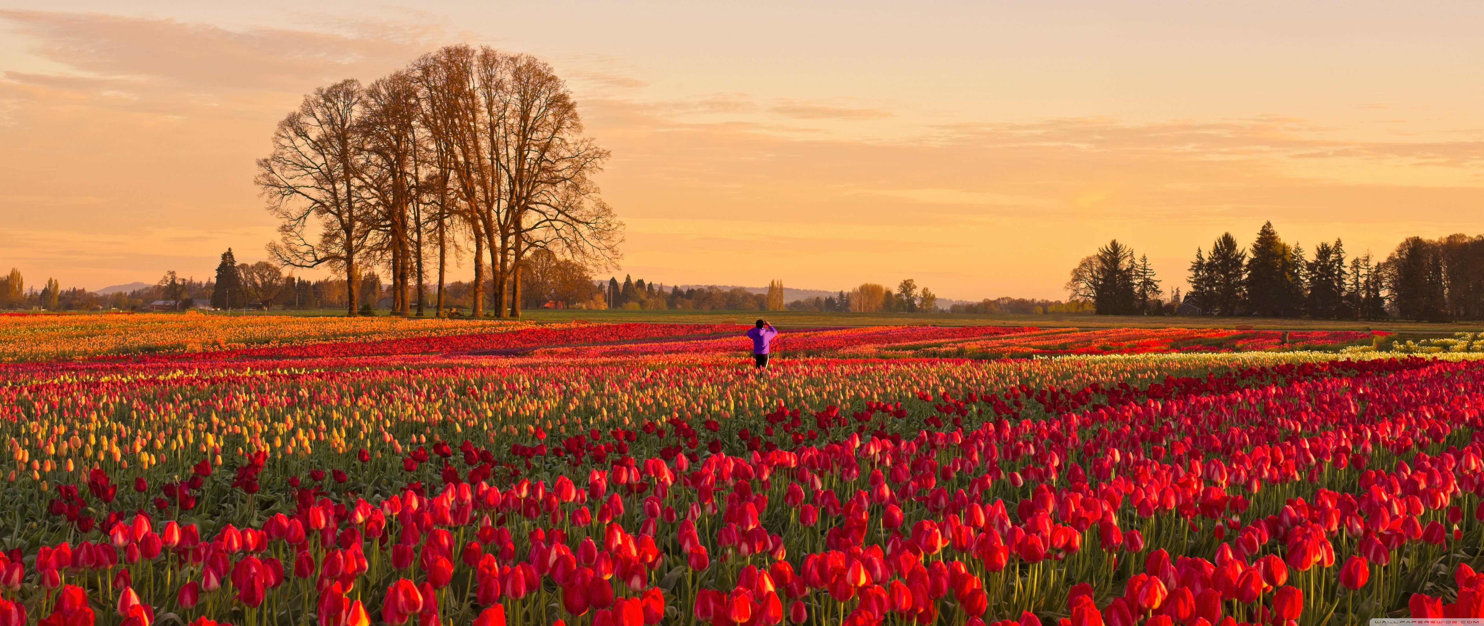 Download Tulip Fields at Sunrise with Hot Air Balloon 4K UHD Wallpaper