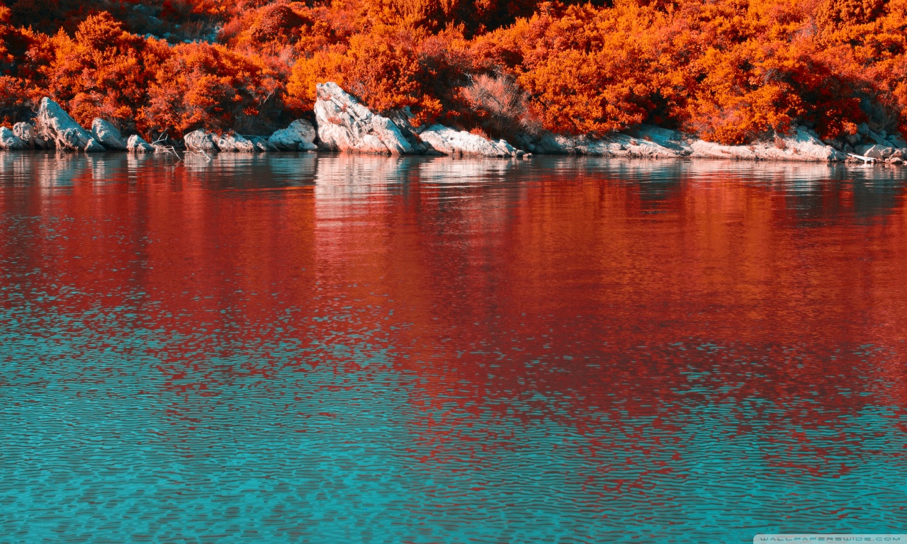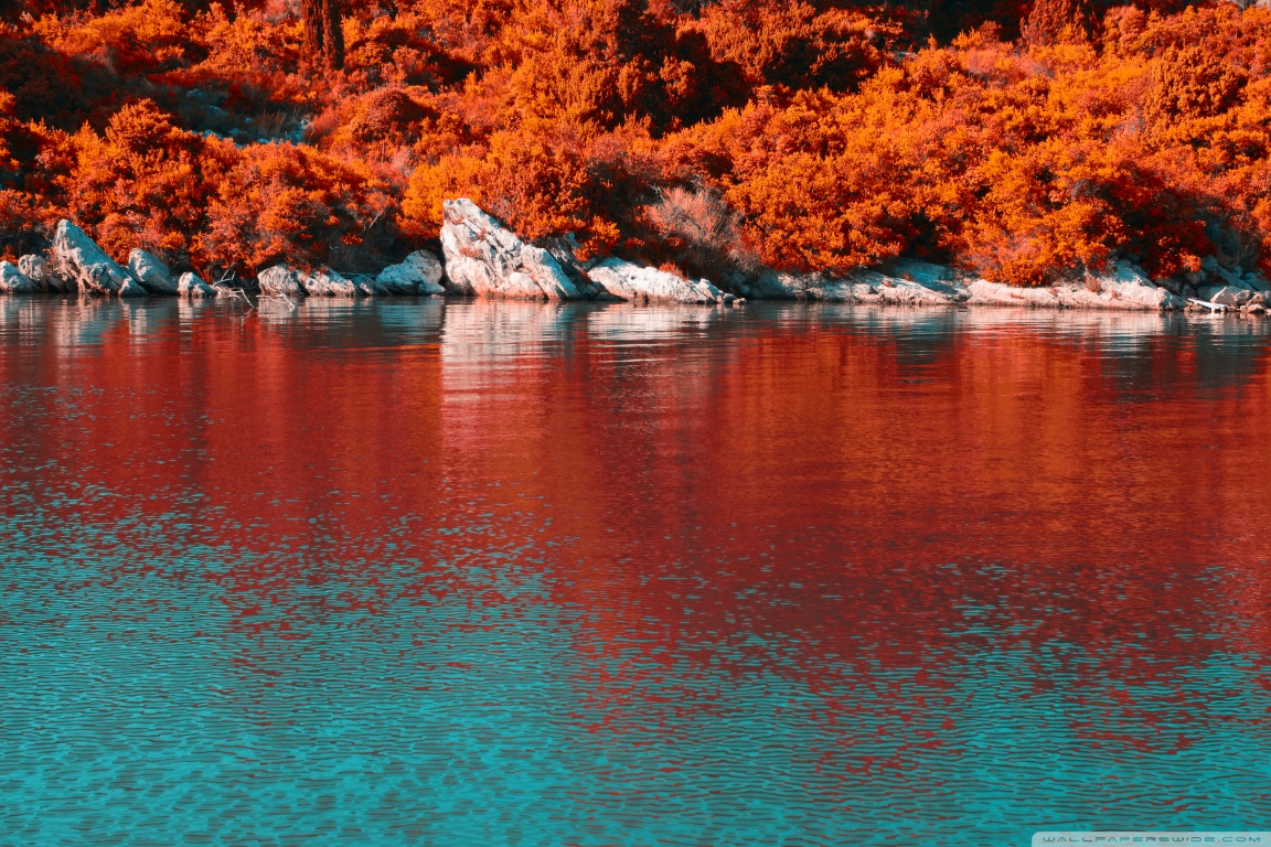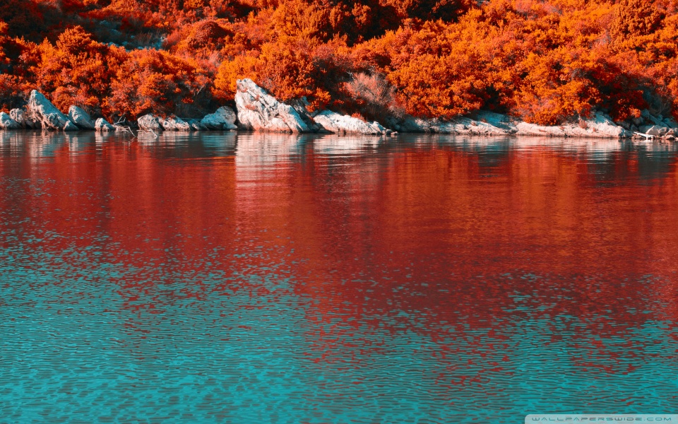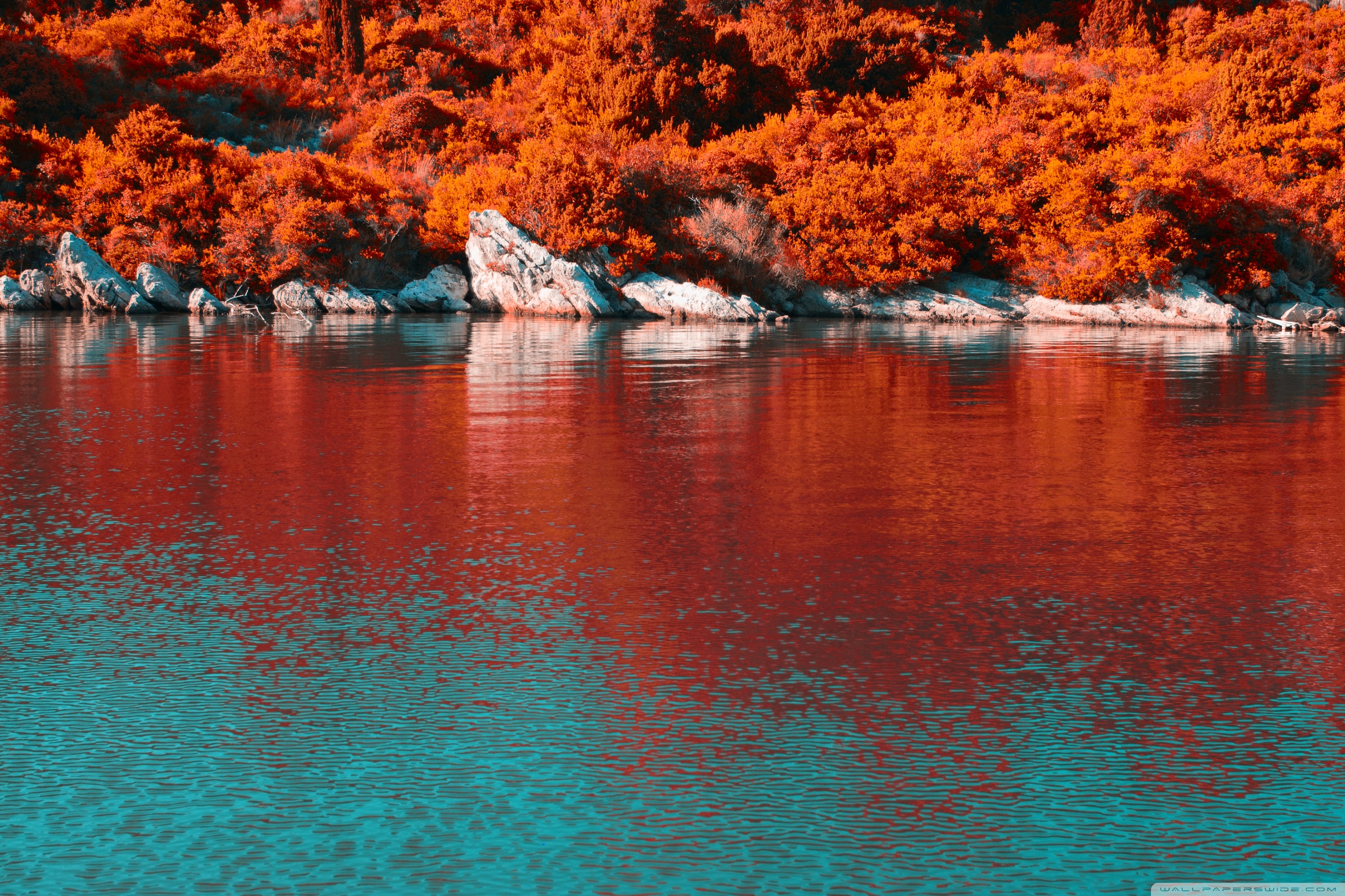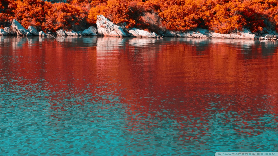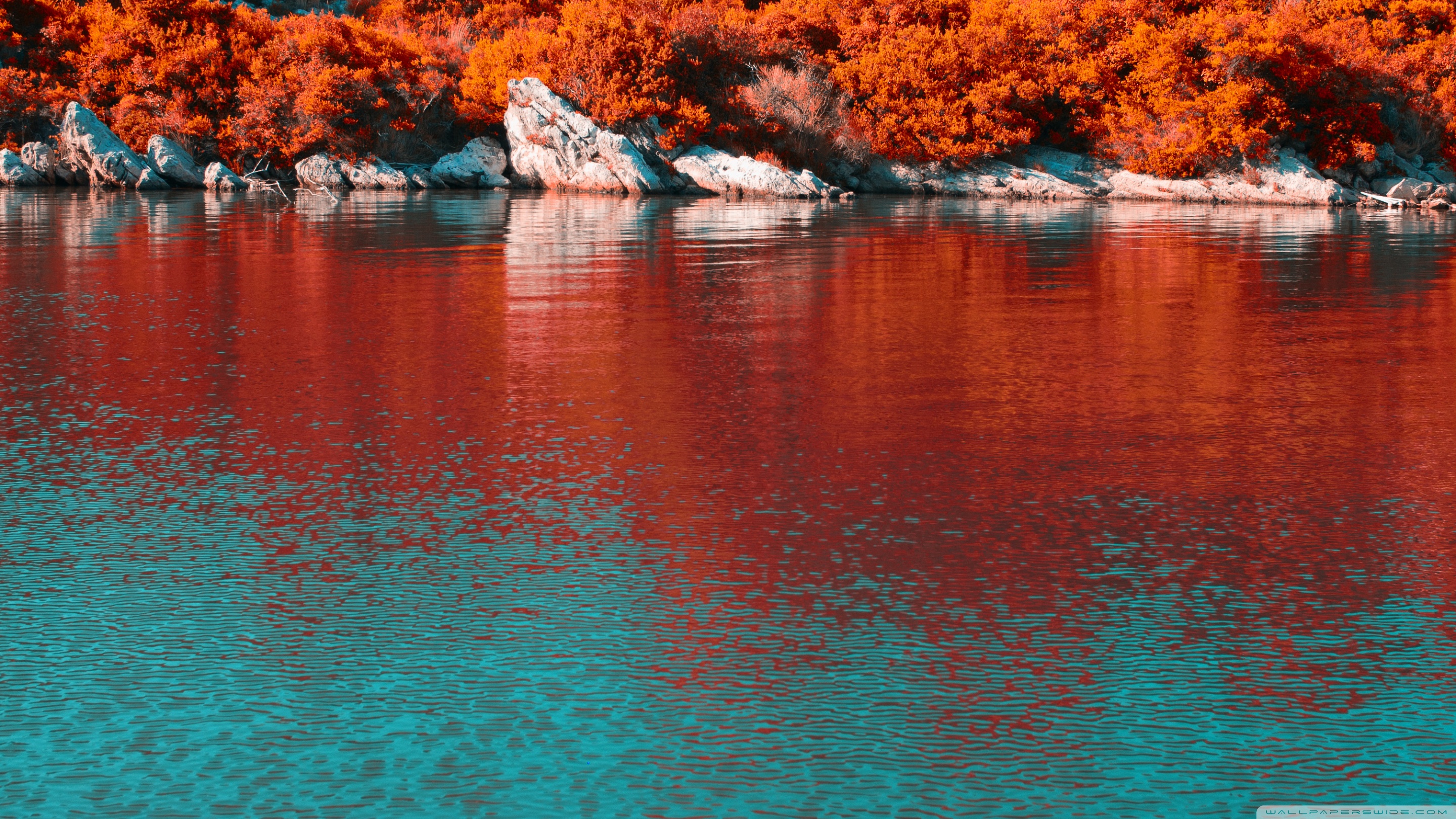 Download Turquoise Water and Orange Hillside with... 4K UHD Wallpaper