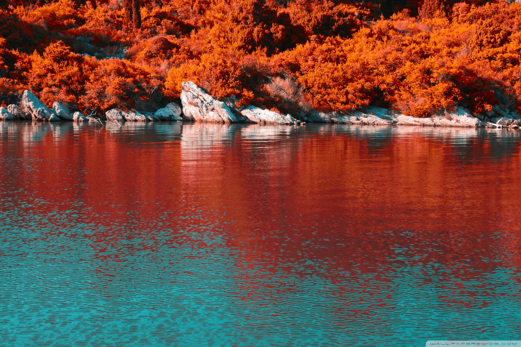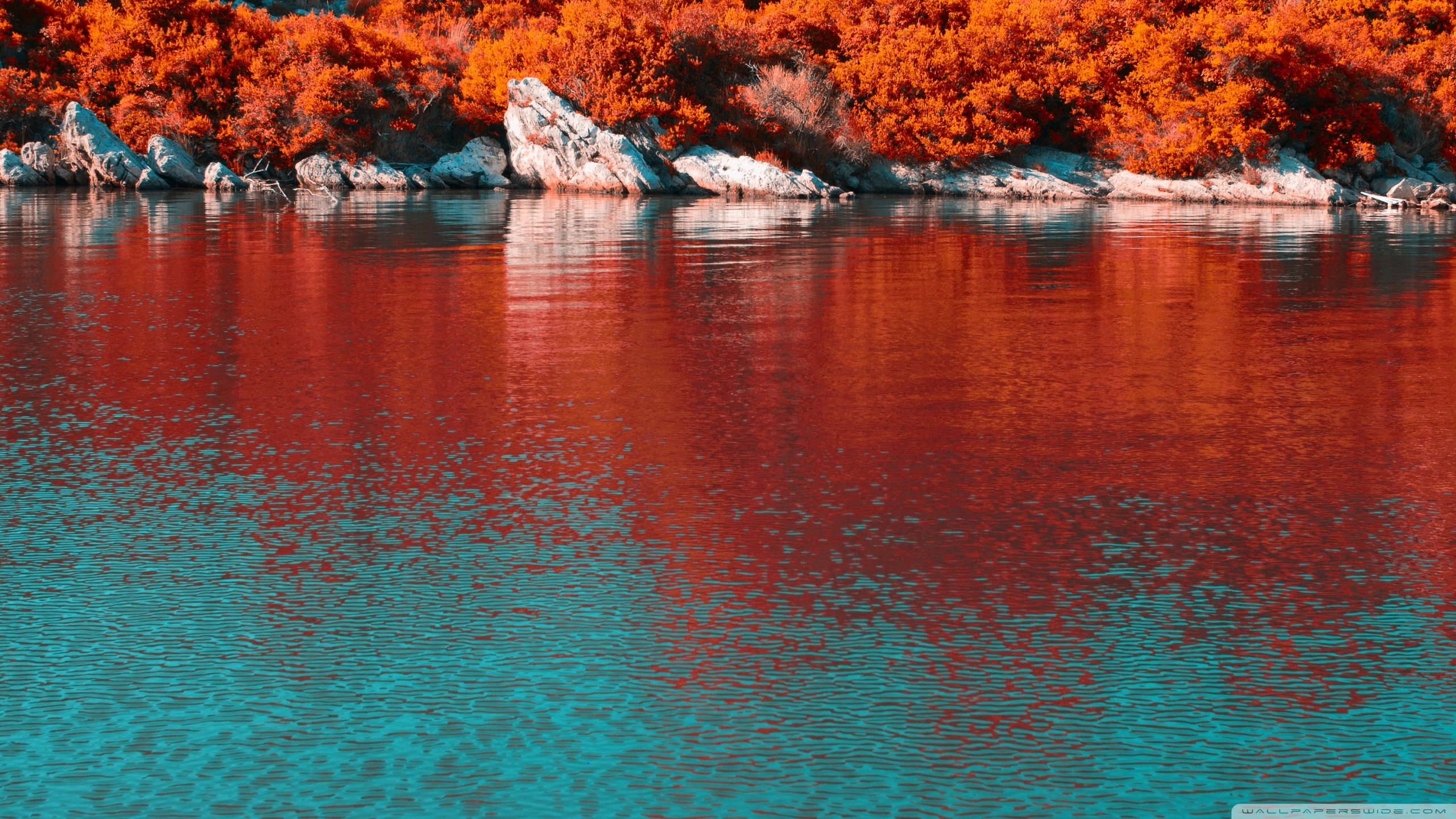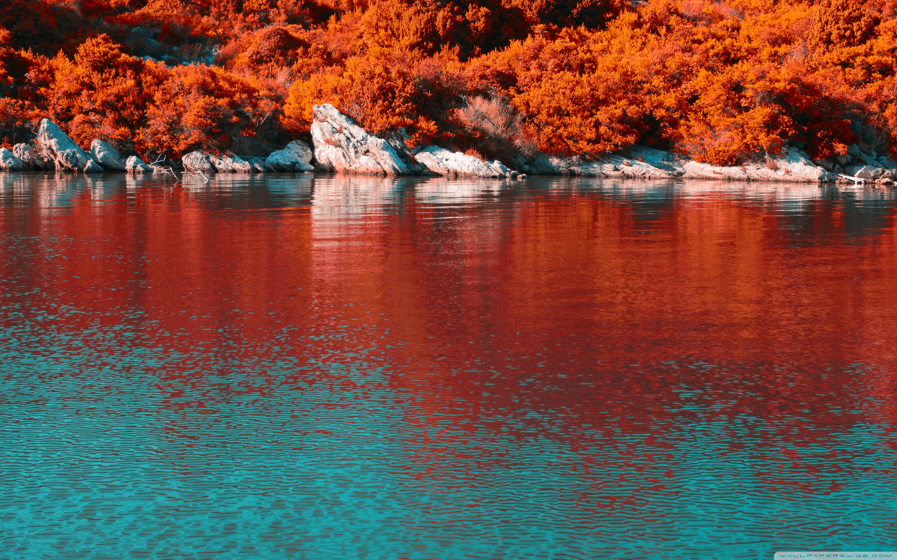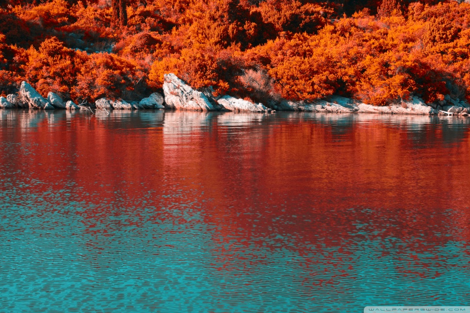 Download Turquoise Water and Orange Hillside with... 4K UHD Wallpaper