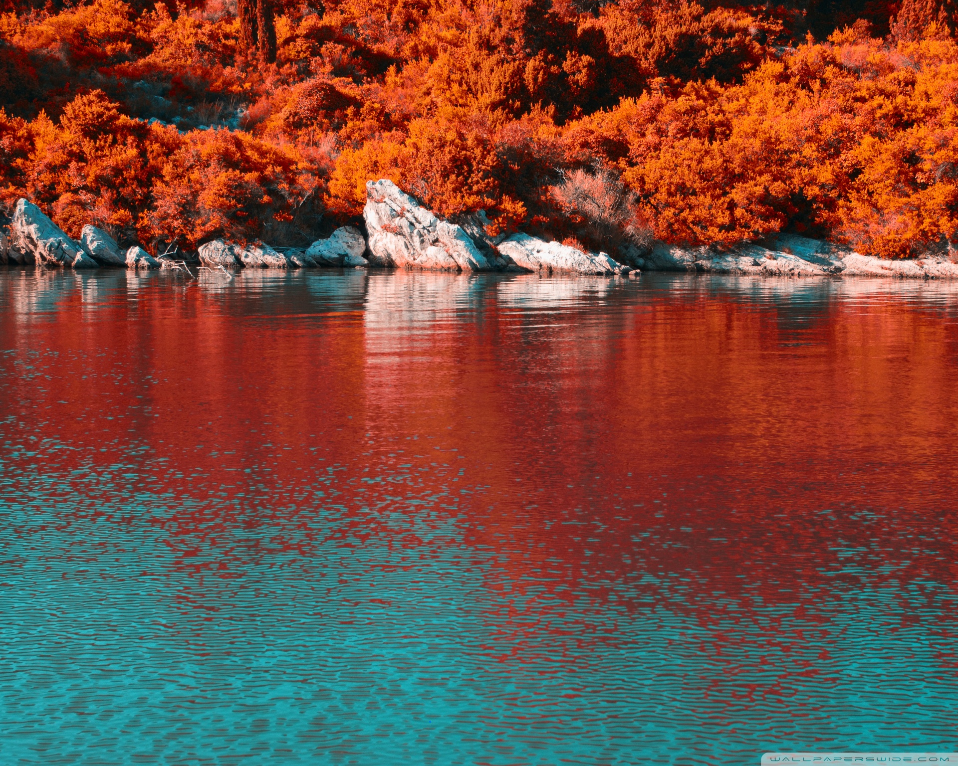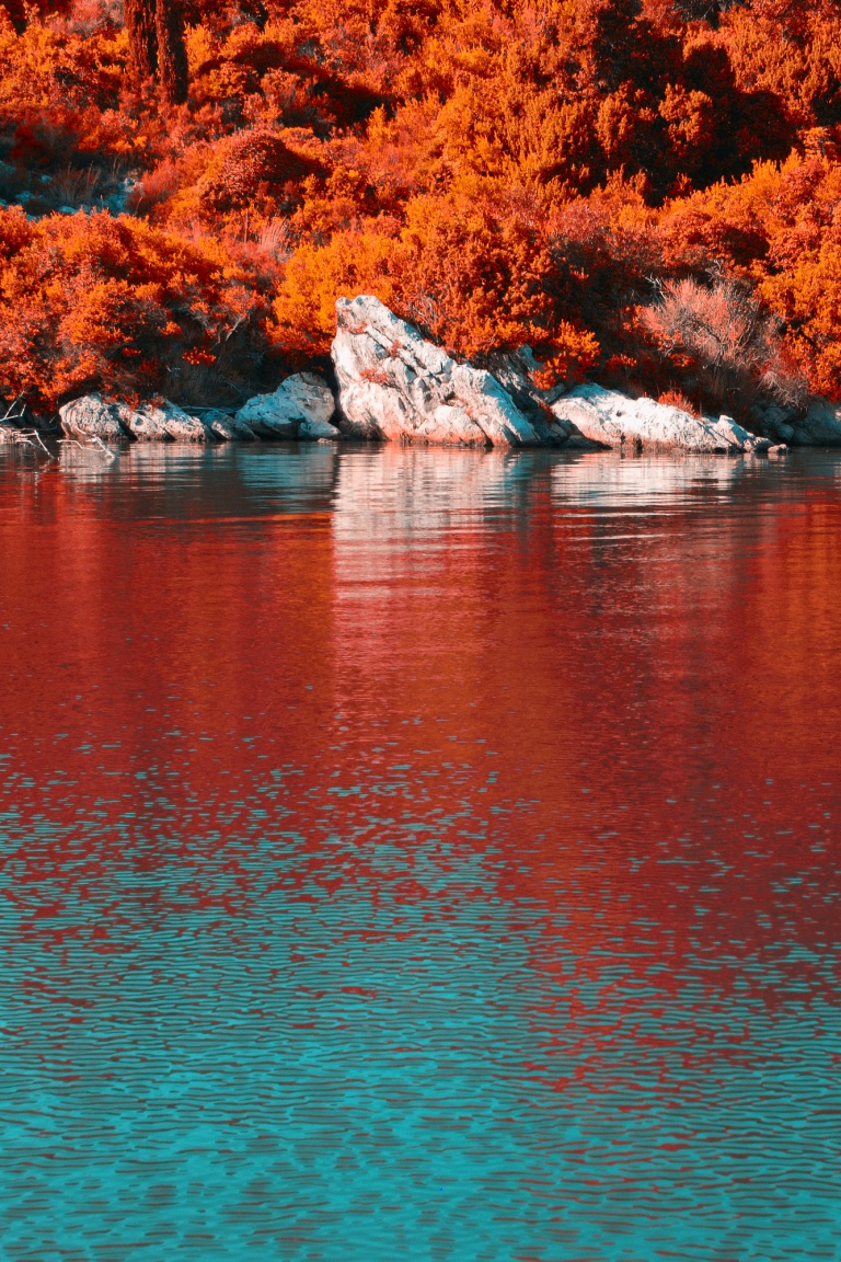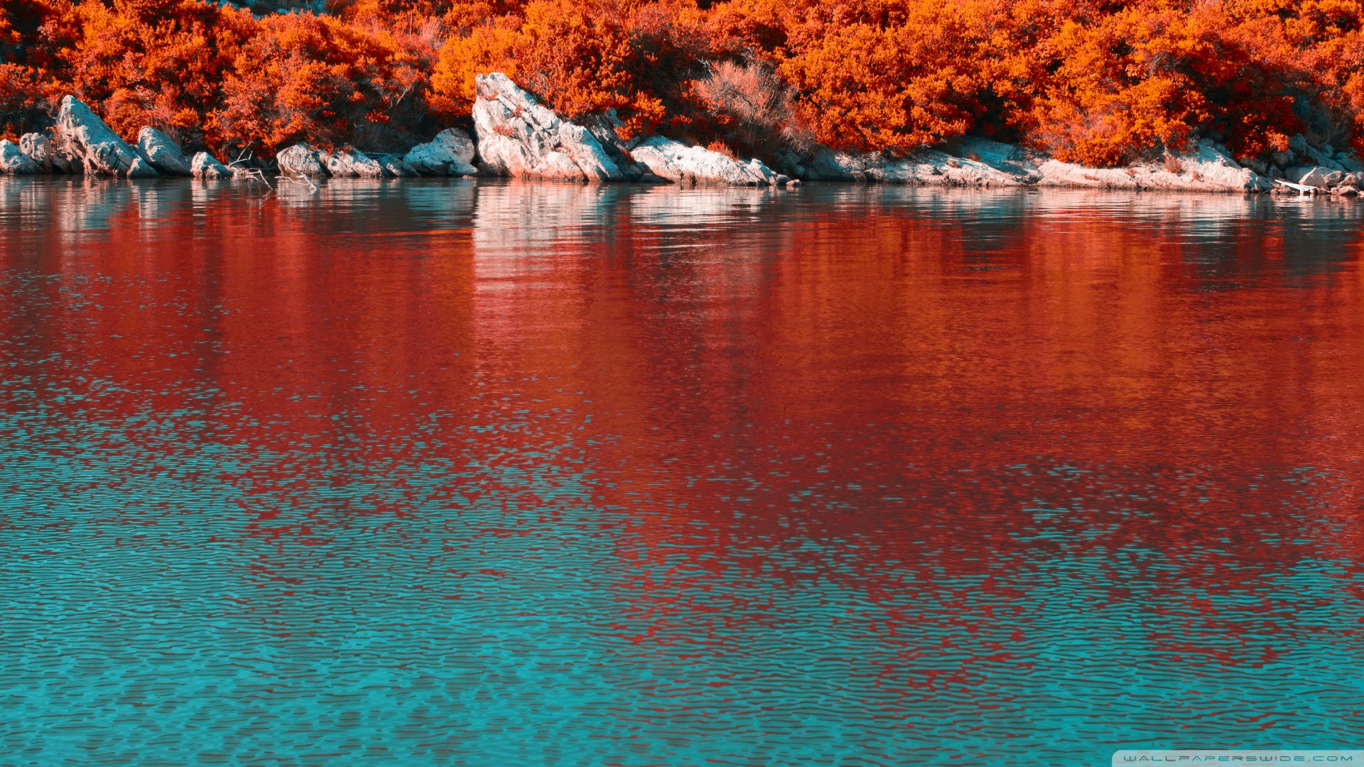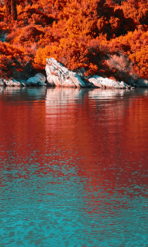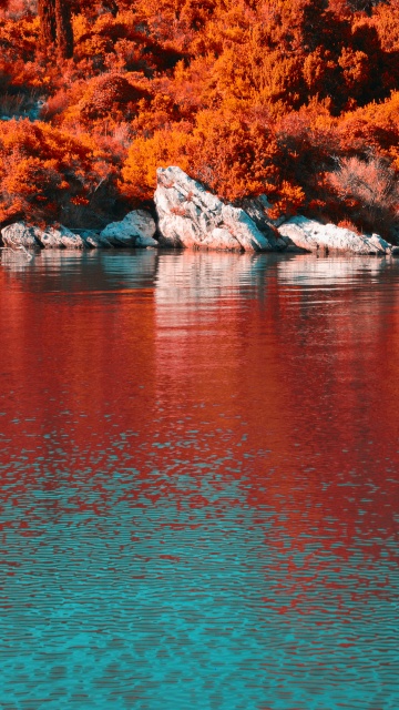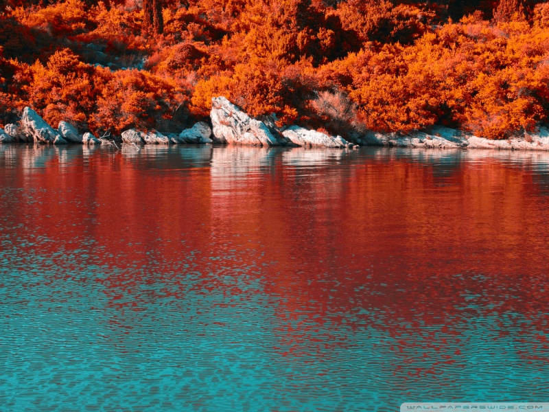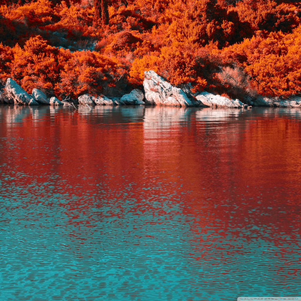Download Turquoise Water and Orange Hillside with... 4K UHD Wallpaper