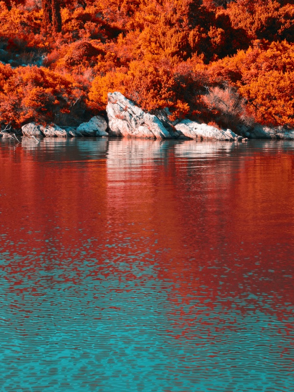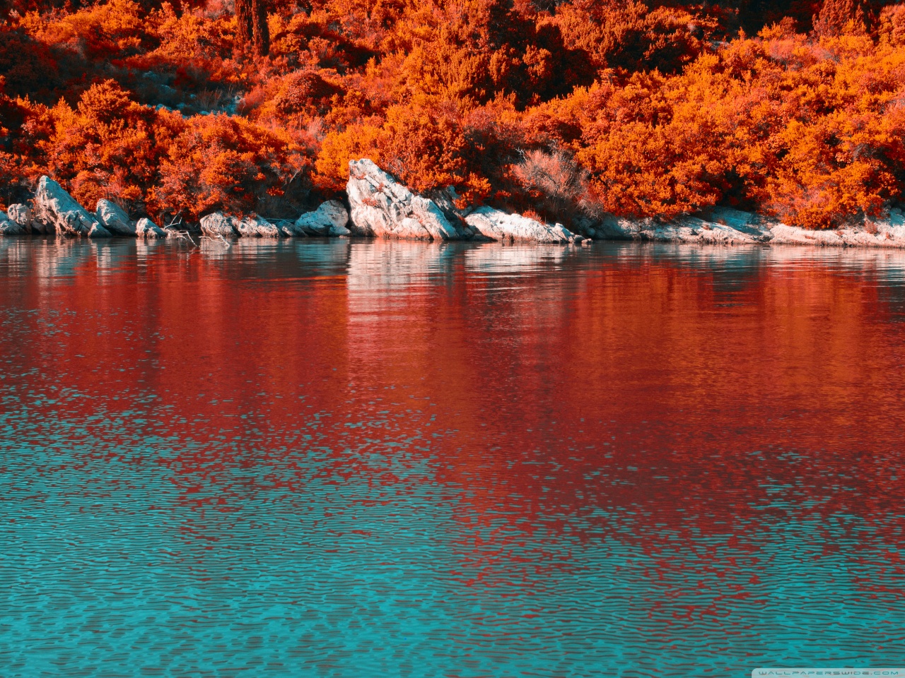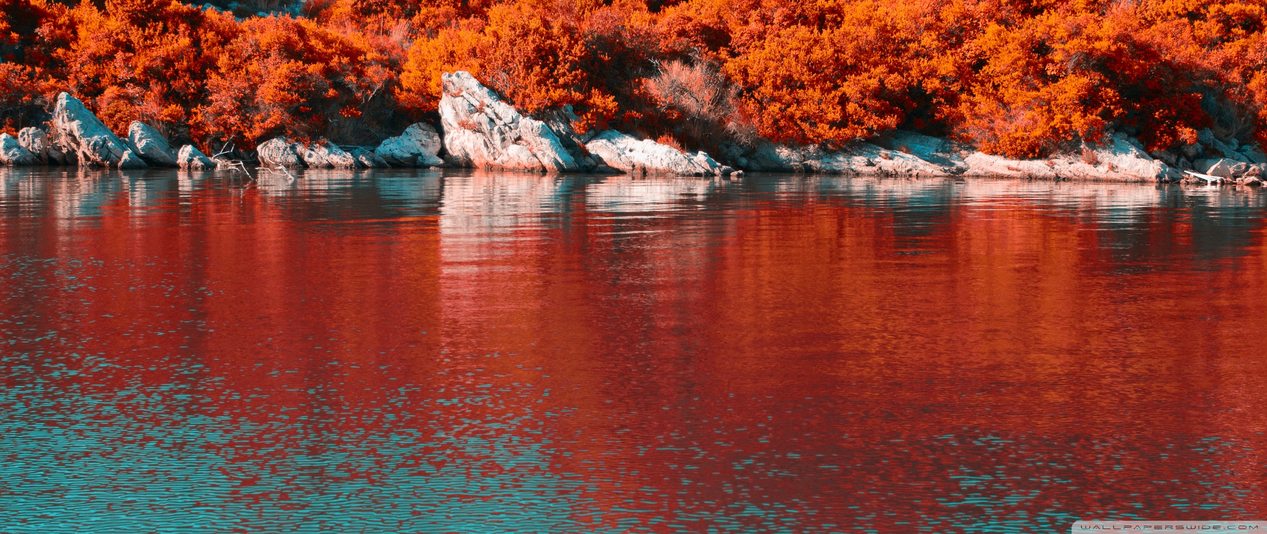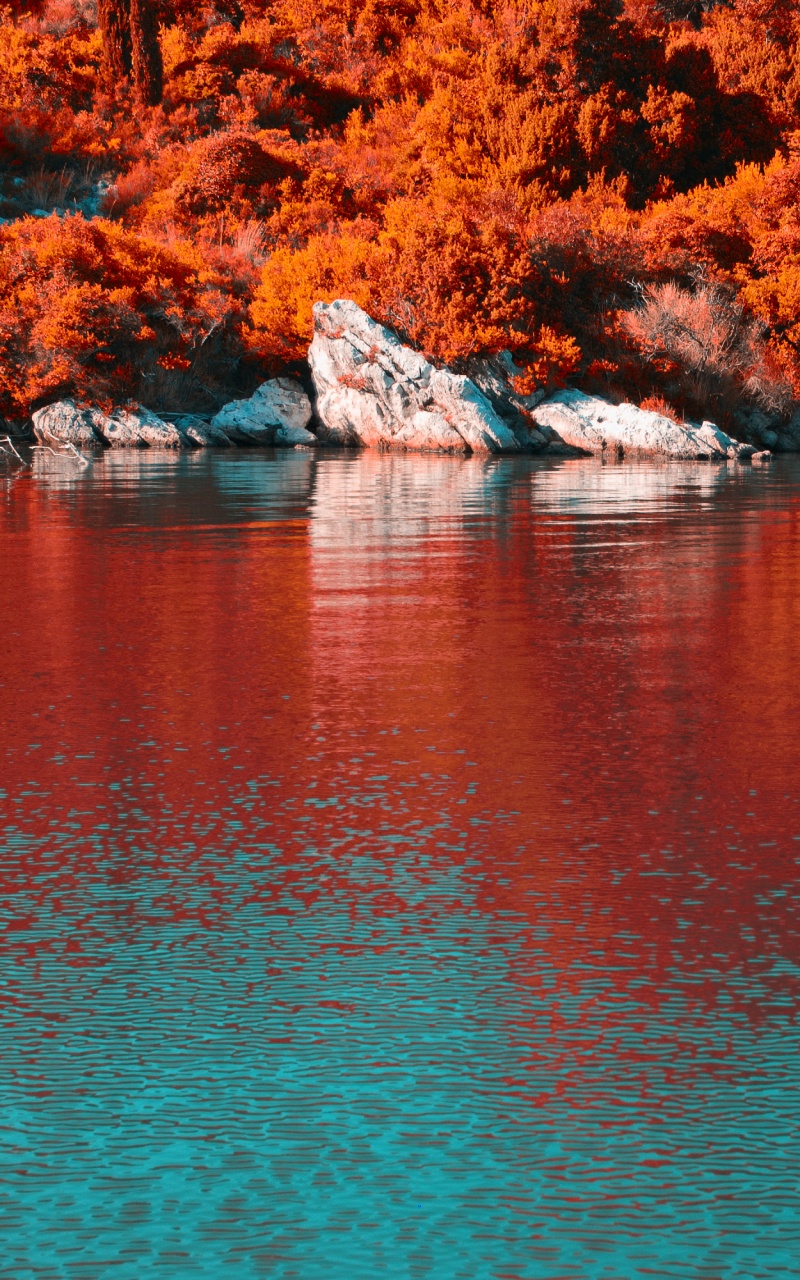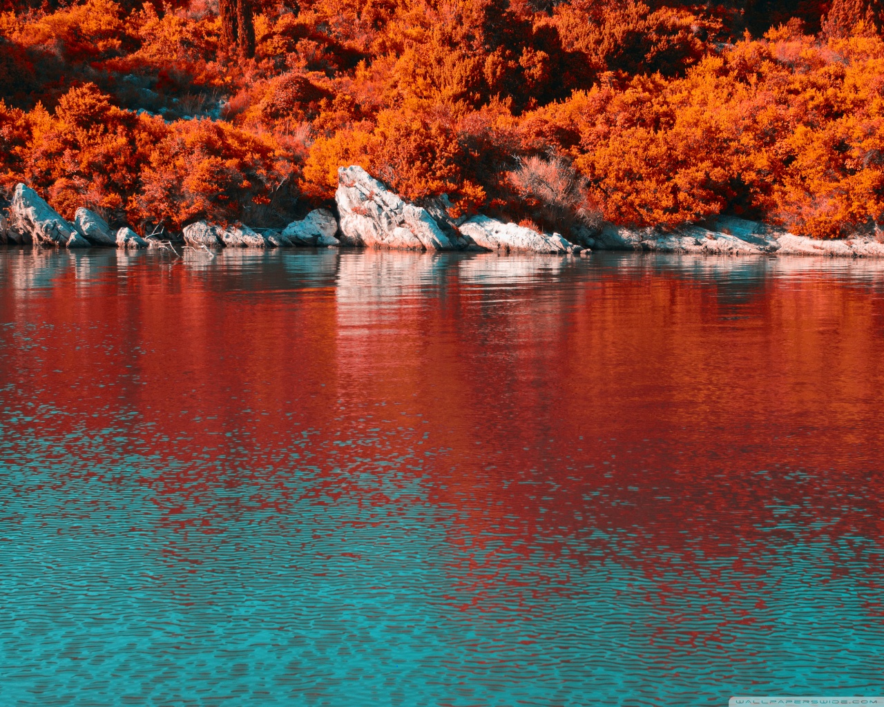 Download Turquoise Water and Orange Hillside with... 4K UHD Wallpaper