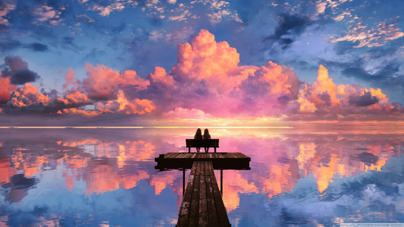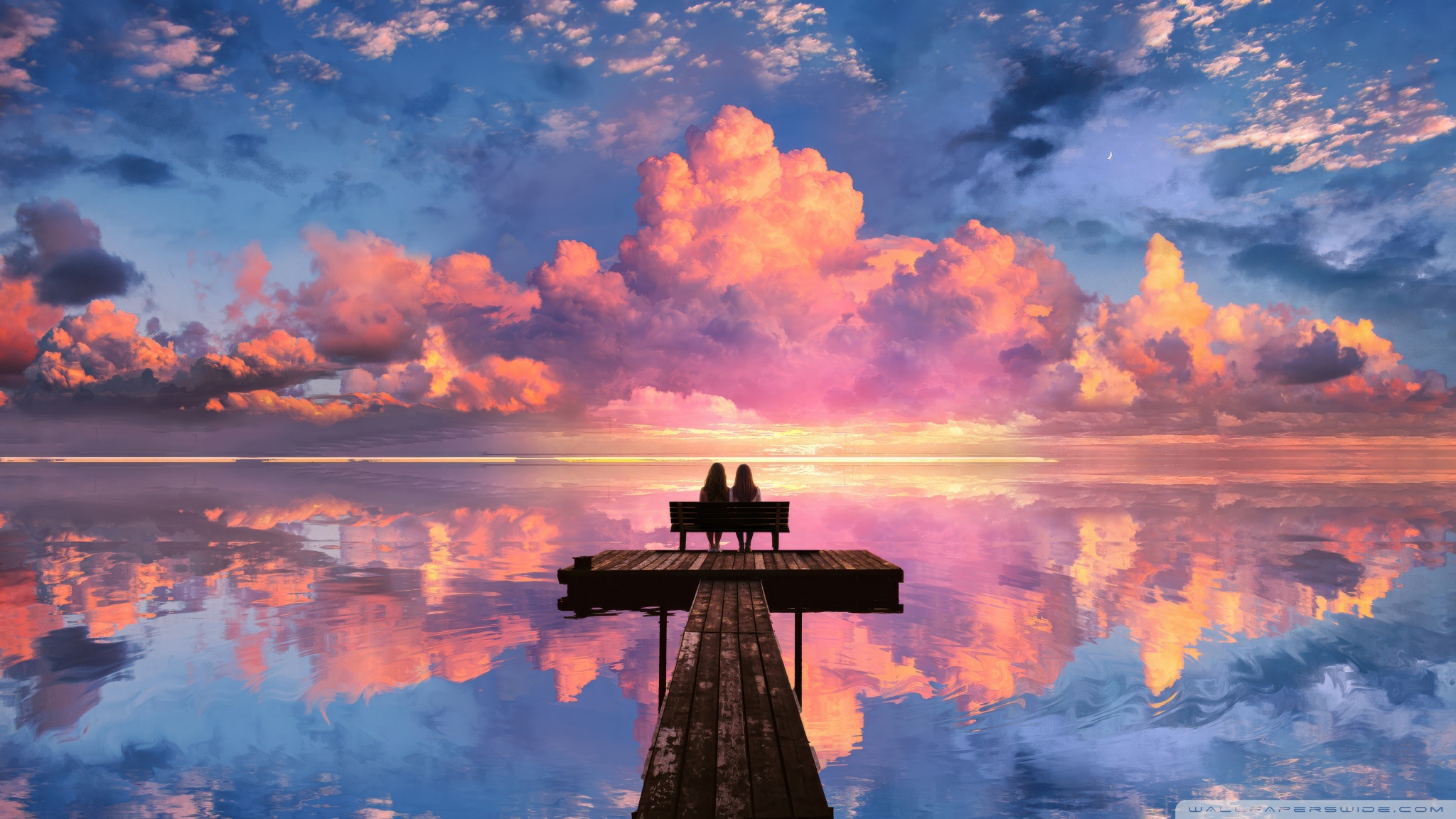 Download Two Bestie On Pier At Sunset 4K UHD Wallpaper