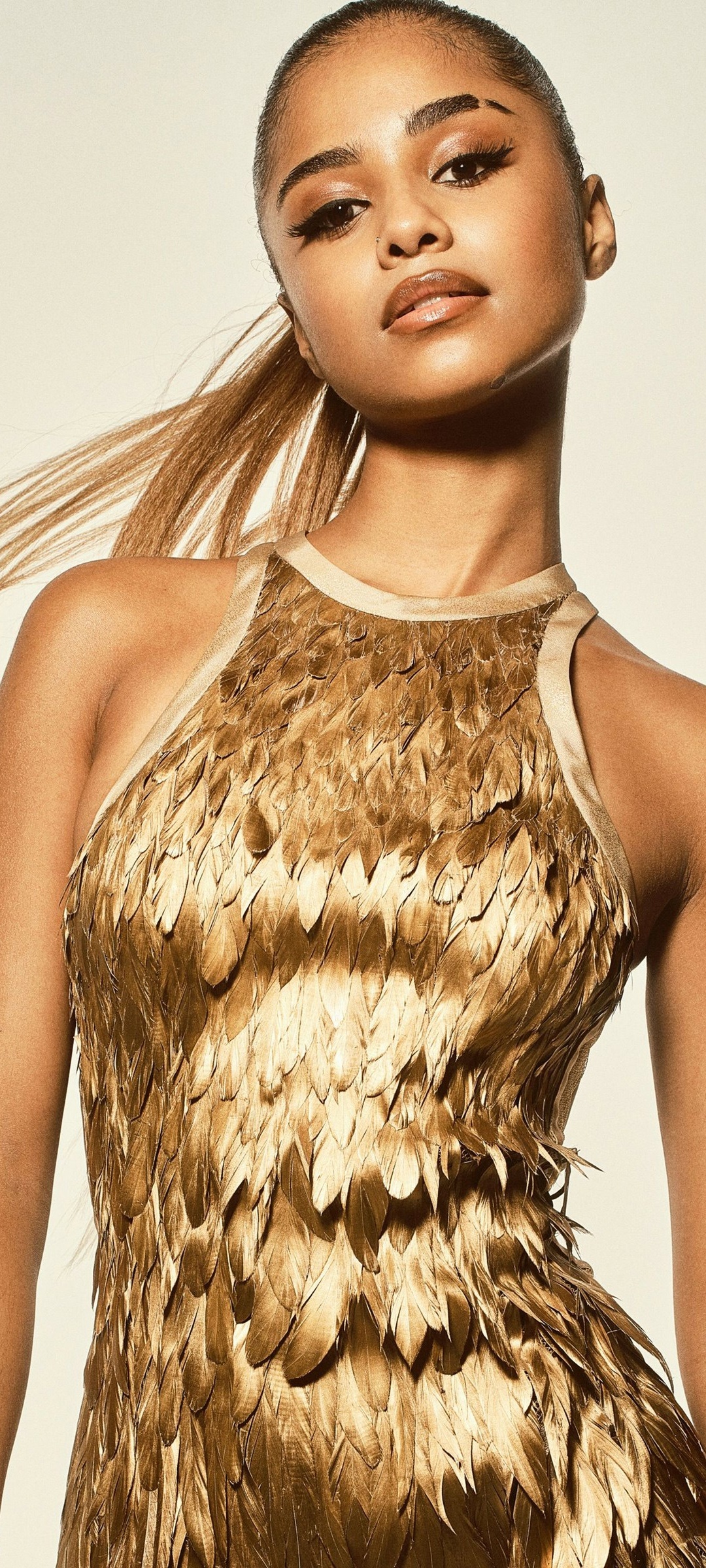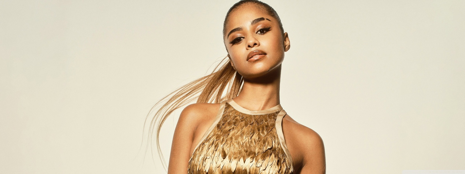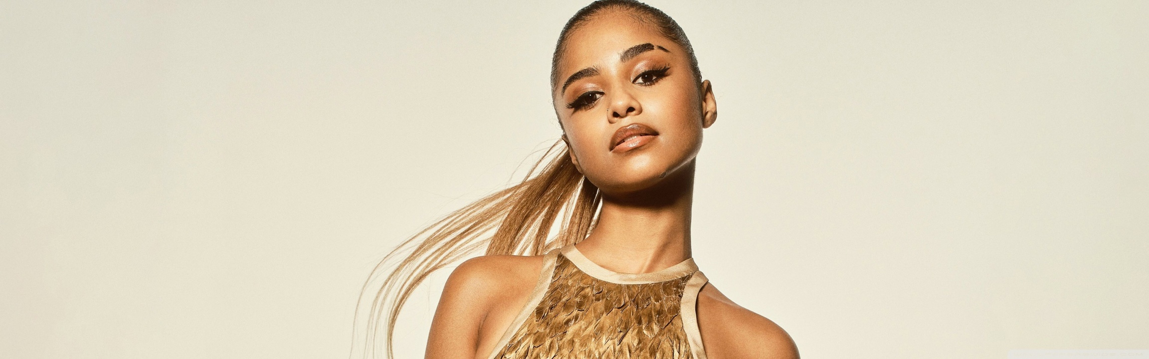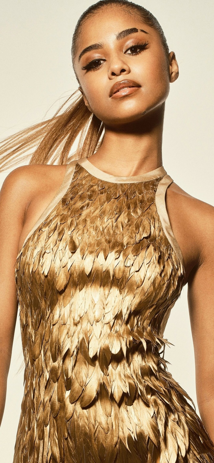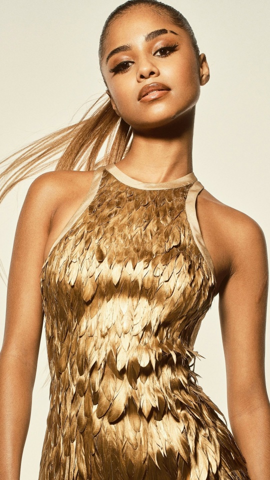 Download Tyla in a Golden Dress Photoshoot 4K UHD Wallpaper
