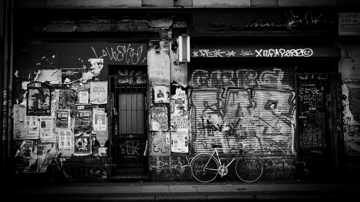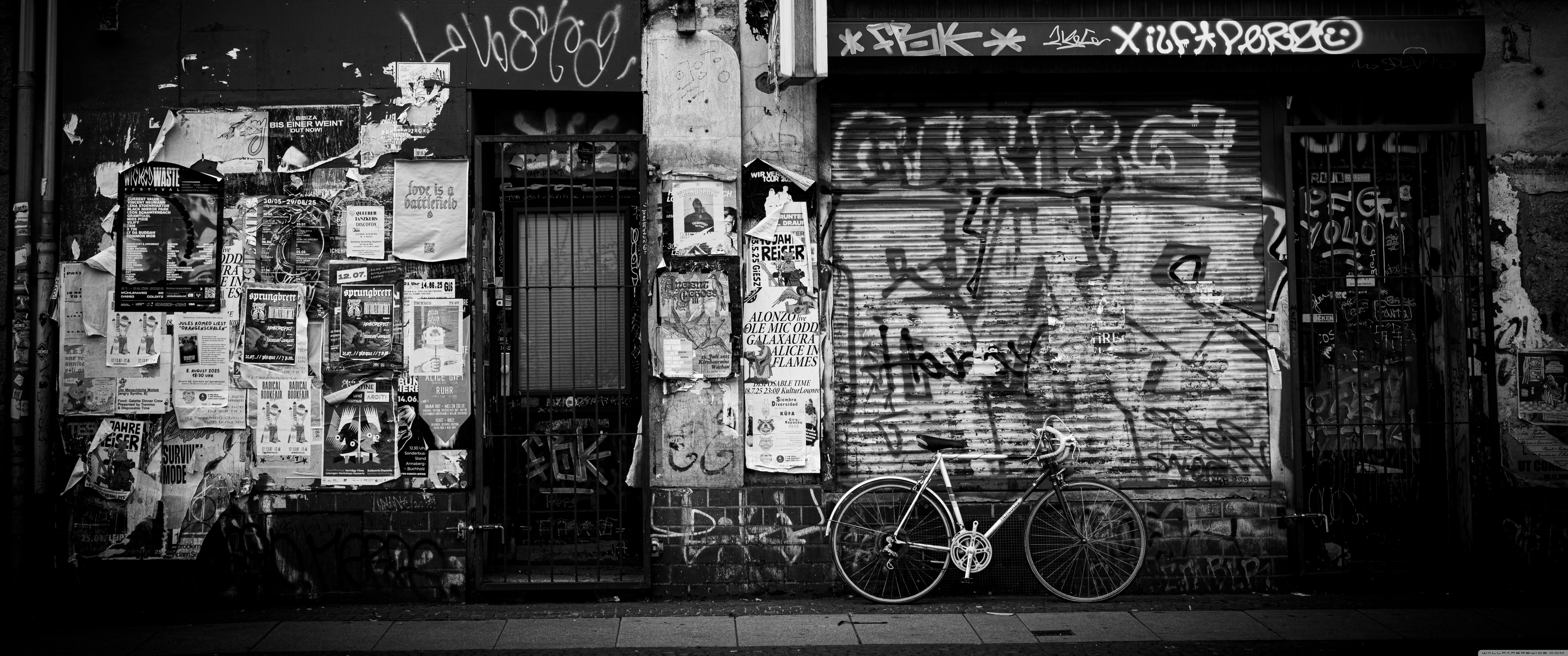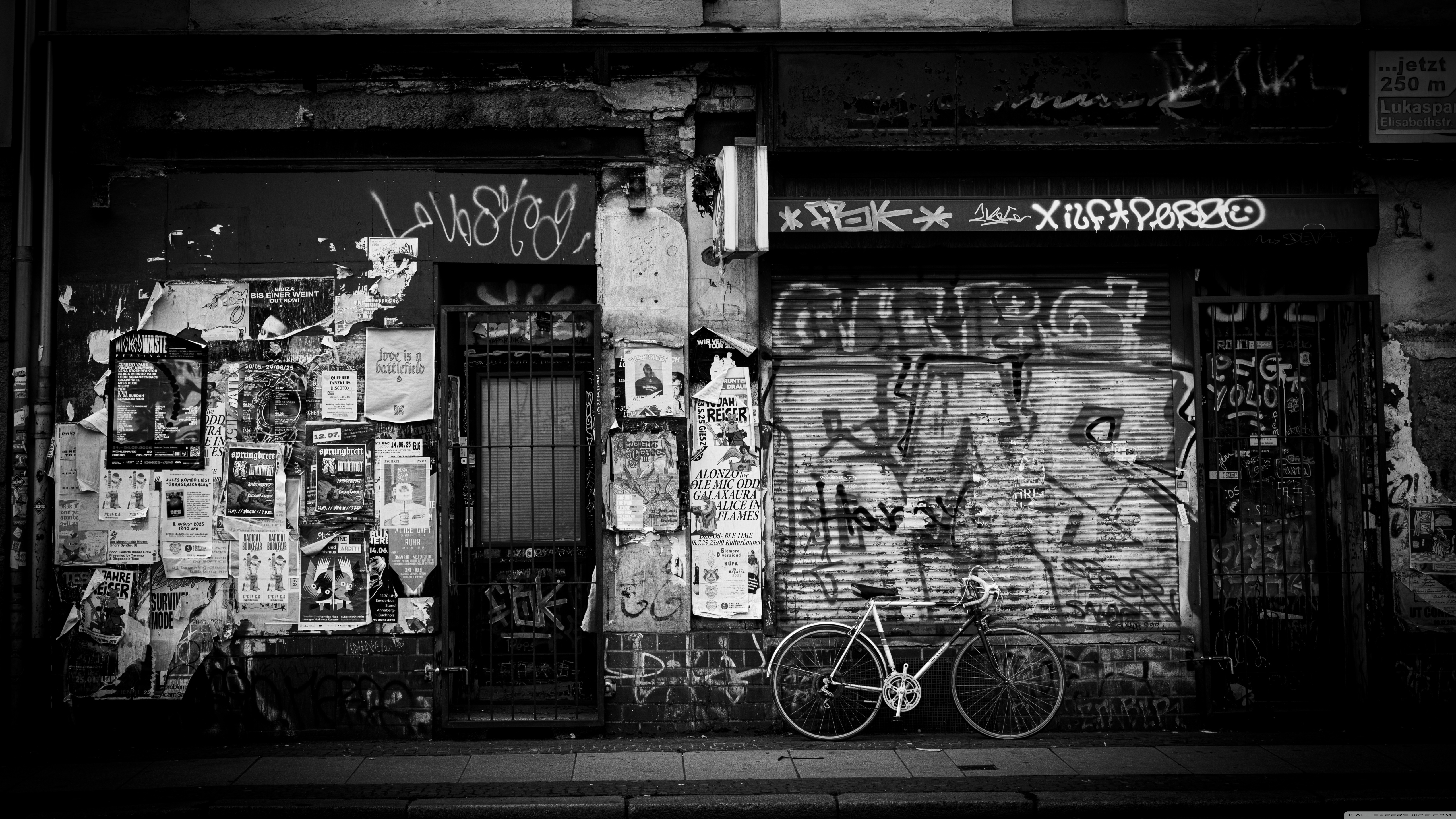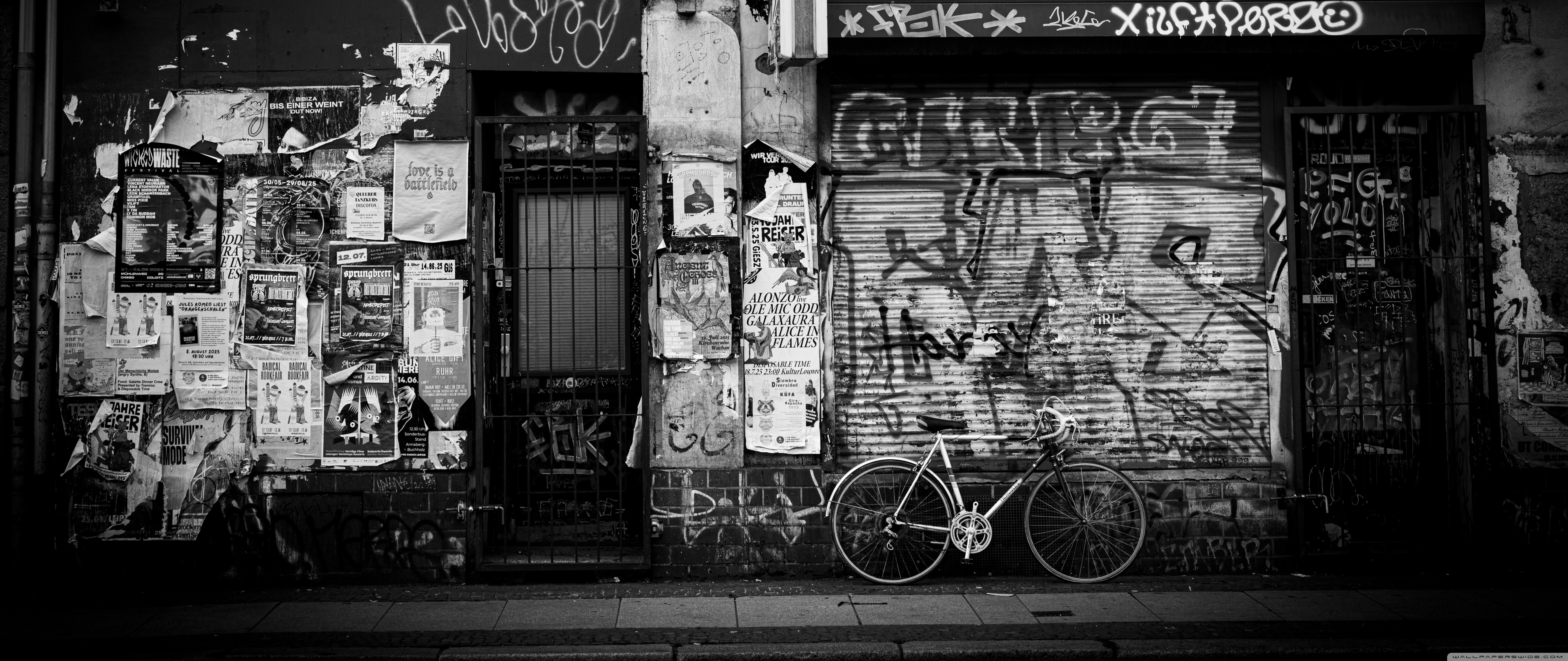 Download Urban Graffiti Wall with Bicycle 4K UHD Wallpaper