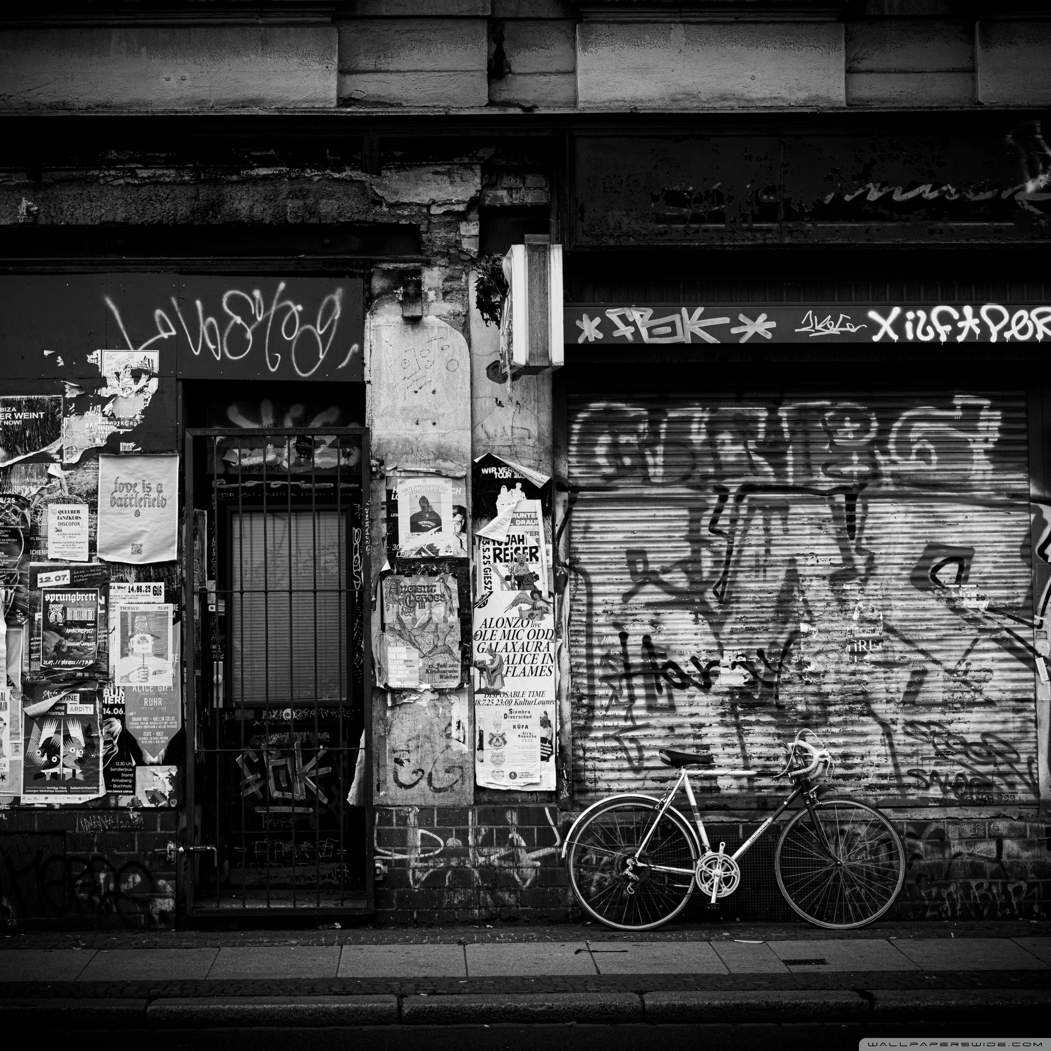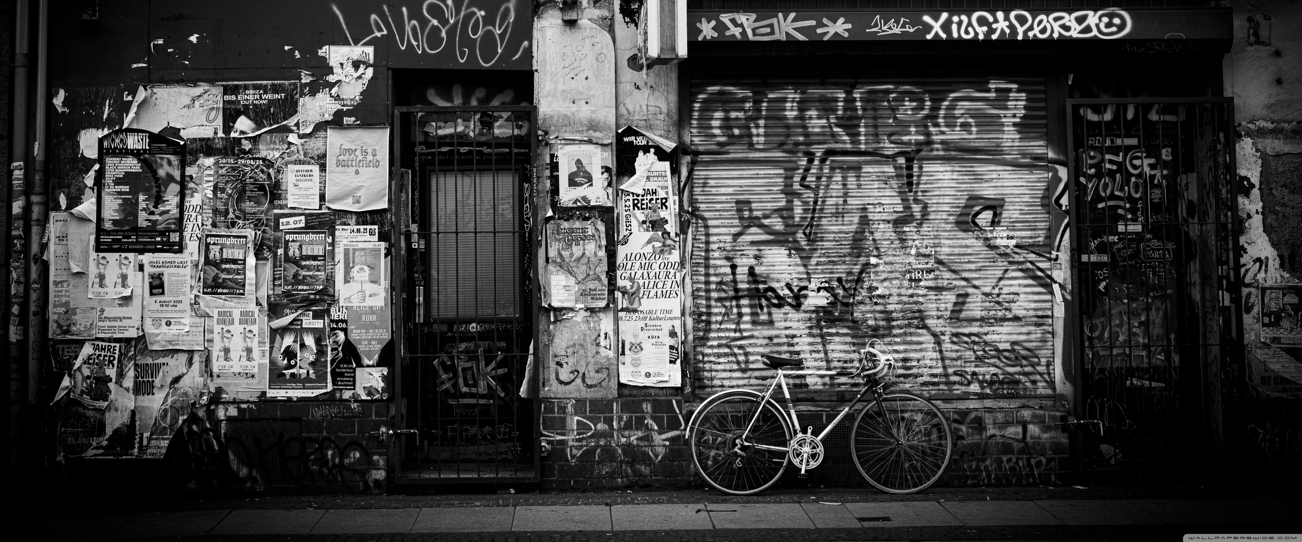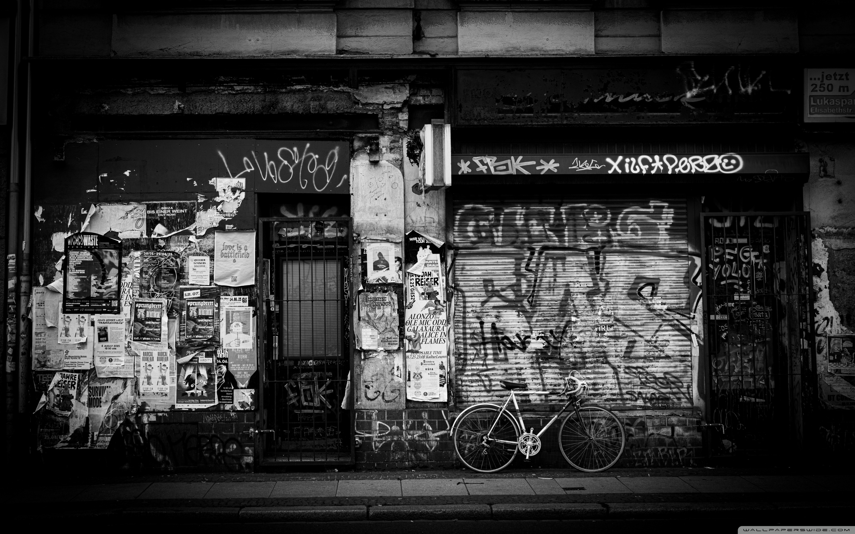 Download Urban Graffiti Wall with Bicycle 4K UHD Wallpaper