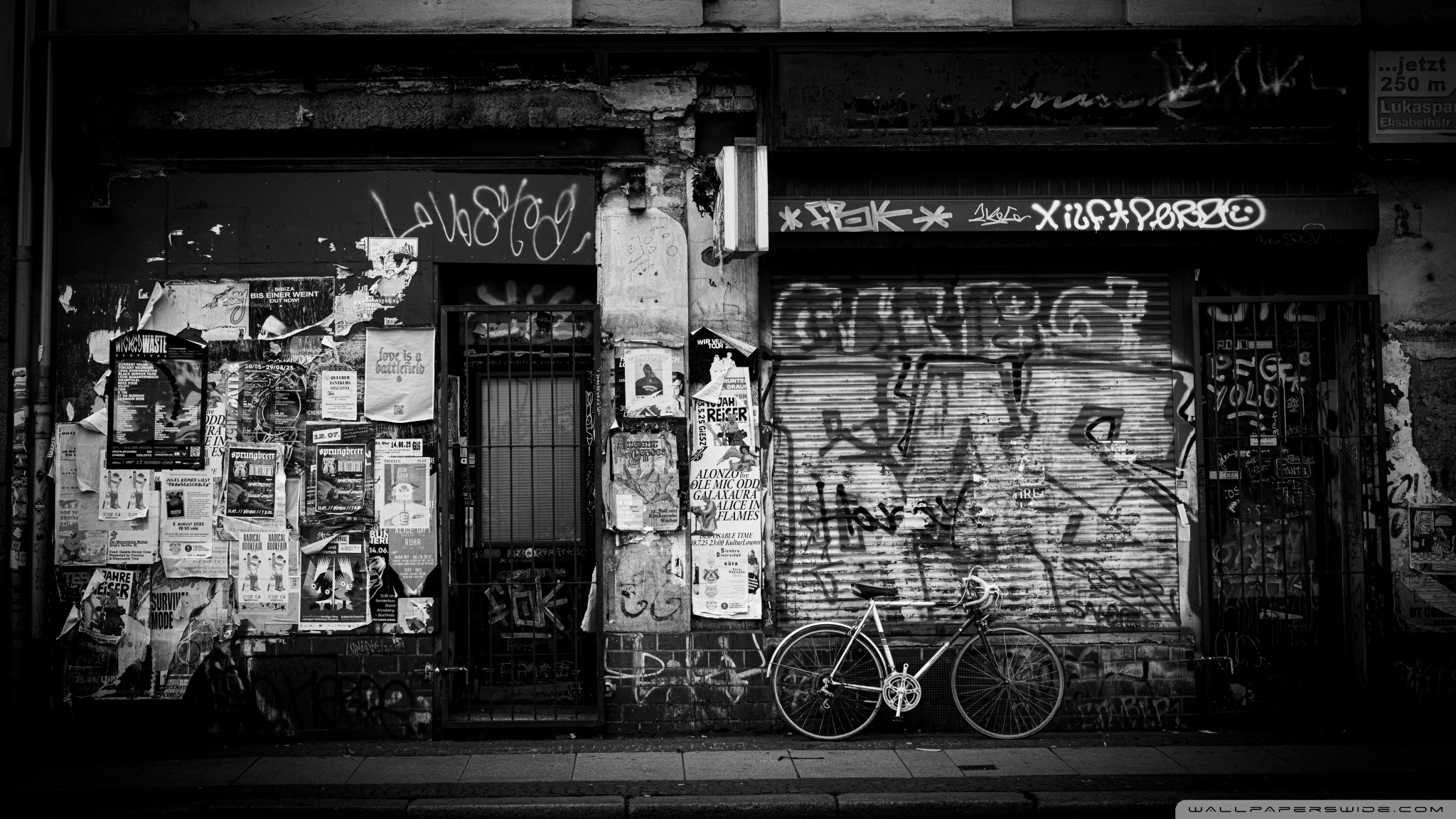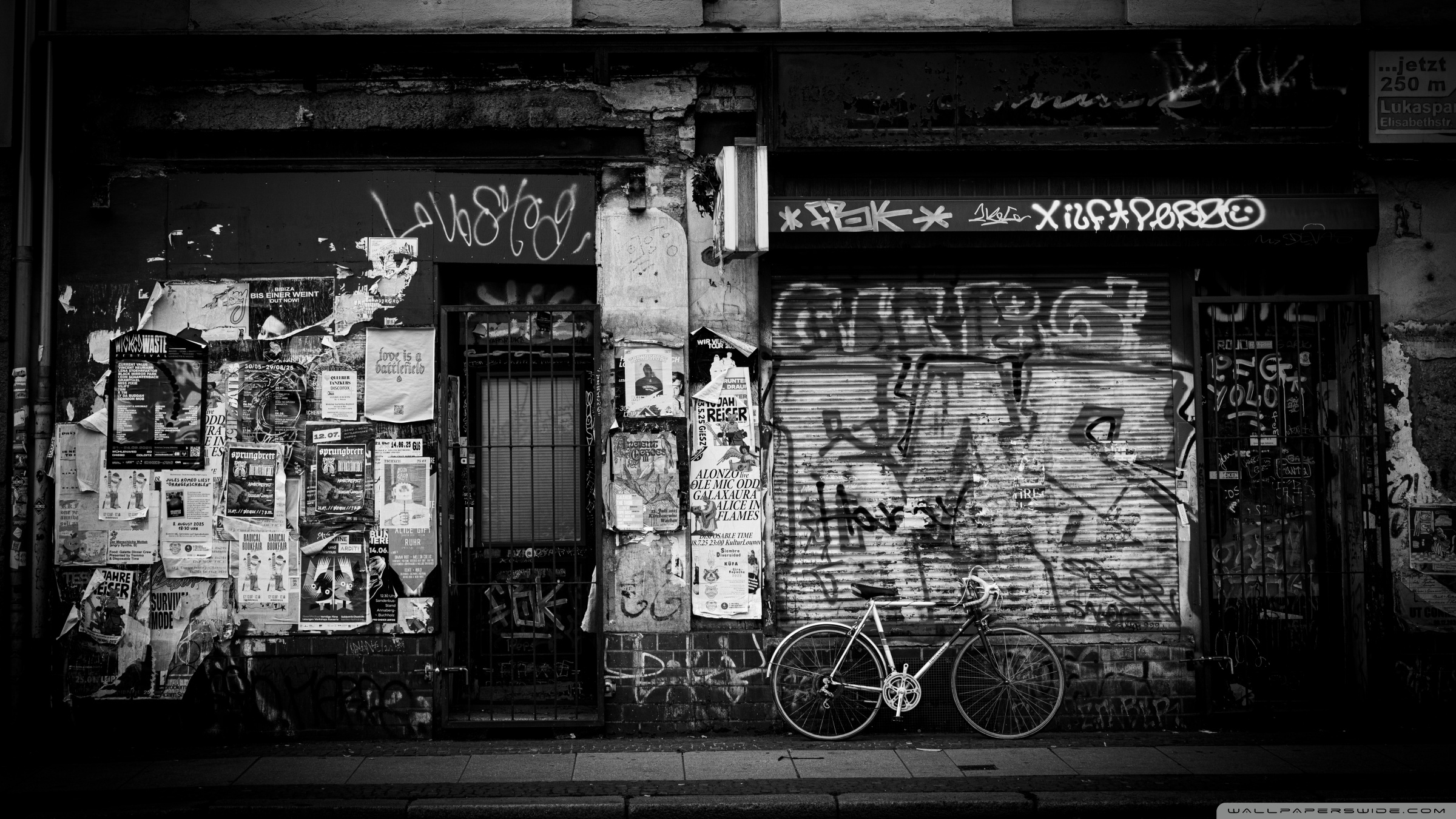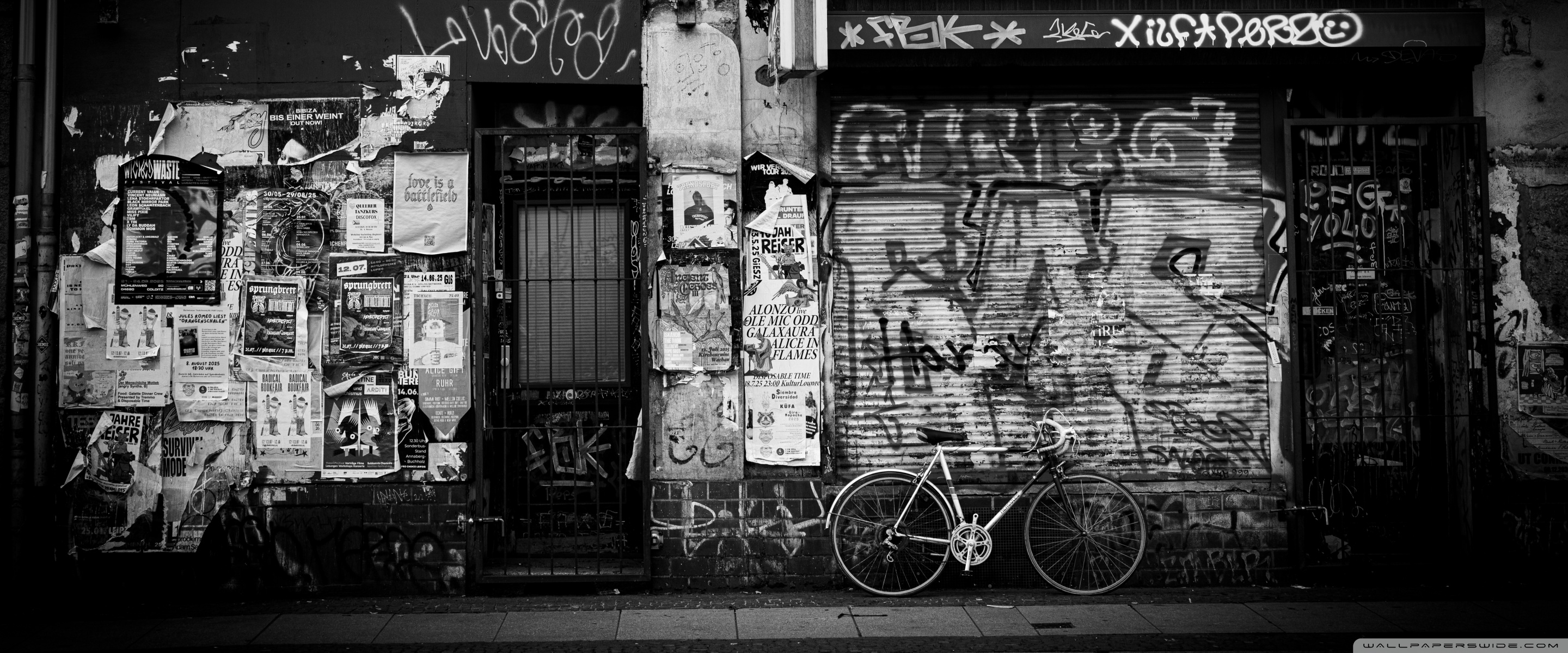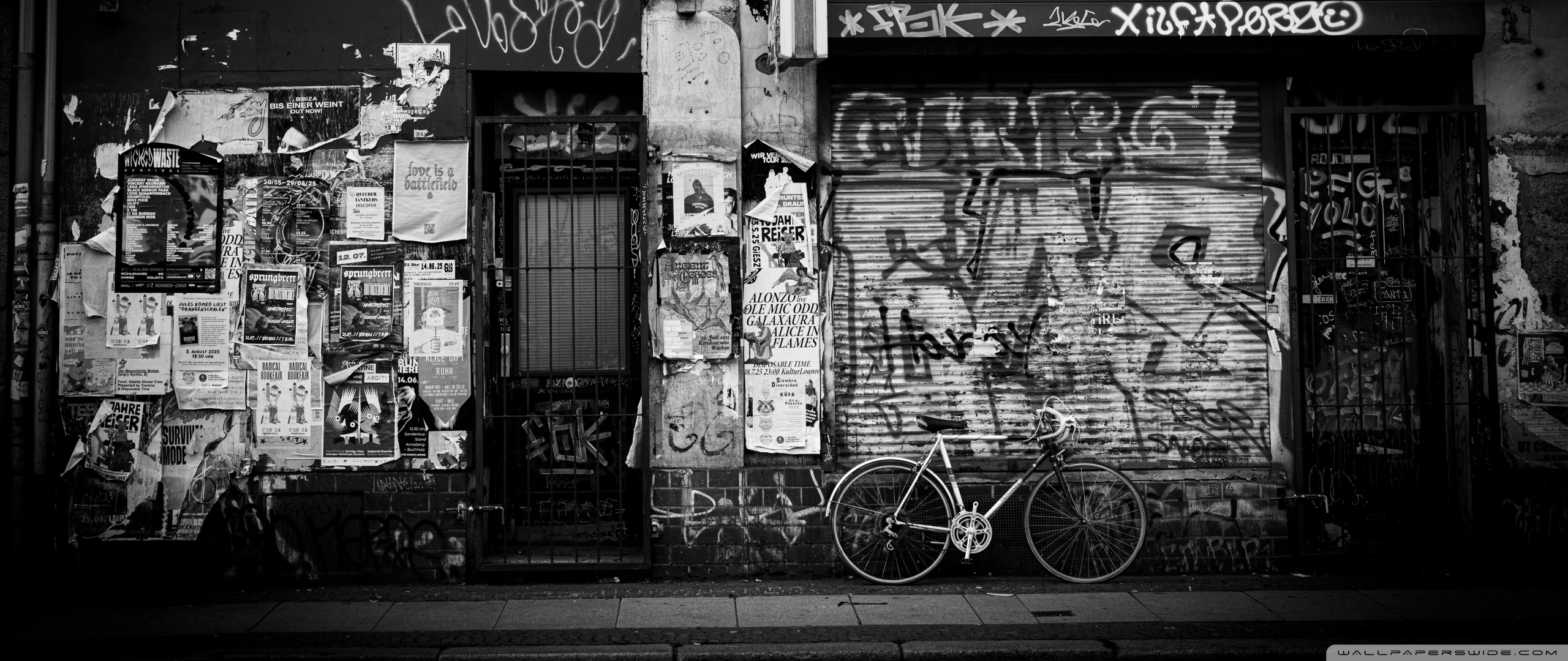 Download Urban Graffiti Wall with Bicycle 4K UHD Wallpaper