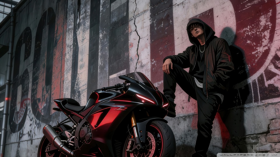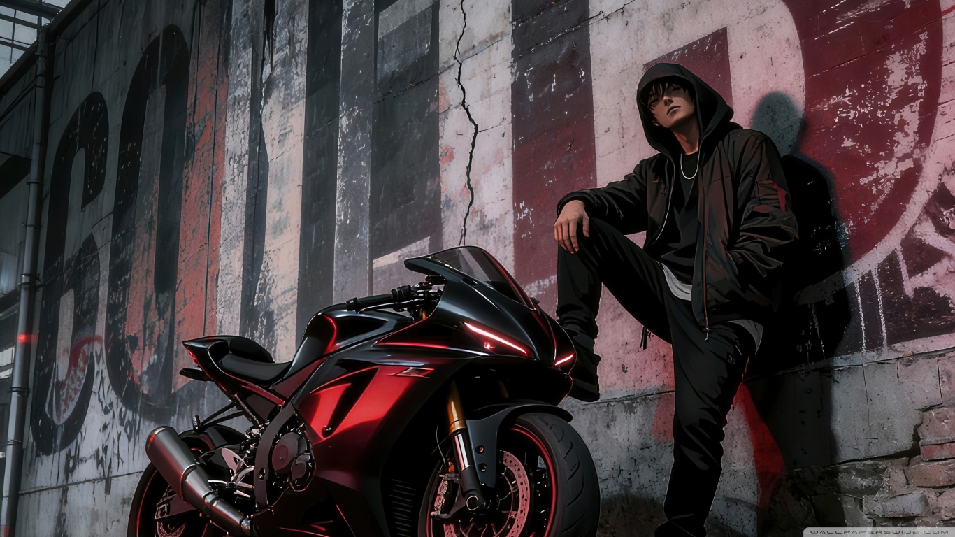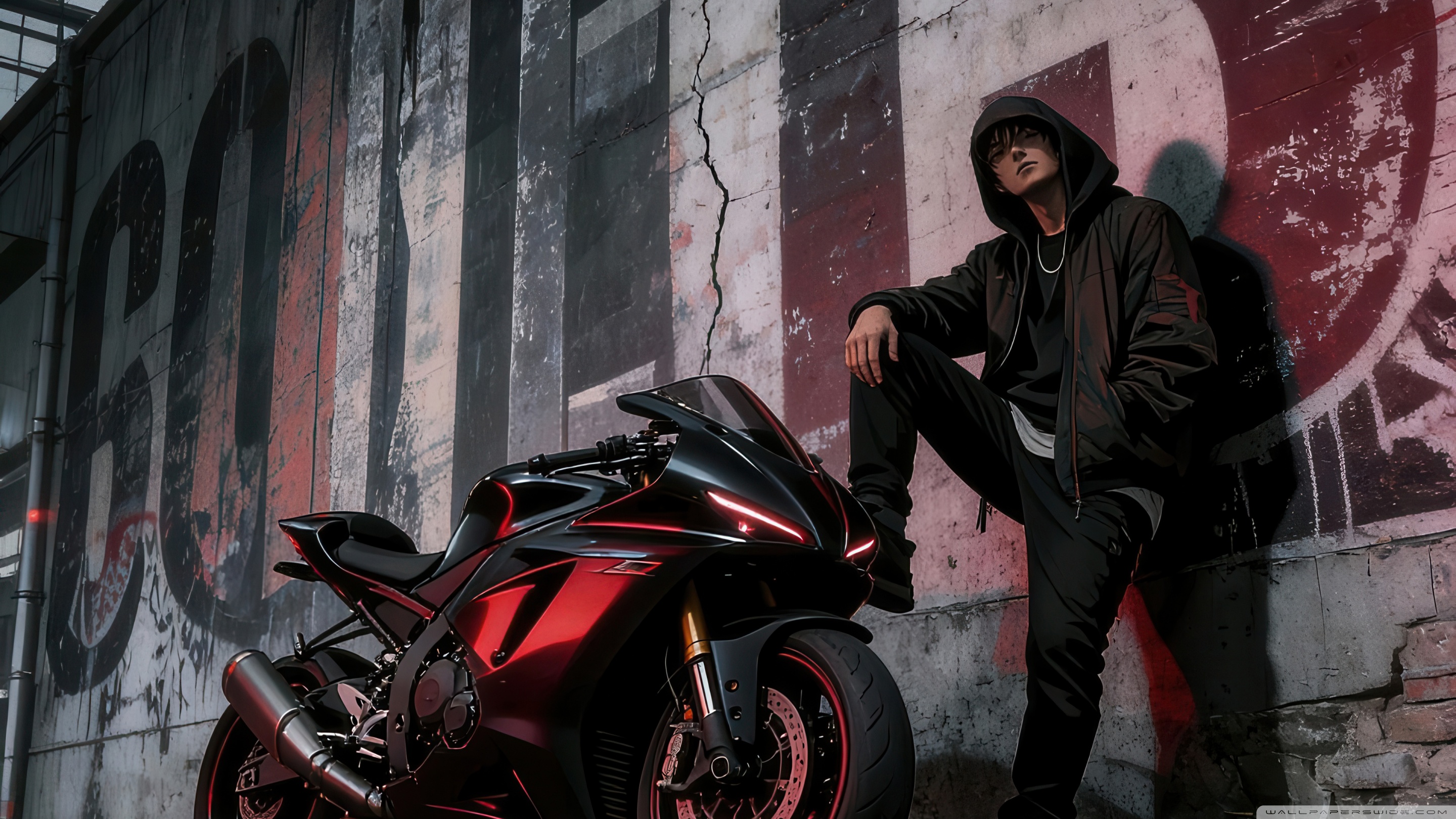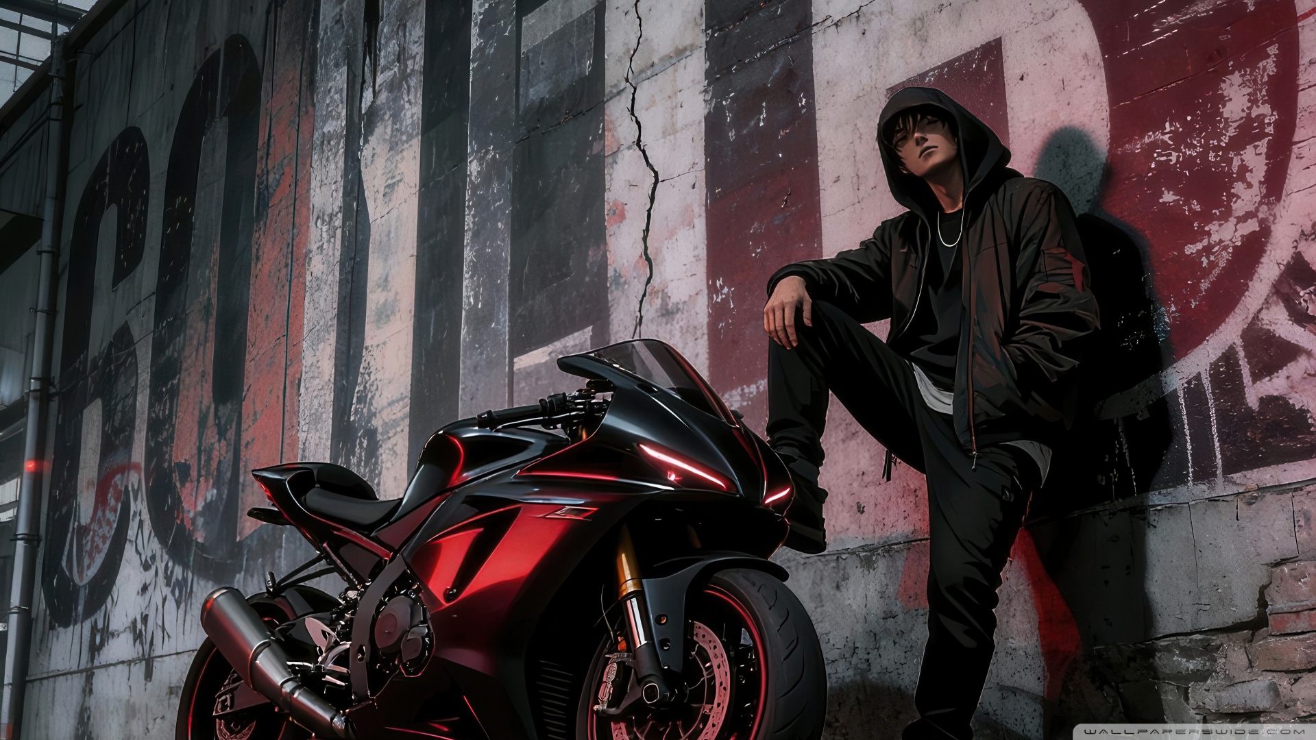 Download Urban Rebel Sportbike Anime Boy 4K UHD Wallpaper