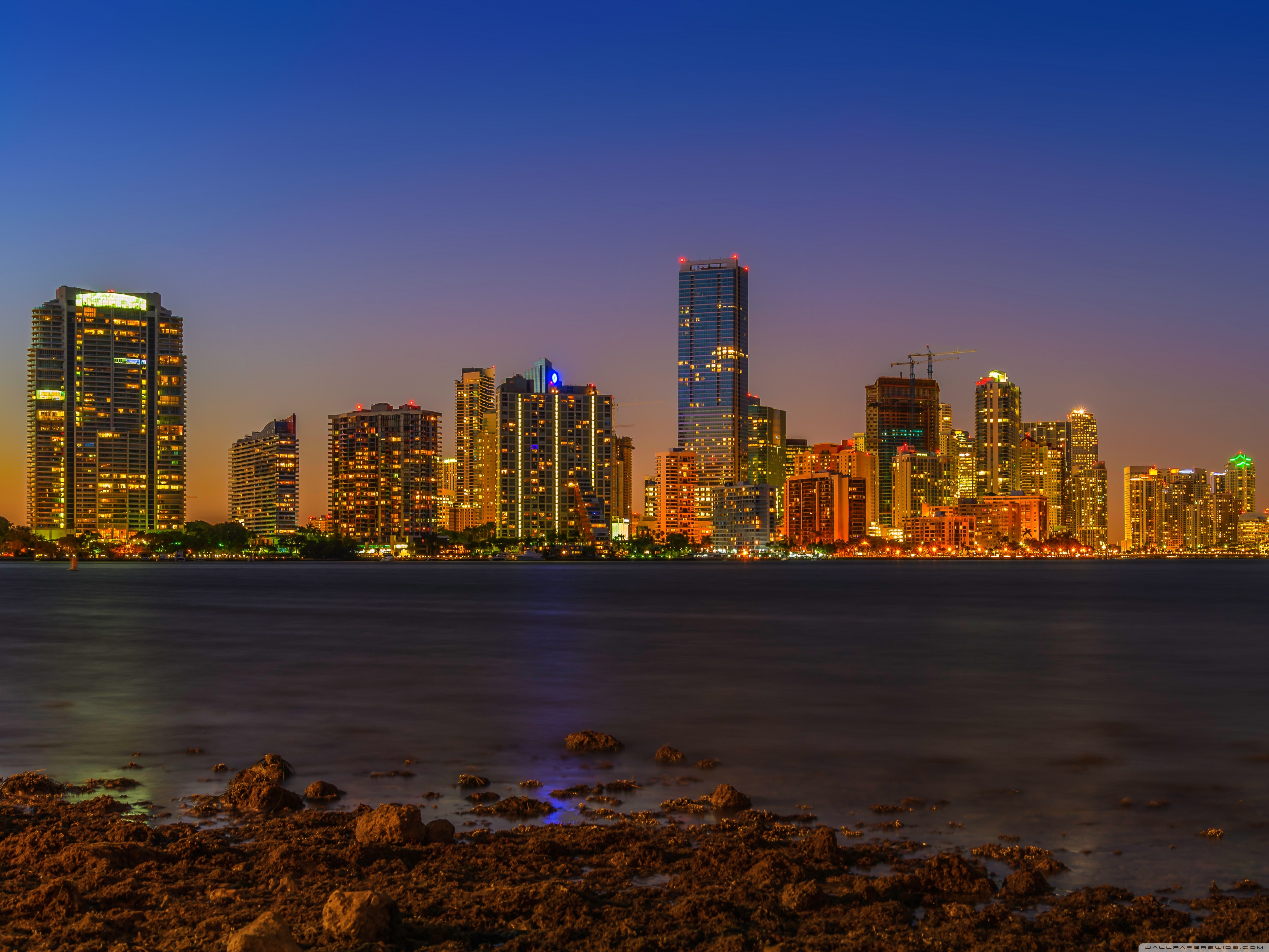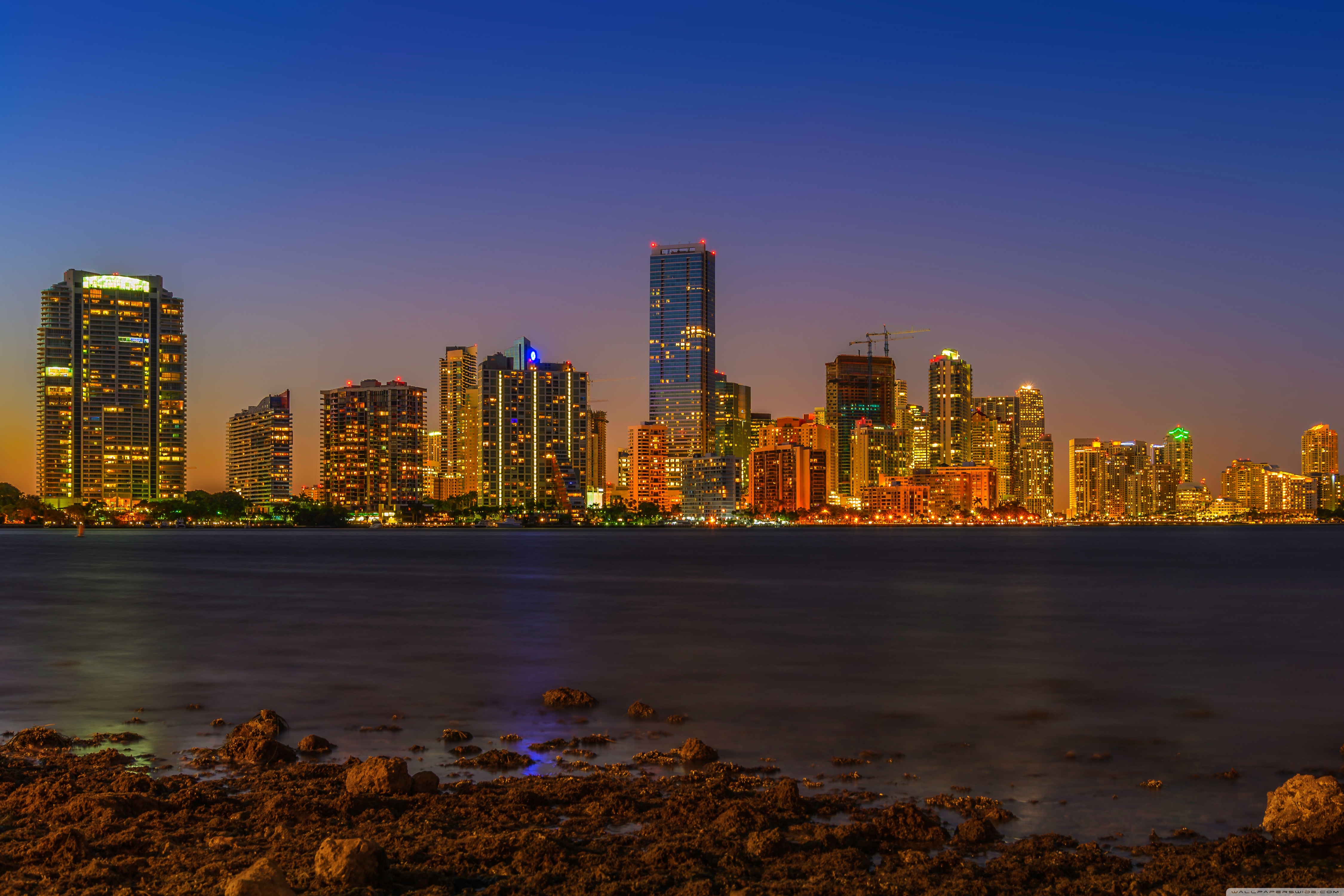 Download View of the skyline of Miami, Florida, USA 4K UHD Wallpaper