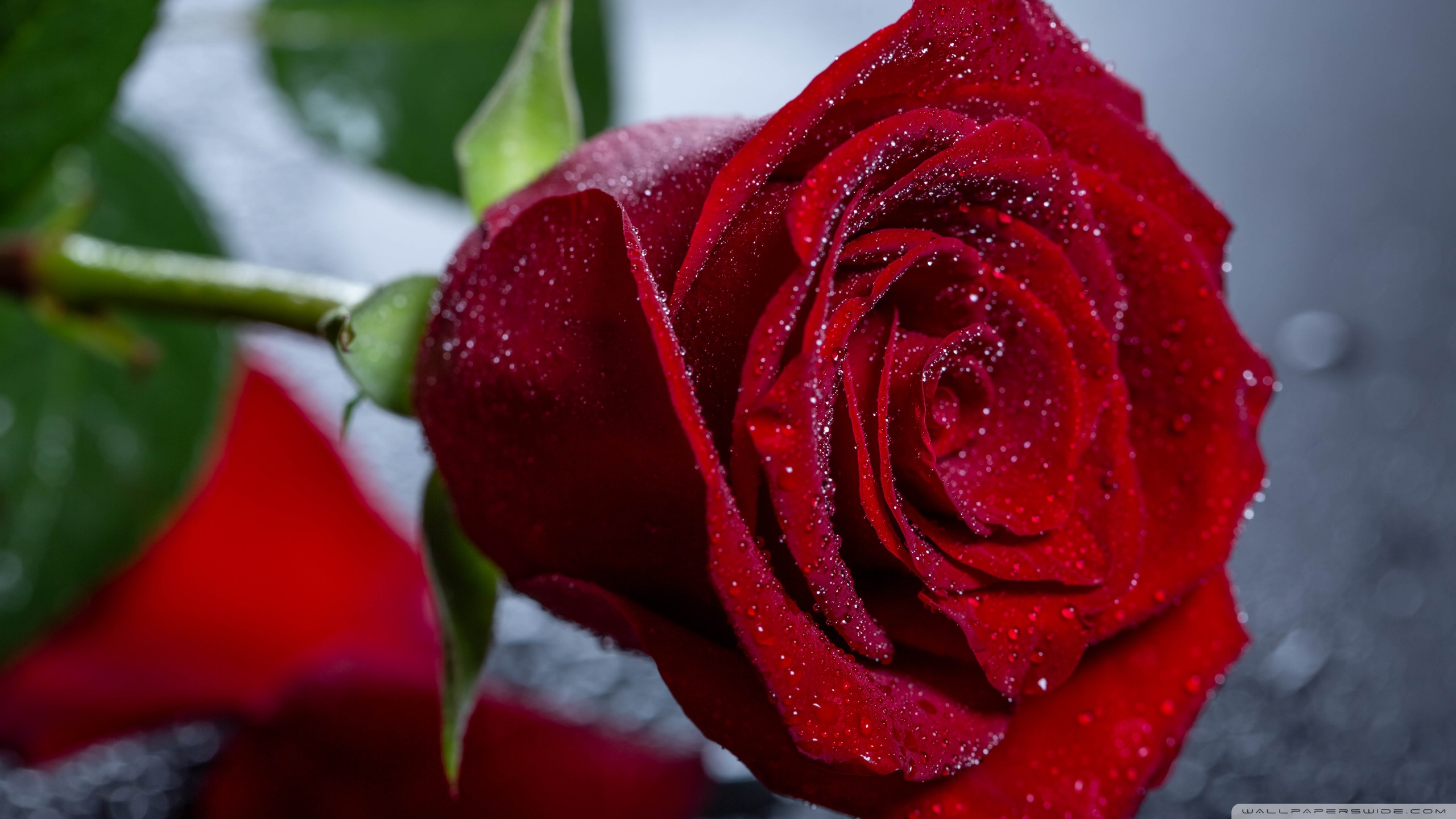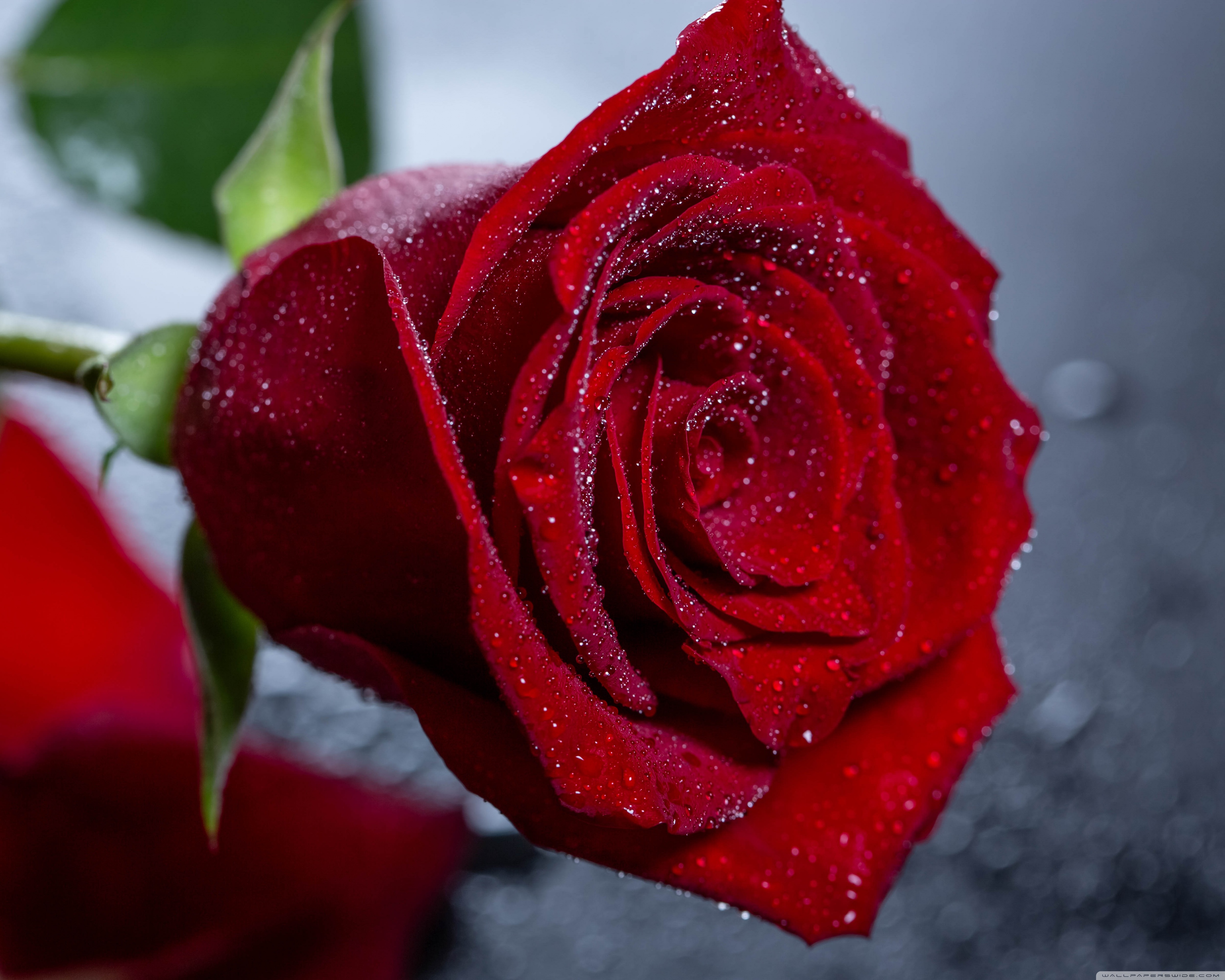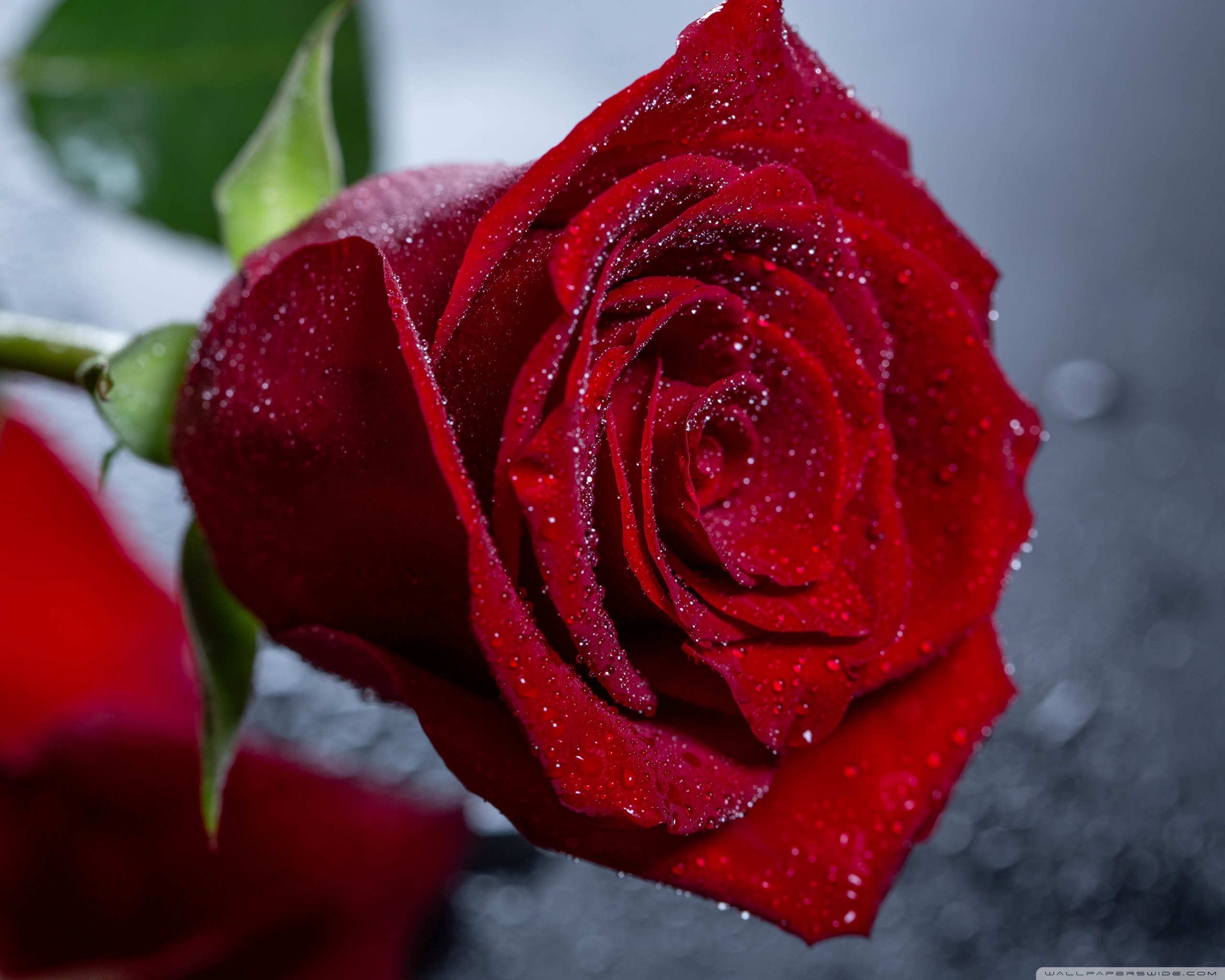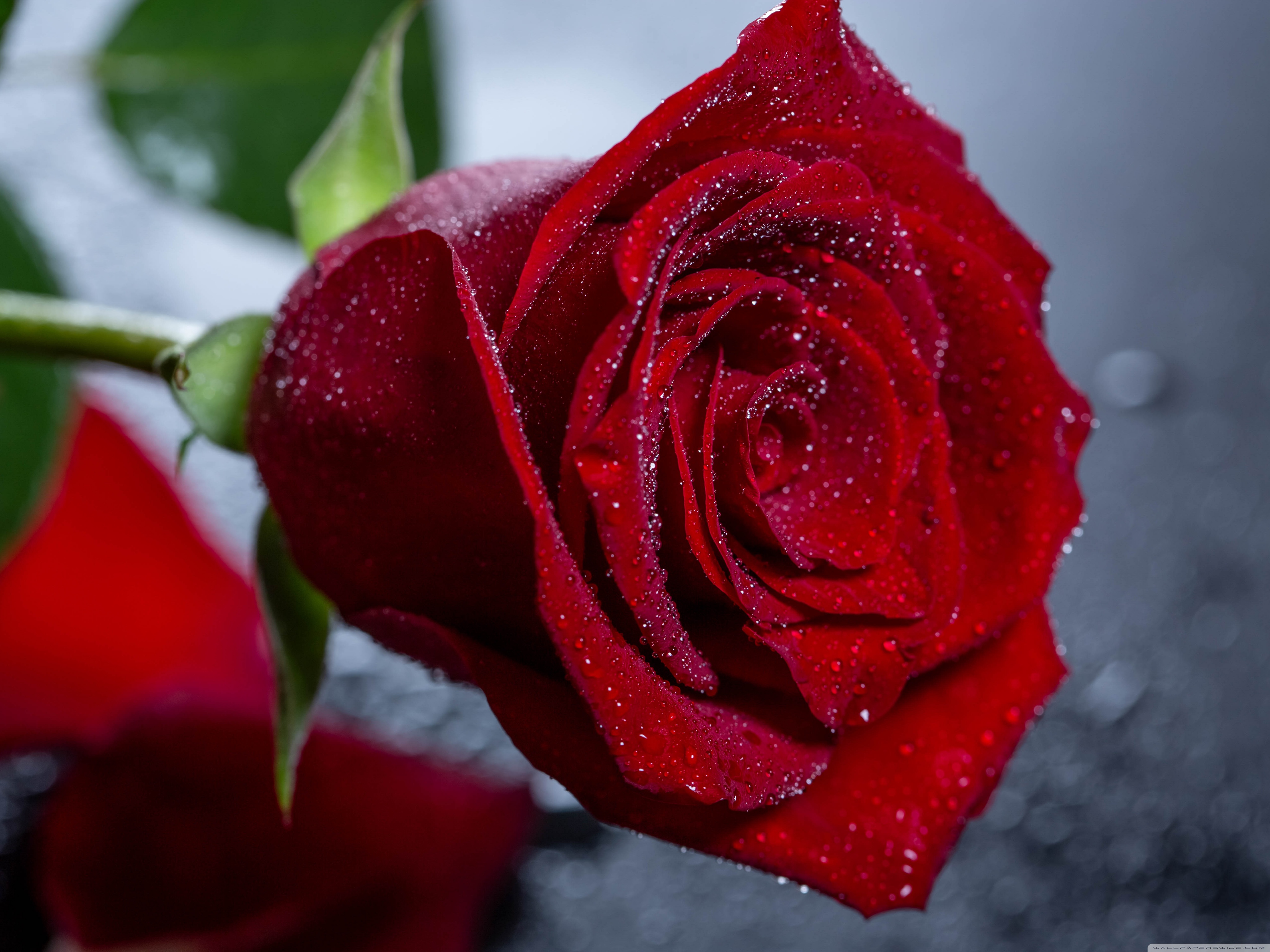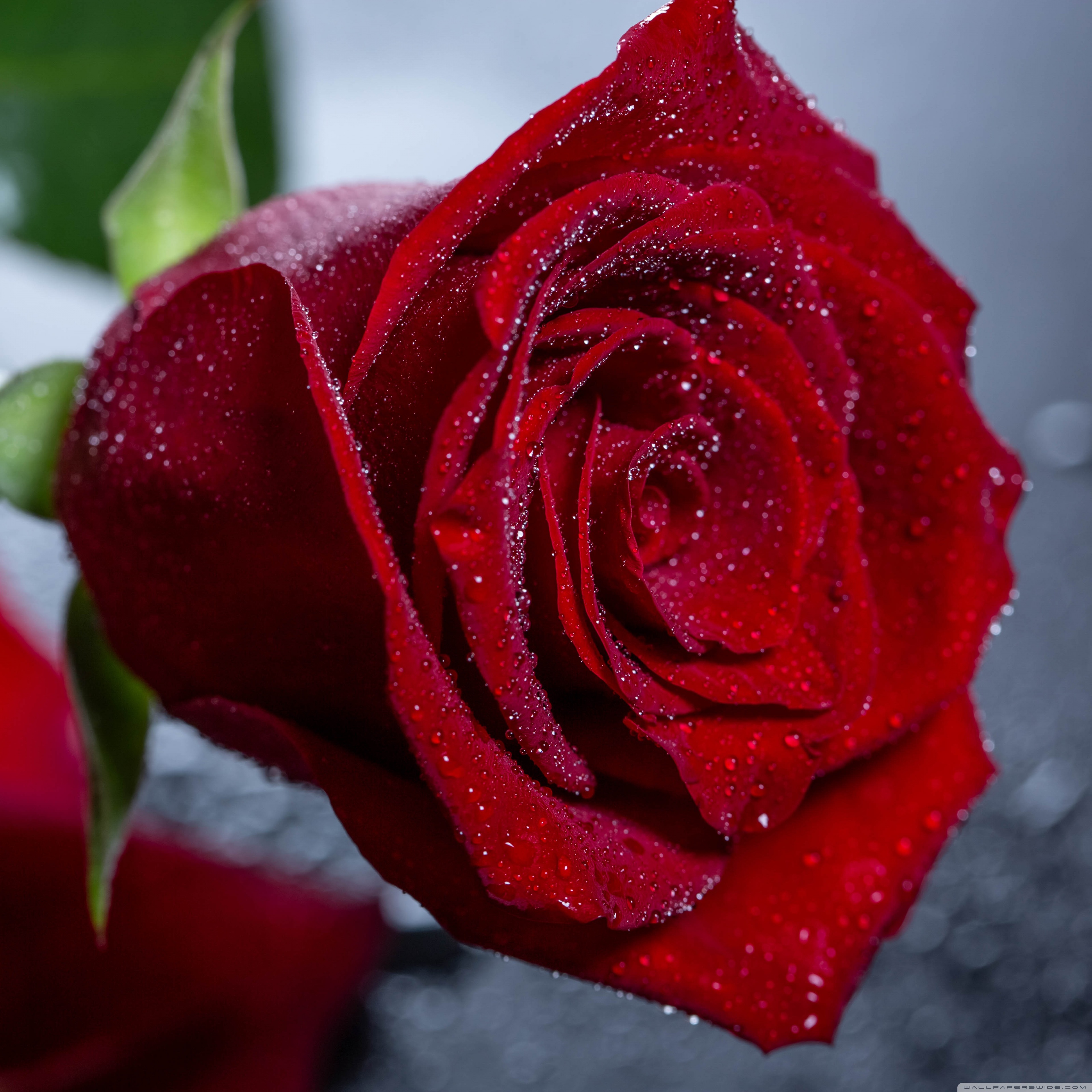 Download Water Drops on a Red Rose Macro 4K UHD Wallpaper