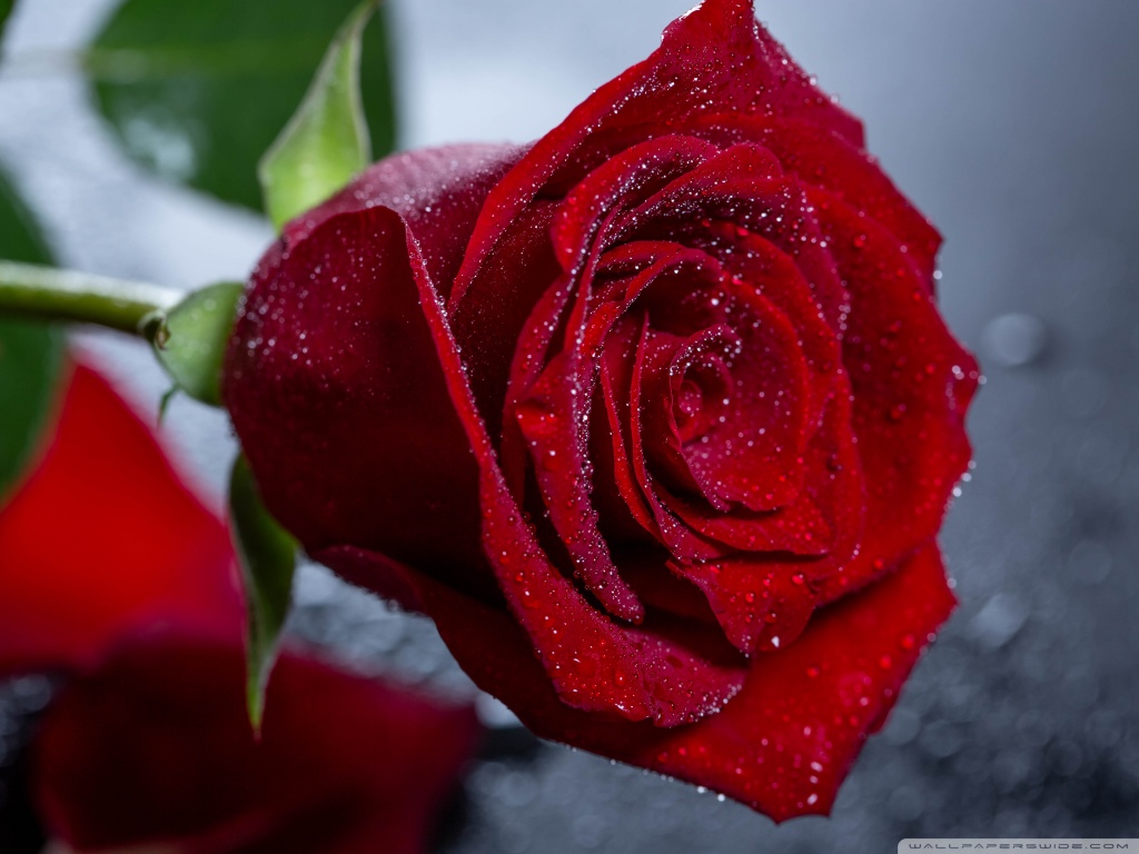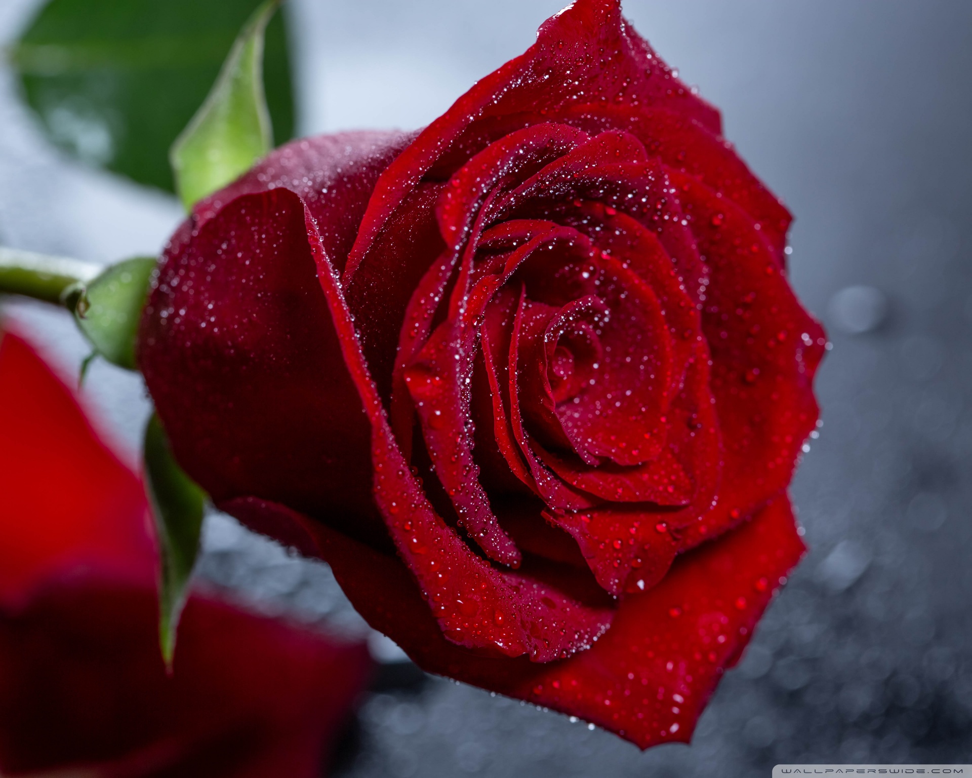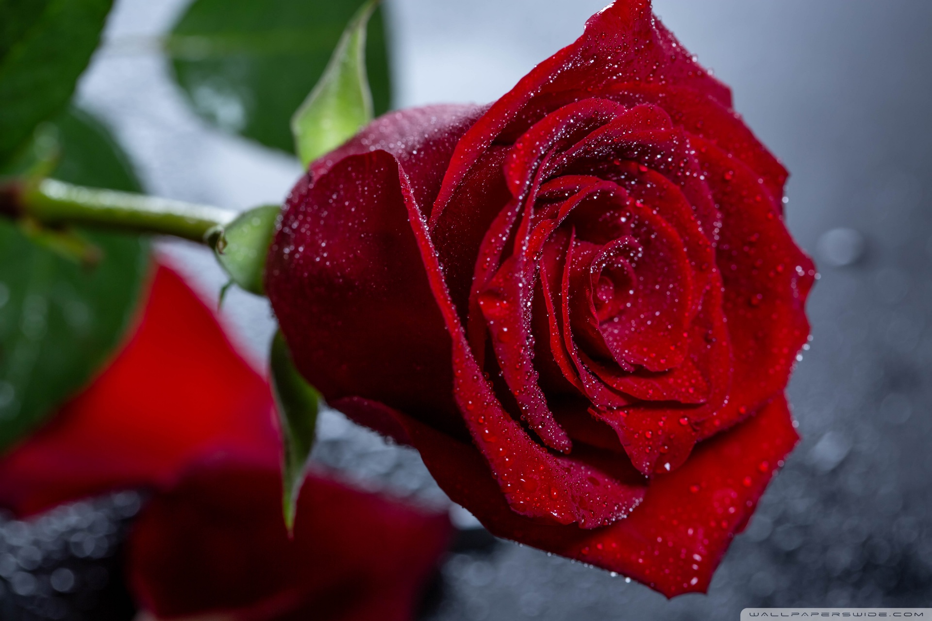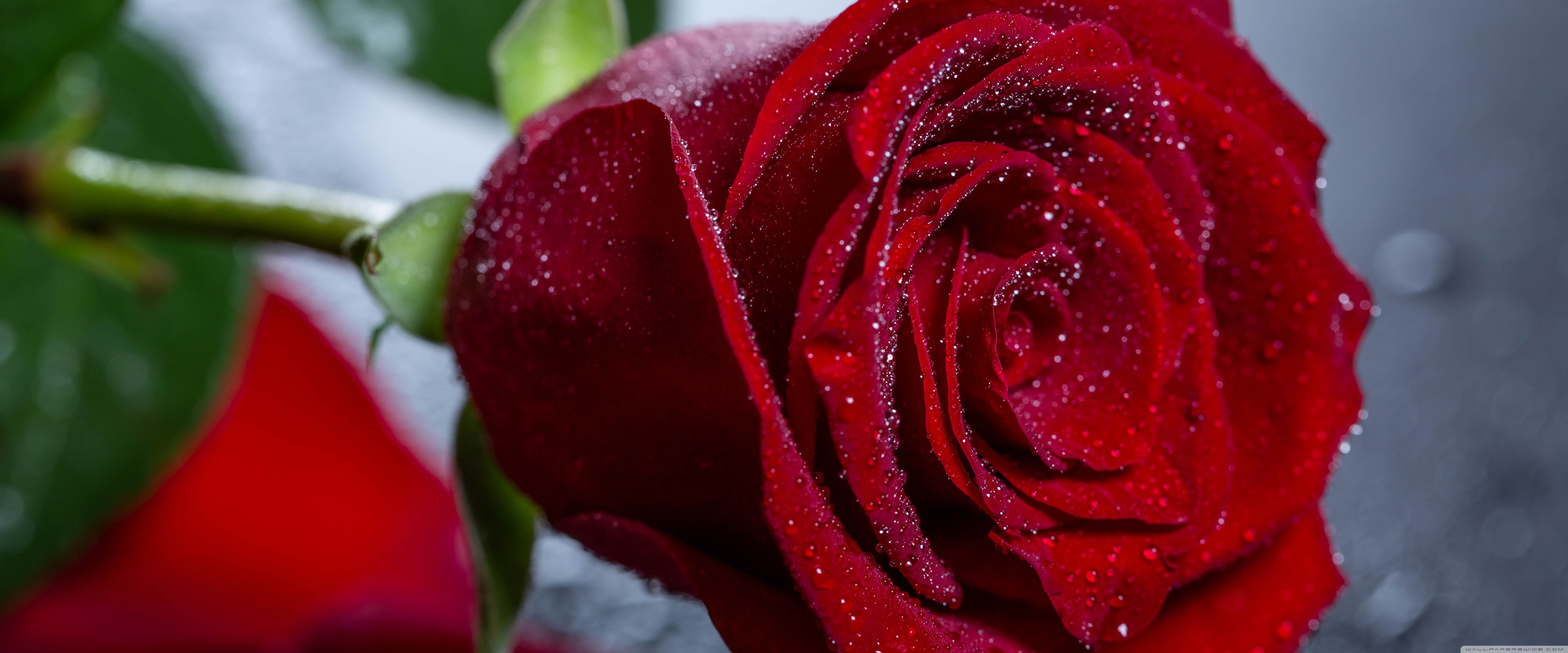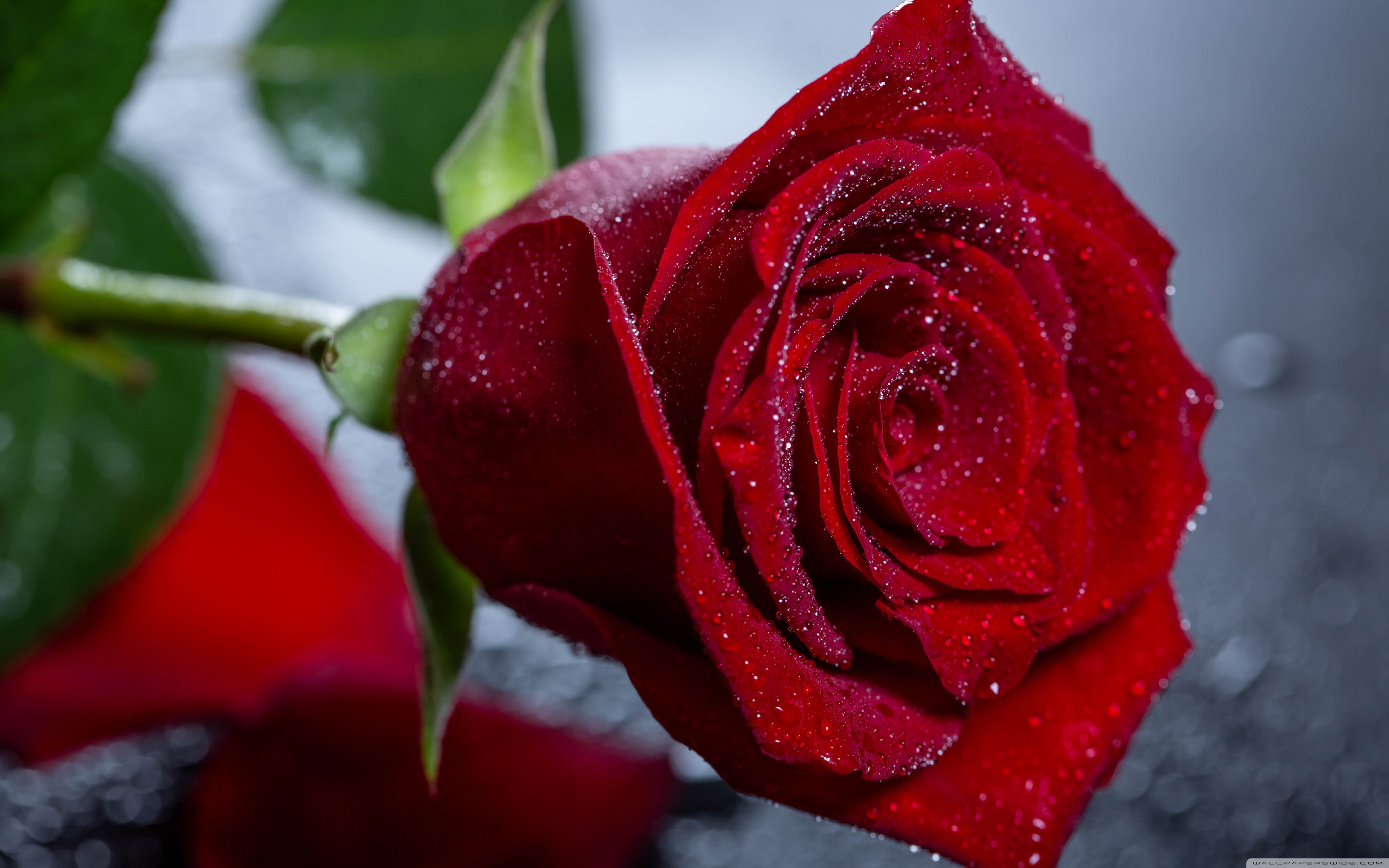 Download Water Drops on a Red Rose Macro 4K UHD Wallpaper