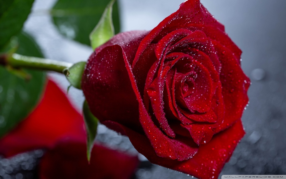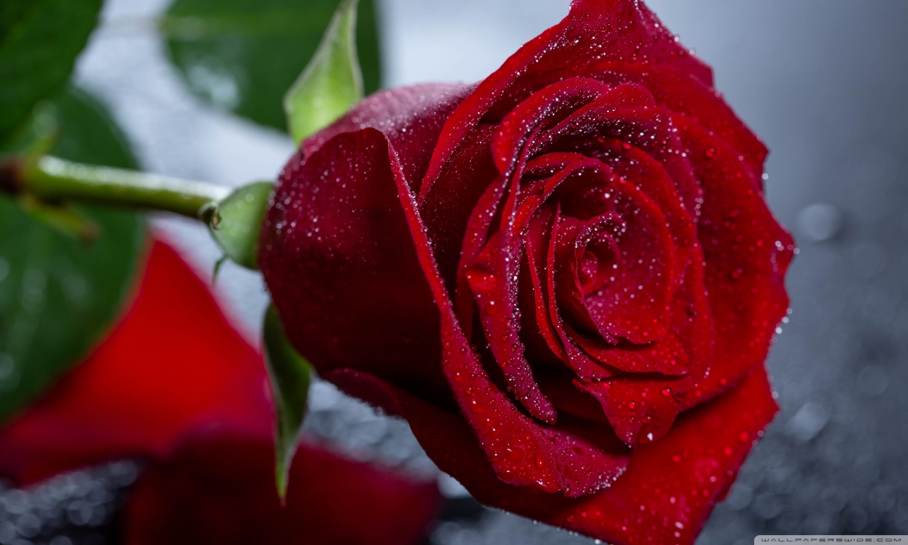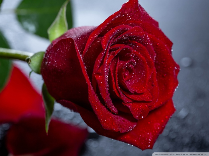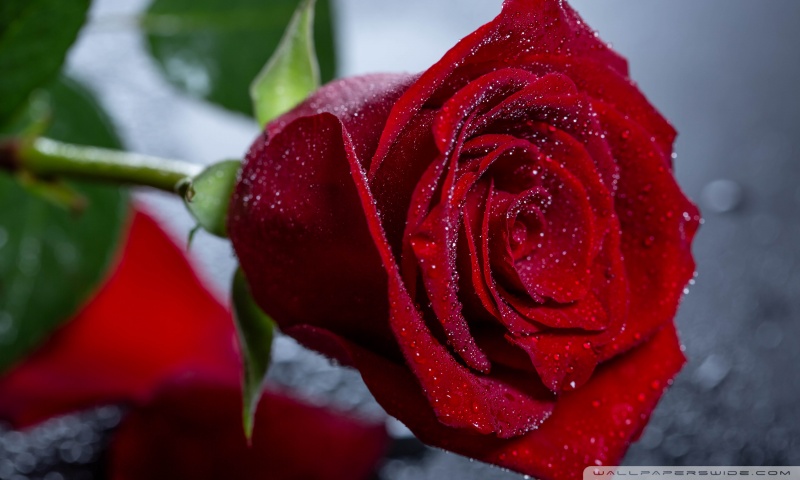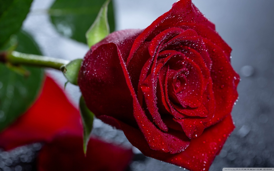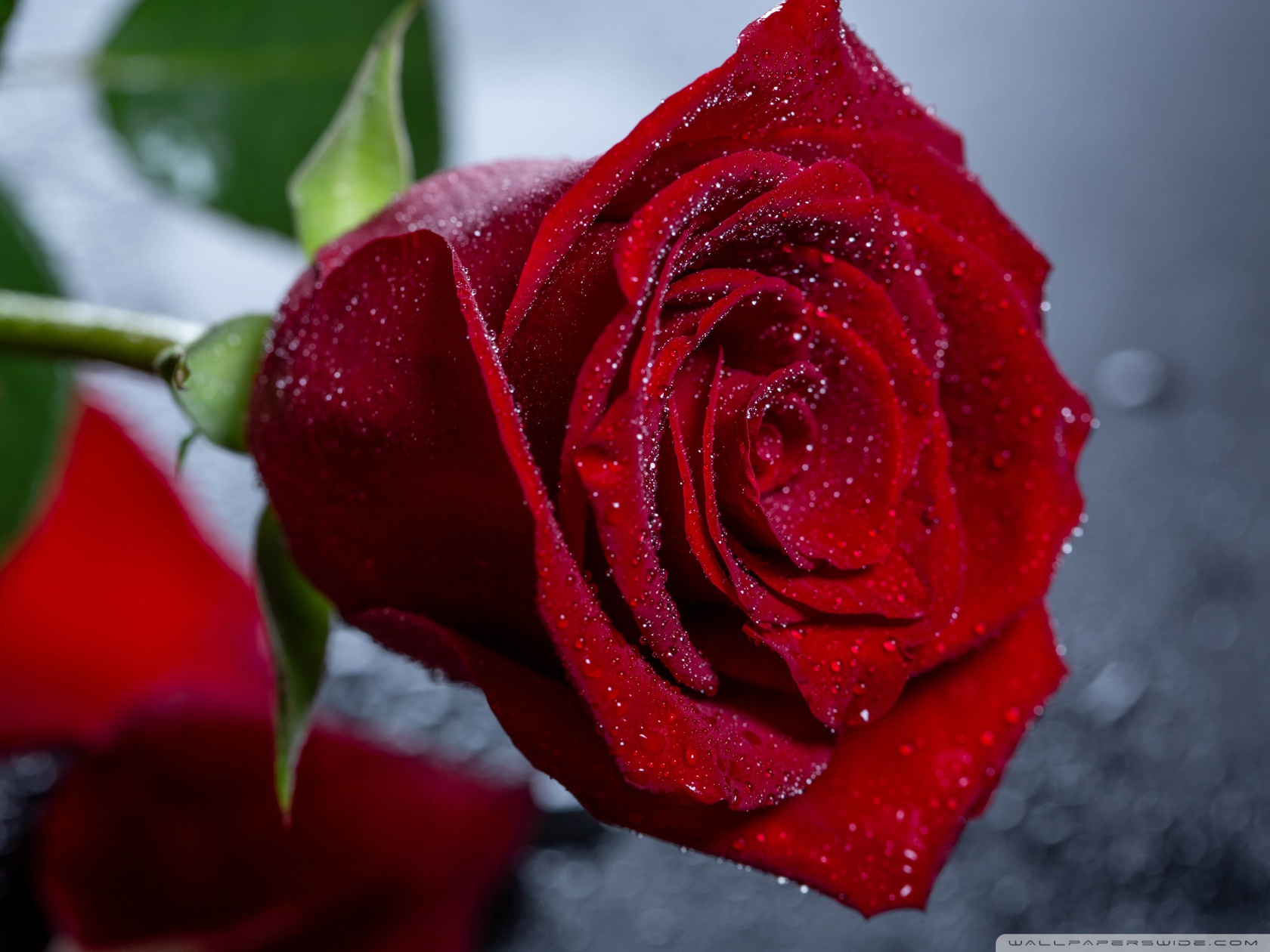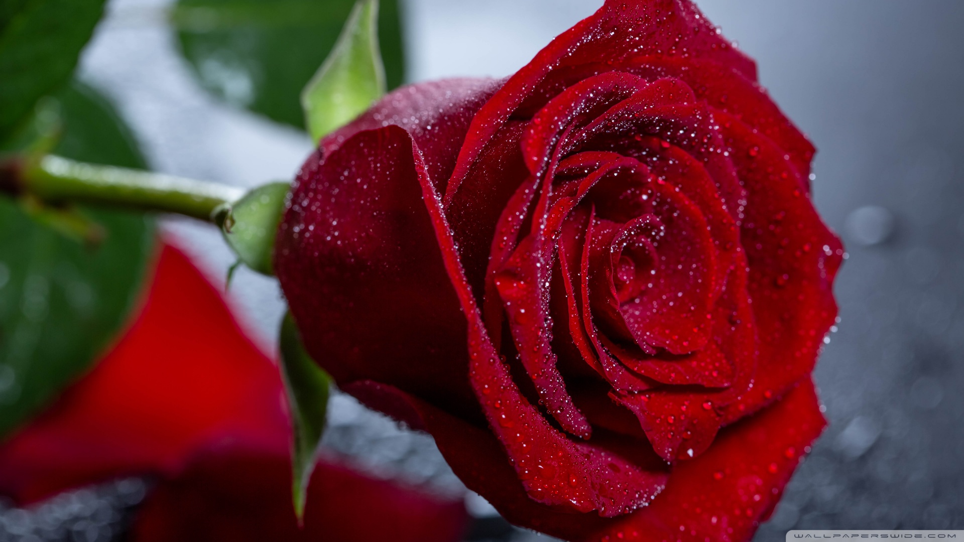 Download Water Drops on a Red Rose Macro 4K UHD Wallpaper