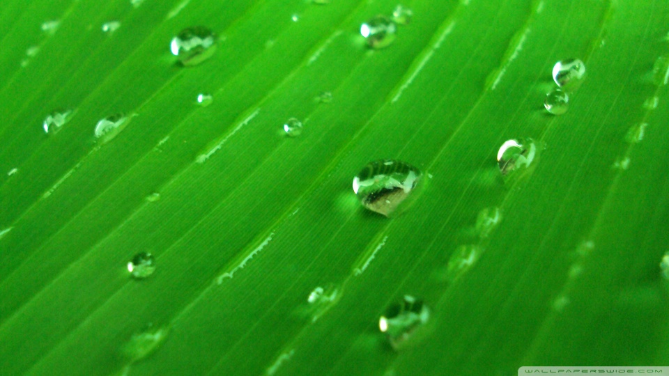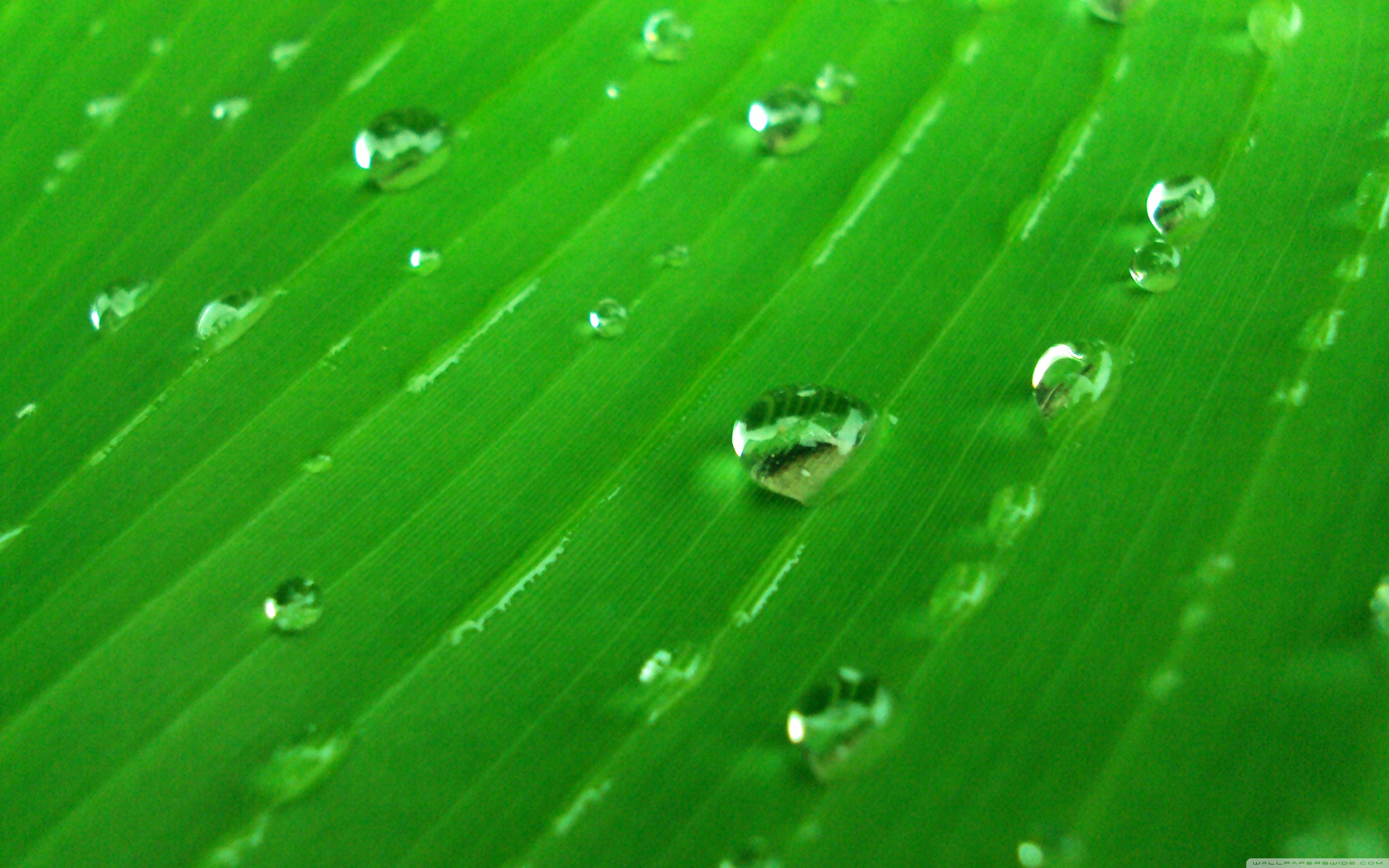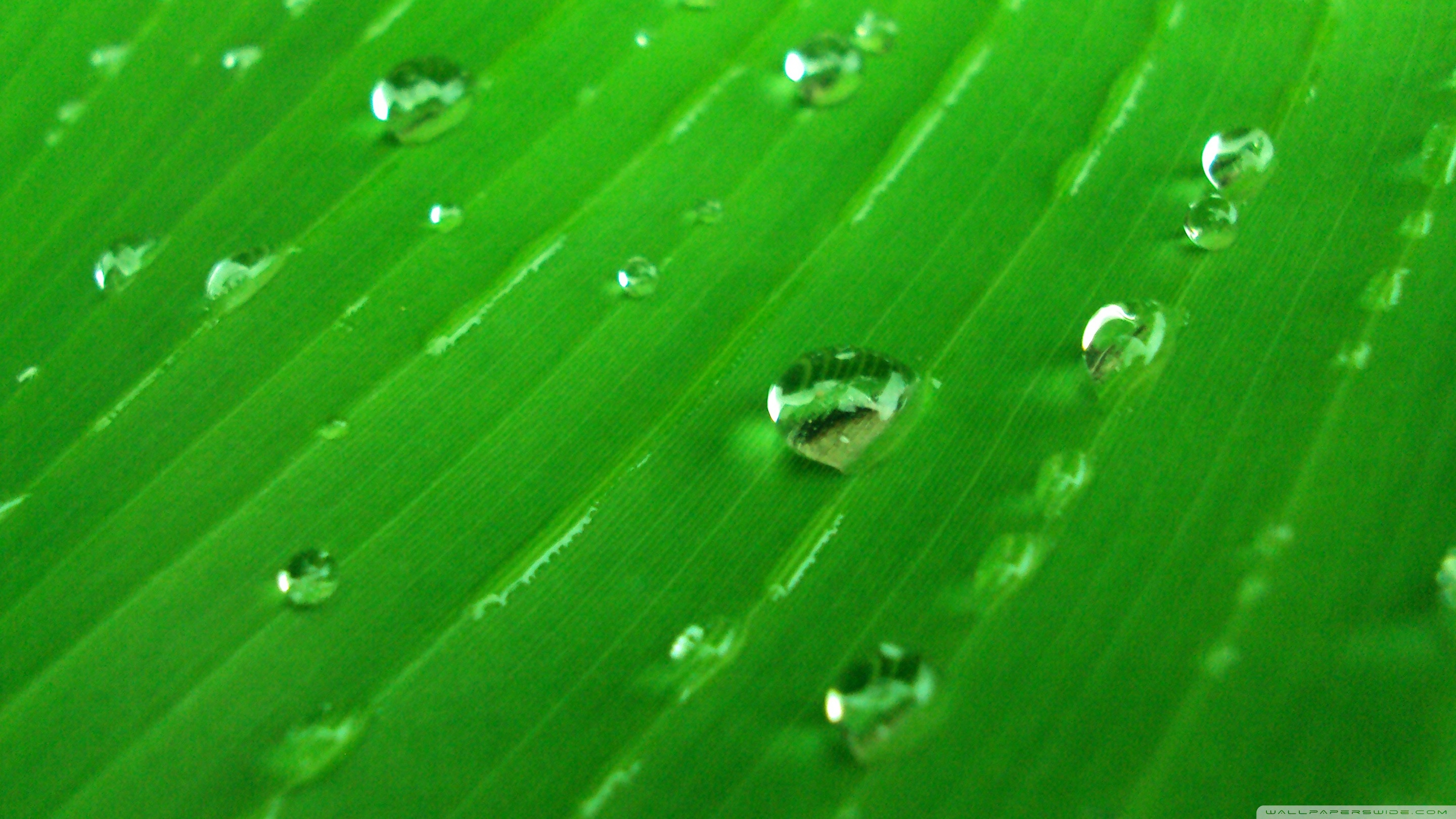 Download Water Drops On Green 4K UHD Wallpaper