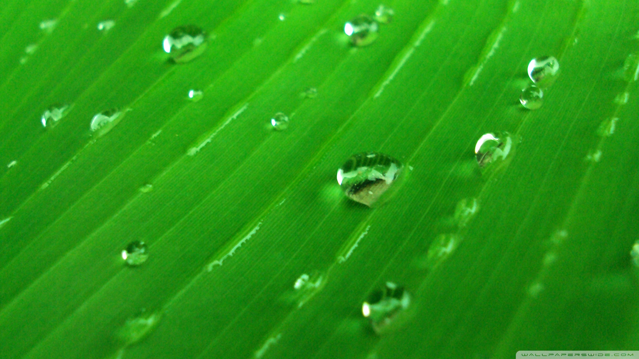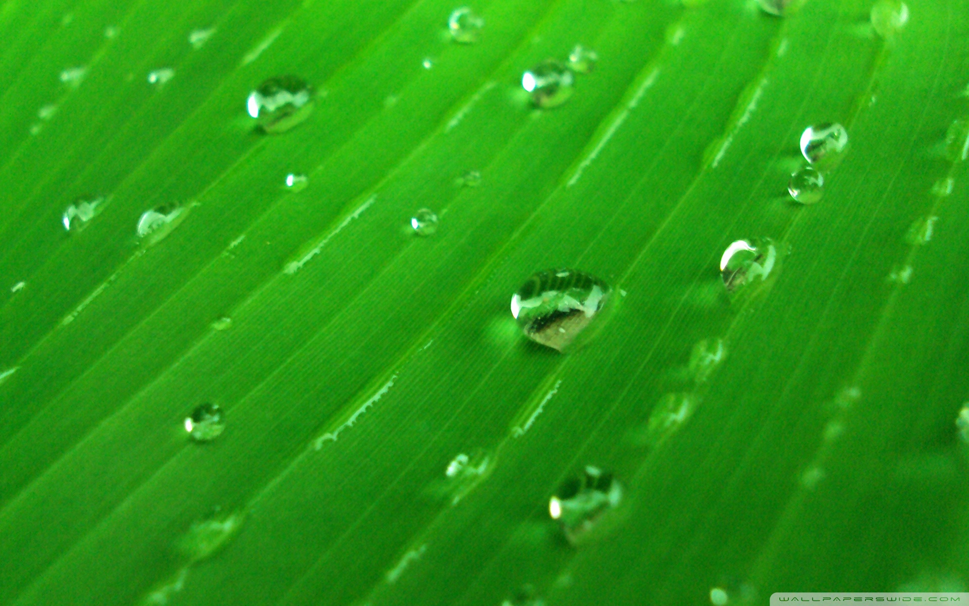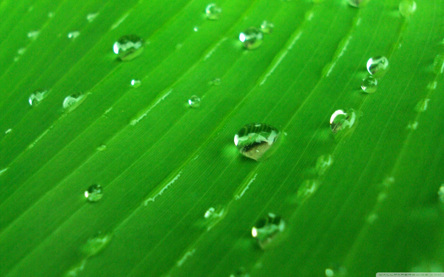Download Water Drops On Green 4K UHD Wallpaper