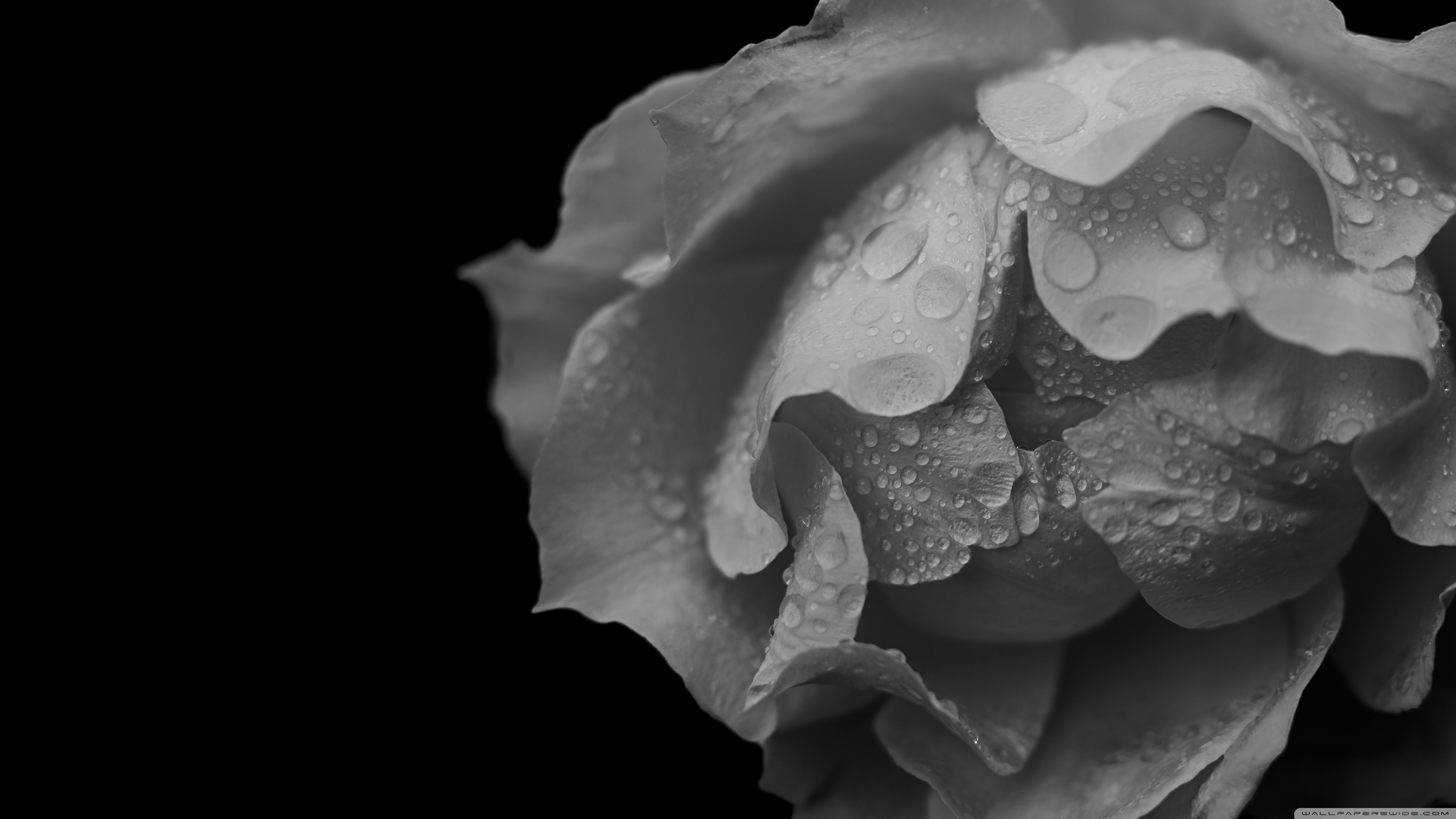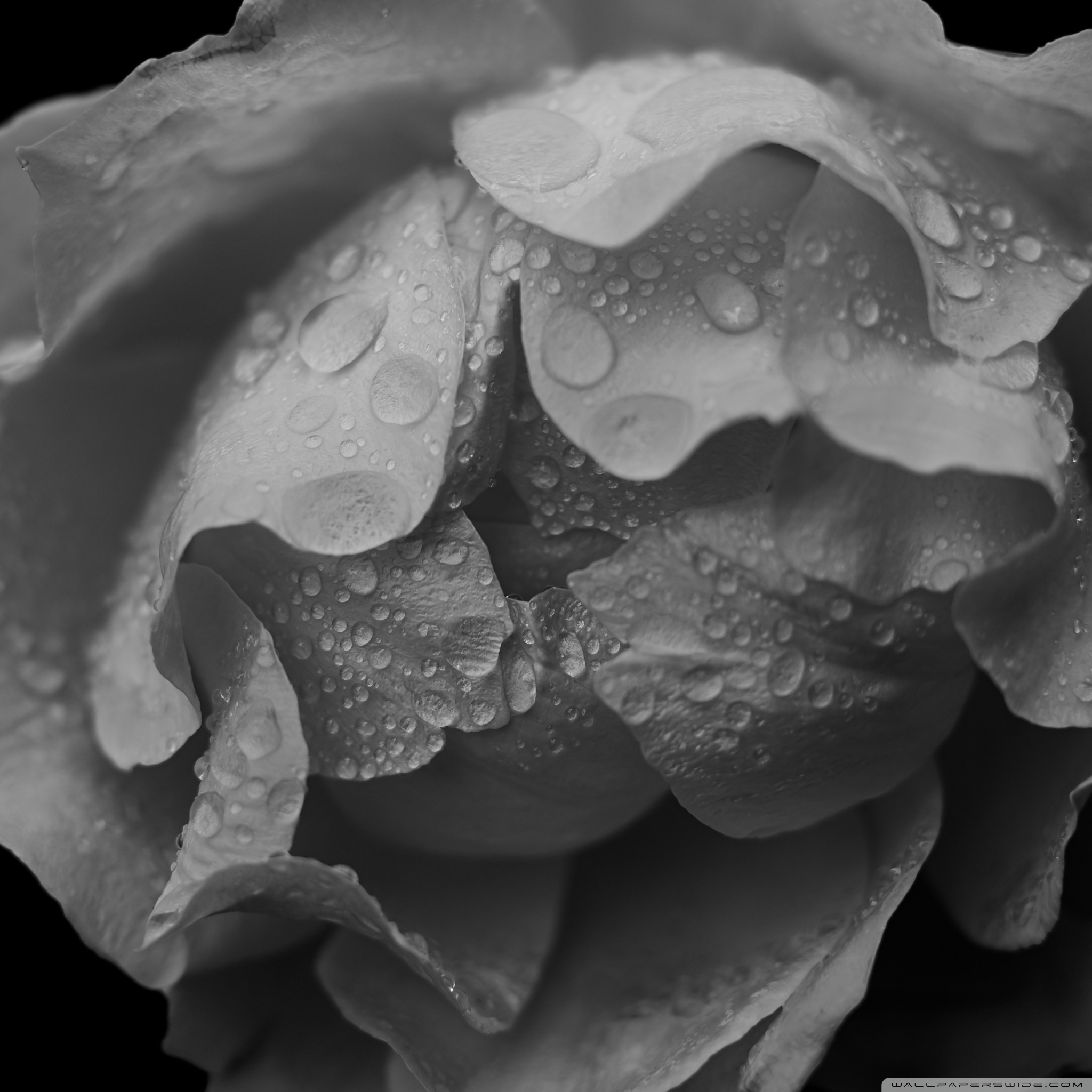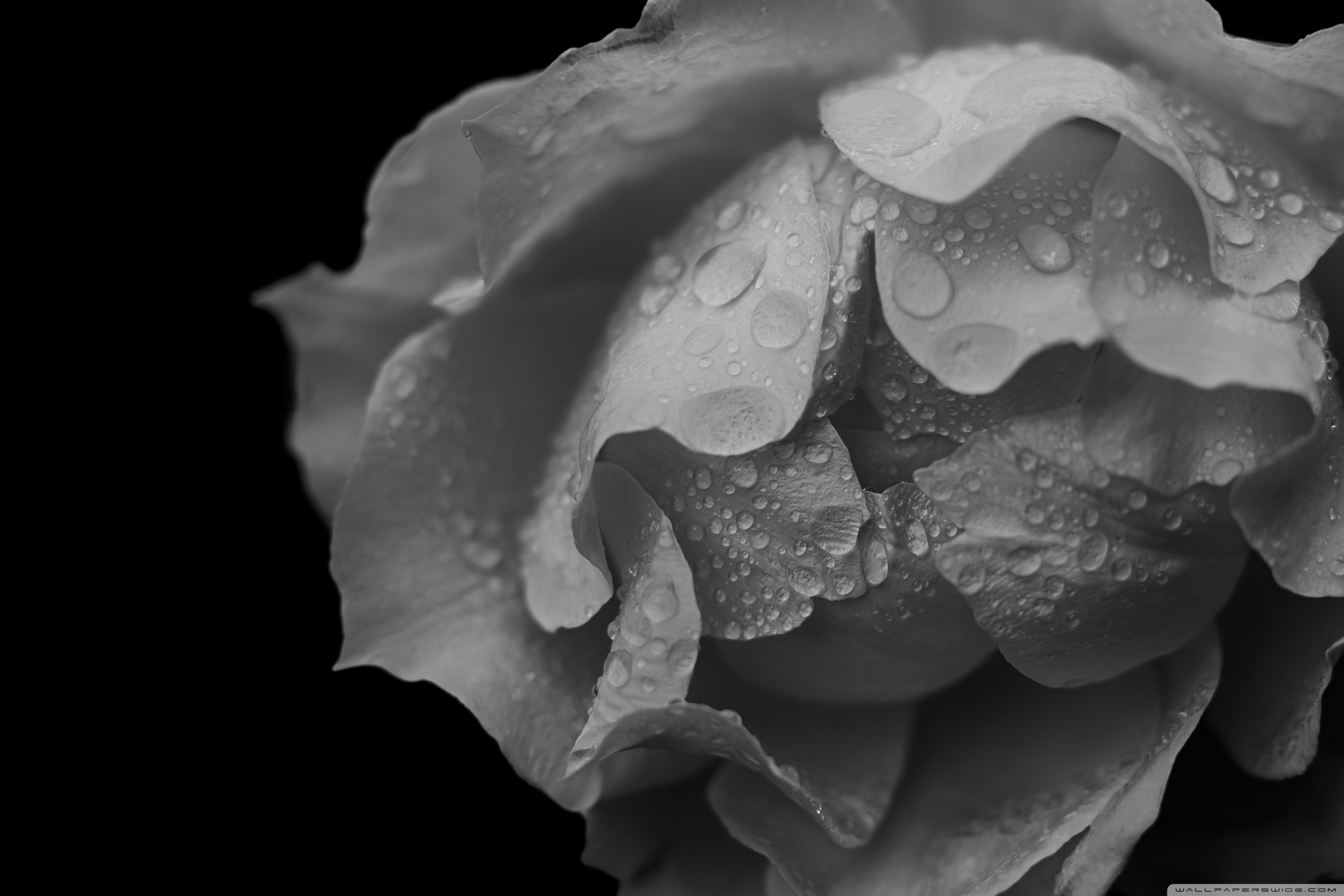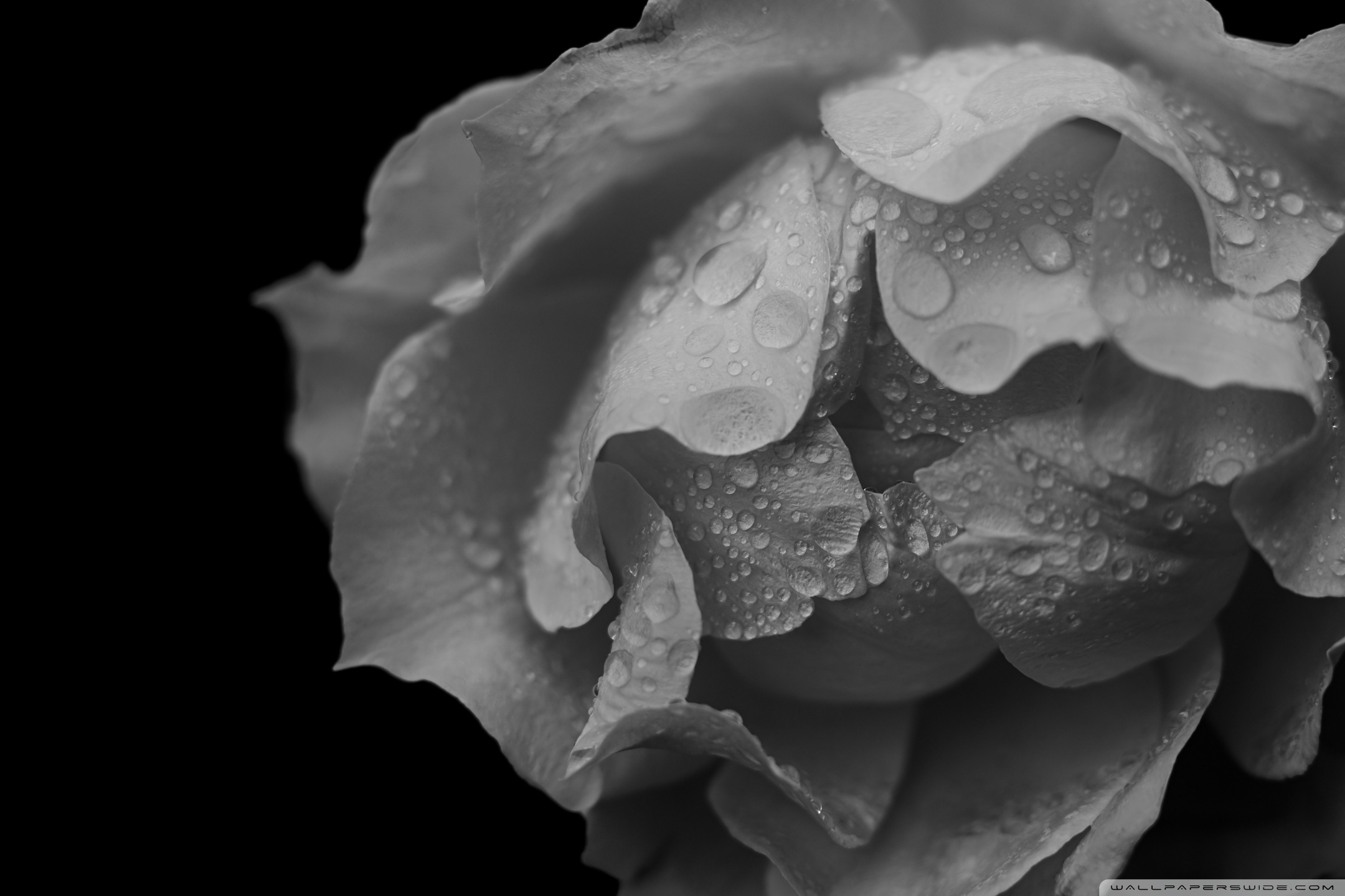 Download Water Drops on Rose, Black and White 4K UHD Wallpaper