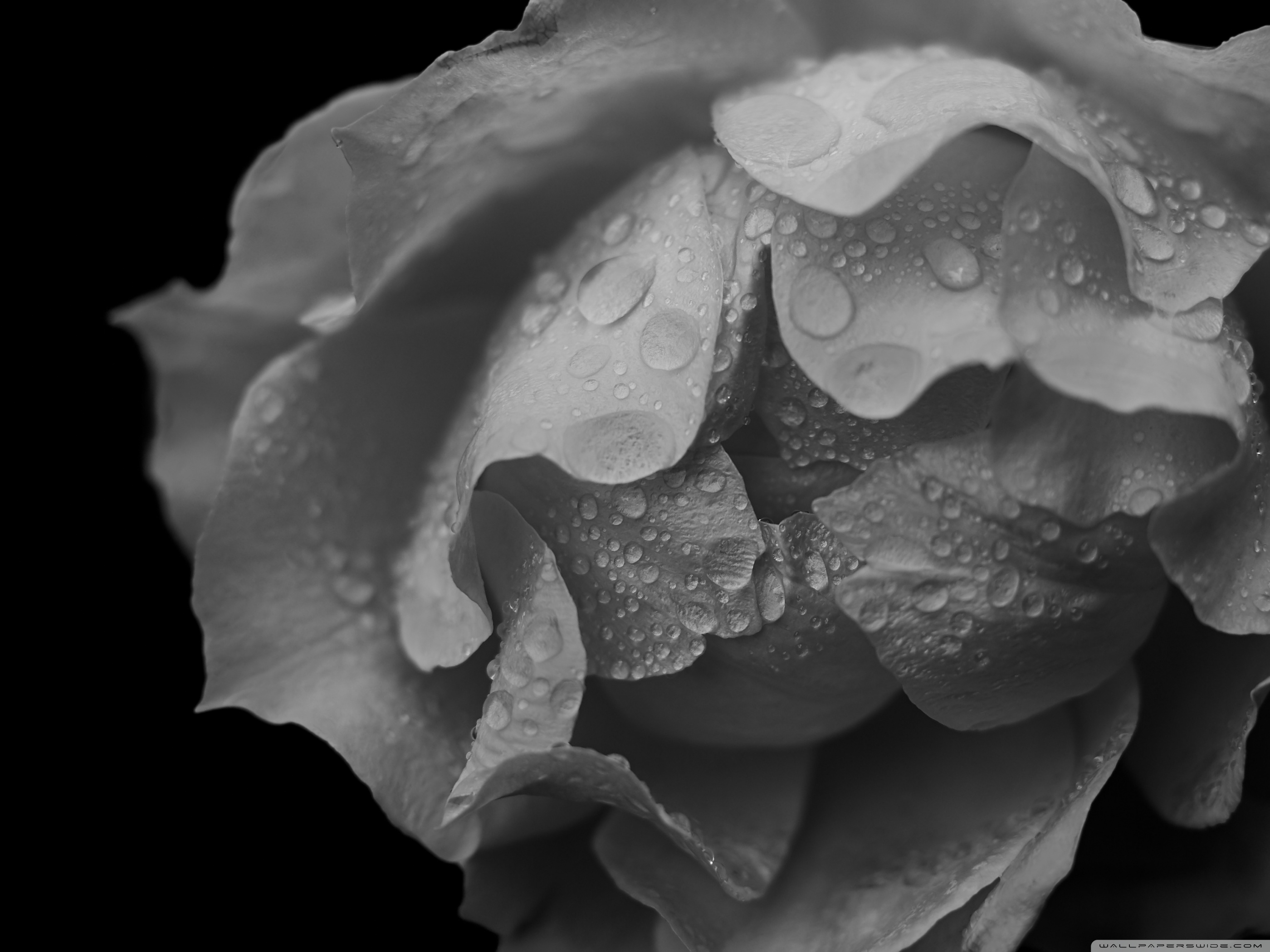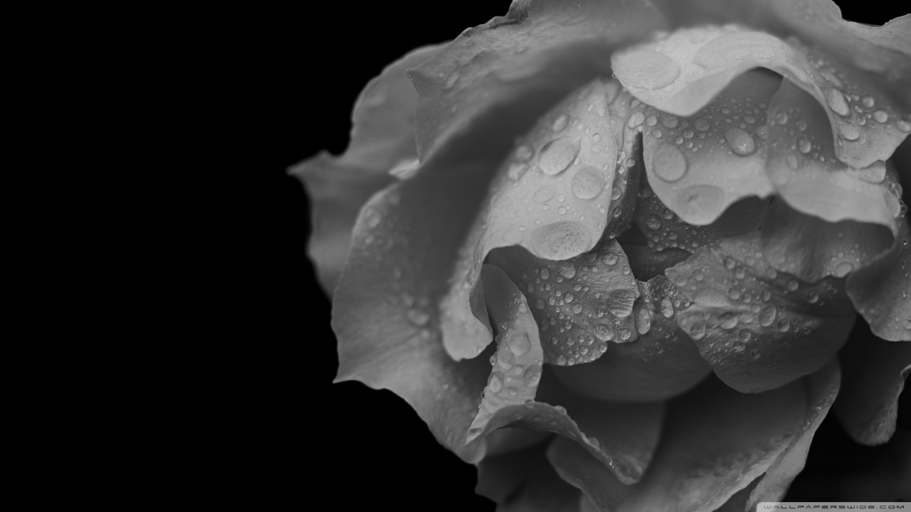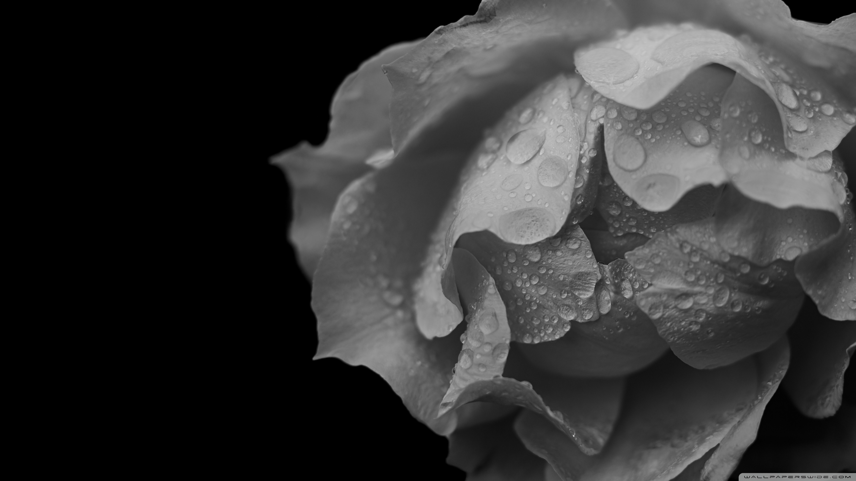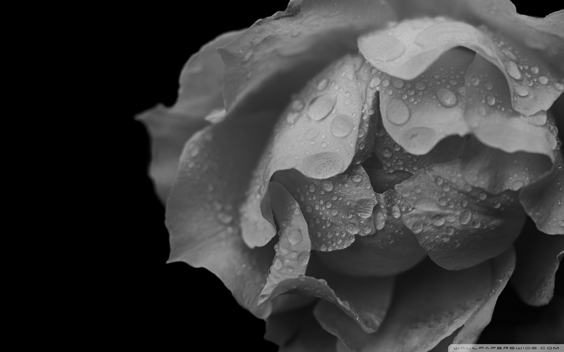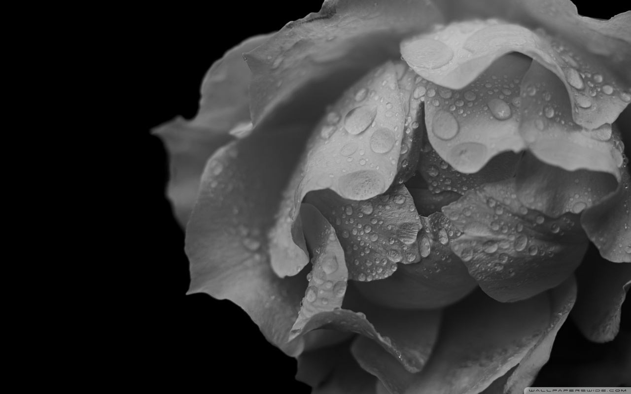 Download Water Drops on Rose, Black and White 4K UHD Wallpaper