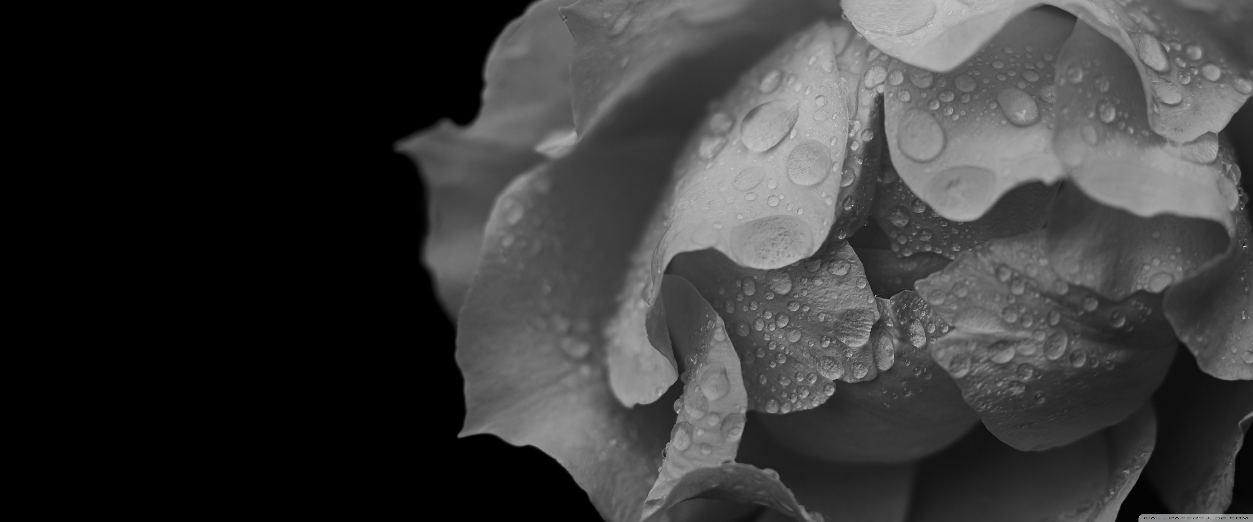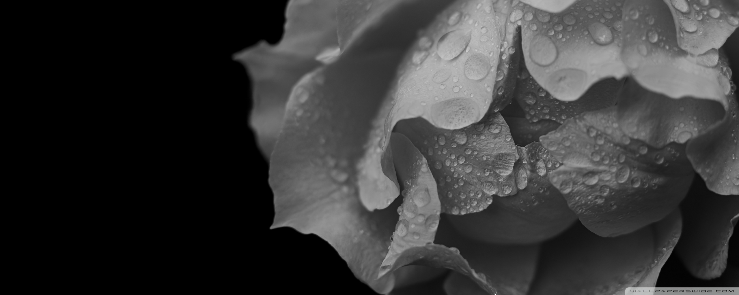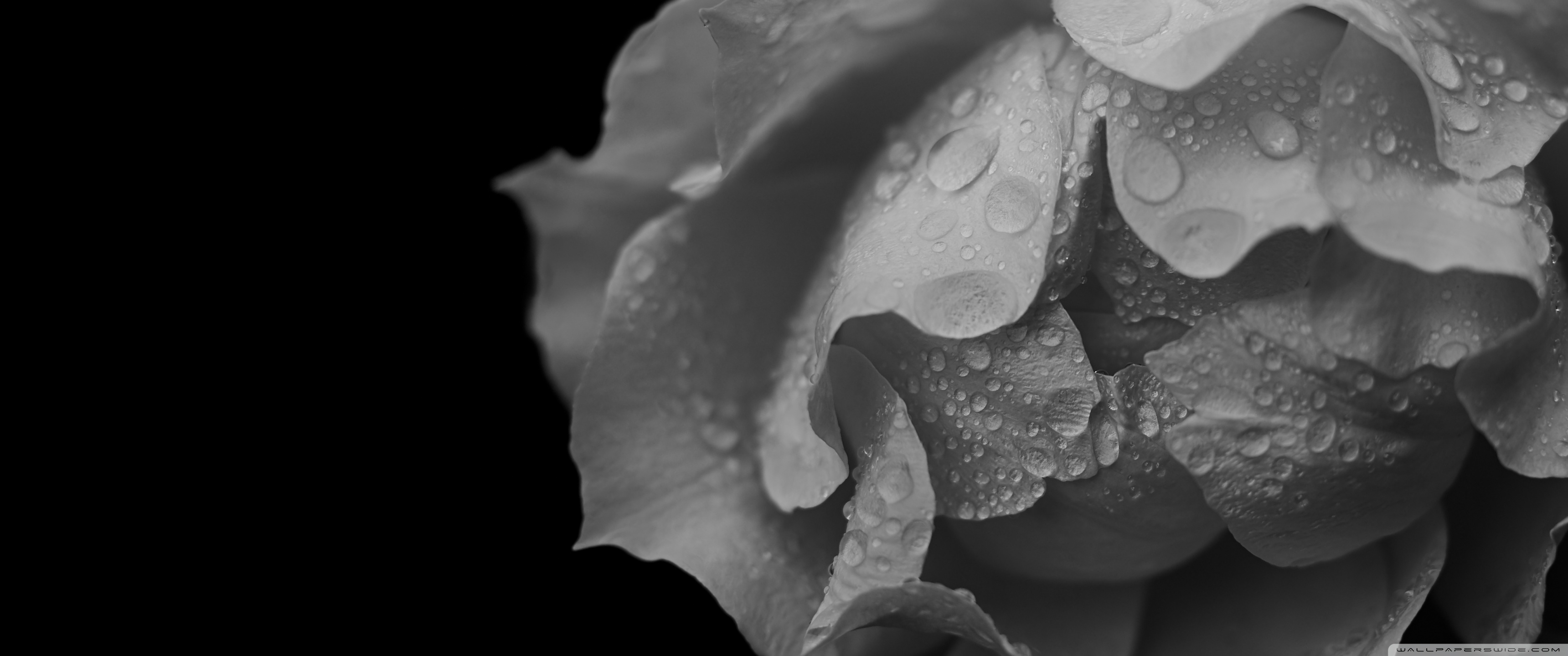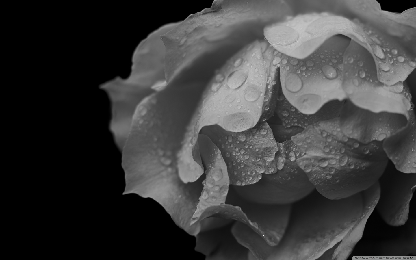 Download Water Drops on Rose, Black and White 4K UHD Wallpaper
