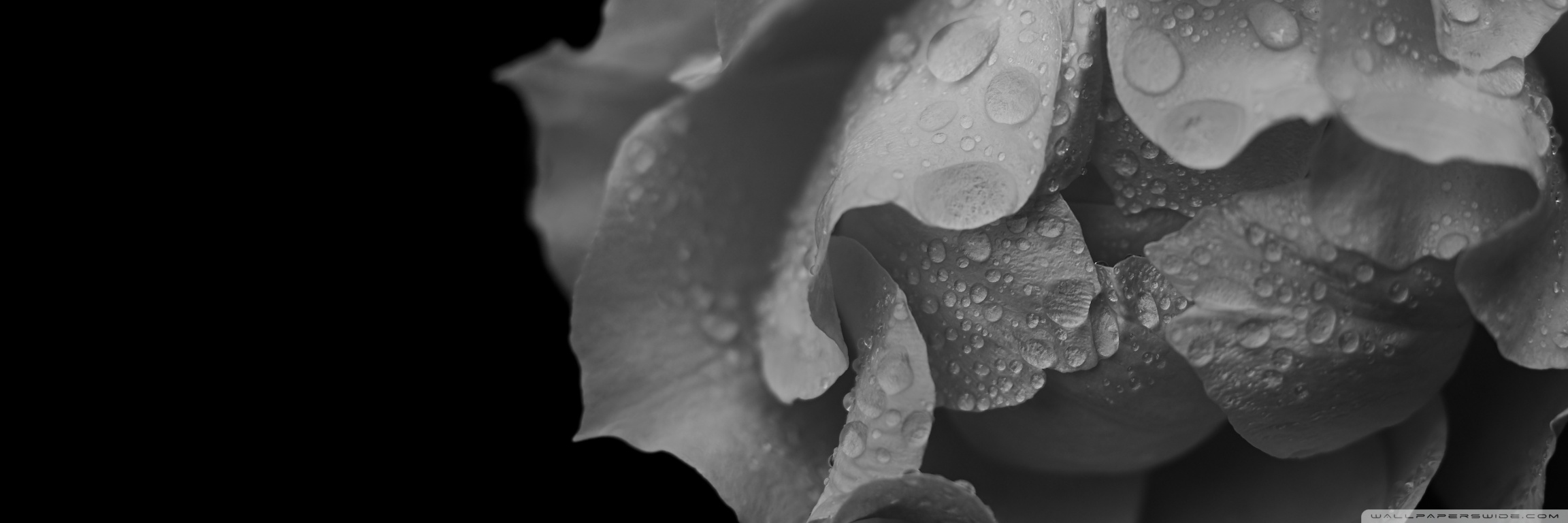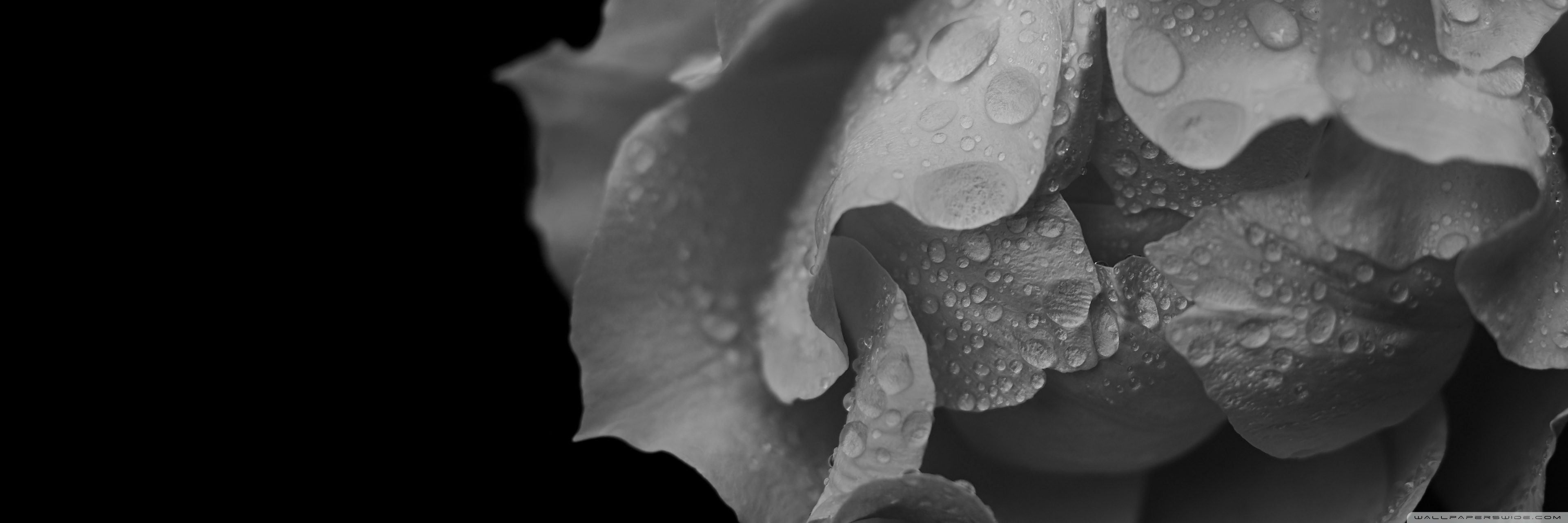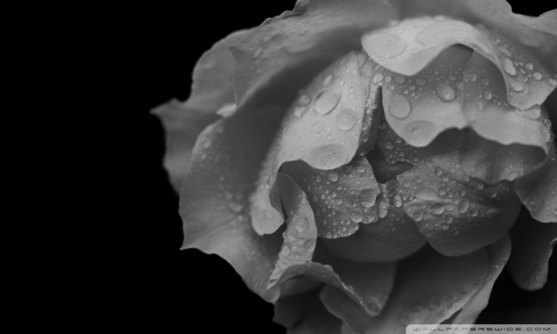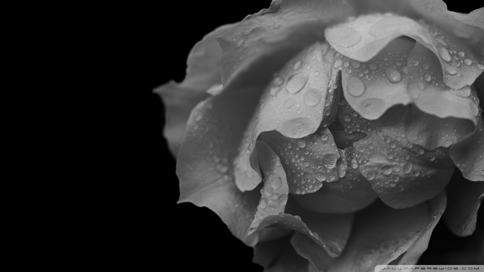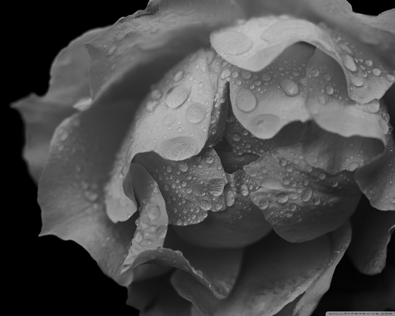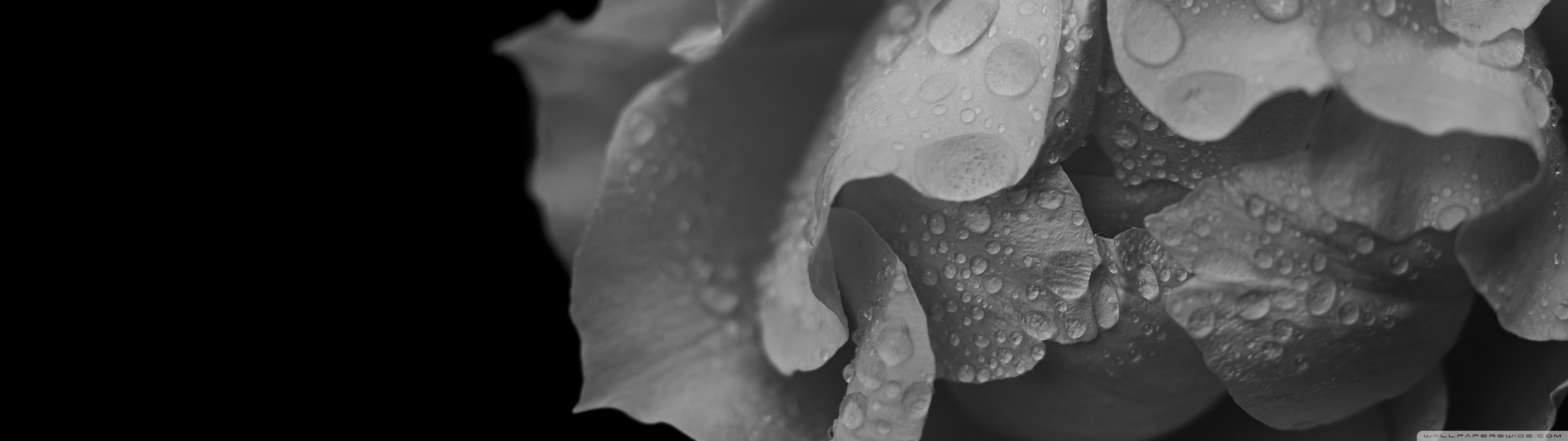 Download Water Drops on Rose, Black and White 4K UHD Wallpaper
