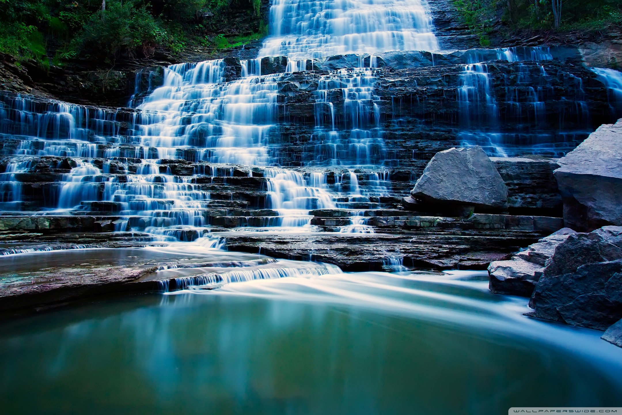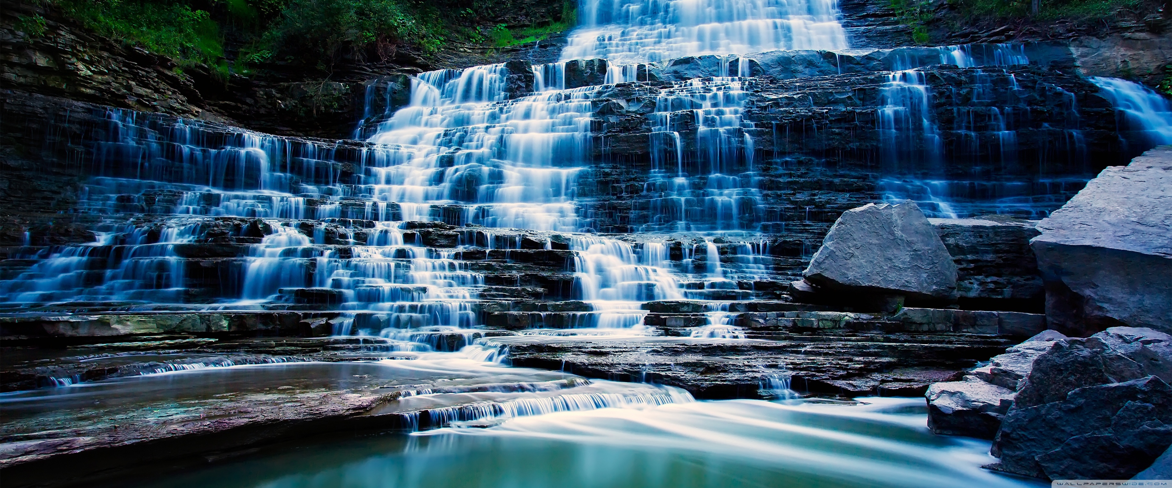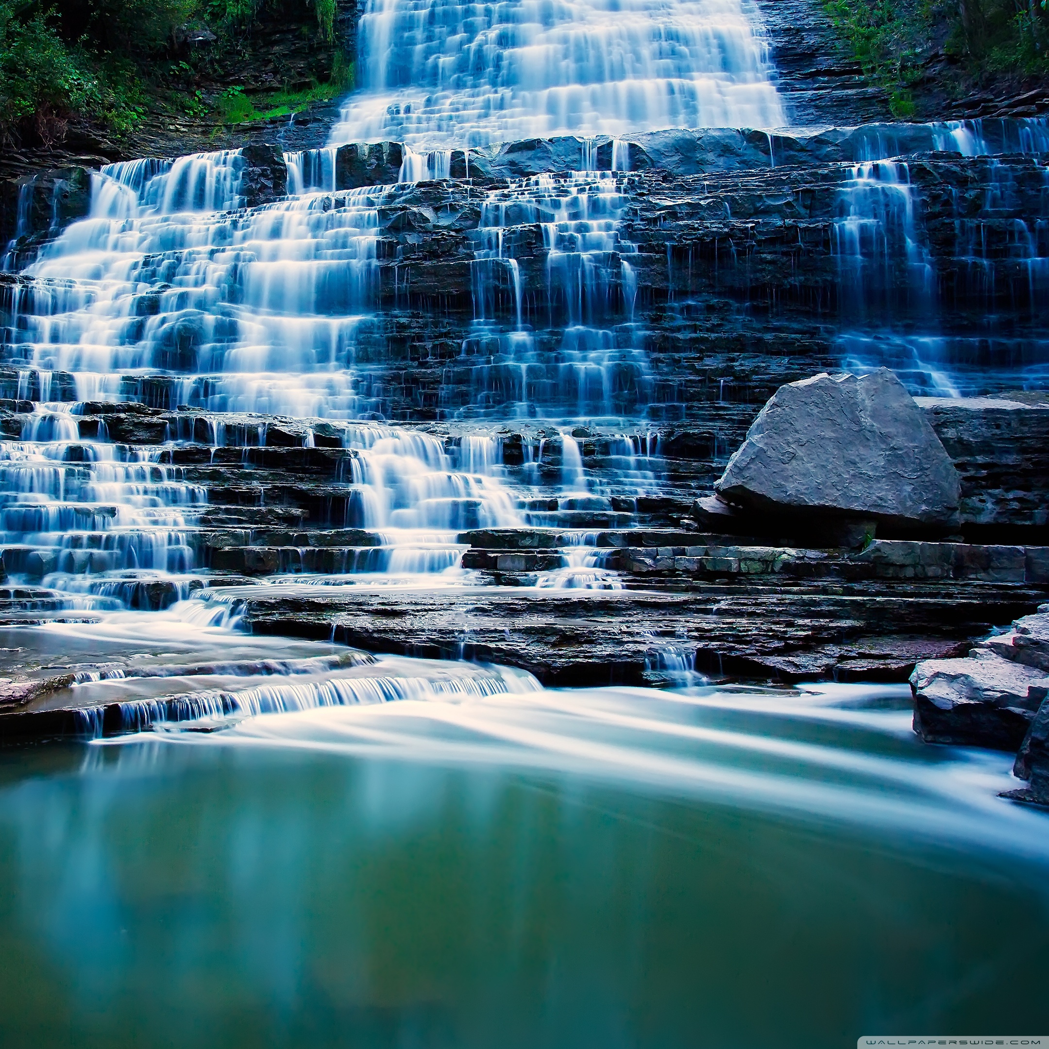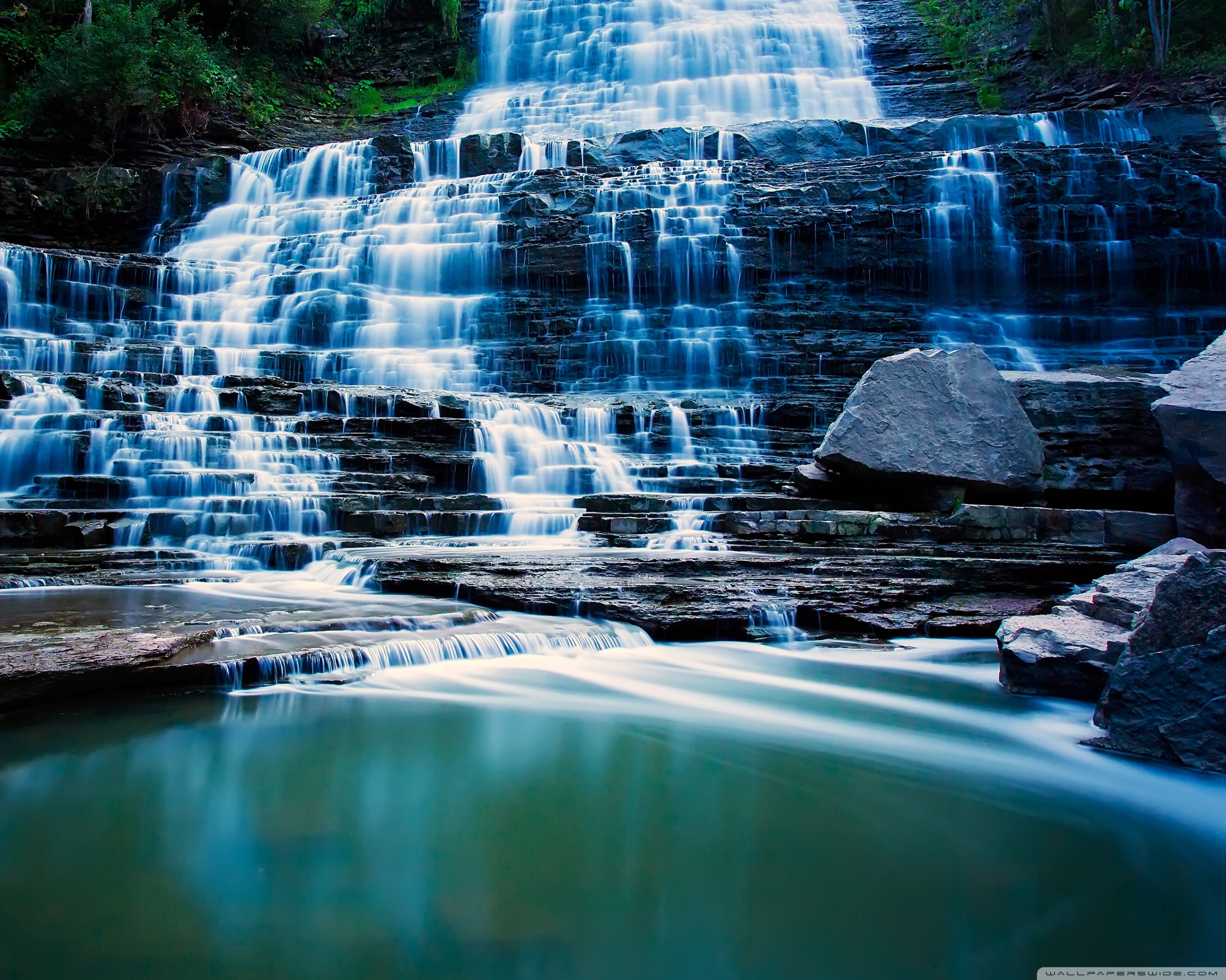 Download Waterfall Flowing Over Rocks 4K UHD Wallpaper