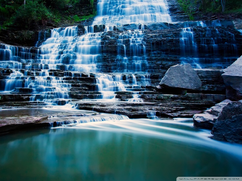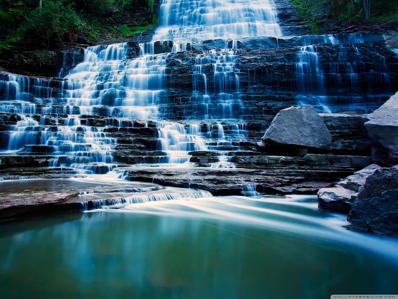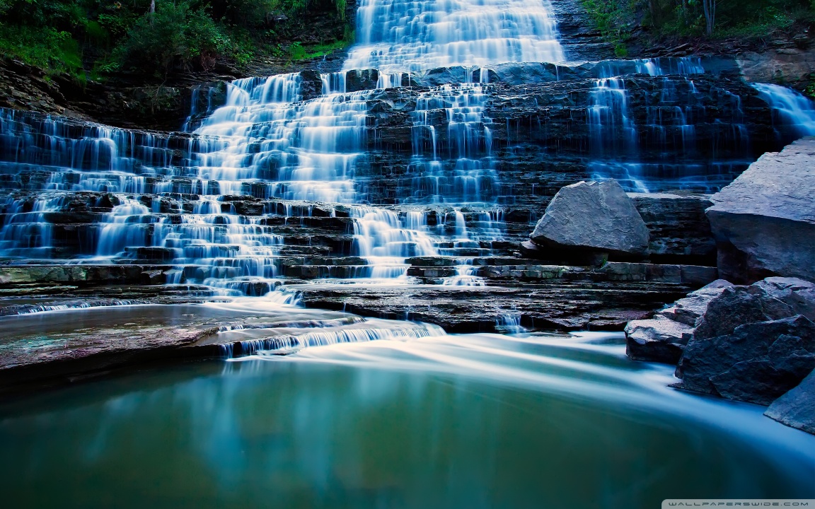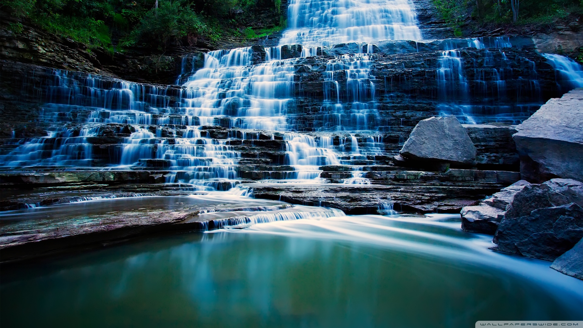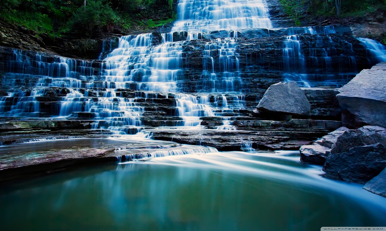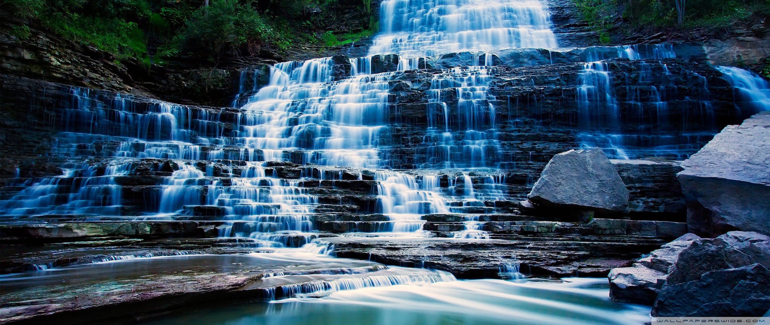 Download Waterfall Flowing Over Rocks 4K UHD Wallpaper