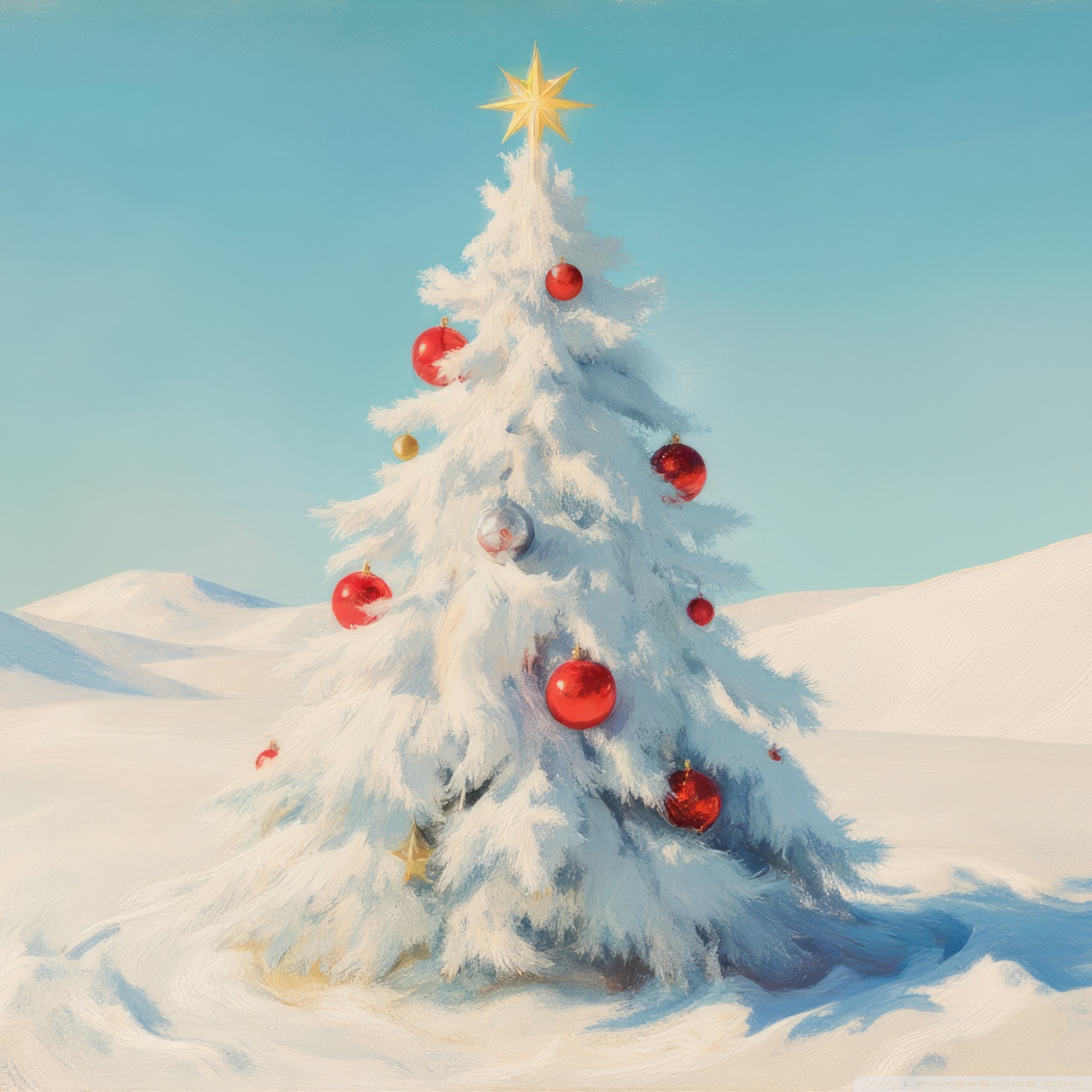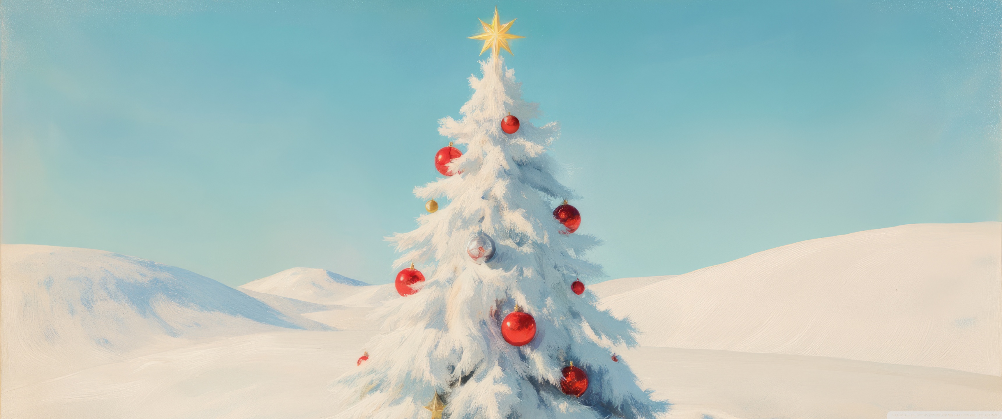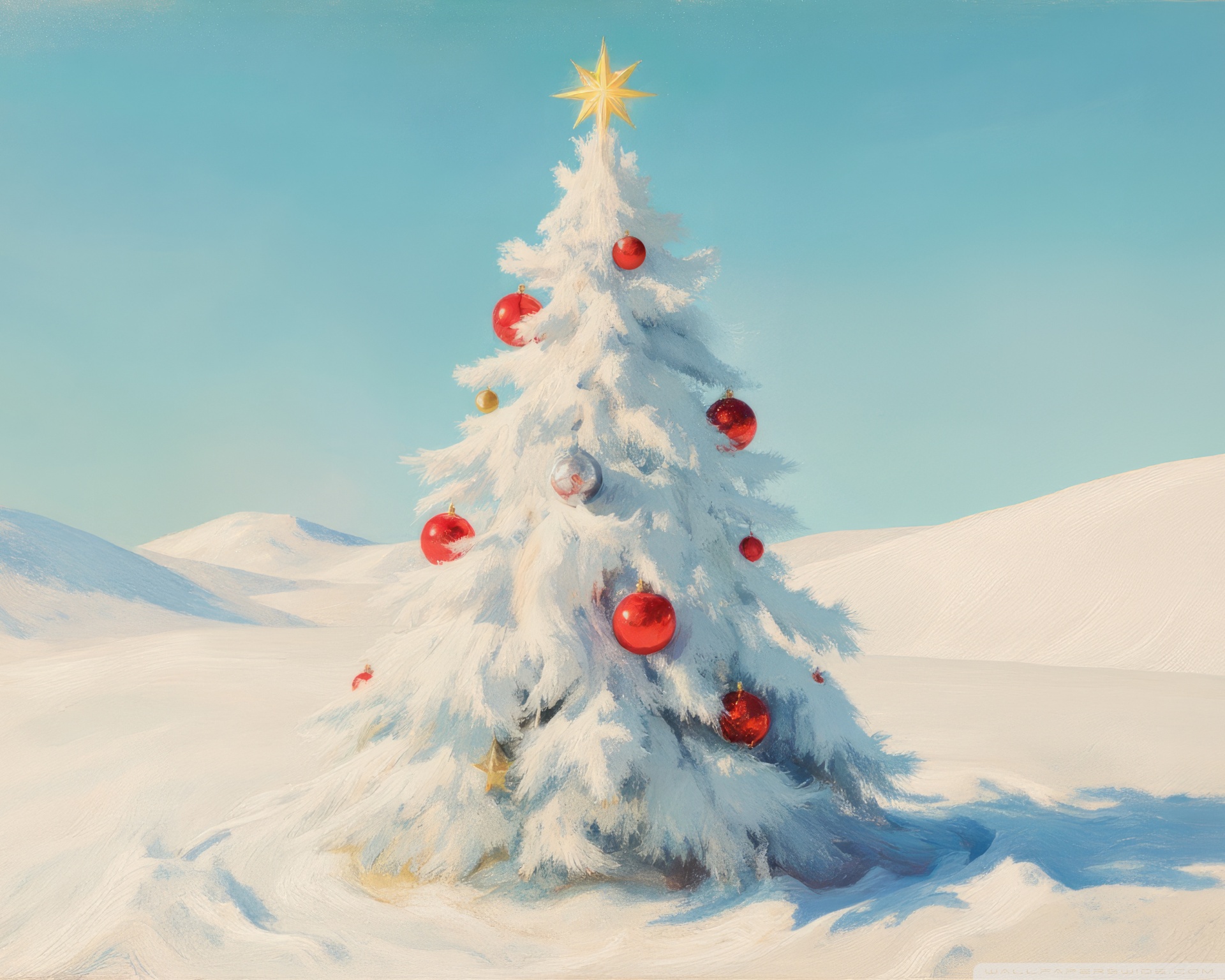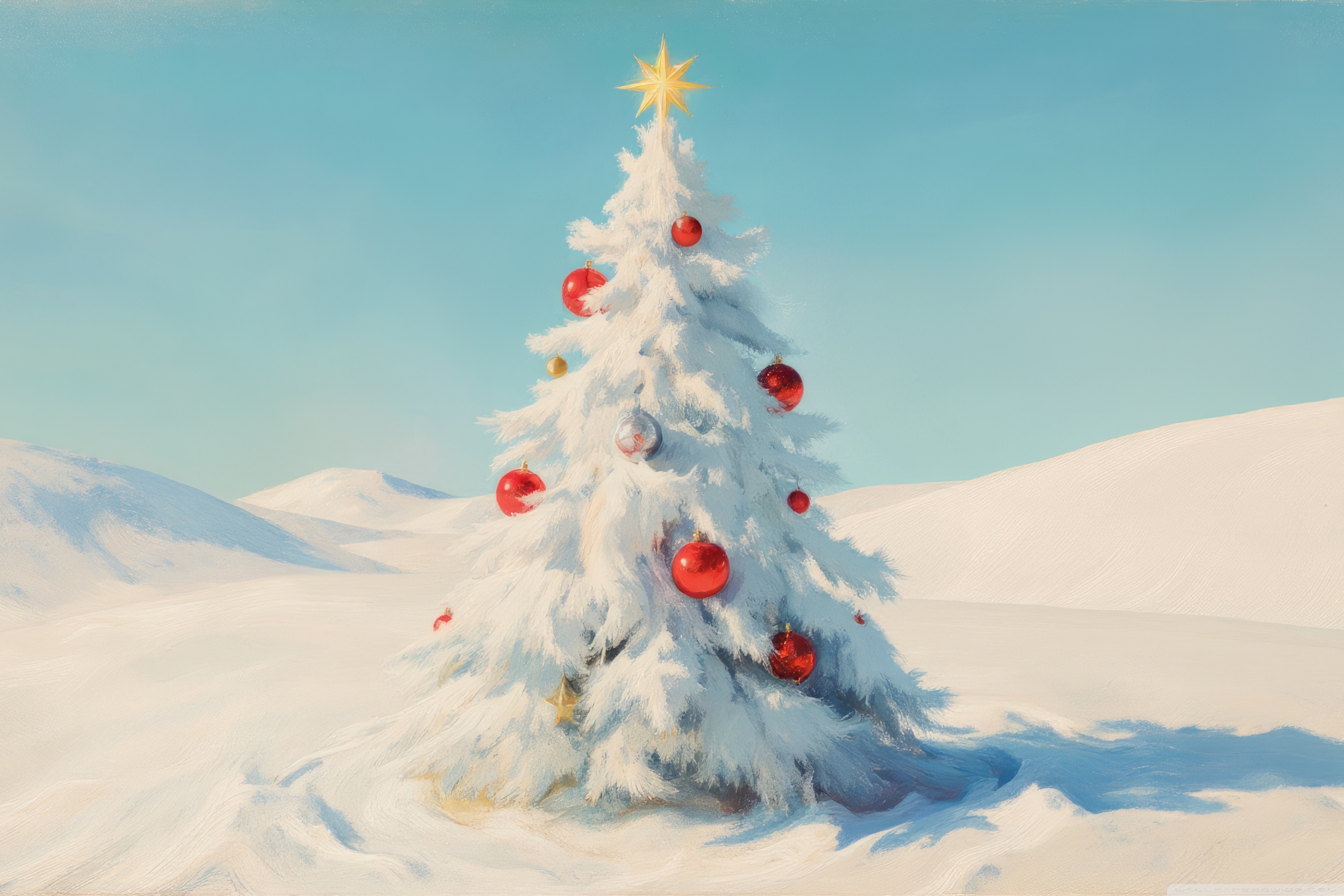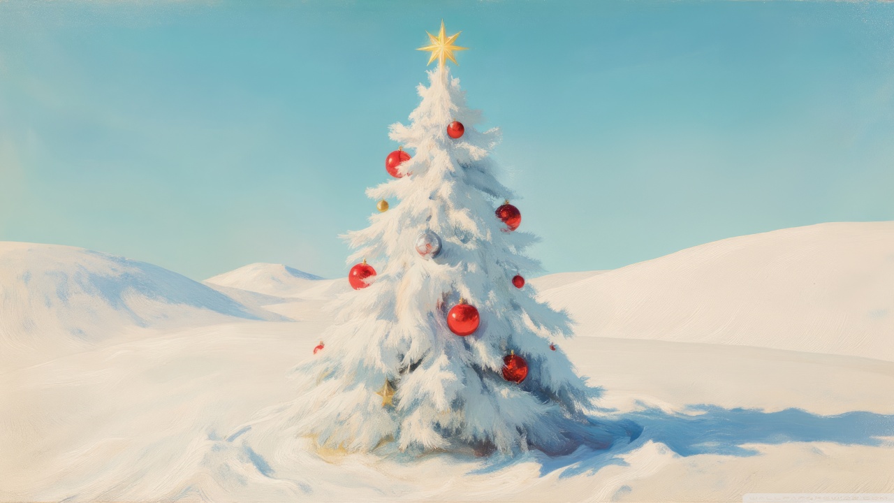 Download White Christmas Tree Vintage Art 4K UHD Wallpaper
