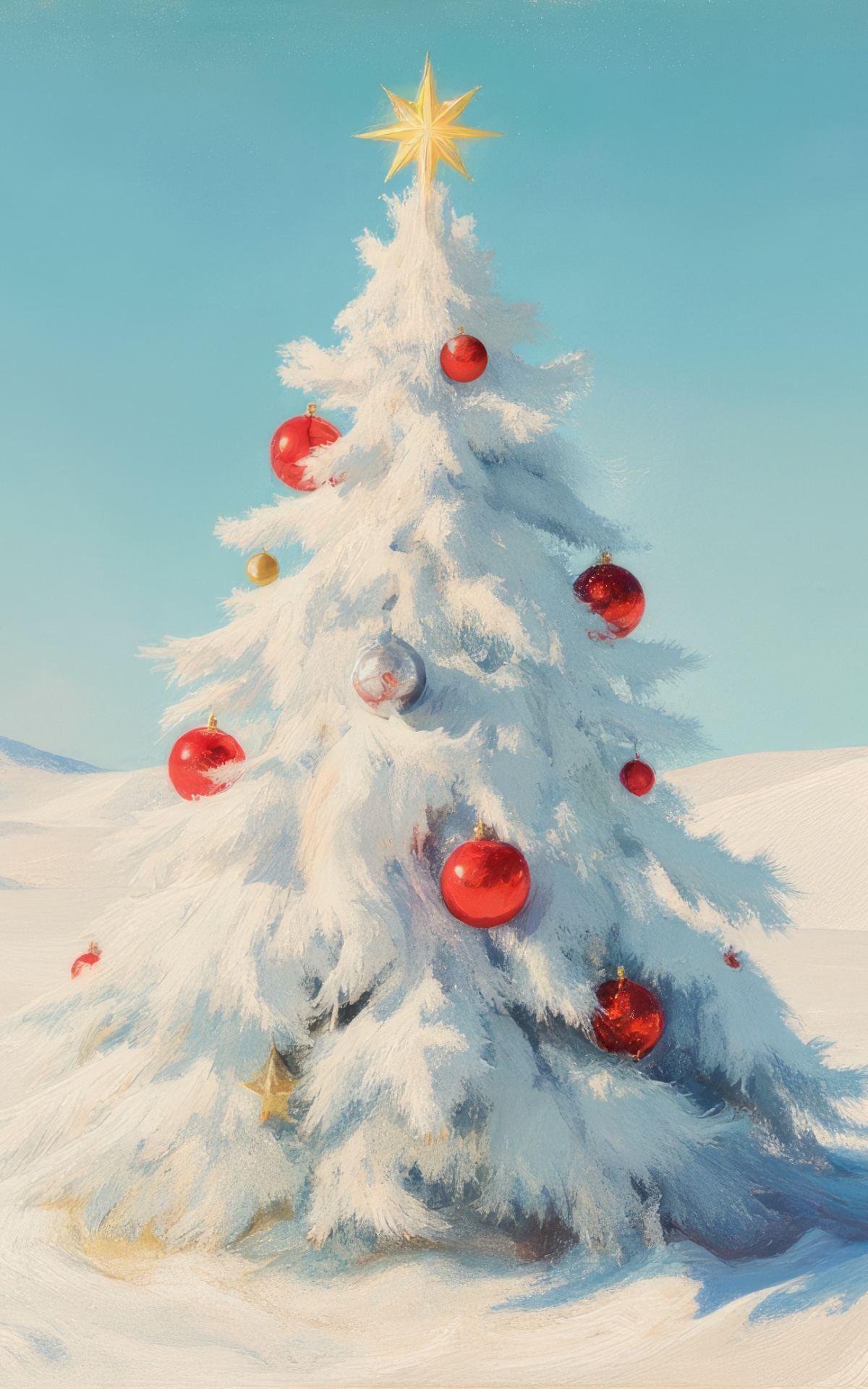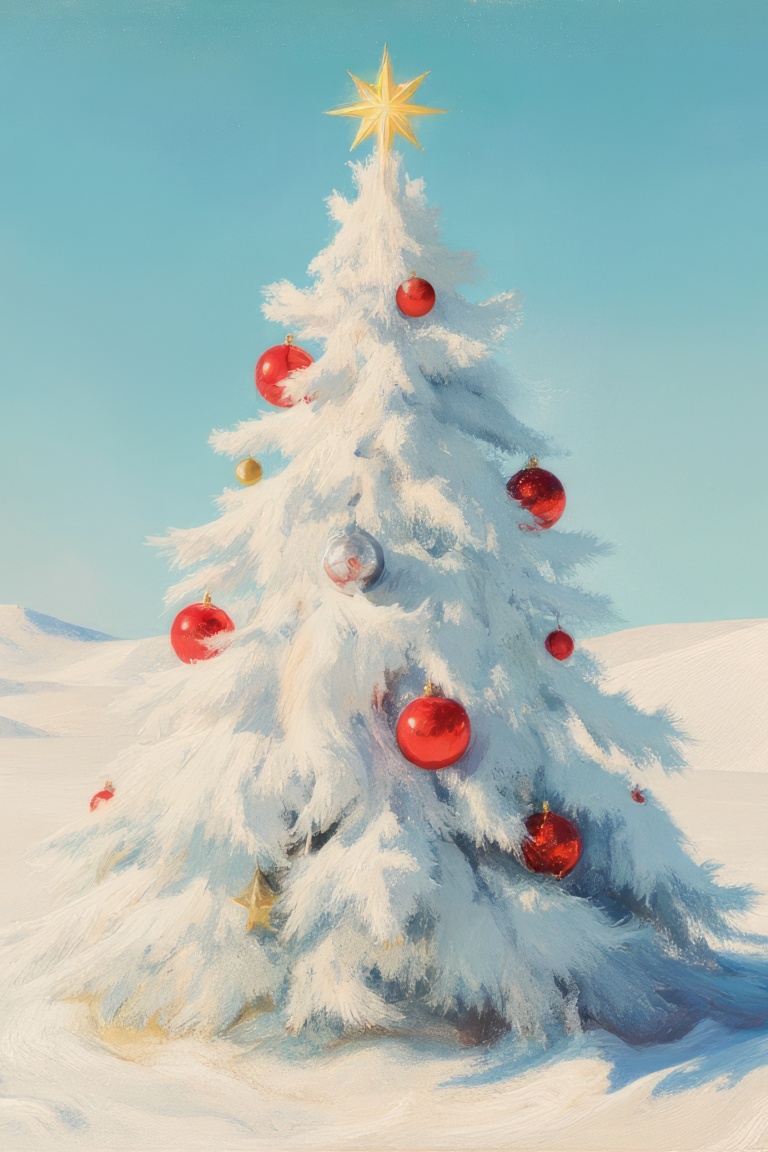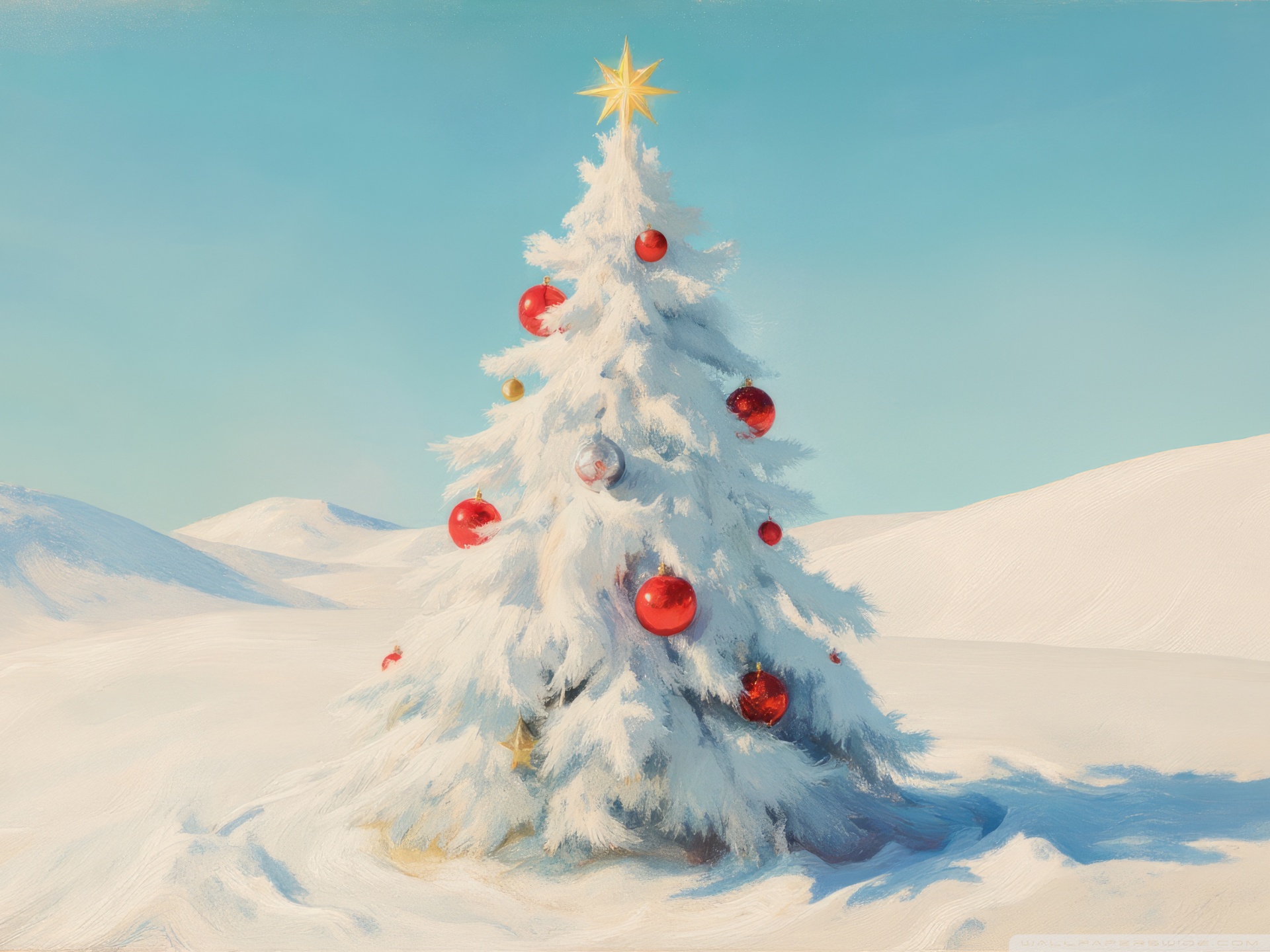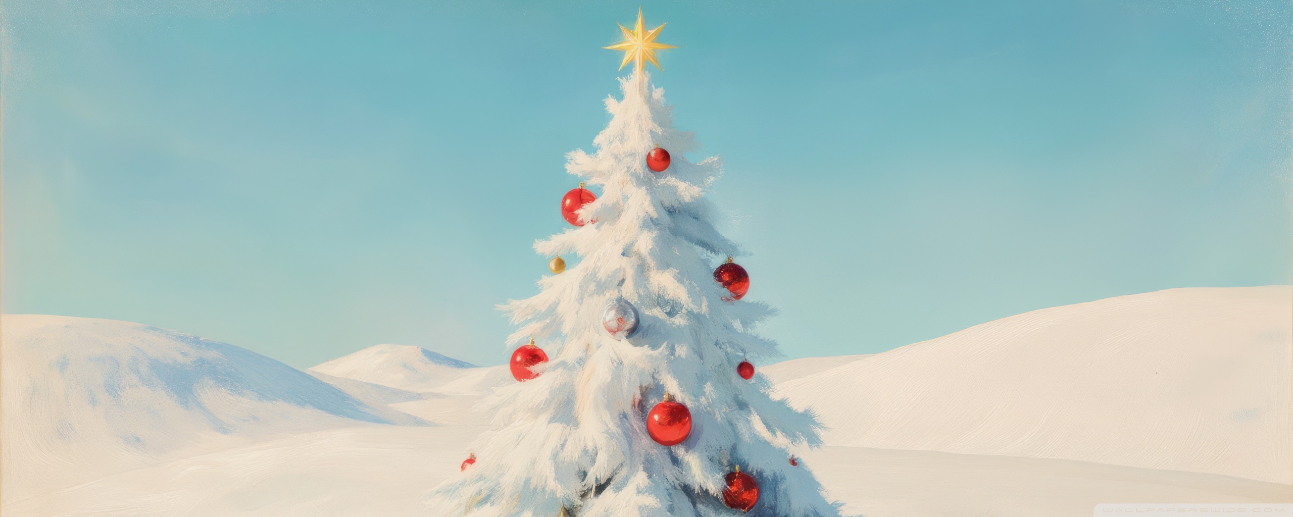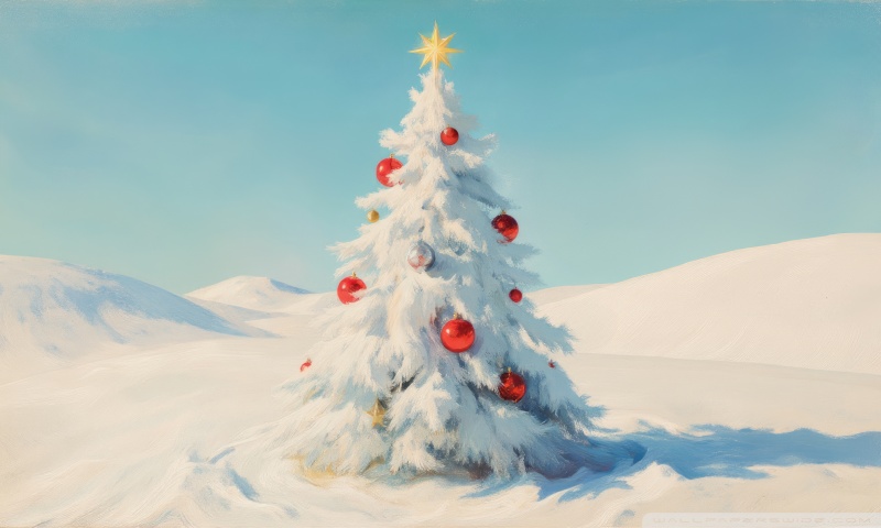 Download White Christmas Tree Vintage Art 4K UHD Wallpaper