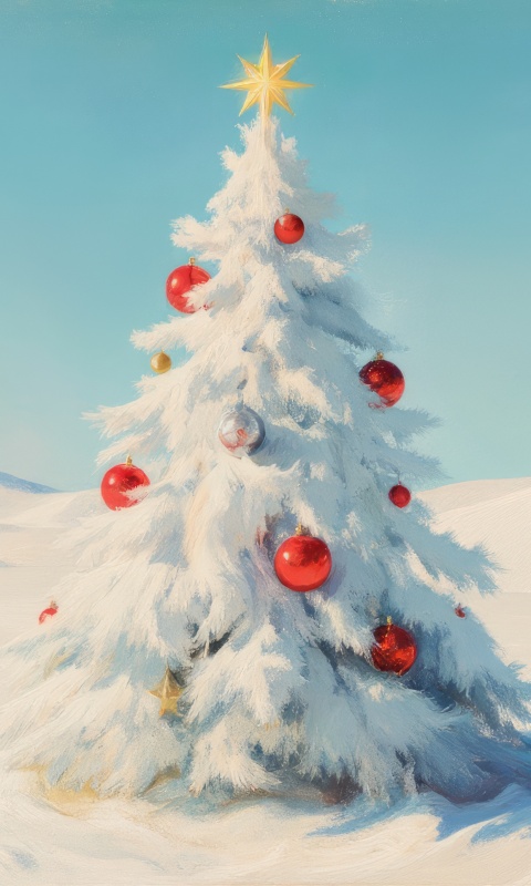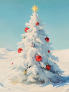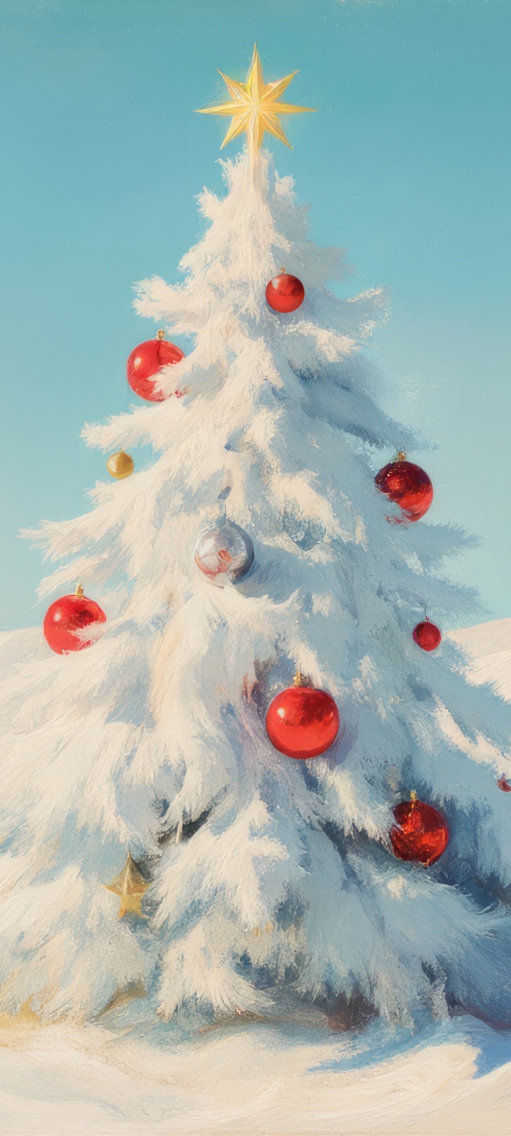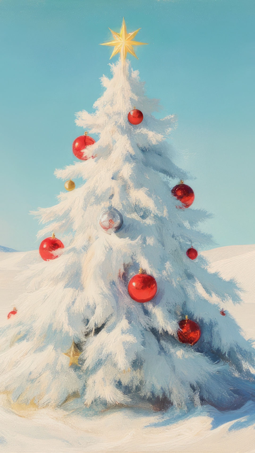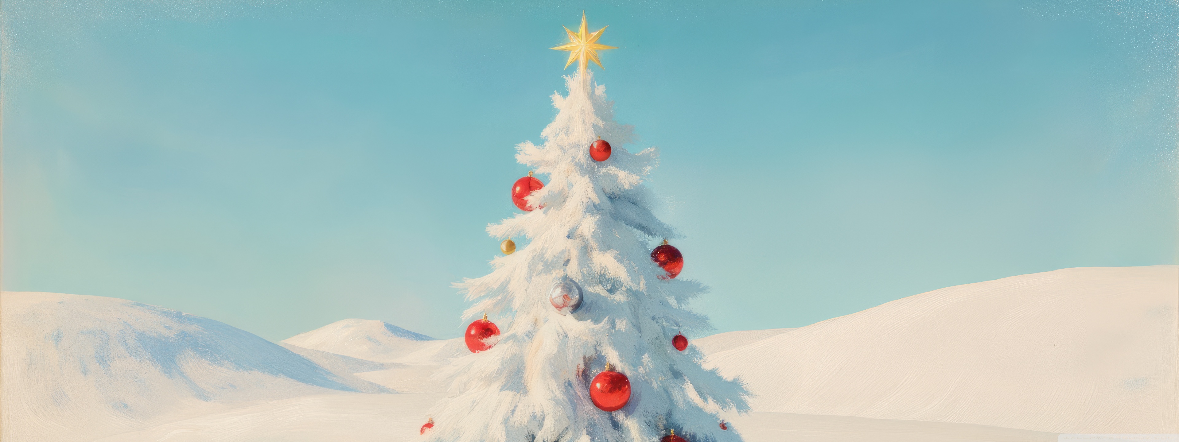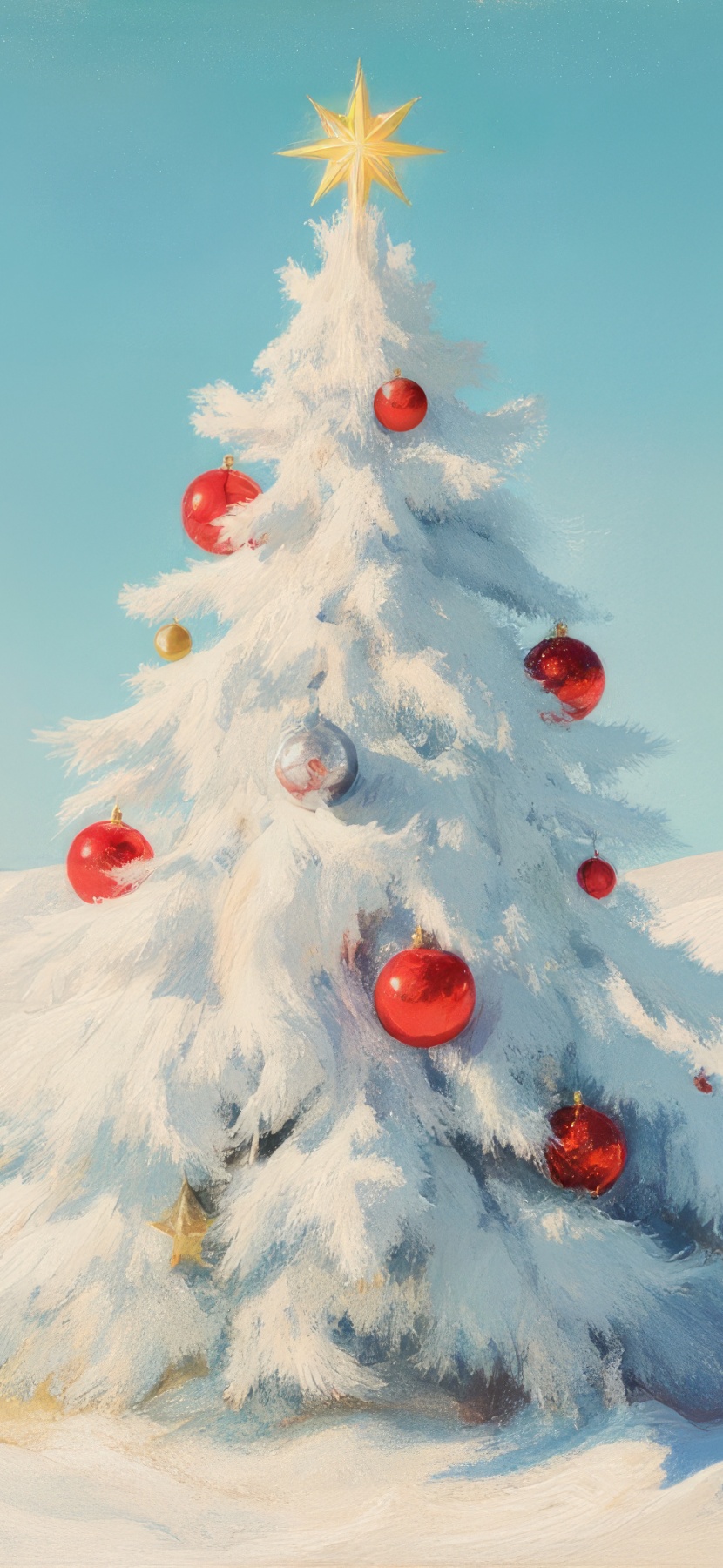 Download White Christmas Tree Vintage Art 4K UHD Wallpaper