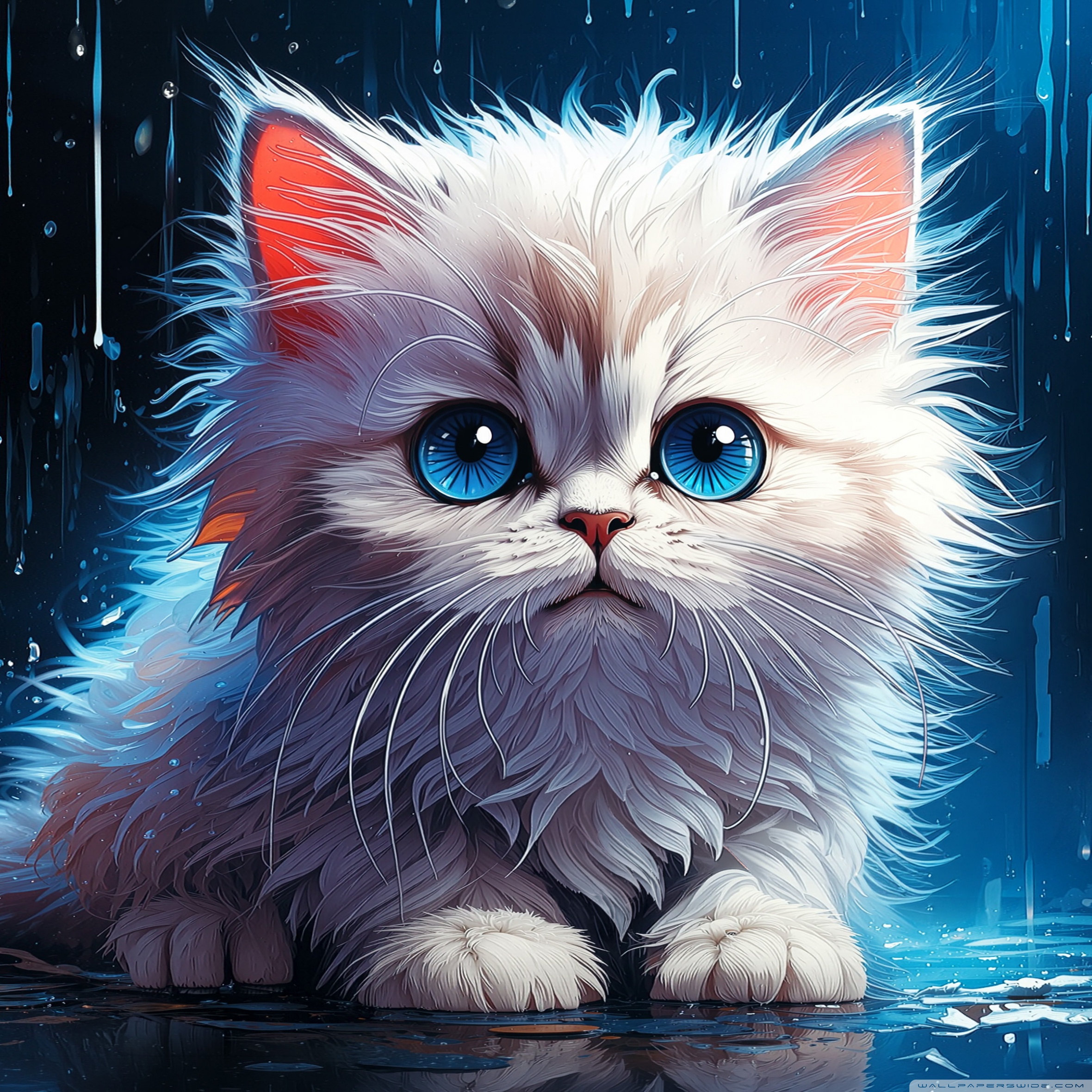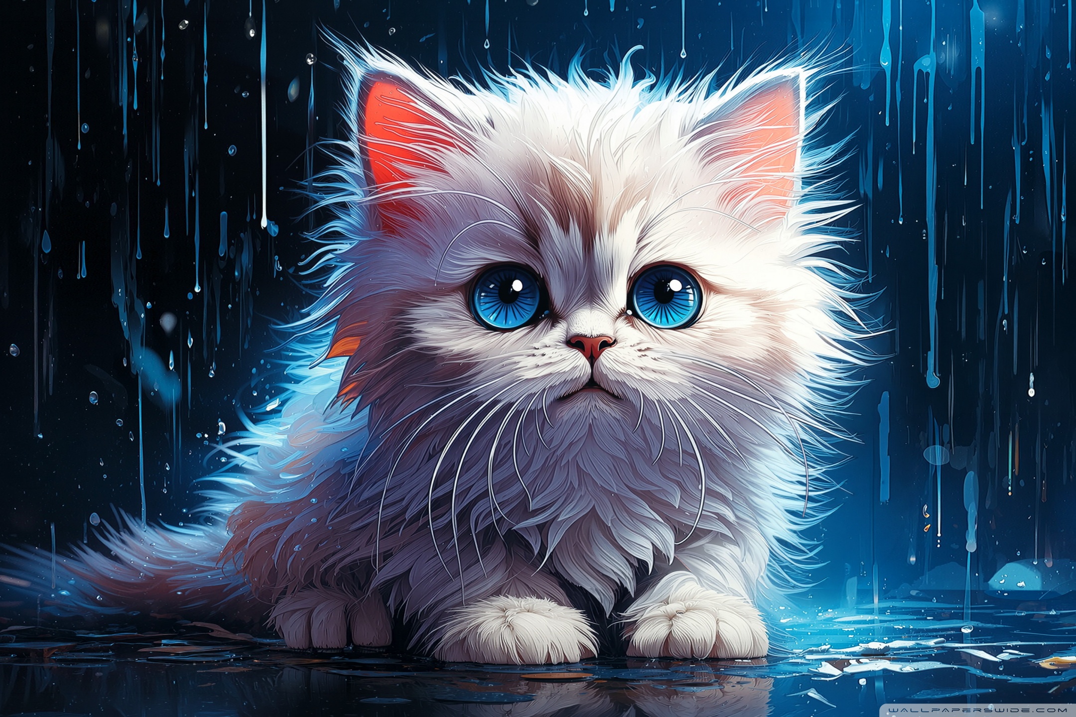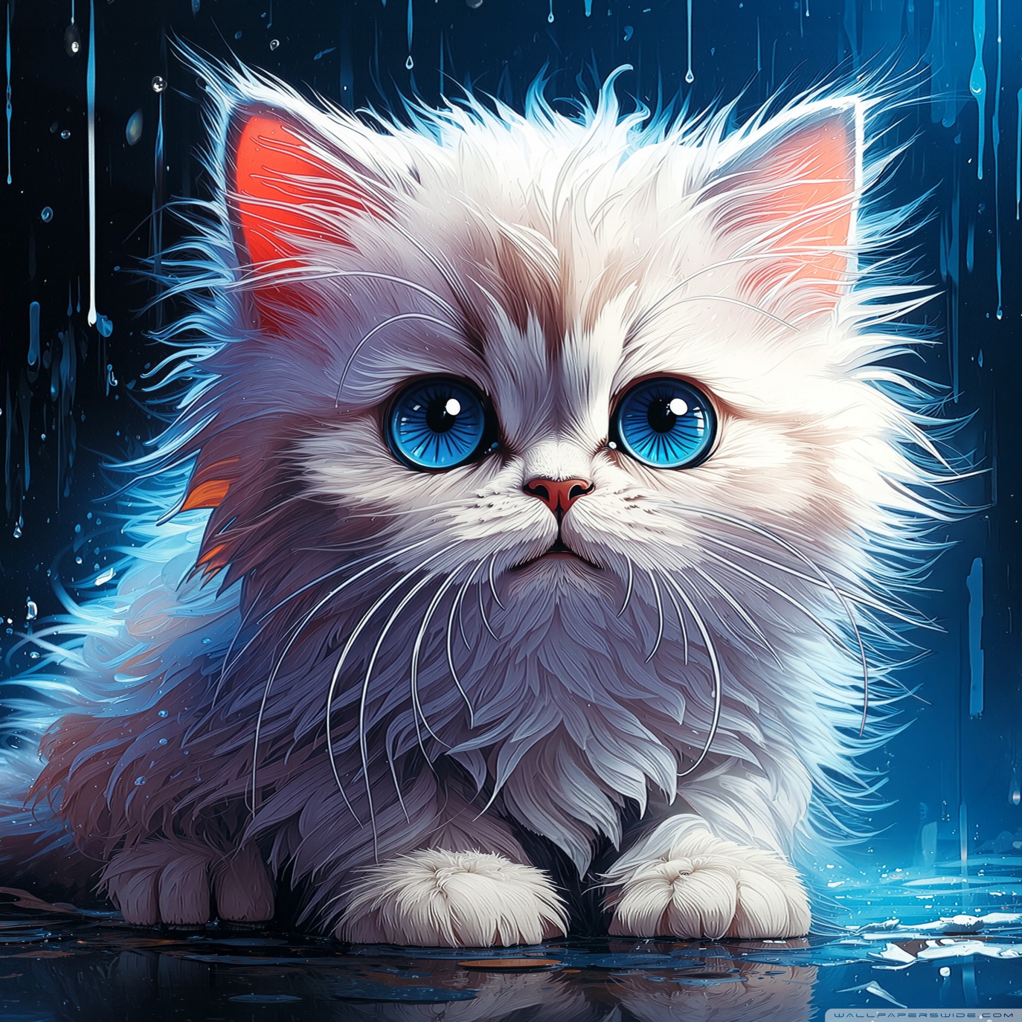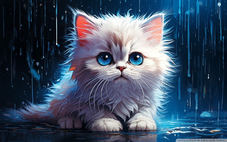 Download White Persian Kitten in the Rain Digital... 4K UHD Wallpaper