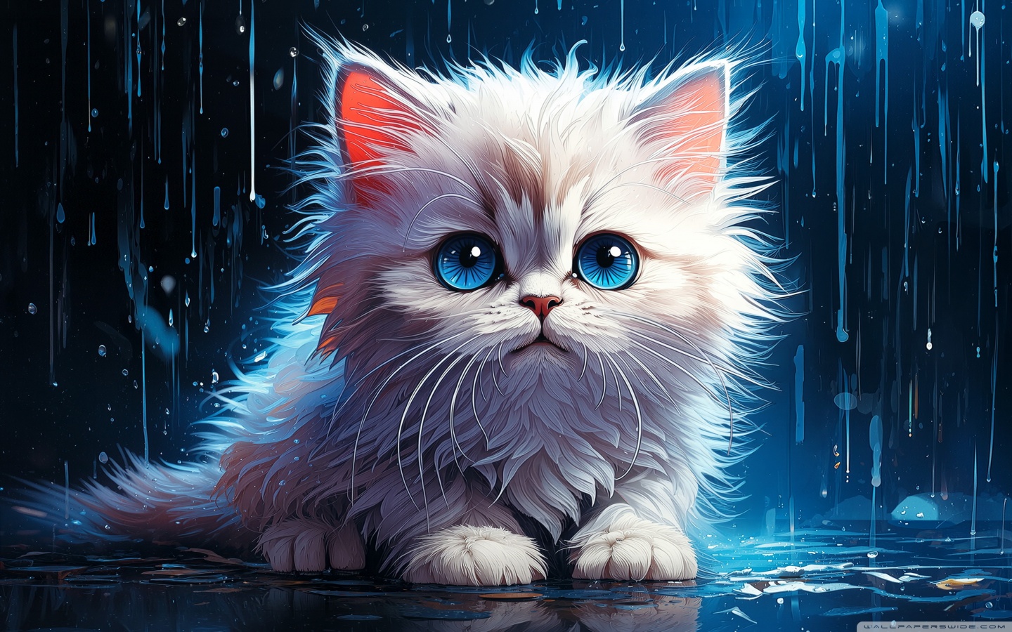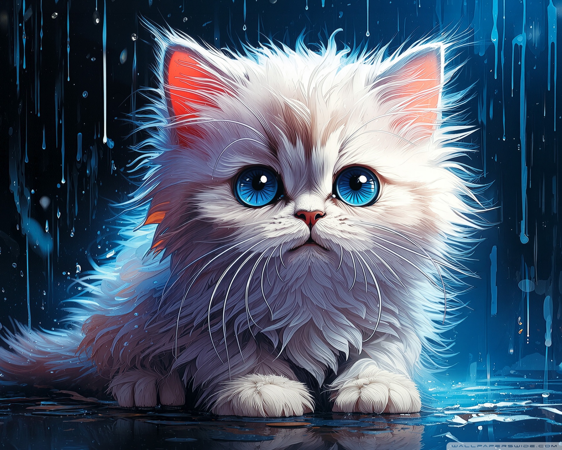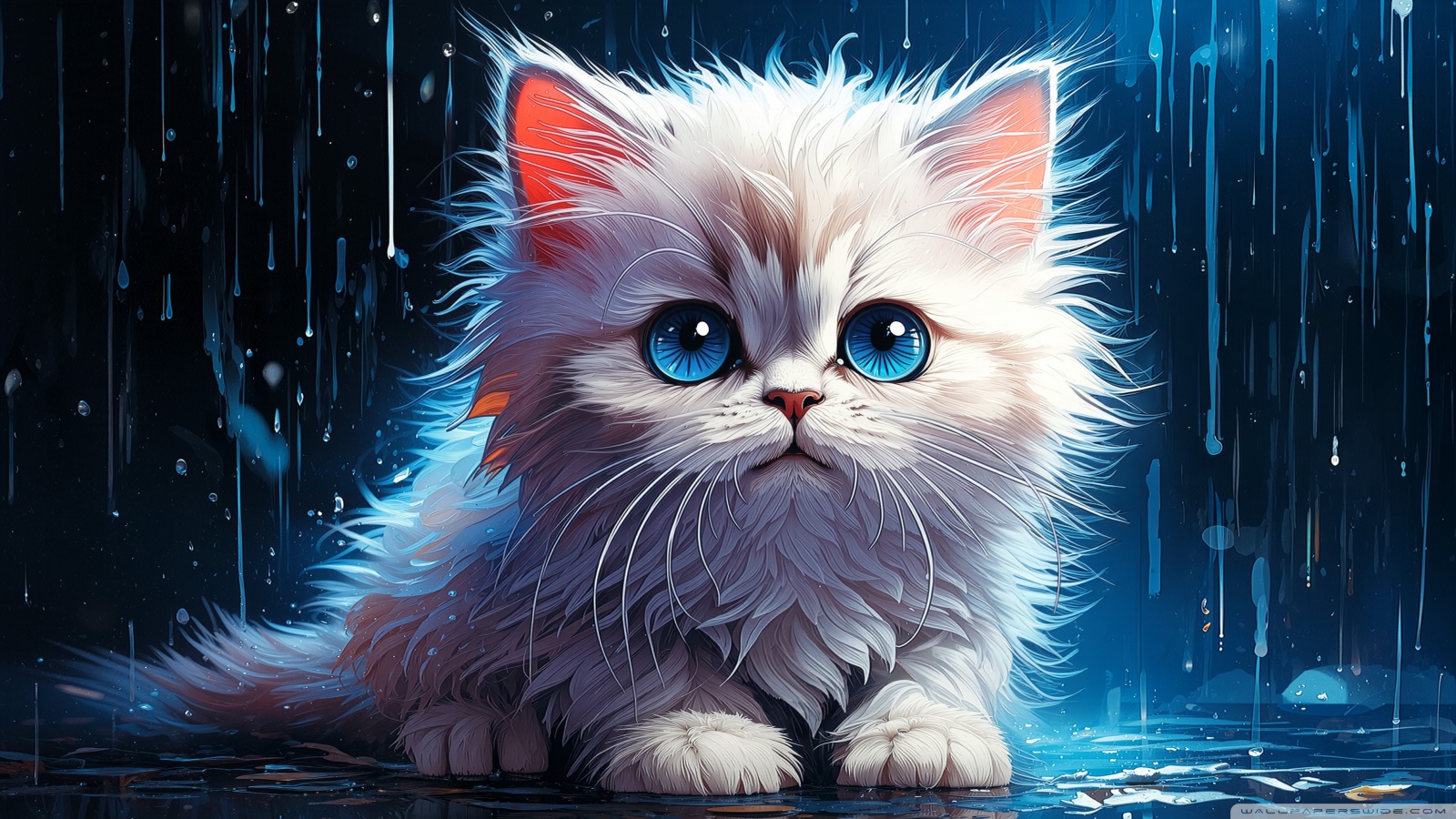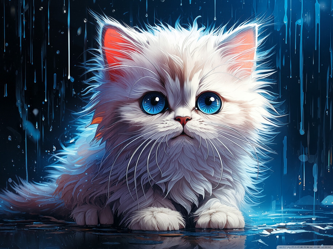 Download White Persian Kitten in the Rain Digital... 4K UHD Wallpaper