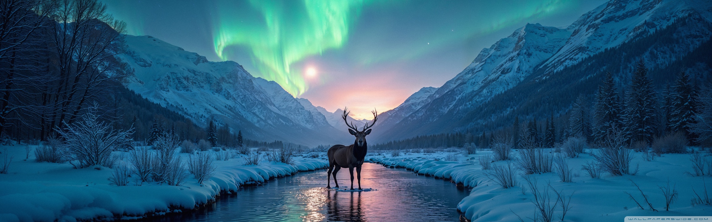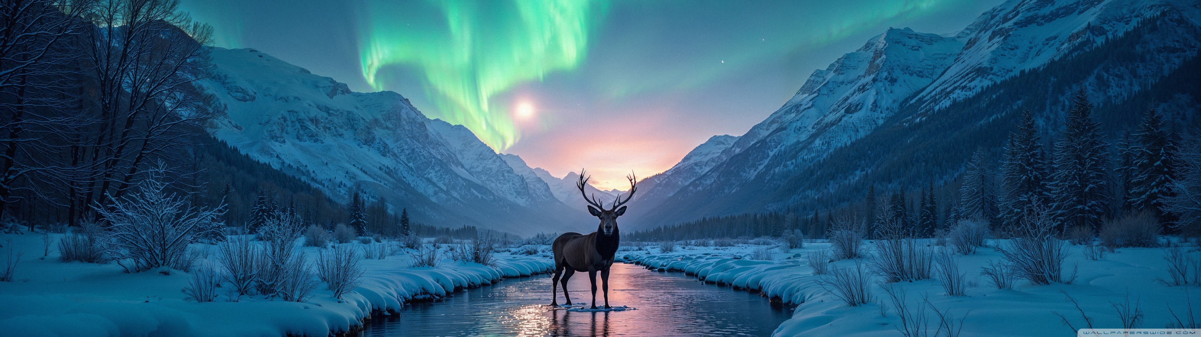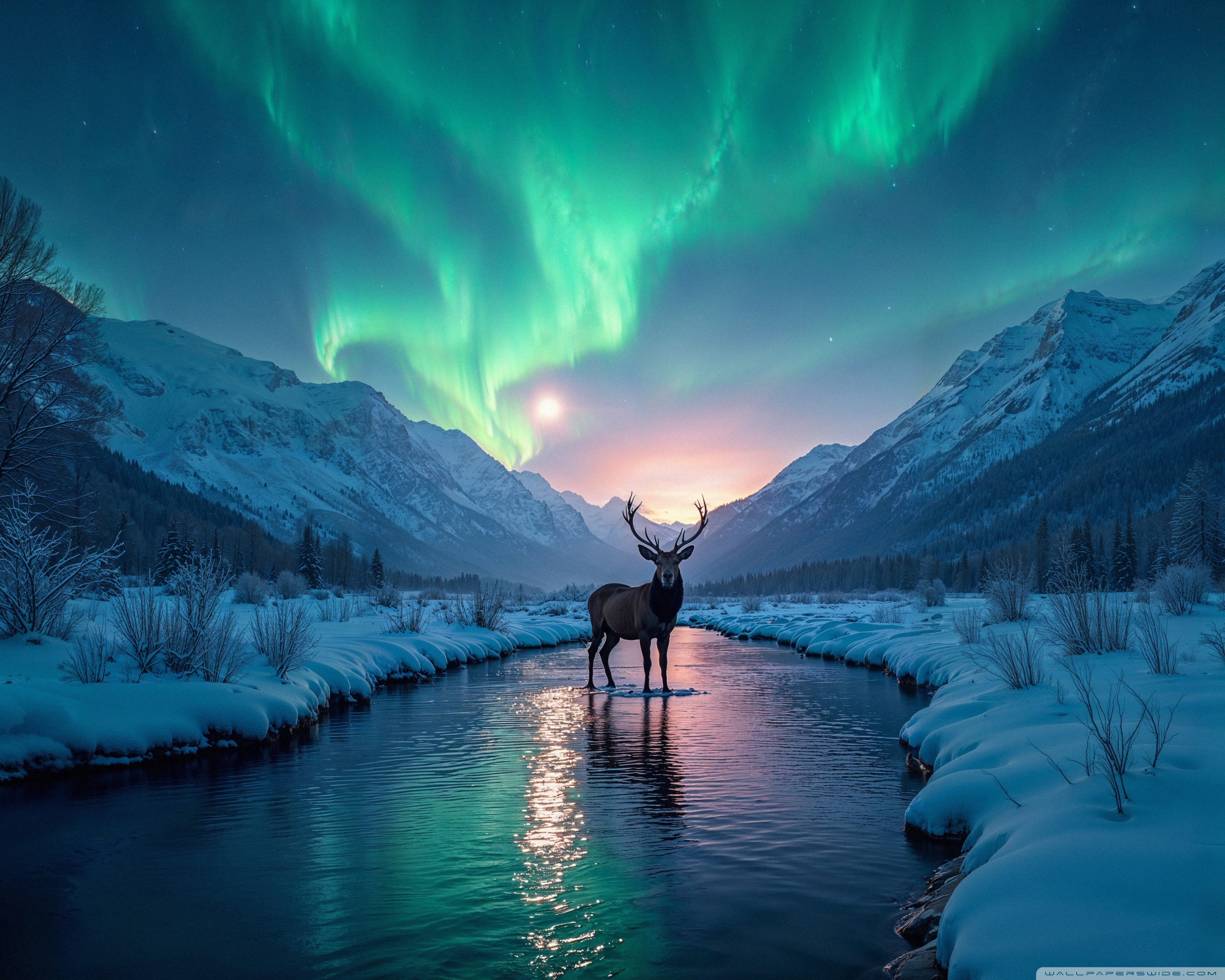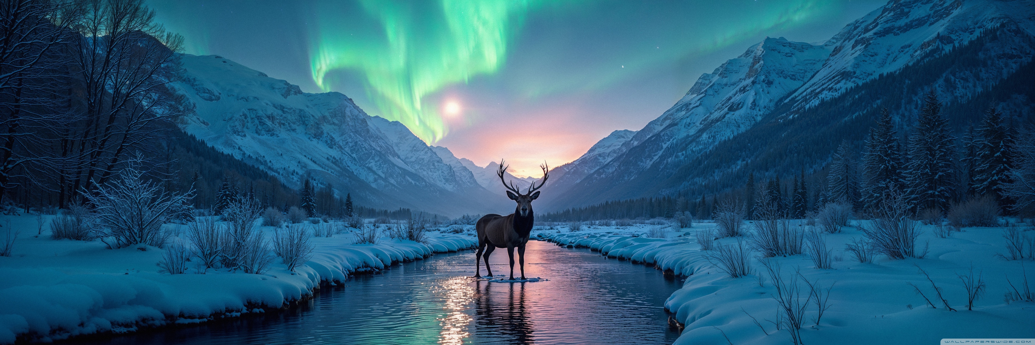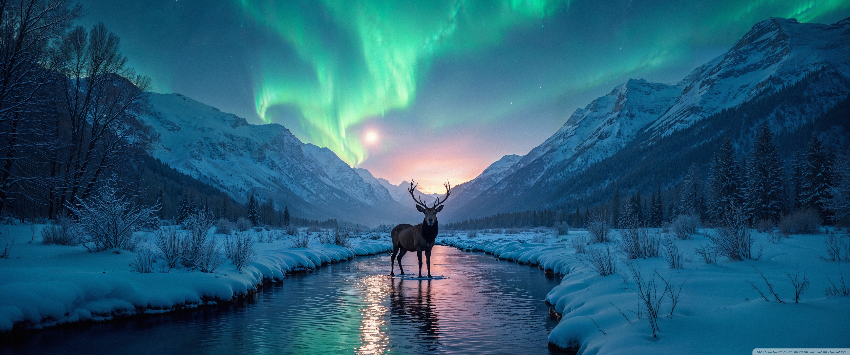 Download Winter, Mountains, Stream, and Wildlife 4K UHD Wallpaper