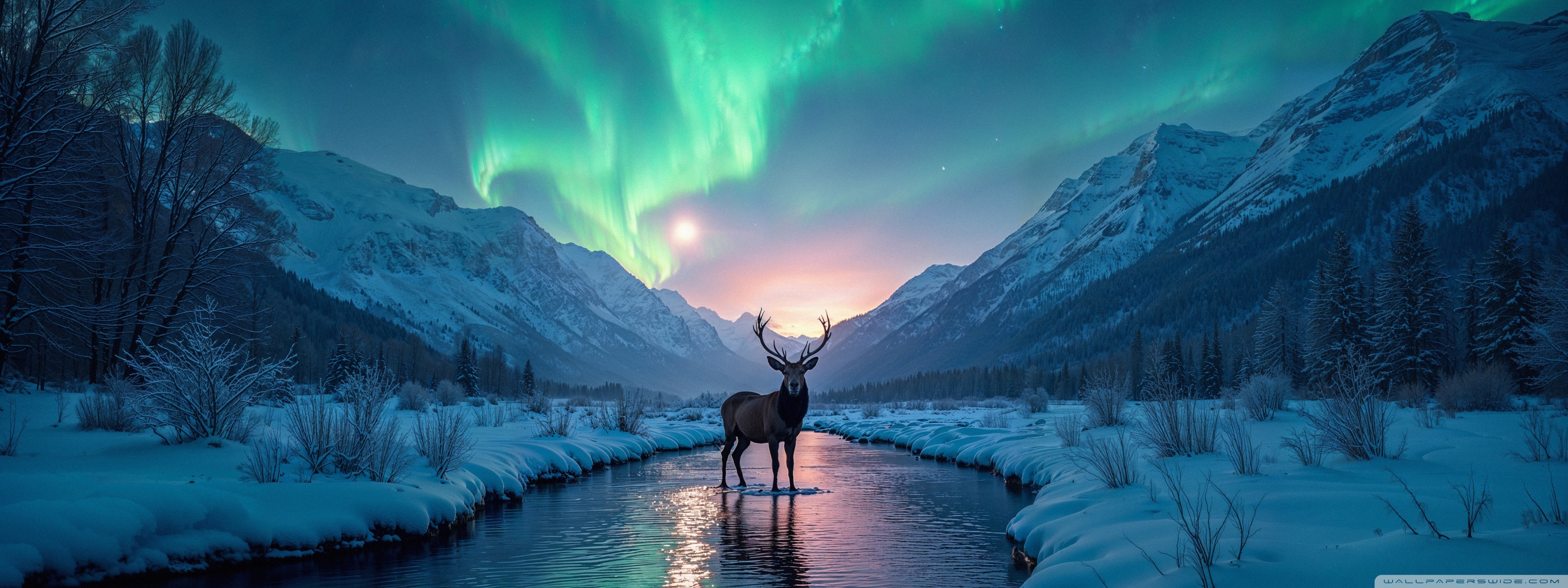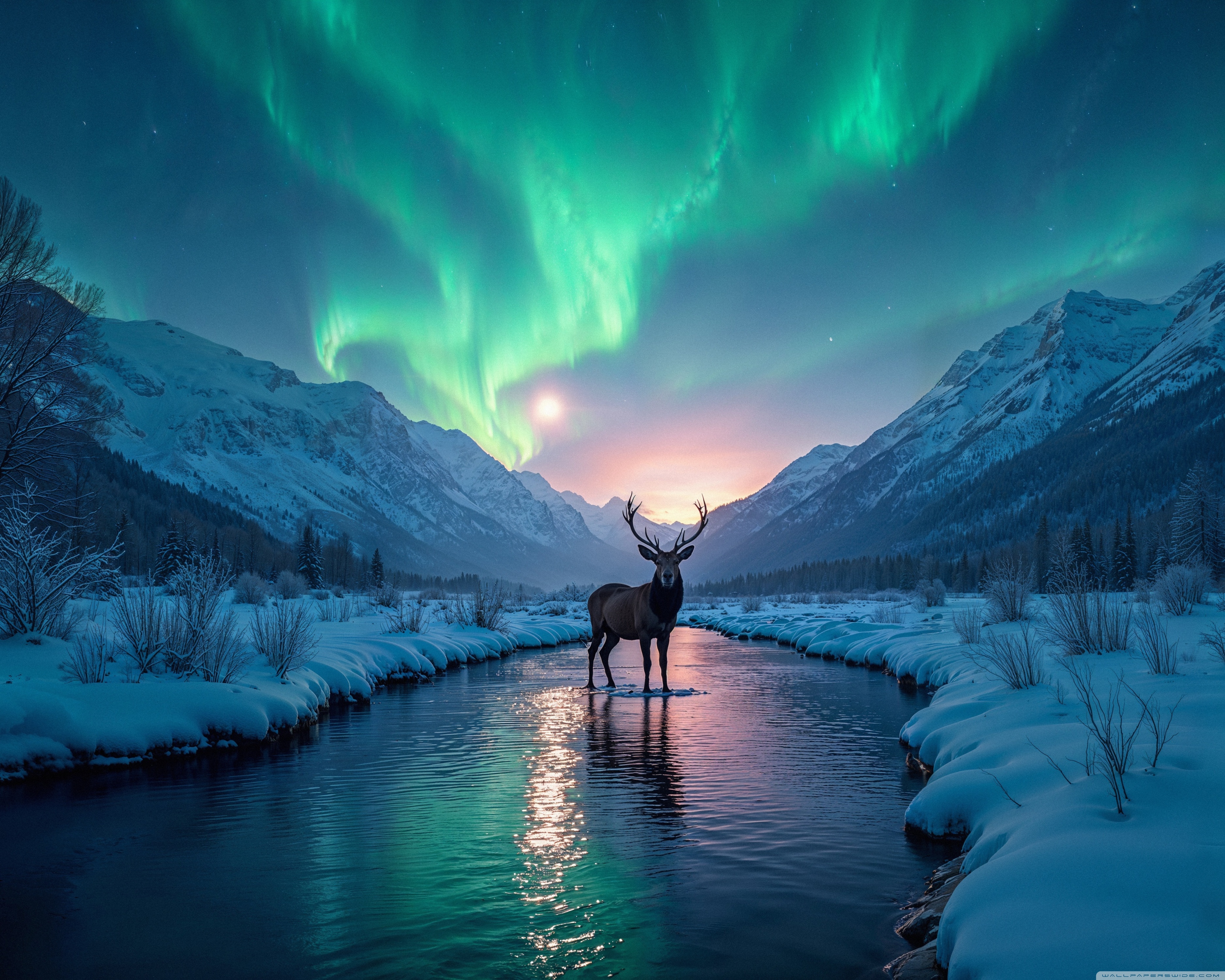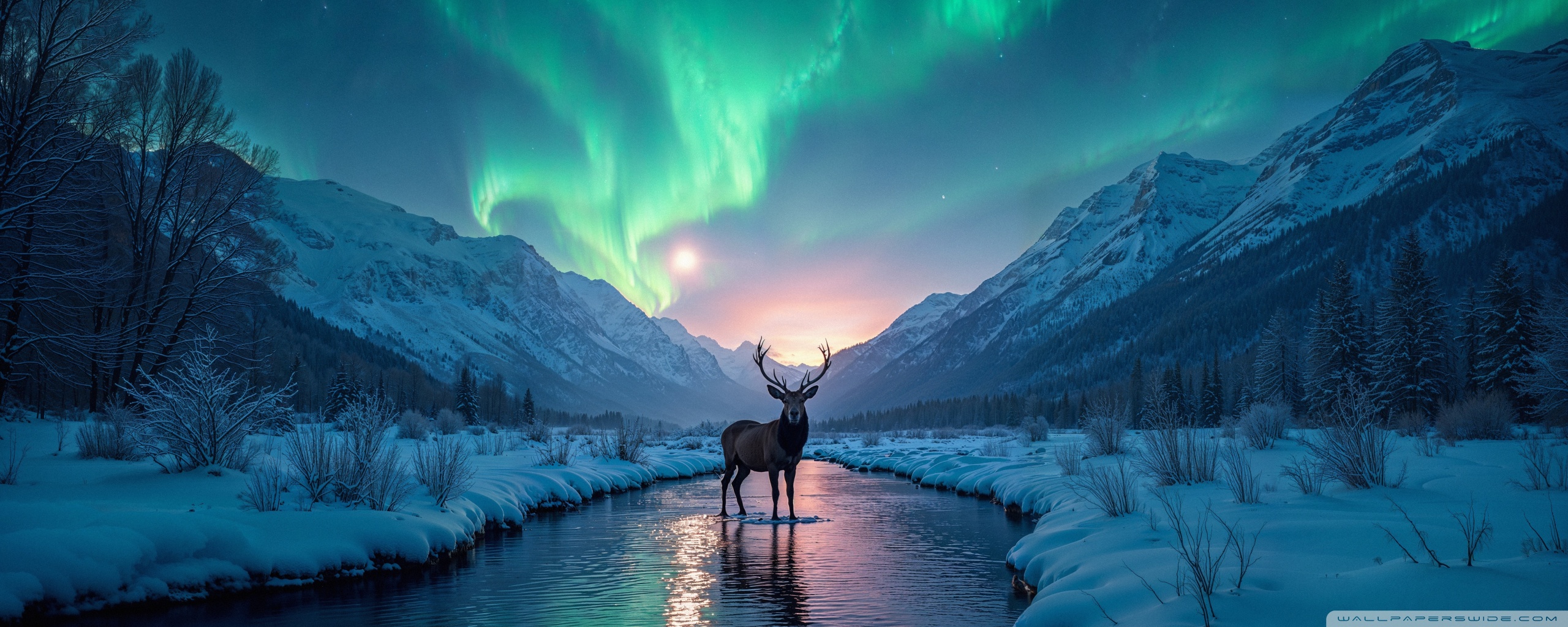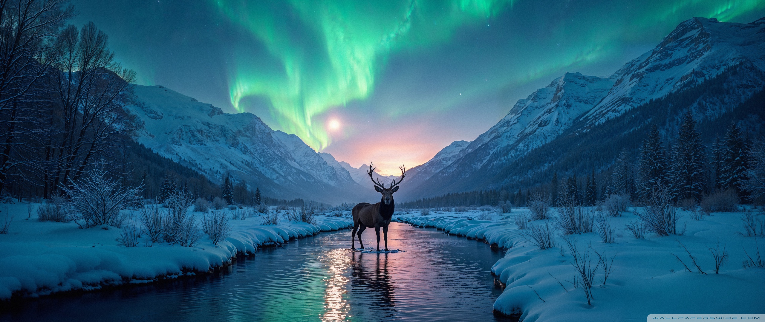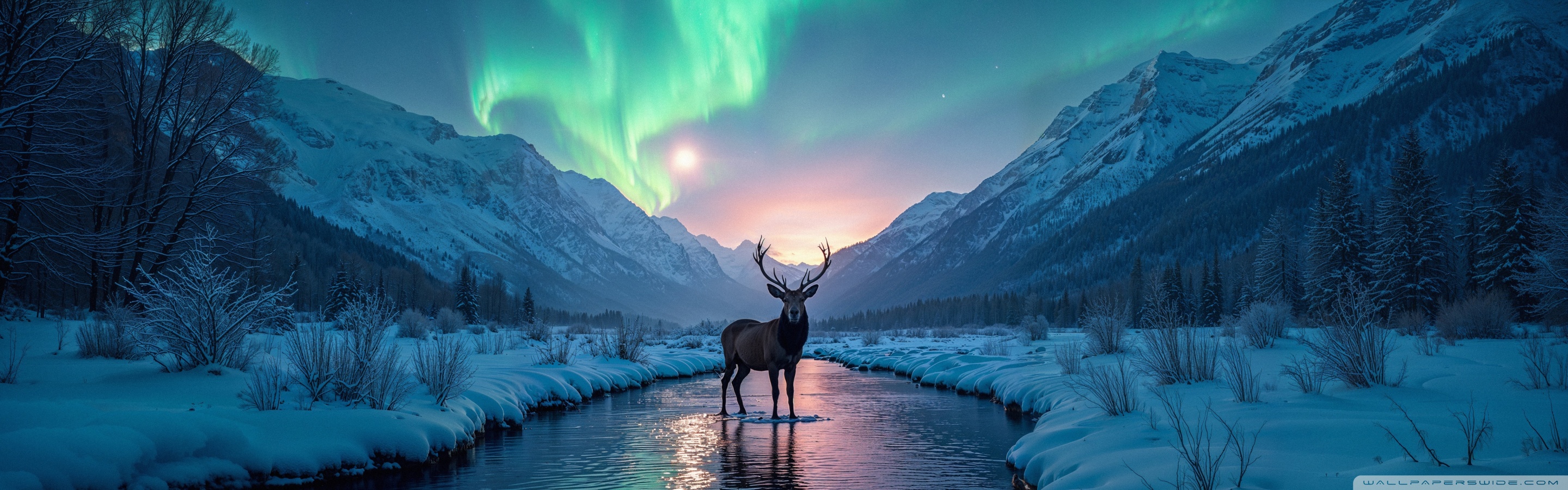 Download Winter, Mountains, Stream, and Wildlife 4K UHD Wallpaper