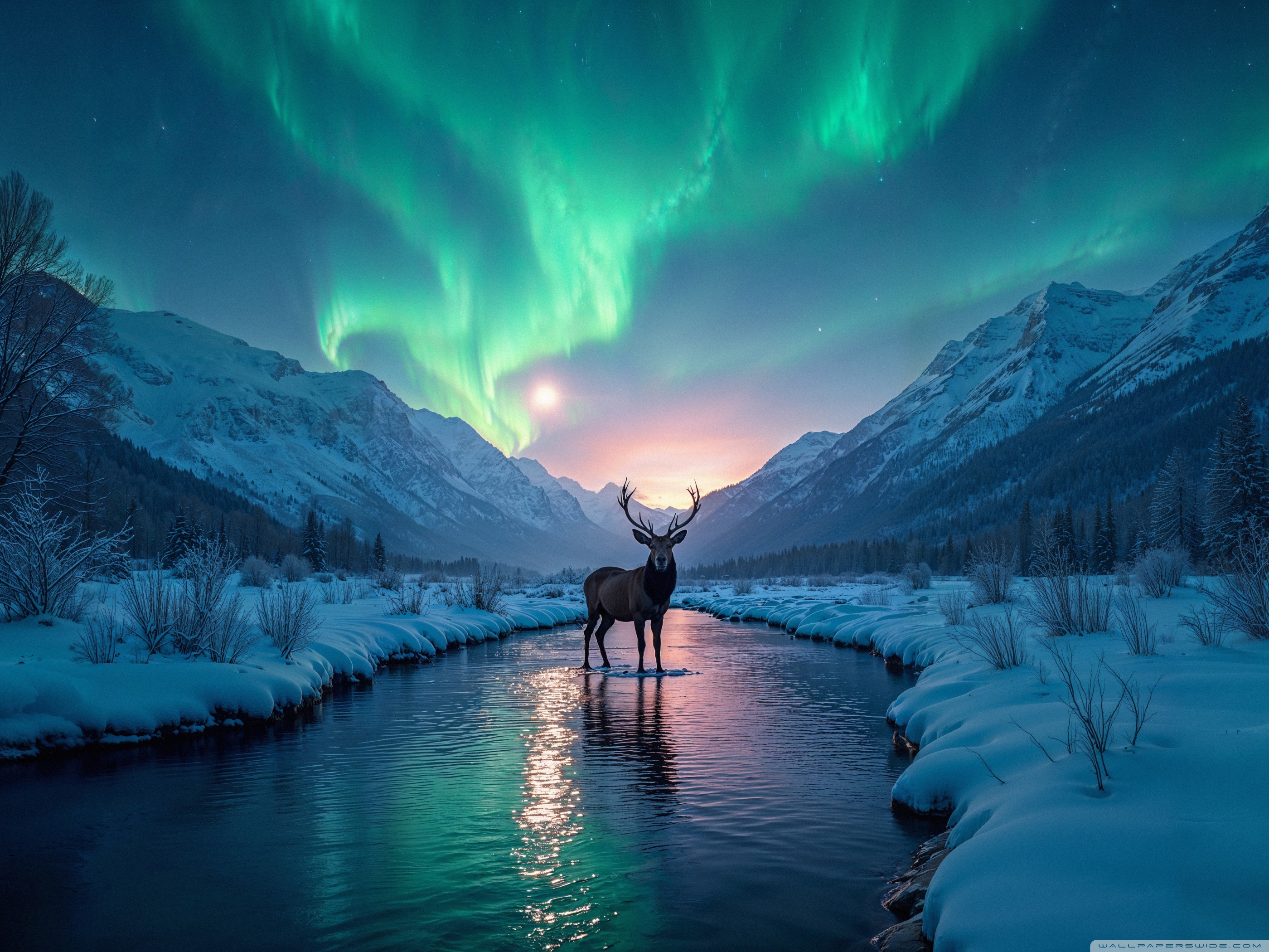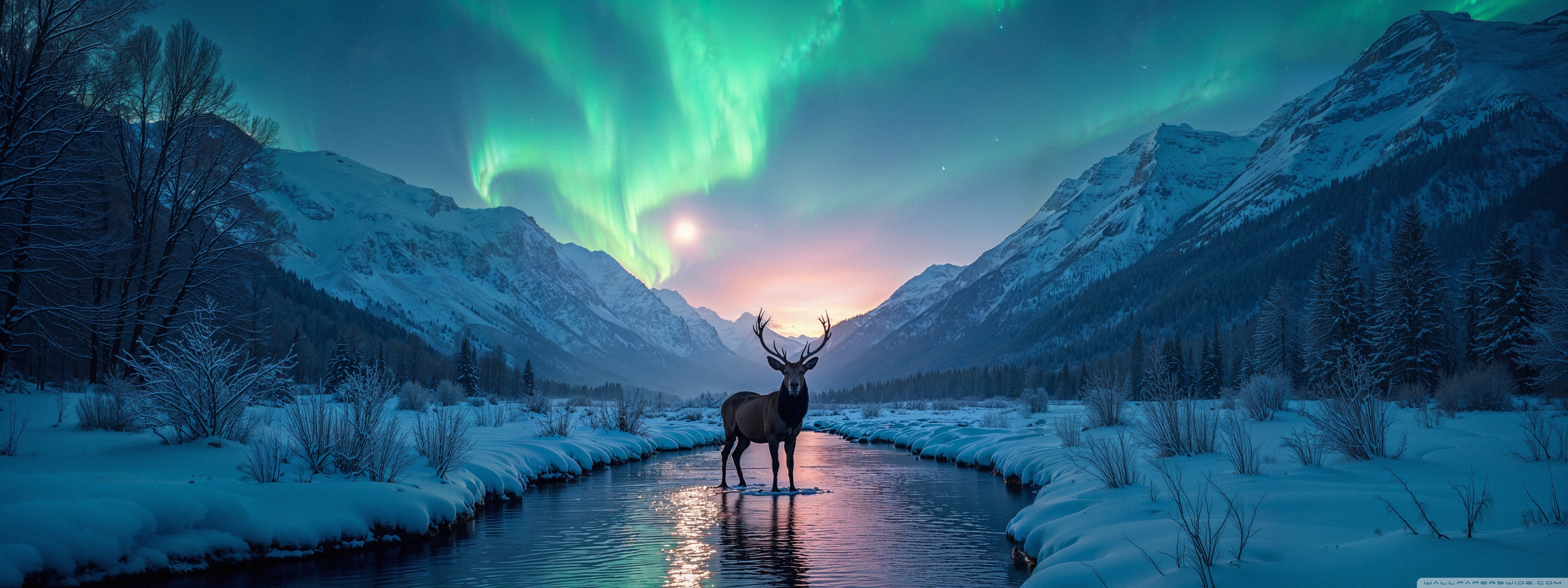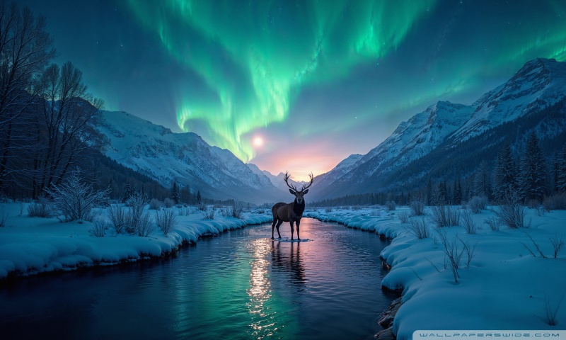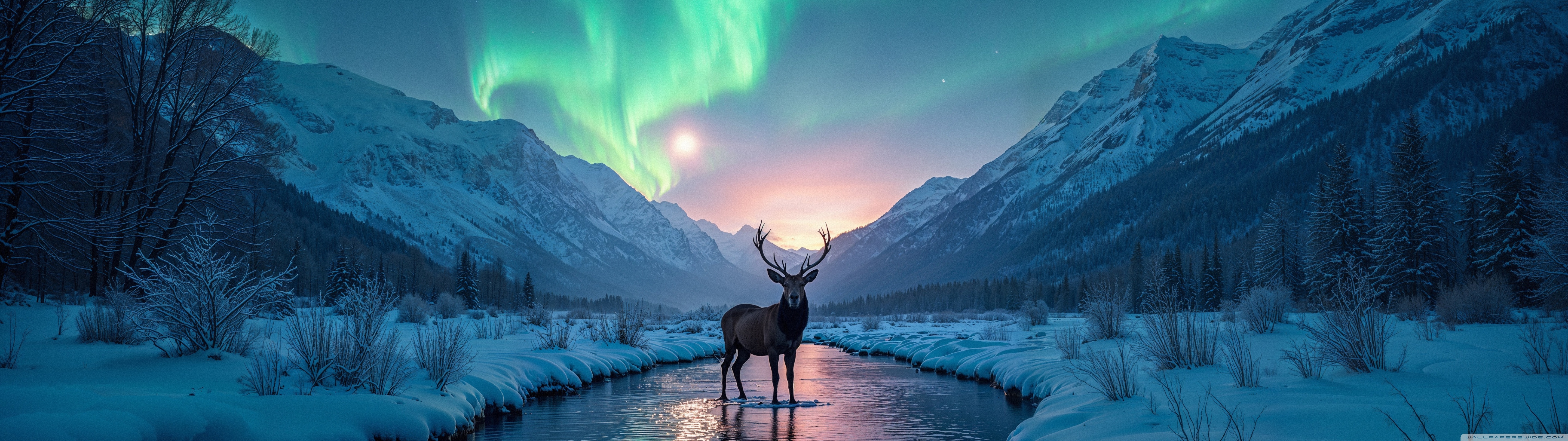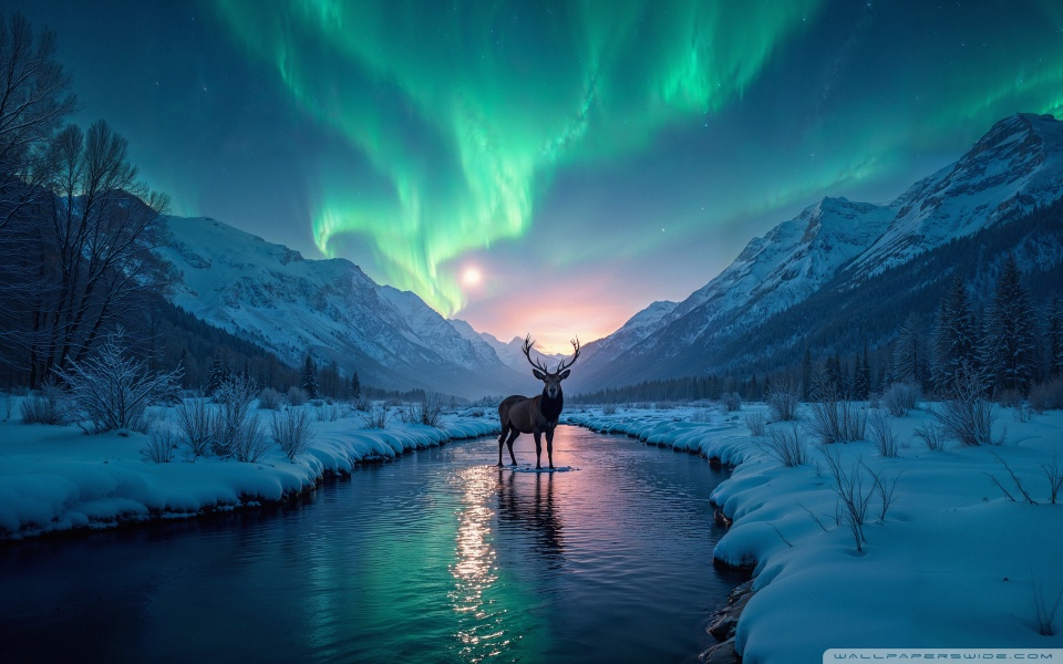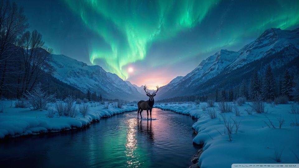 Download Winter, Mountains, Stream, and Wildlife 4K UHD Wallpaper