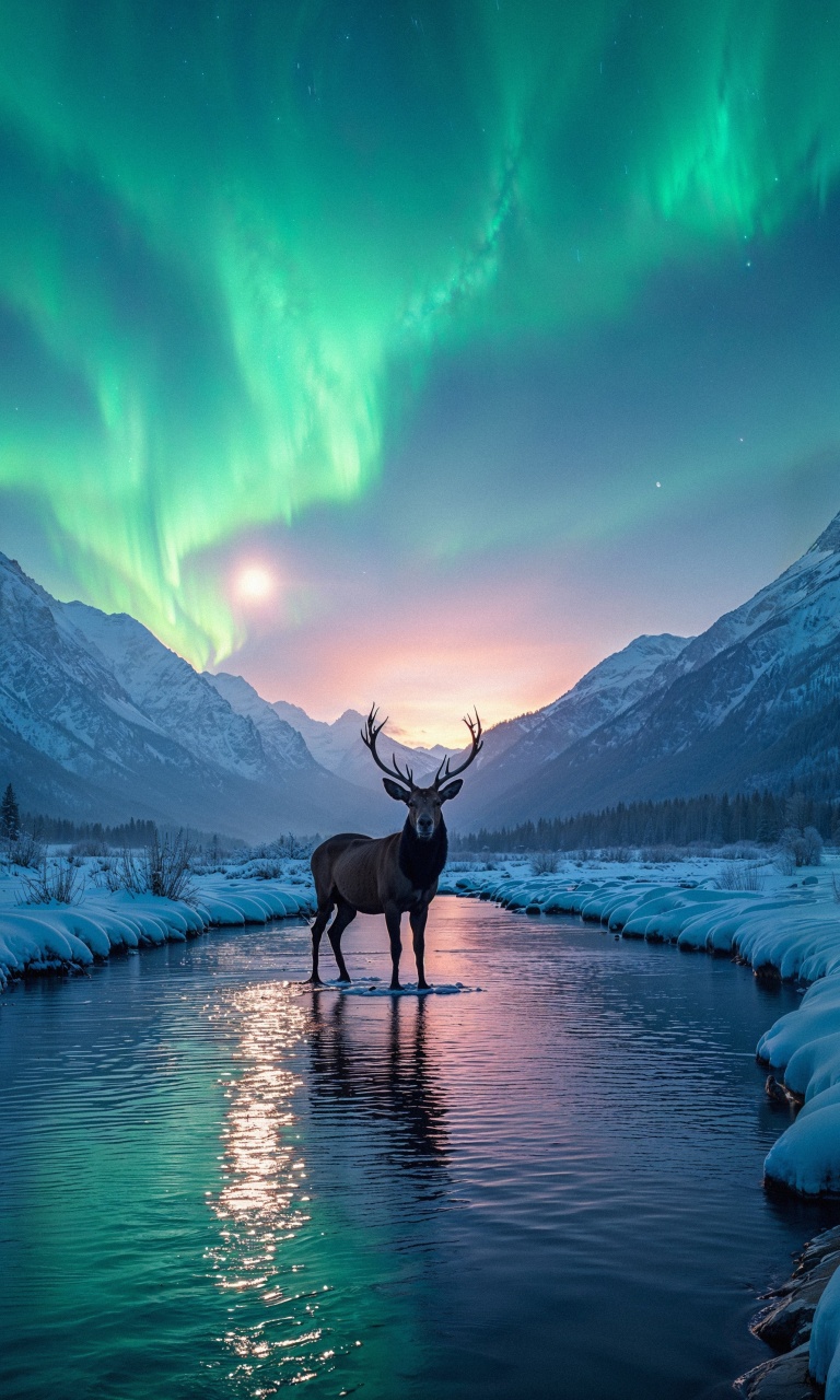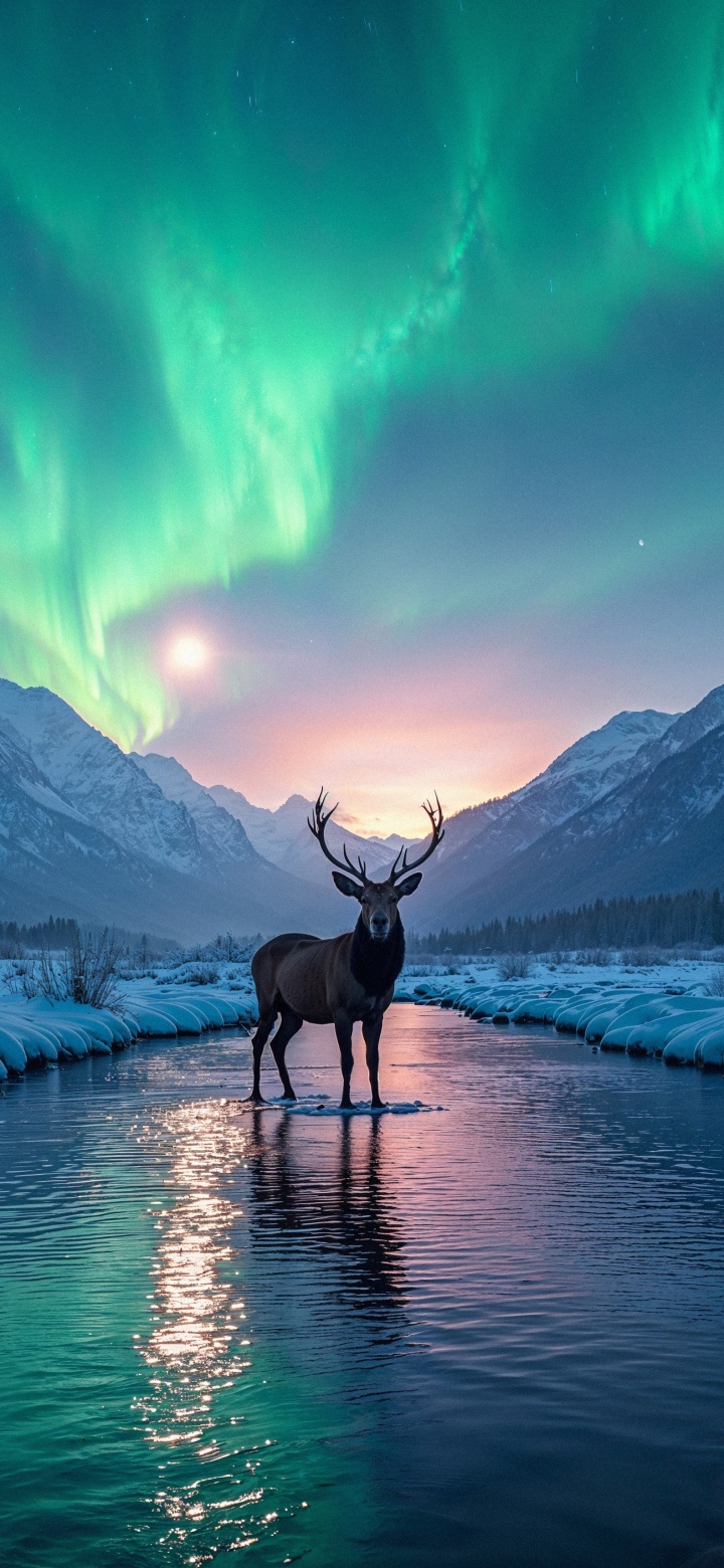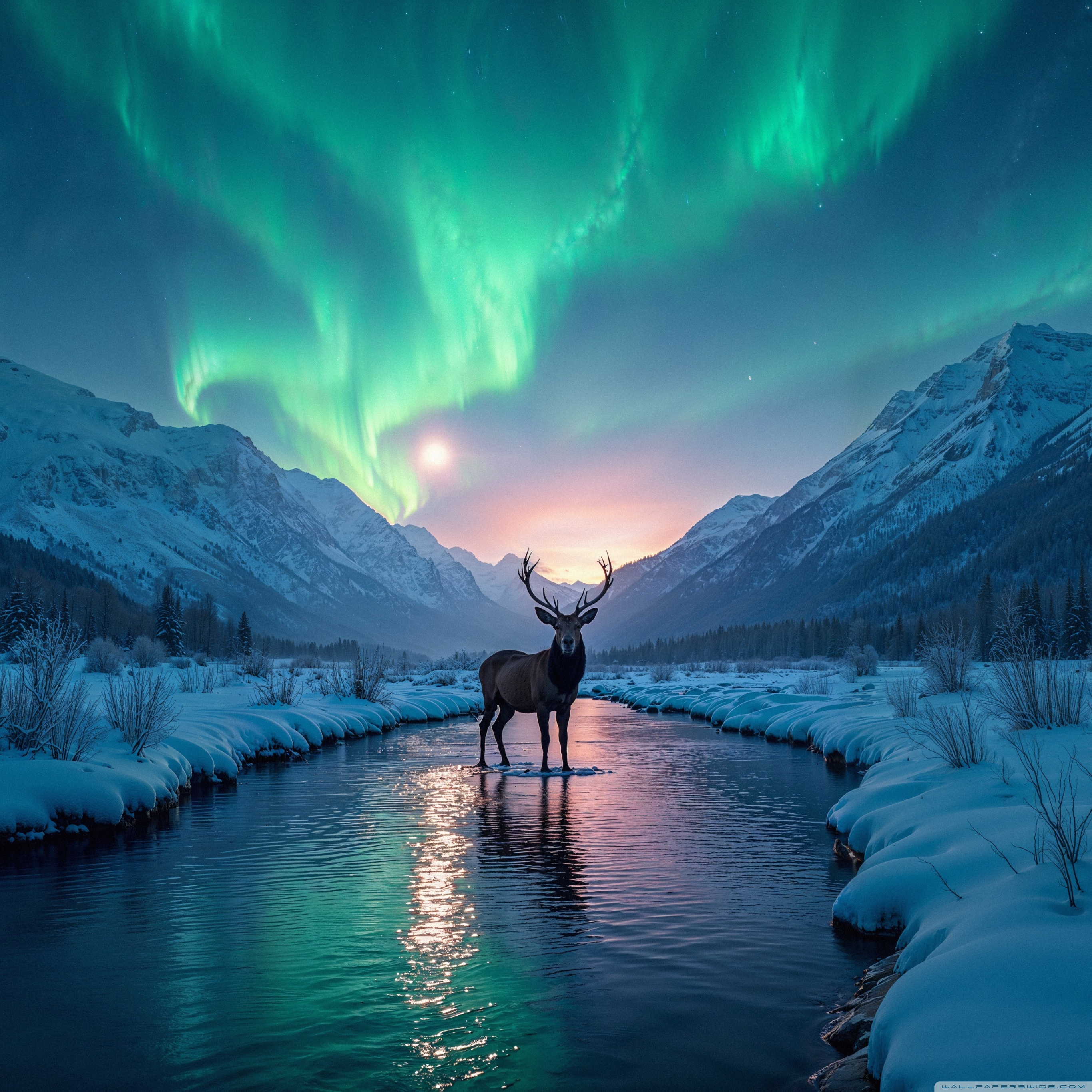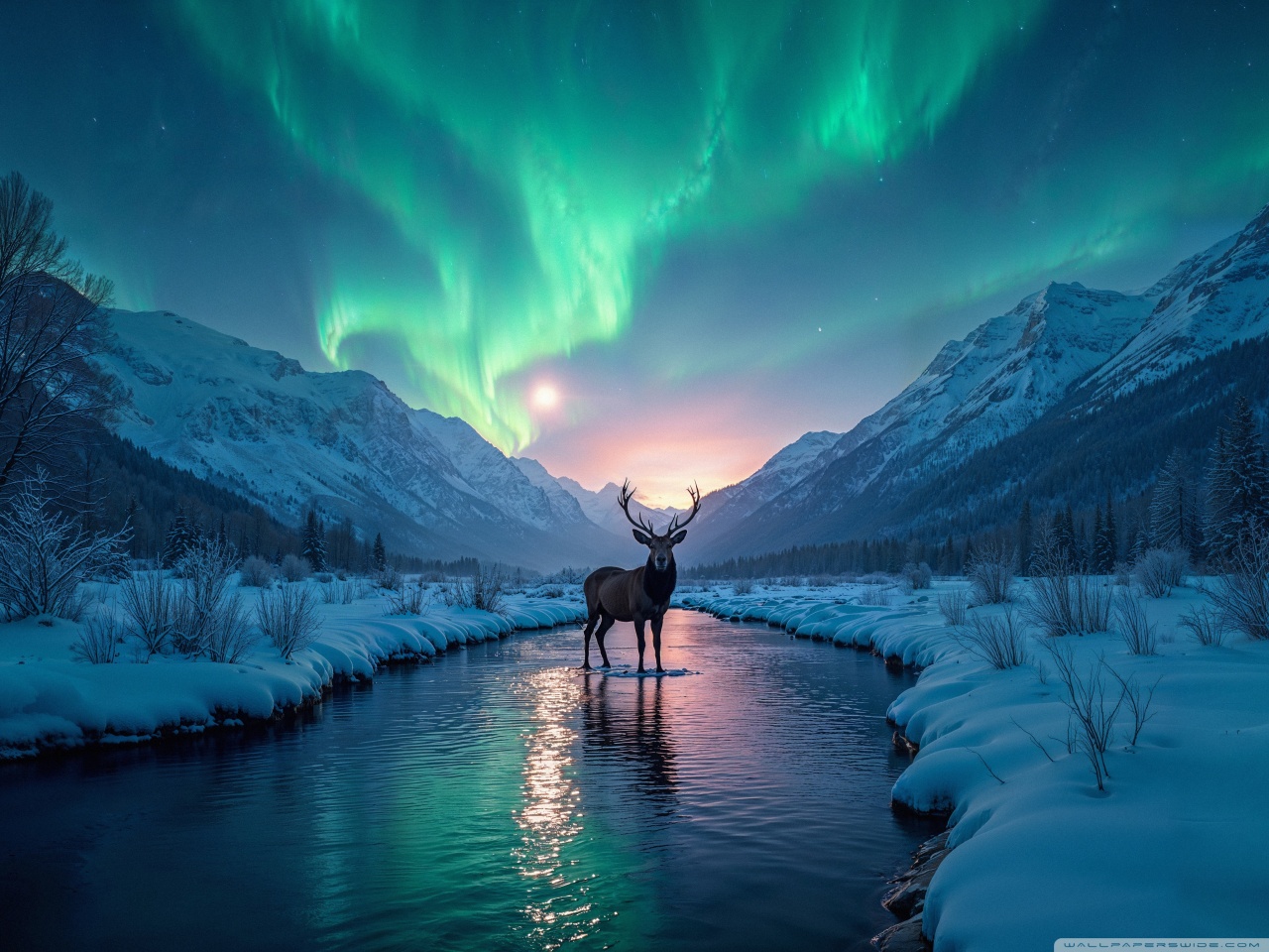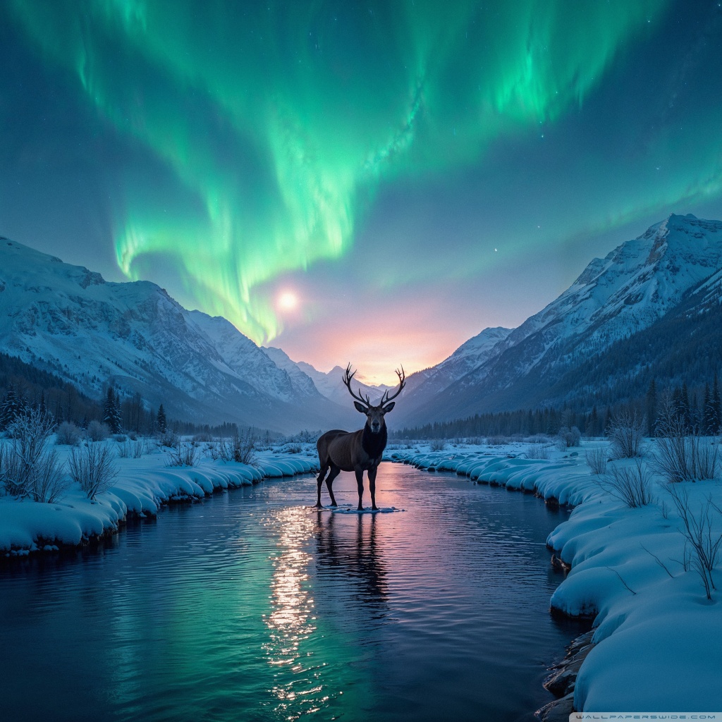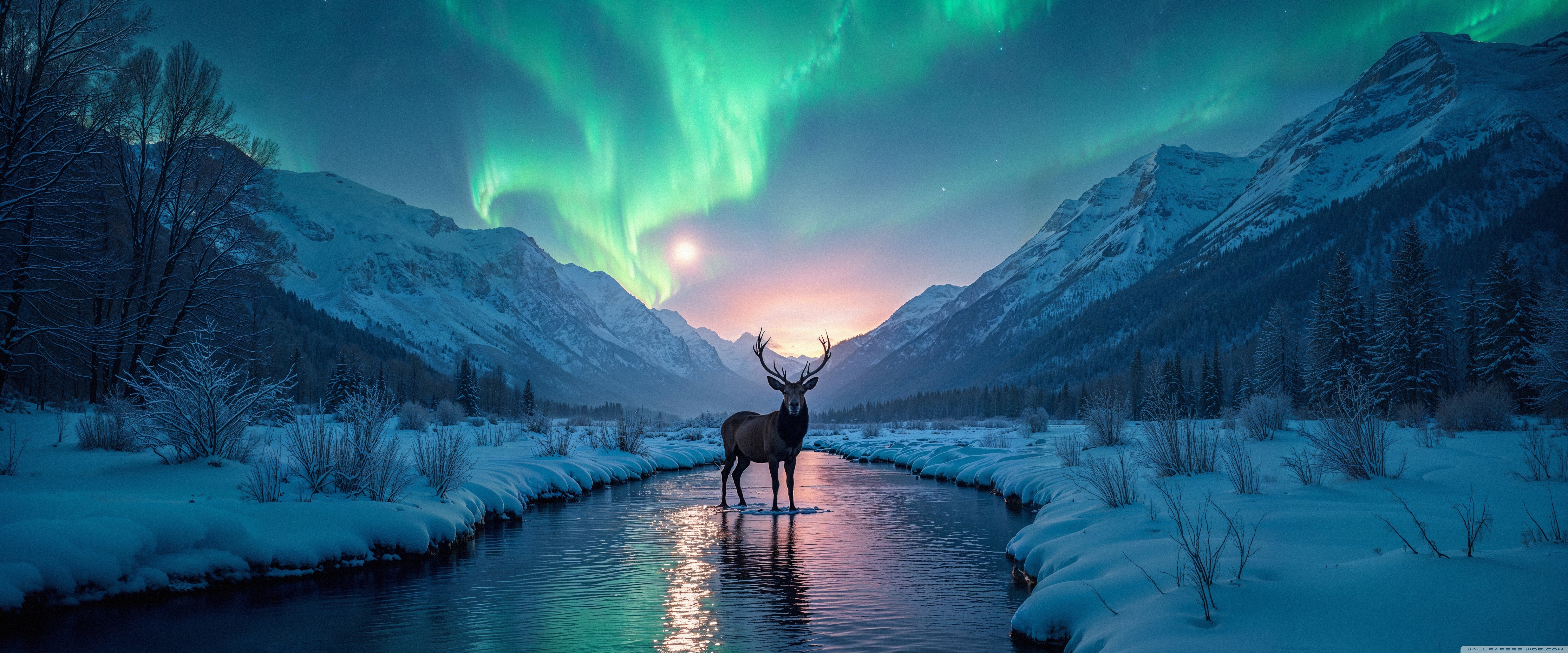 Download Winter, Mountains, Stream, and Wildlife 4K UHD Wallpaper