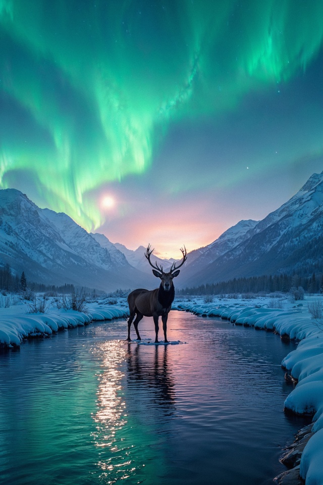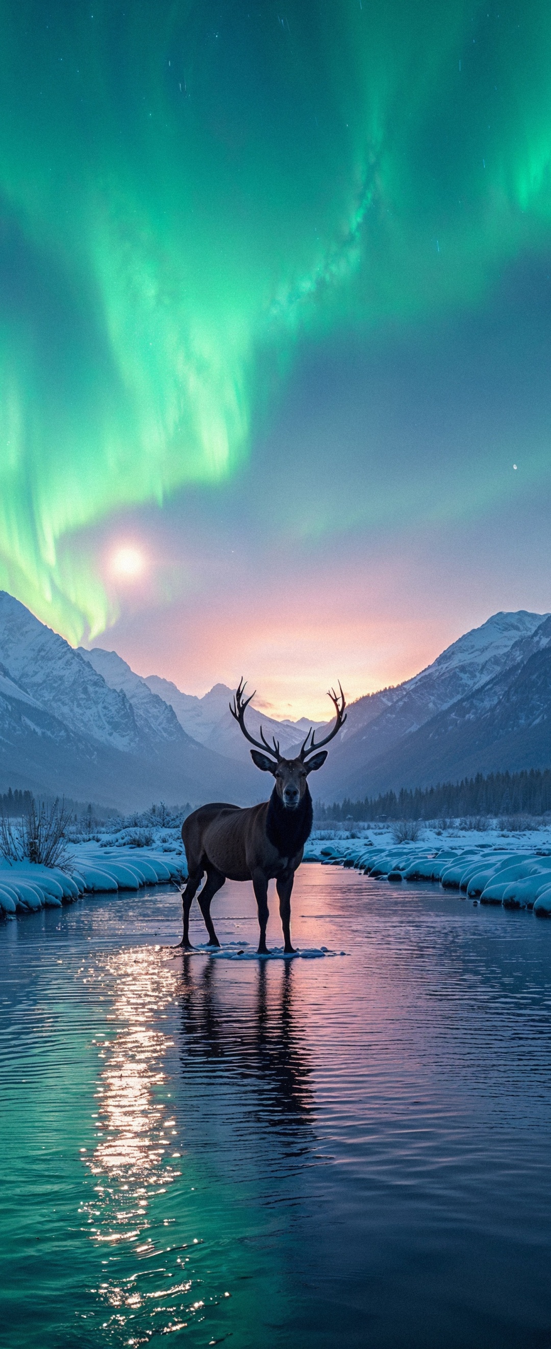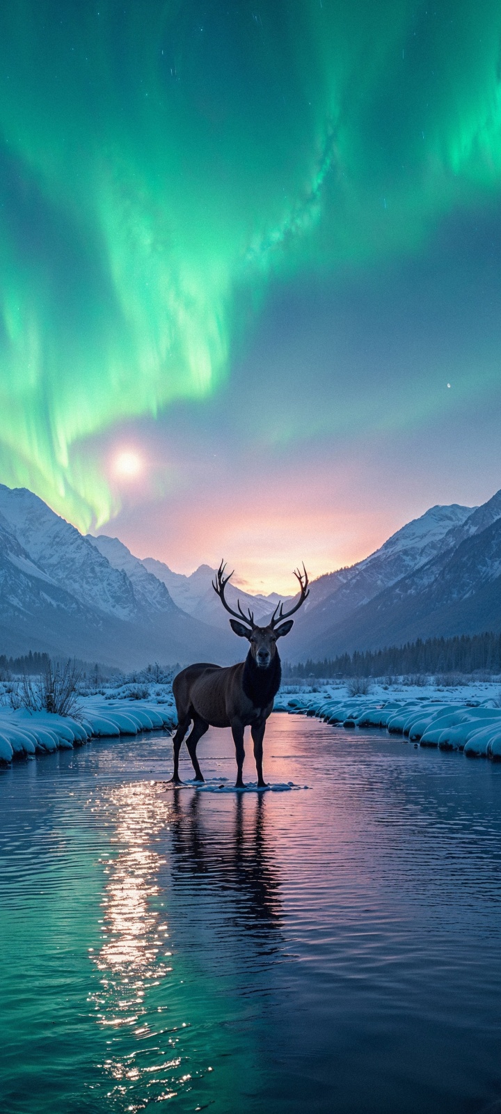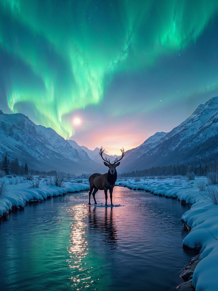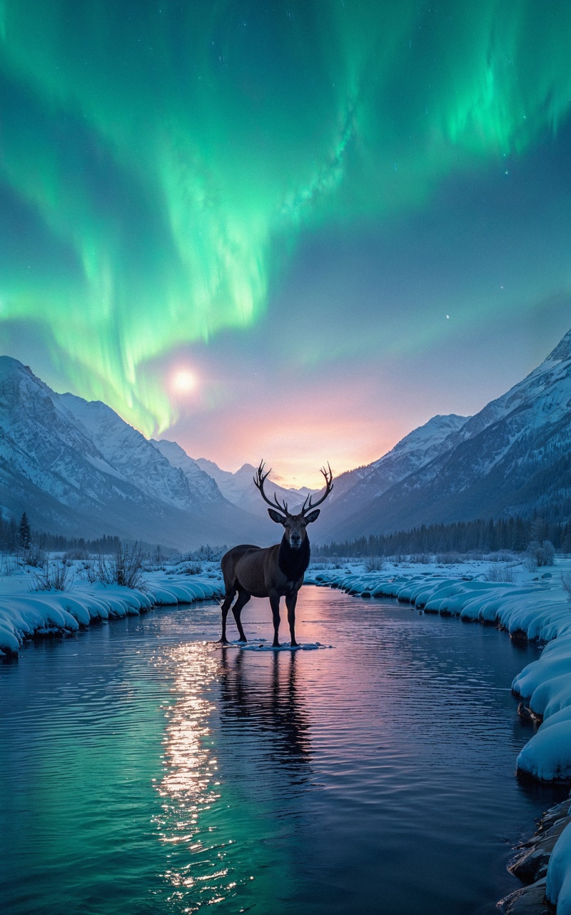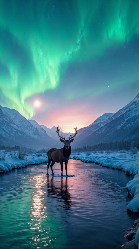 Download Winter, Mountains, Stream, and Wildlife 4K UHD Wallpaper