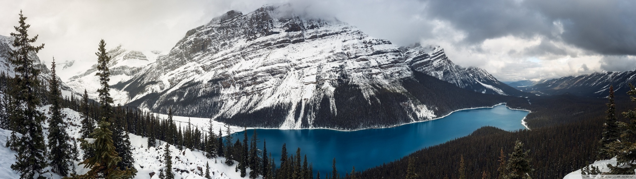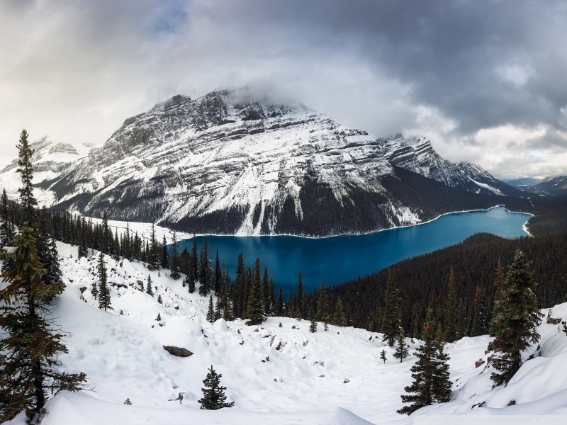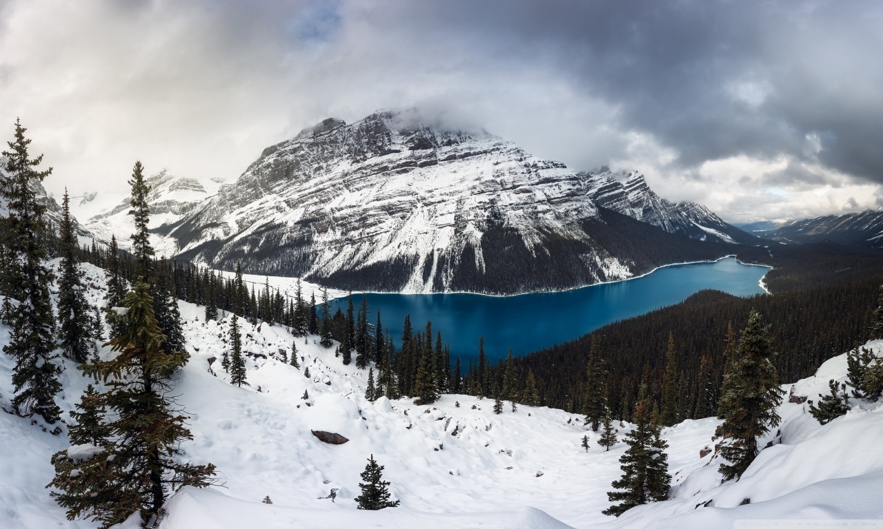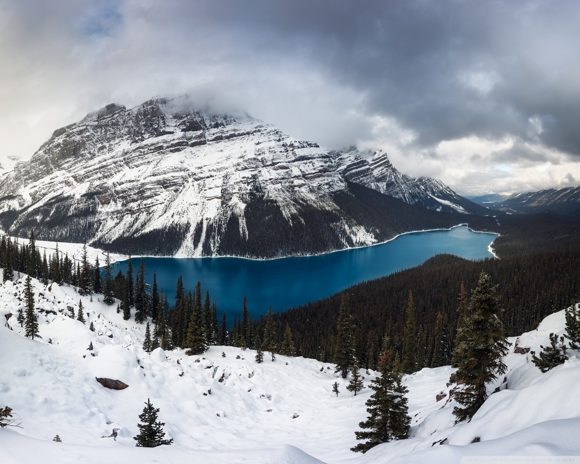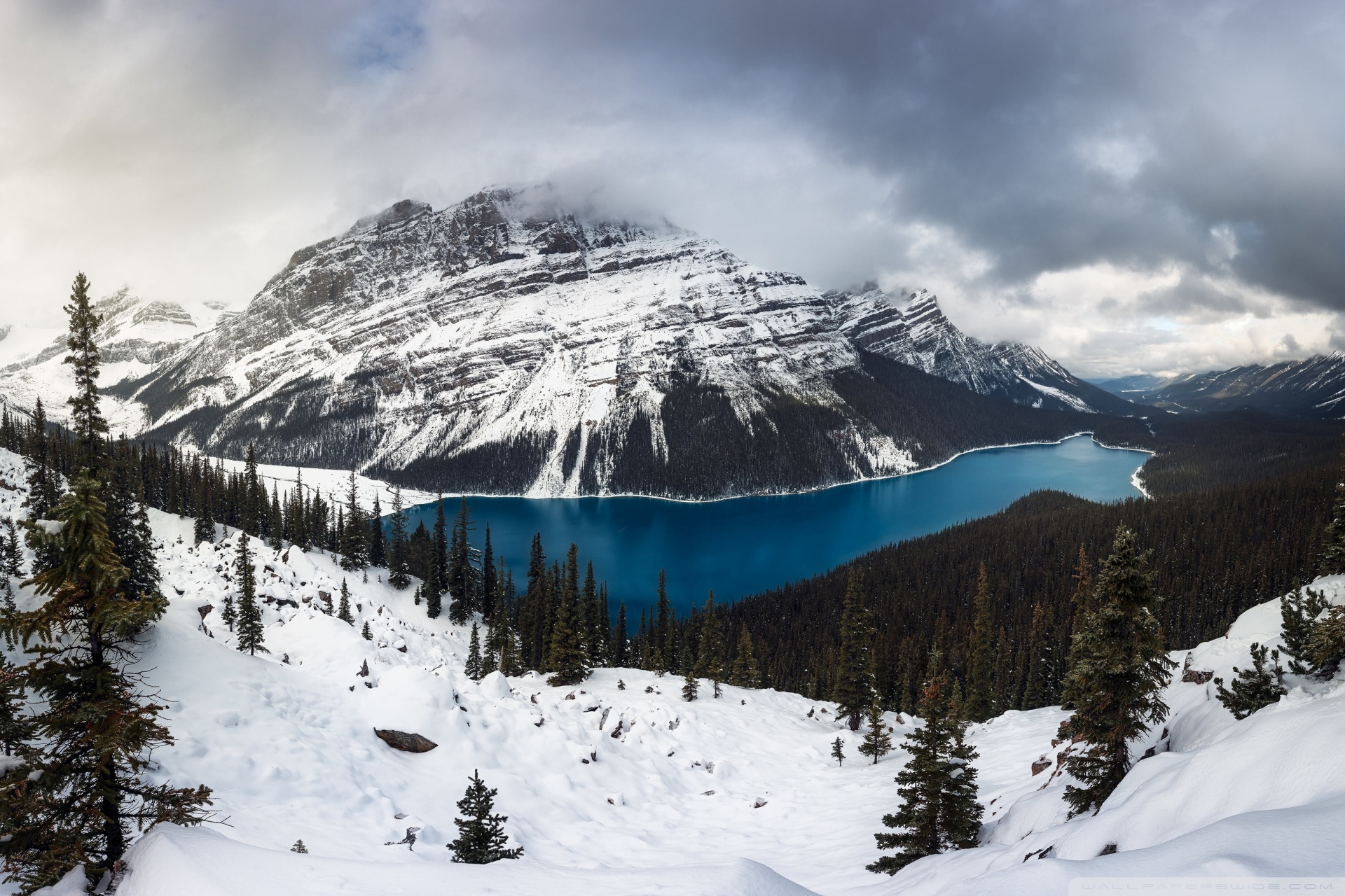 Download Winter Panorama Over the Blue Lake 4K UHD Wallpaper