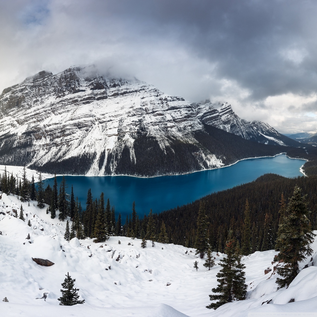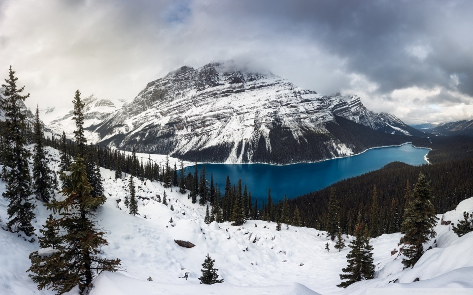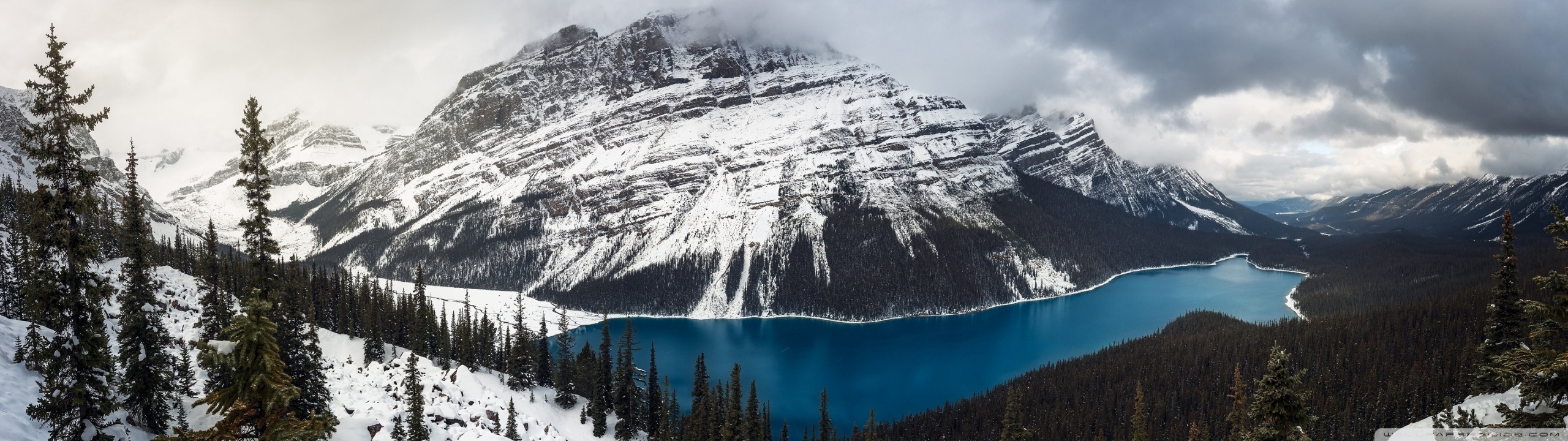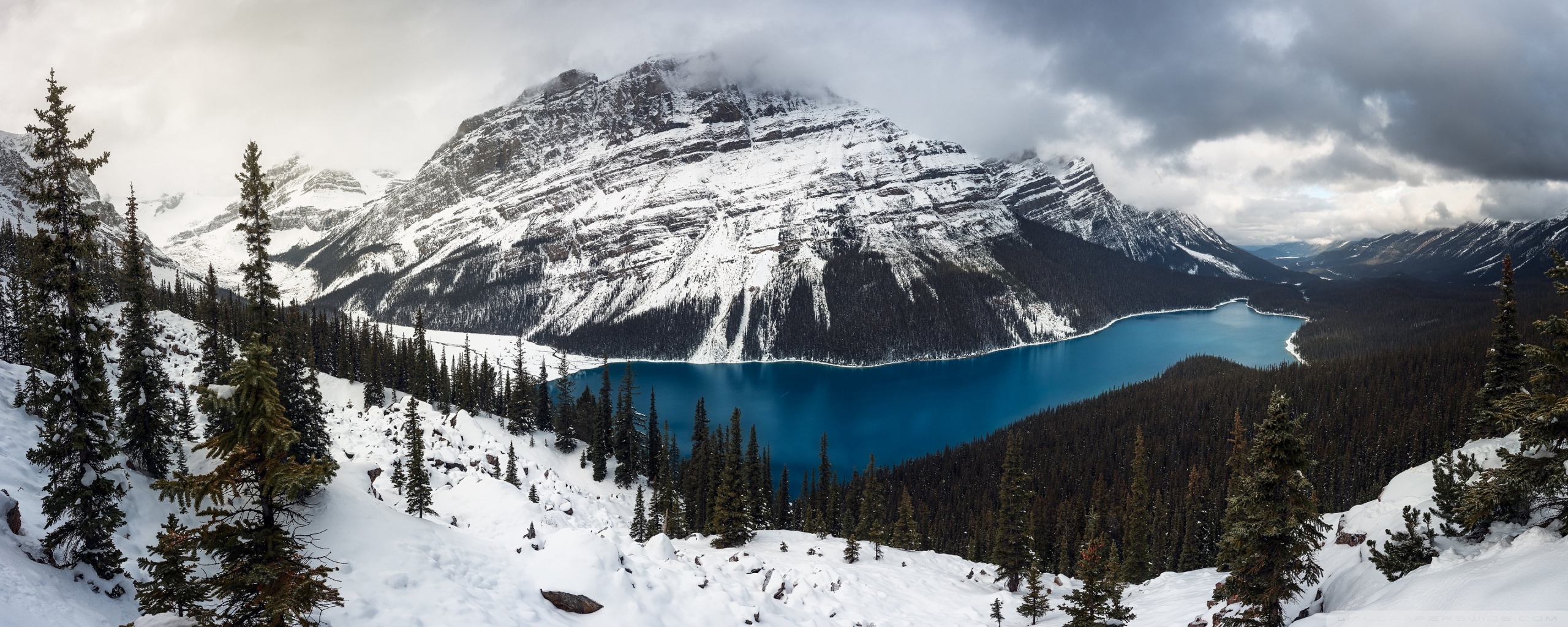 Download Winter Panorama Over the Blue Lake 4K UHD Wallpaper
