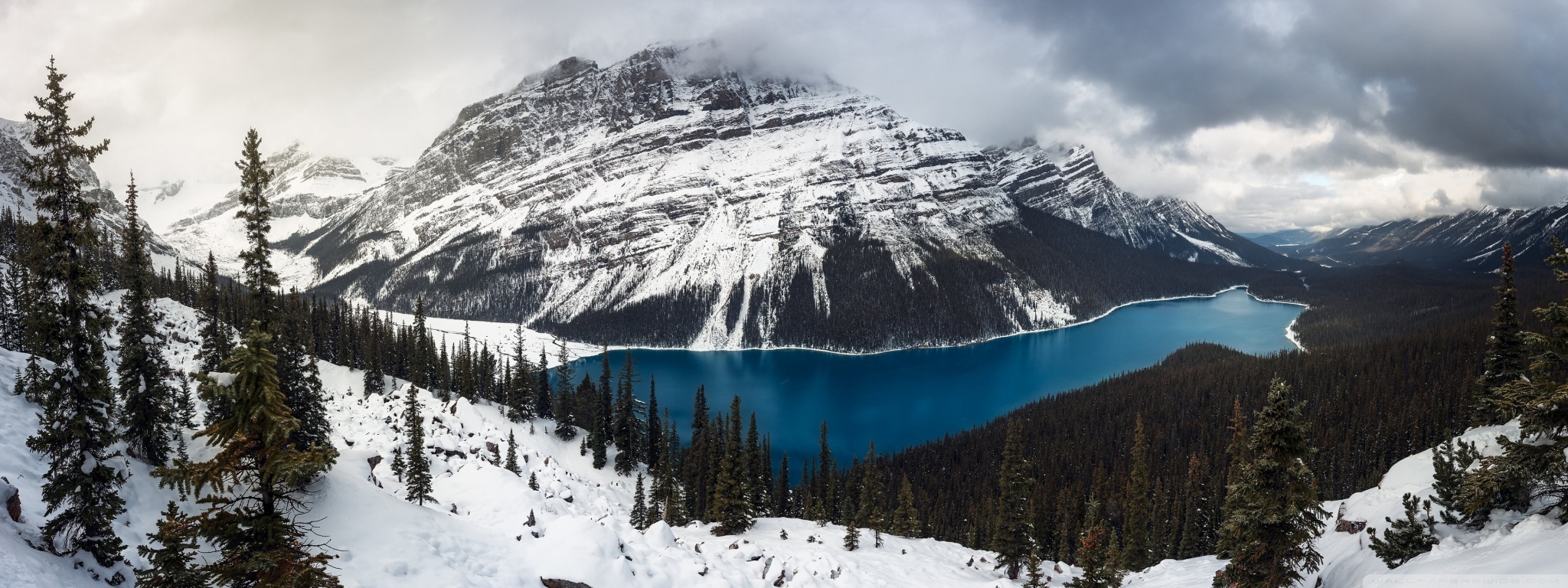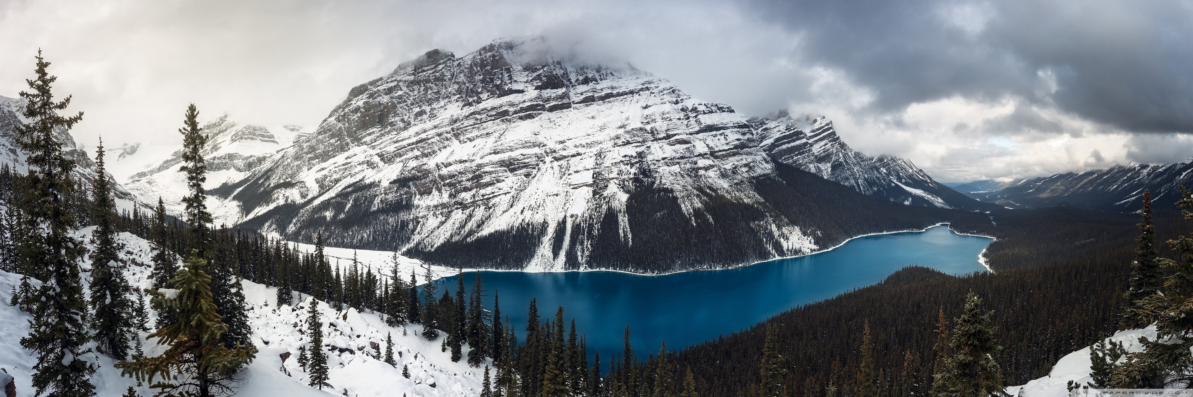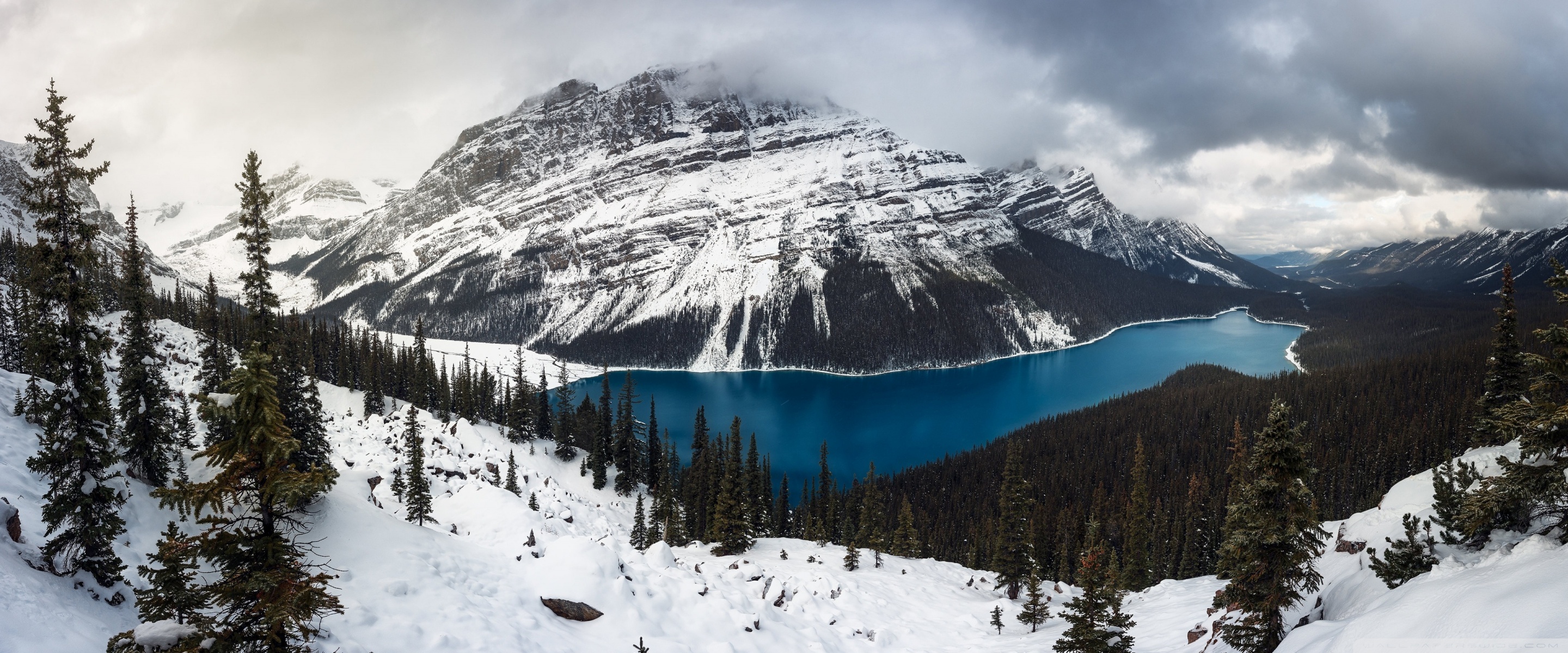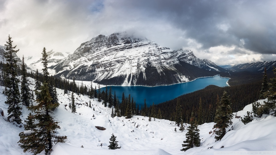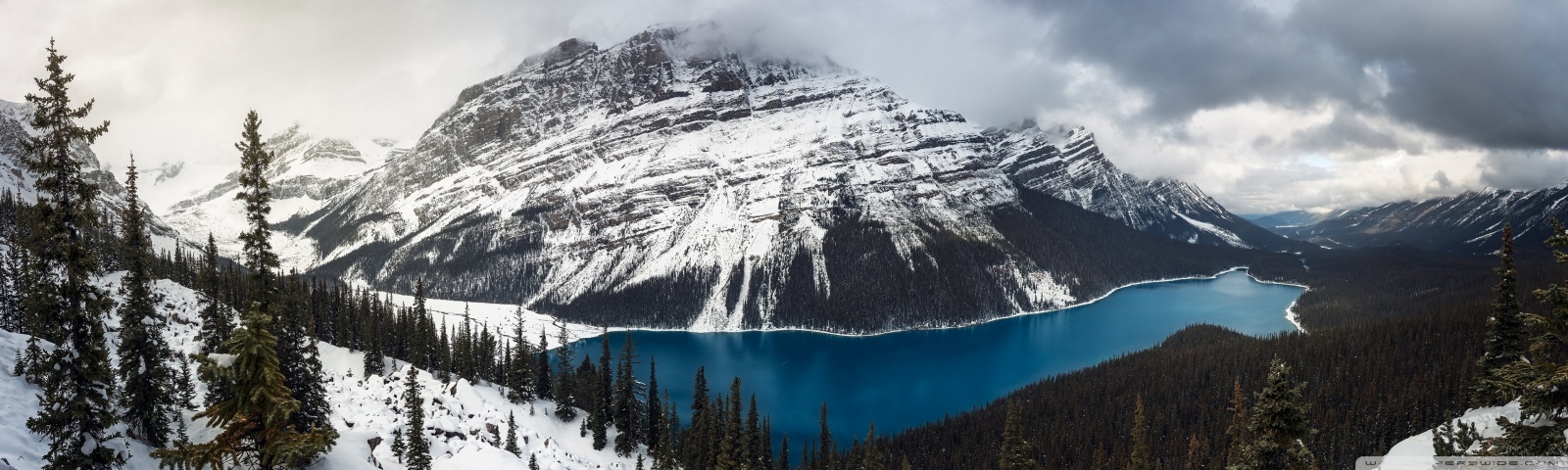 Download Winter Panorama Over the Blue Lake 4K UHD Wallpaper