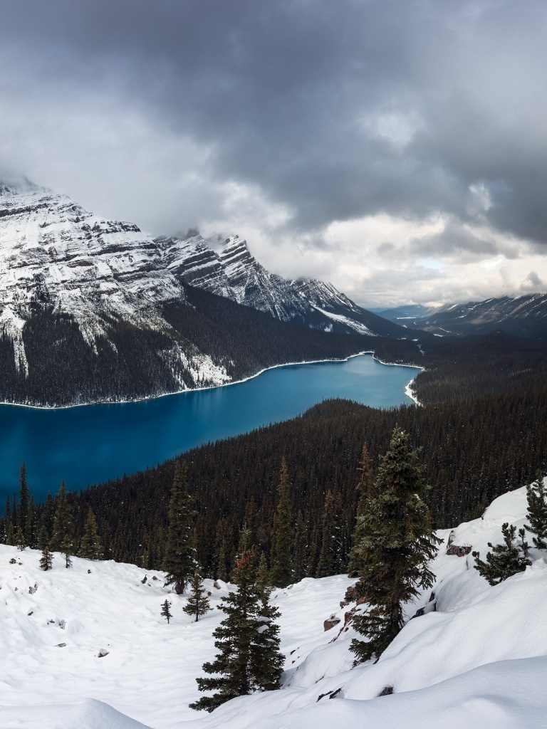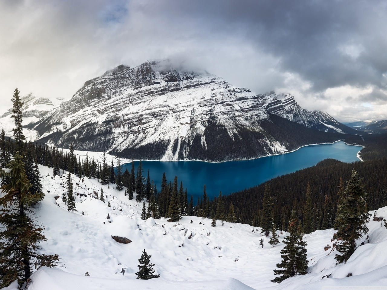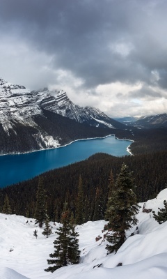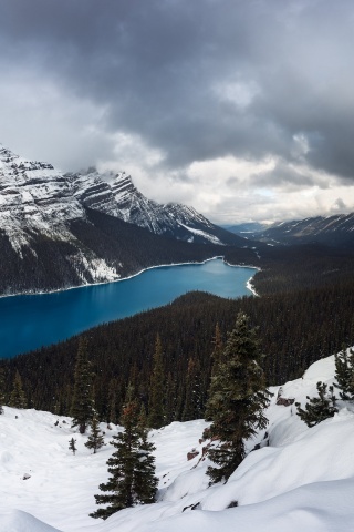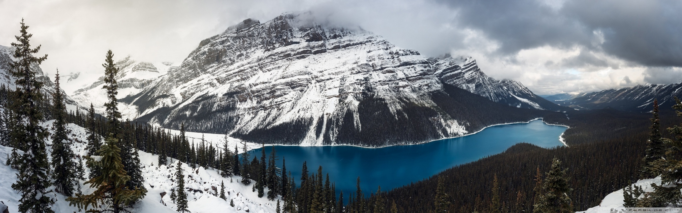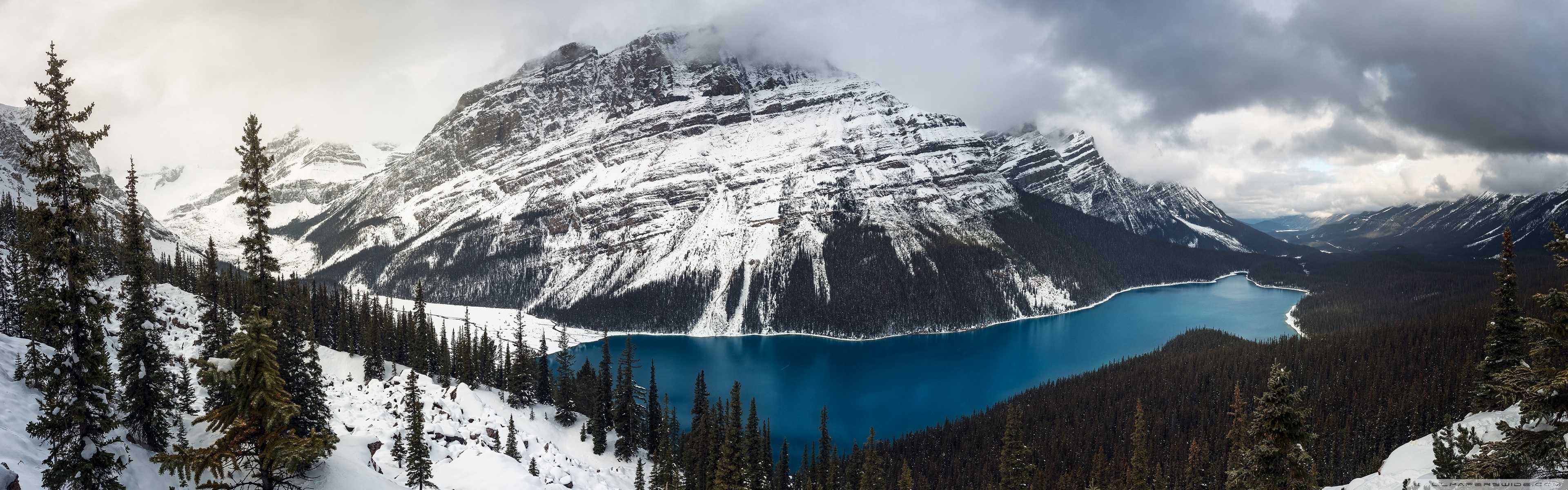 Download Winter Panorama Over the Blue Lake 4K UHD Wallpaper