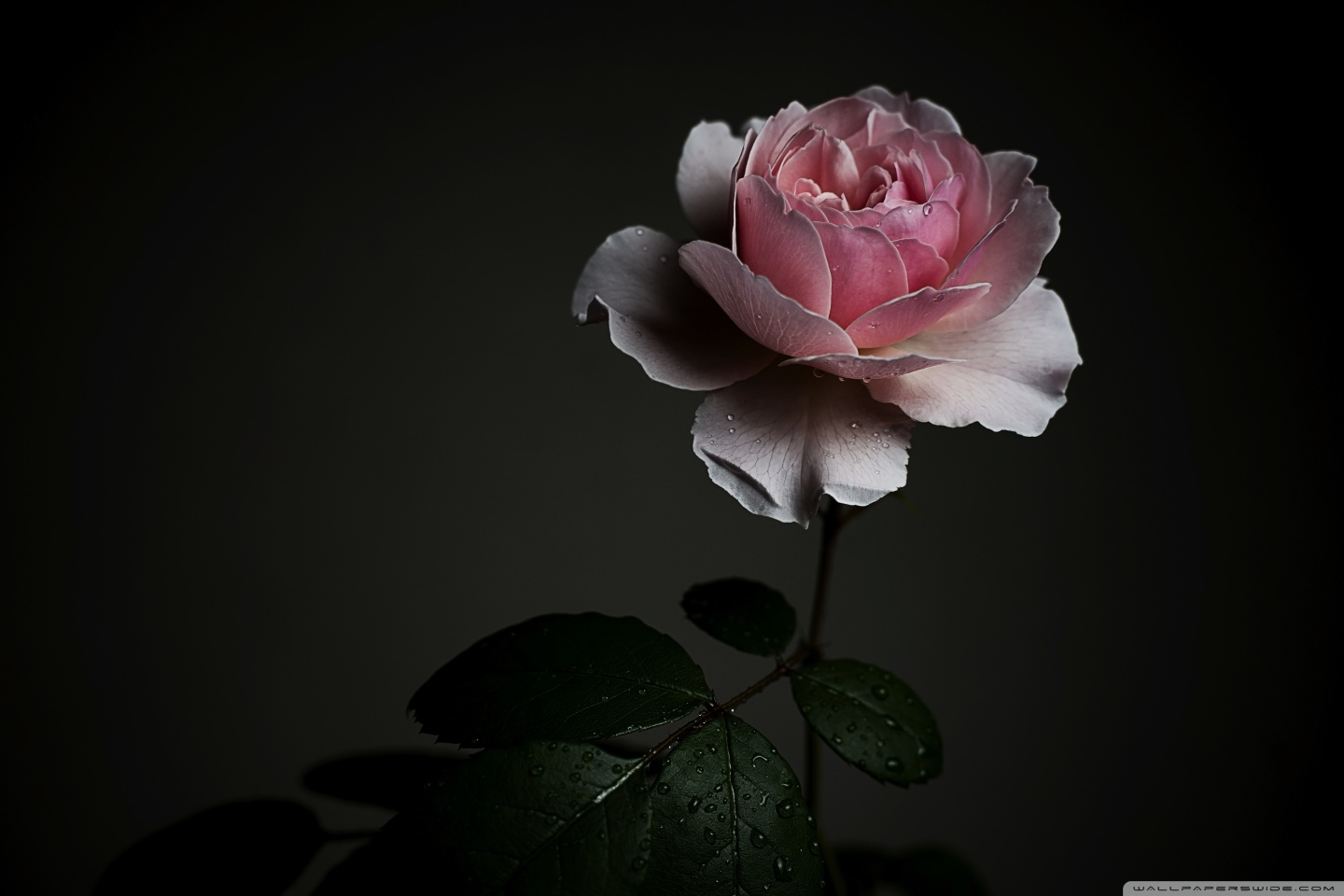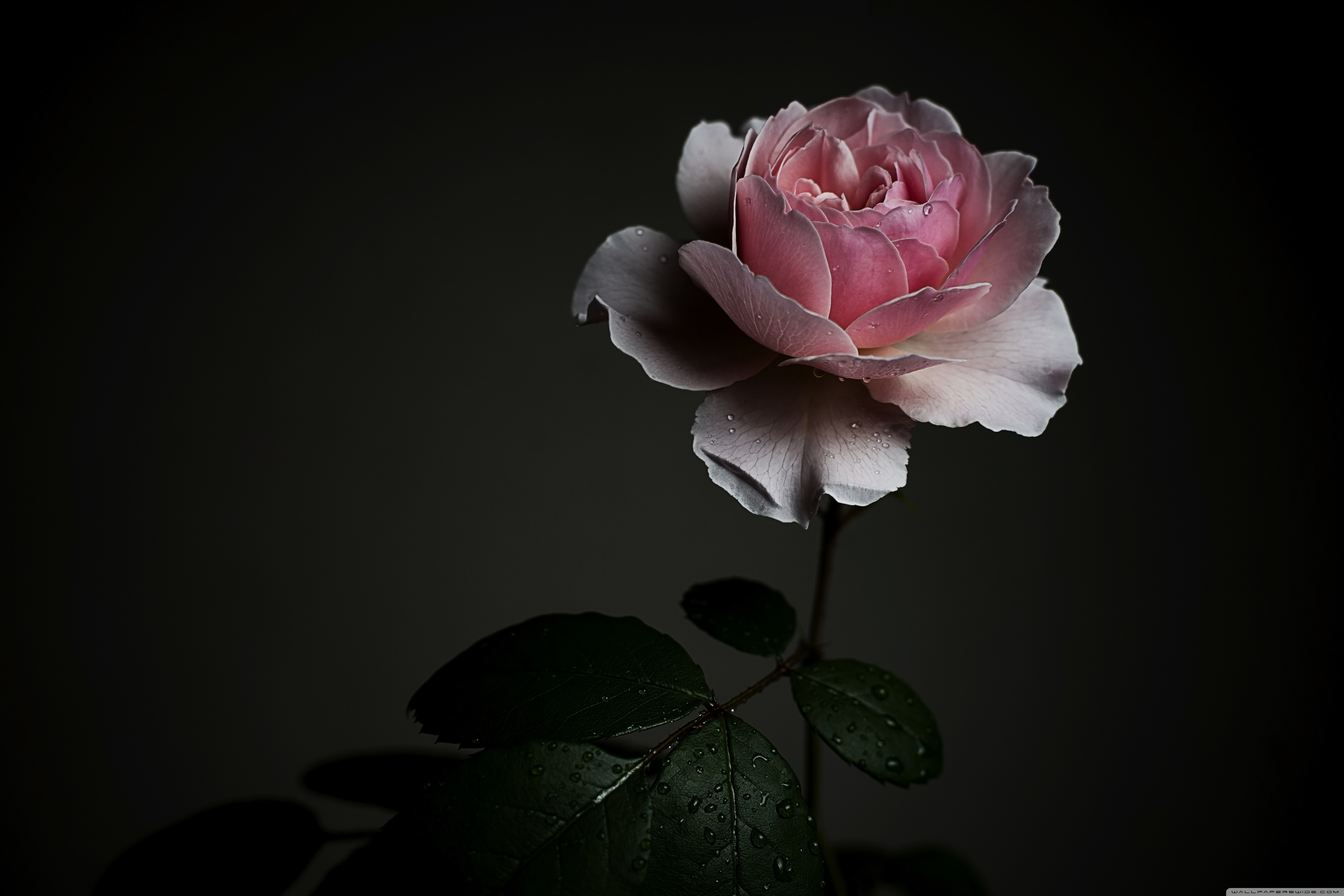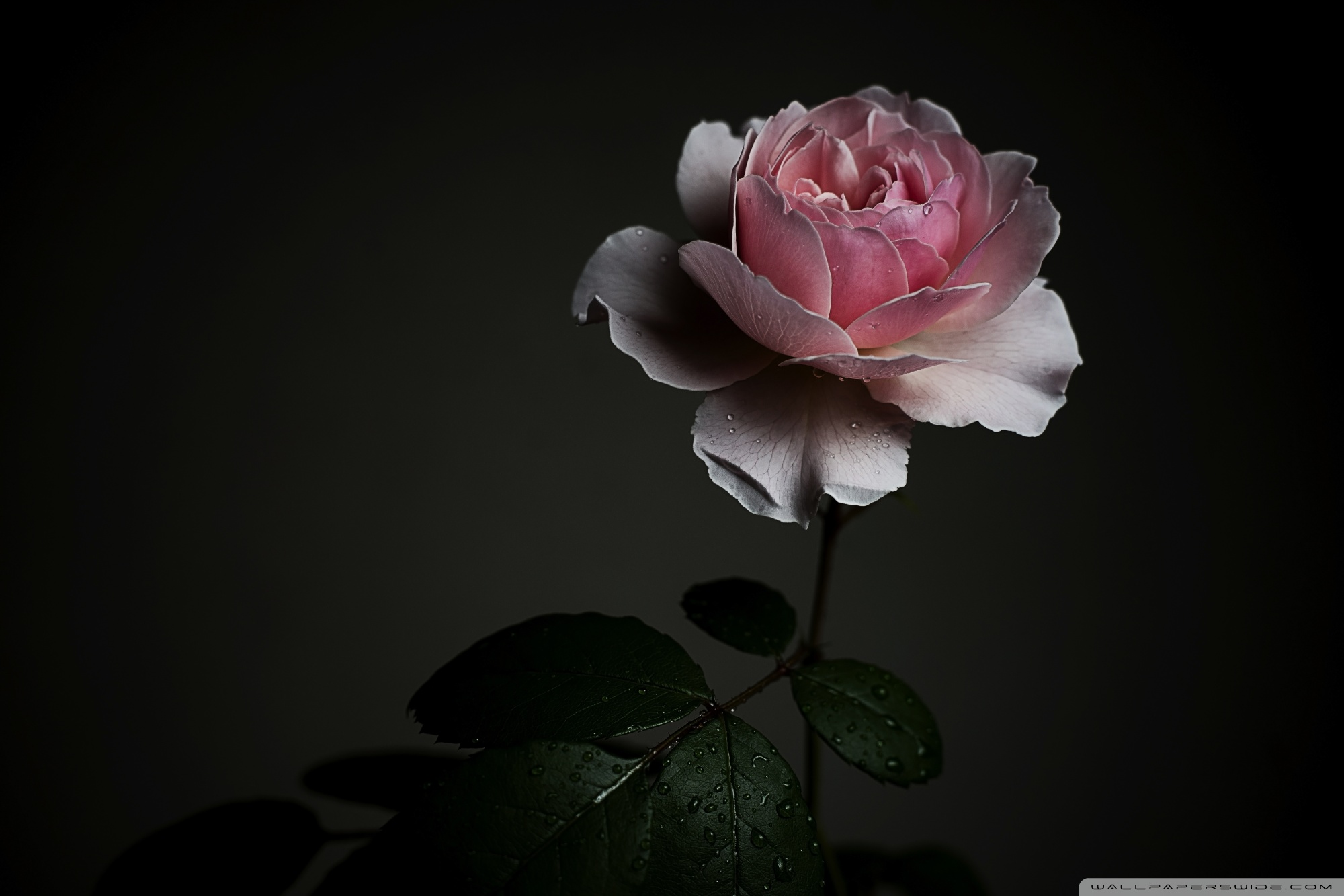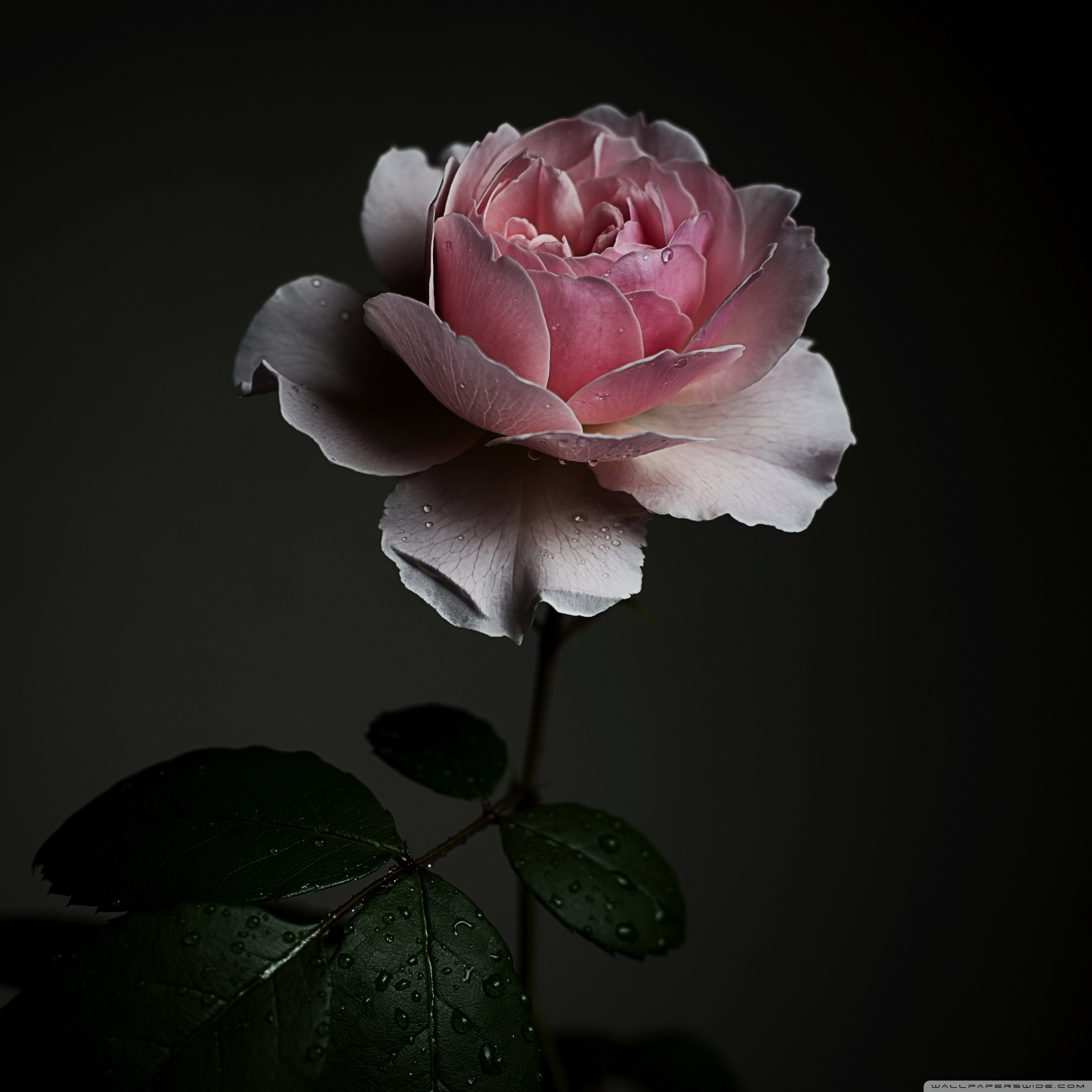 Download Wisley 2008 Rose with Water Drops, Dark... 4K UHD Wallpaper
