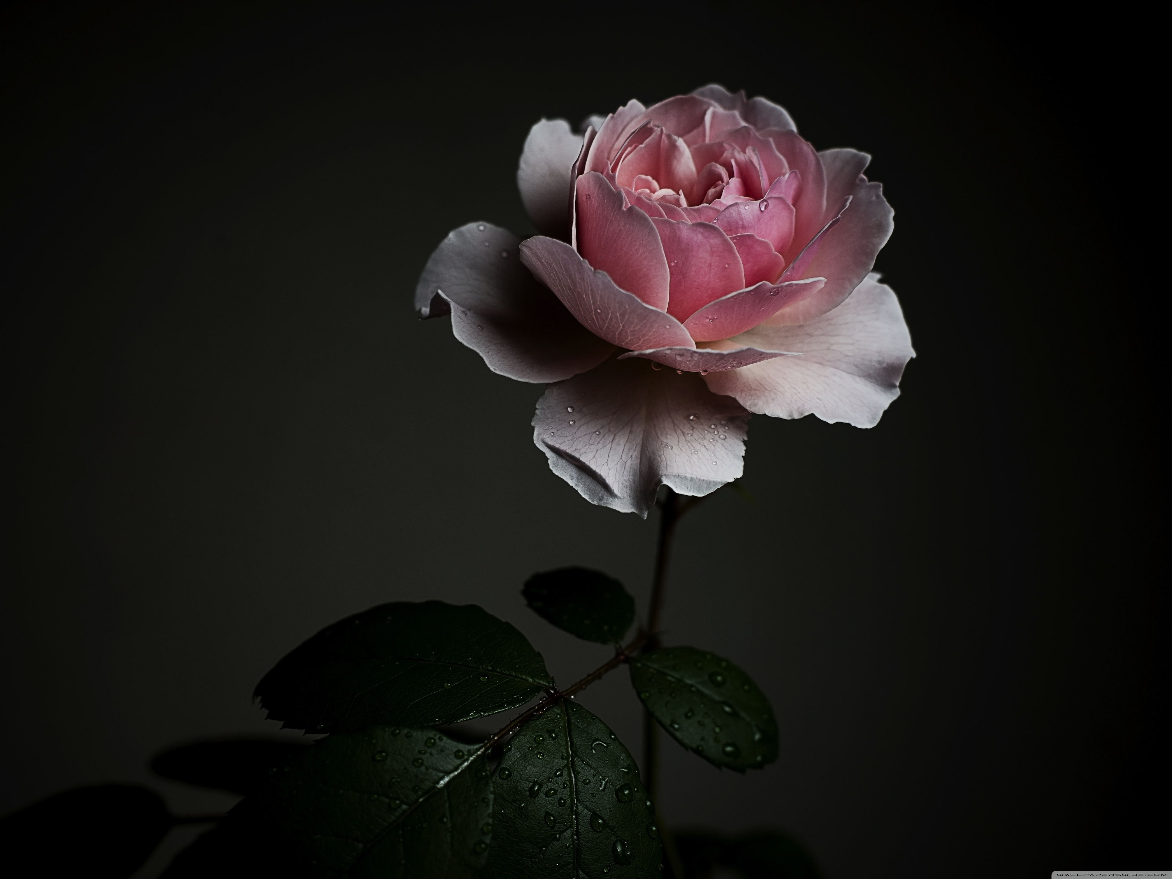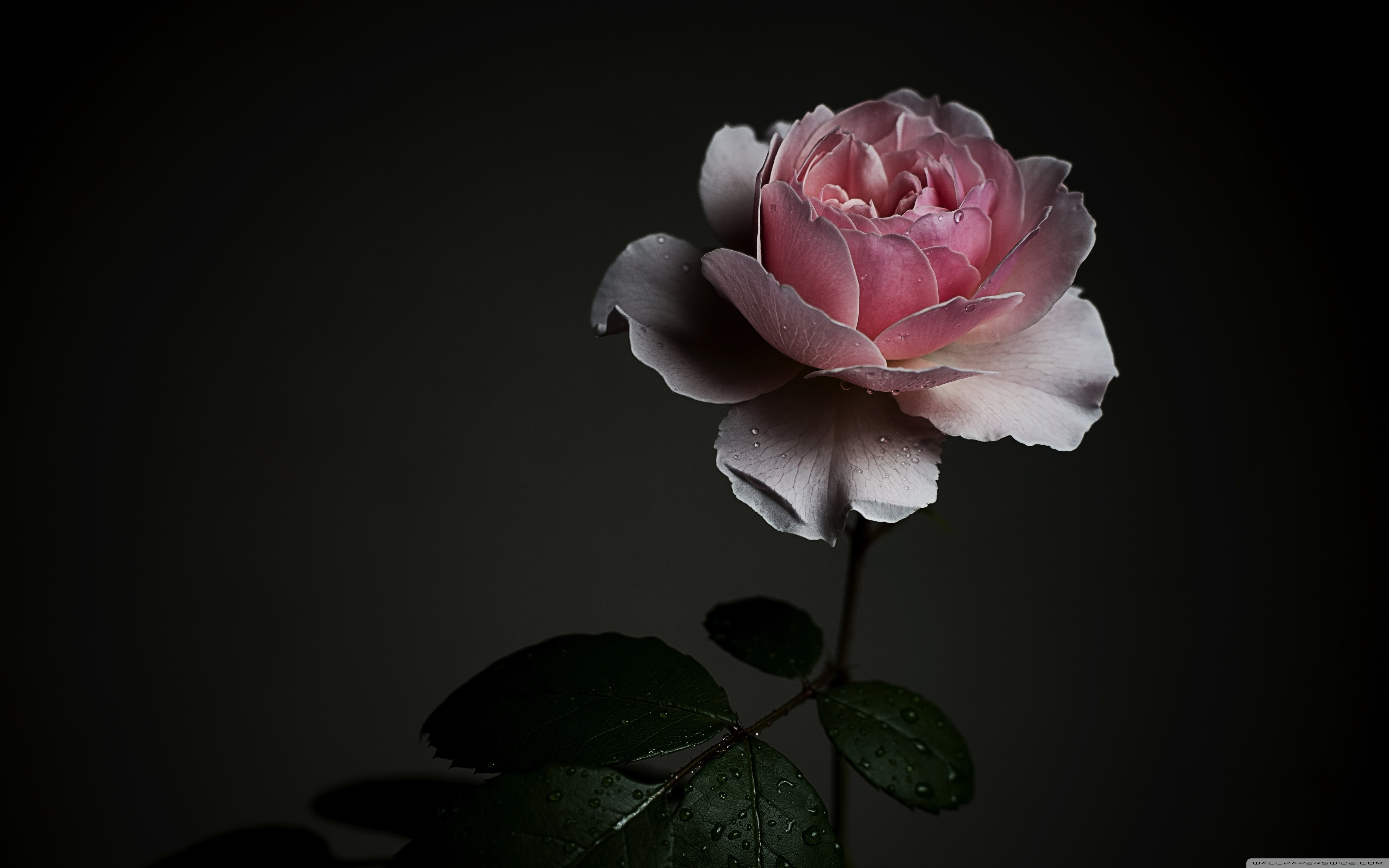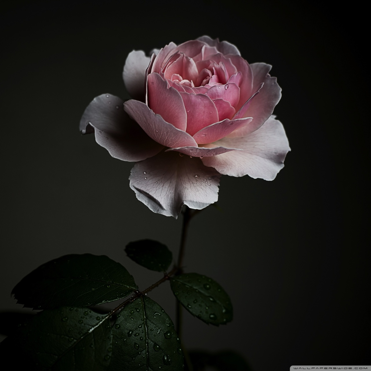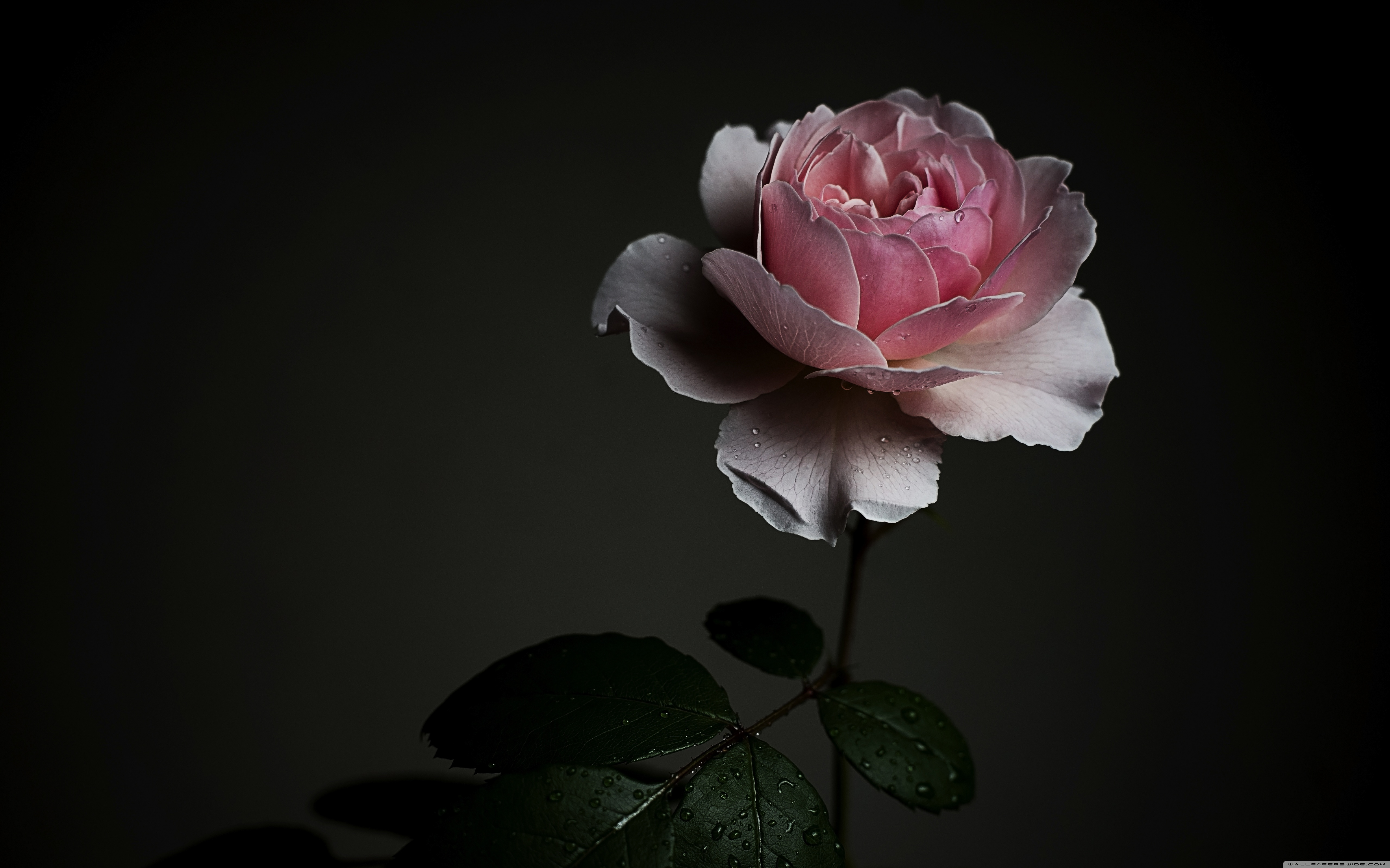 Download Wisley 2008 Rose with Water Drops, Dark... 4K UHD Wallpaper